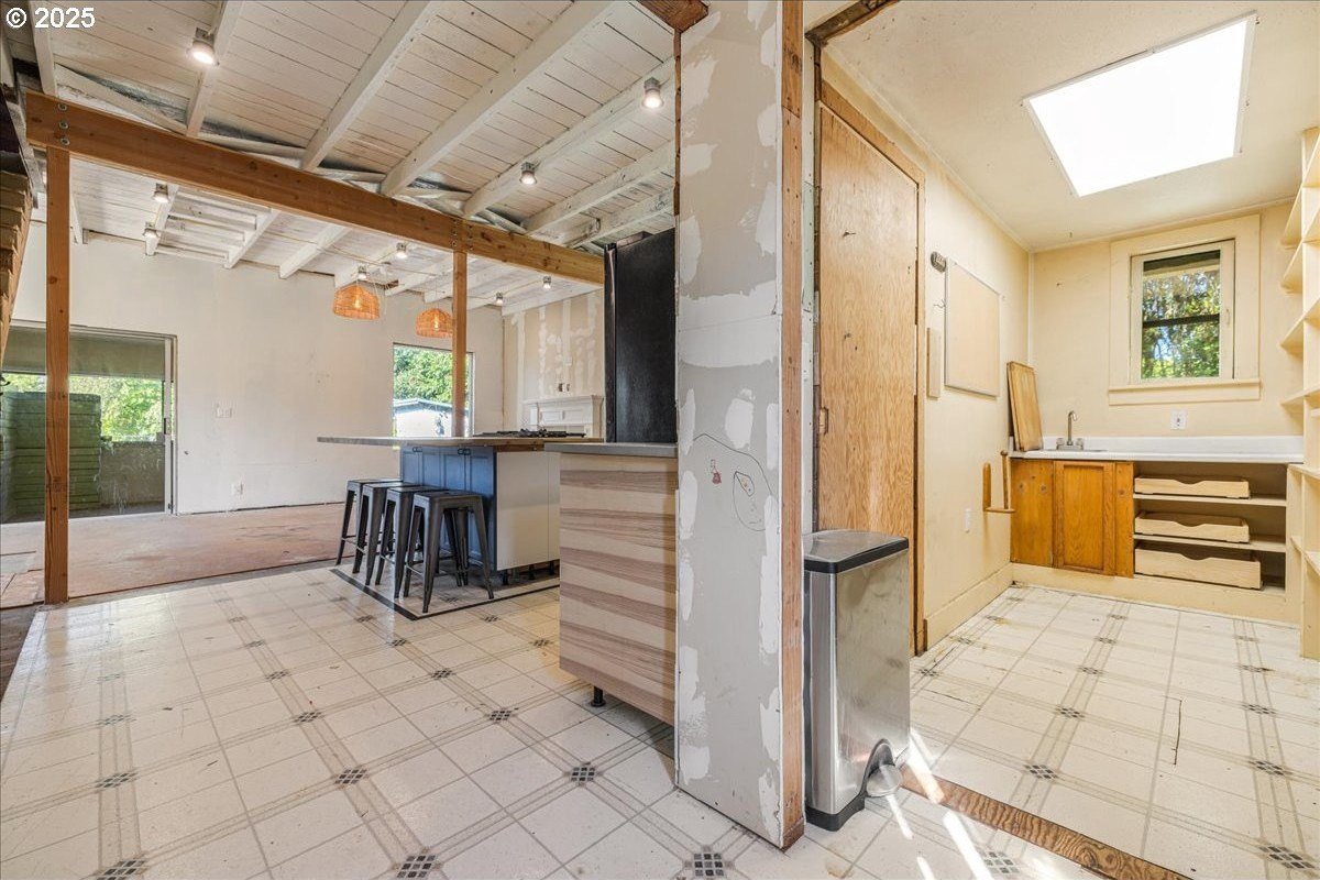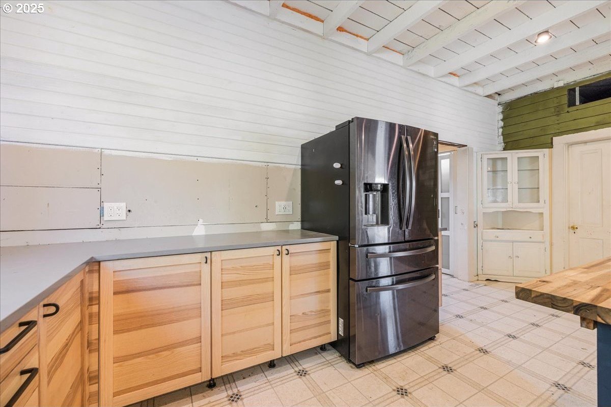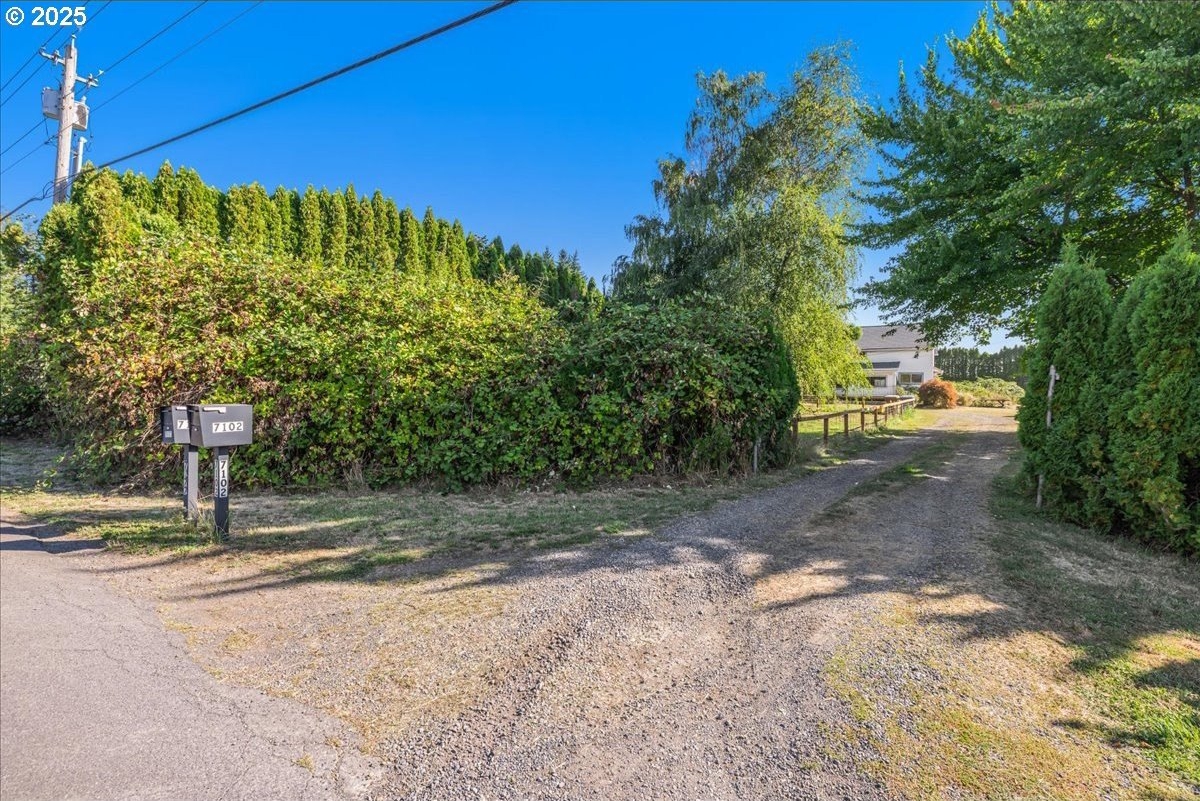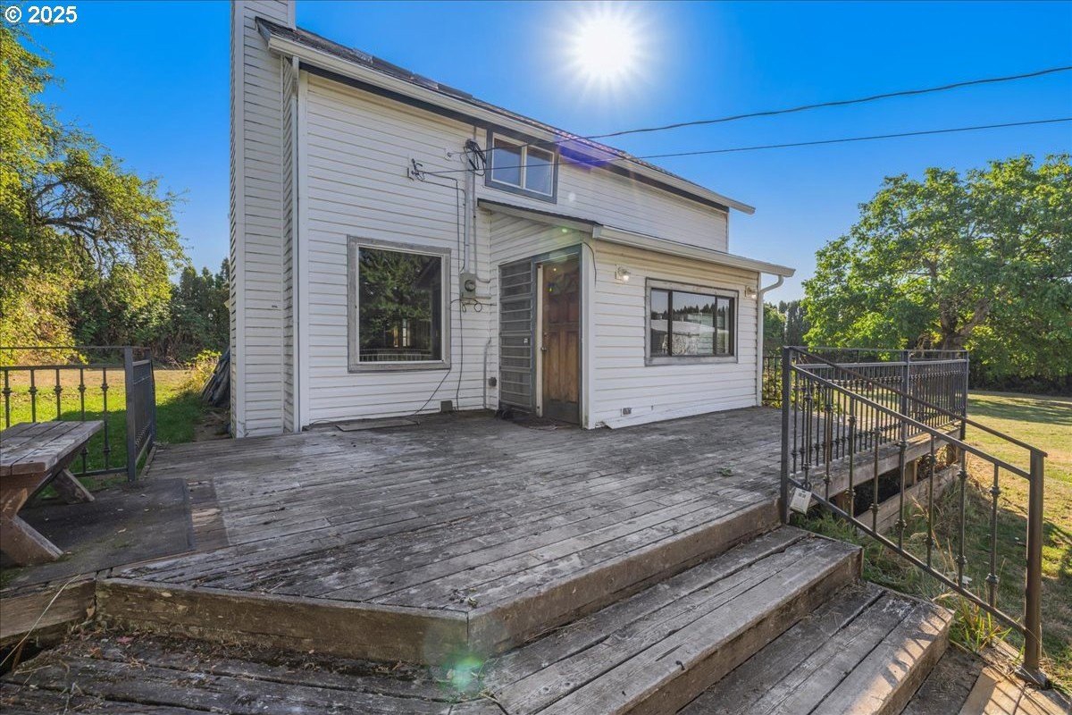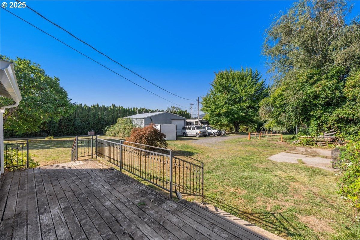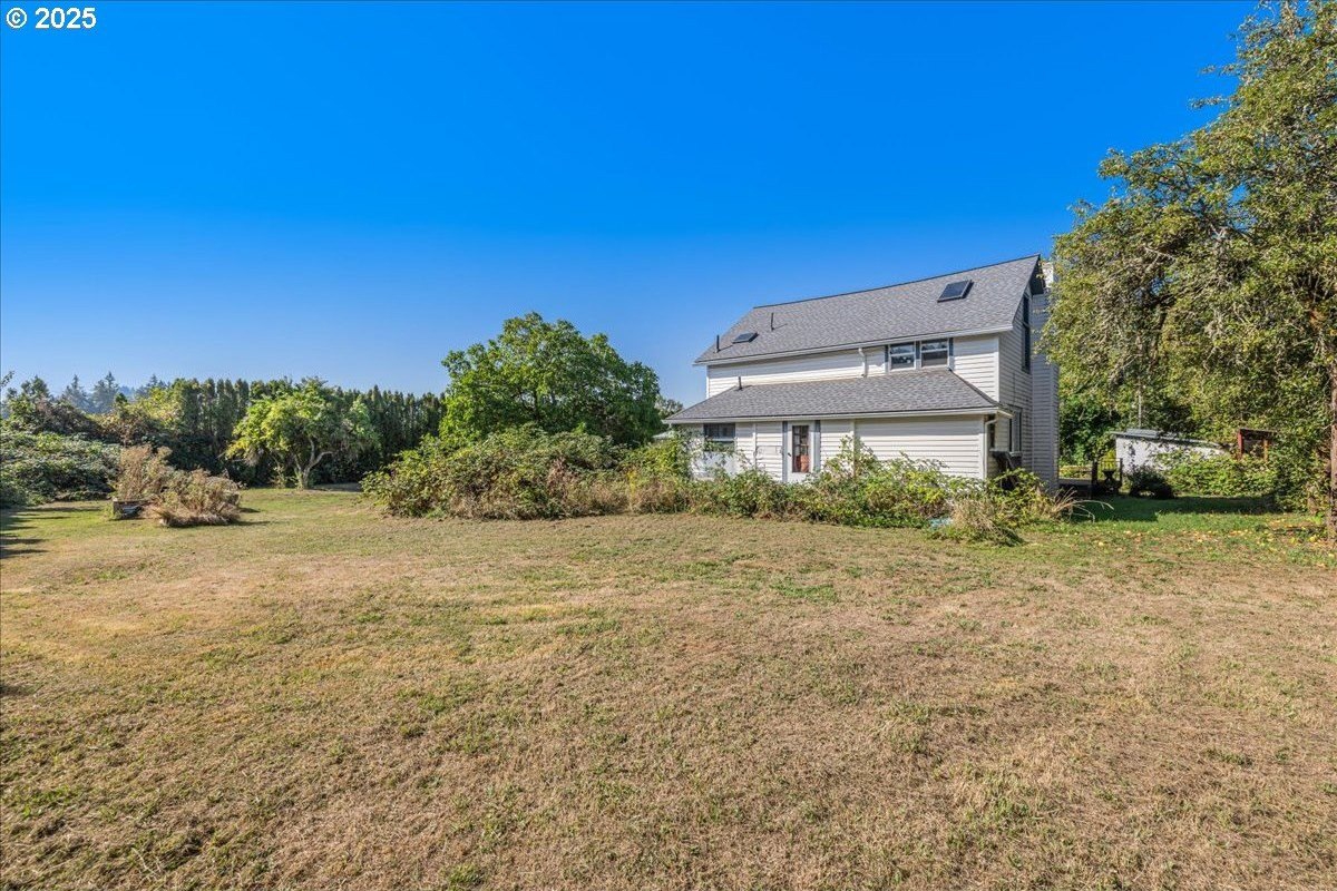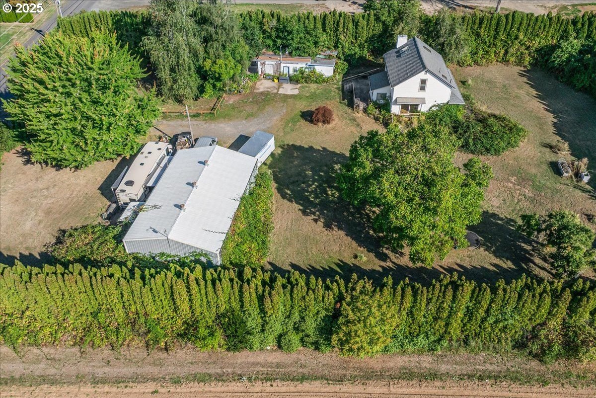 Surrounded by open land and a blend of upscale and country-style properties, this farmhouse fixer rests on a flat, rectangular 1 acre lot enclosed by lush arborvitae, and surrounded by a nursery for privacy—offering endless potential to craft your dream home. Amazing Mt. Hood views are waiting to be rediscovered behind the trees. Major updates have already been completed, including a newer roof and gutters (2024) with transferable warranties, newer skylights for natural light, and a remodeled kitchen with IKEA cabinetry under warranty, custom extended Acacia wood island, under-cabinet outlets, and newer appliances. Original hardwood floors lie beneath the subfloor! A butler’s pantry with extra sink and storage, a false chimney with capped gas line ready for a fireplace, and included remodel supplies like new flooring, walk-in shower, flagstone, and pavers, add to the potential.The land and outbuildings bring even more opportunity. A large shop features a loft, wood-burning fireplace, 400-amp separate commercial meter, a setup for welding, and offers a full auto lift! A smaller shop with power and water, add flexibility, along with an RV pad with 50-amp service and water. The property also includes a secured chicken and duck coop, and multiple water spigots. Organically grown (Never chemically treated) producing walnut, apple, pear, and plum trees, plus blackberries, lemon balm, and raised garden beds. Perfect for a micro-farm!With privacy, usable land, and infrastructure already in place, this property is ideal for investors, contractors, or buyers ready to finish it into something truly special.
