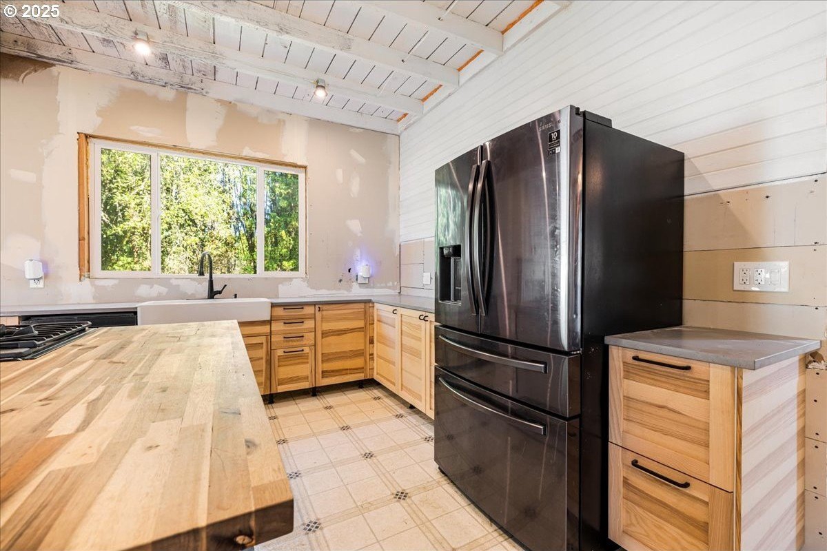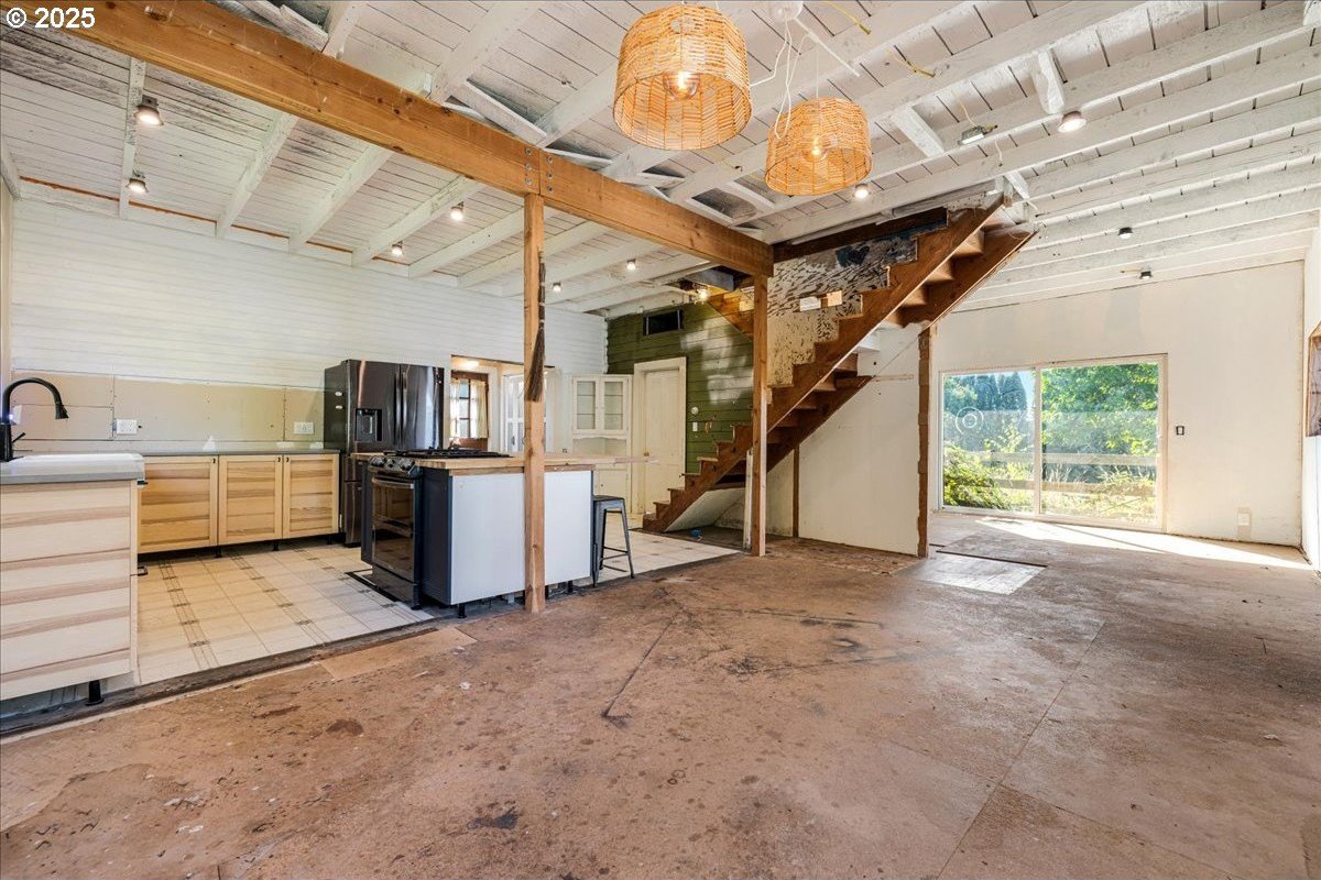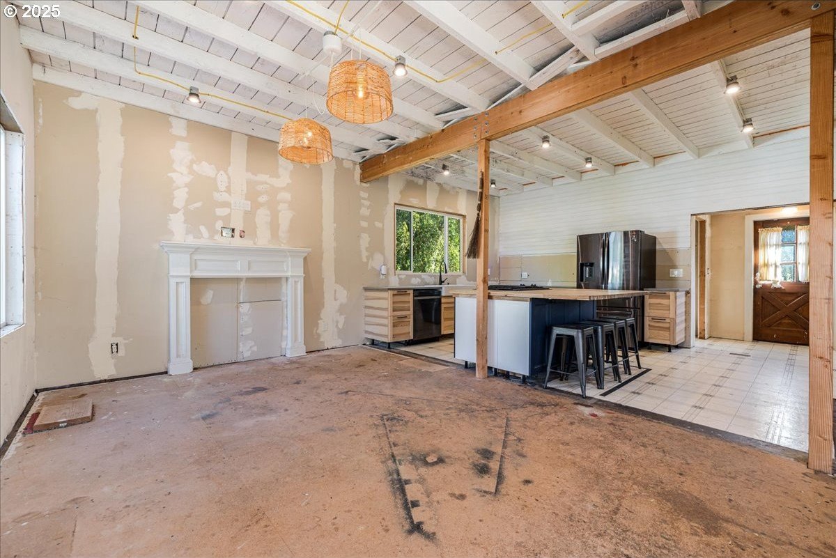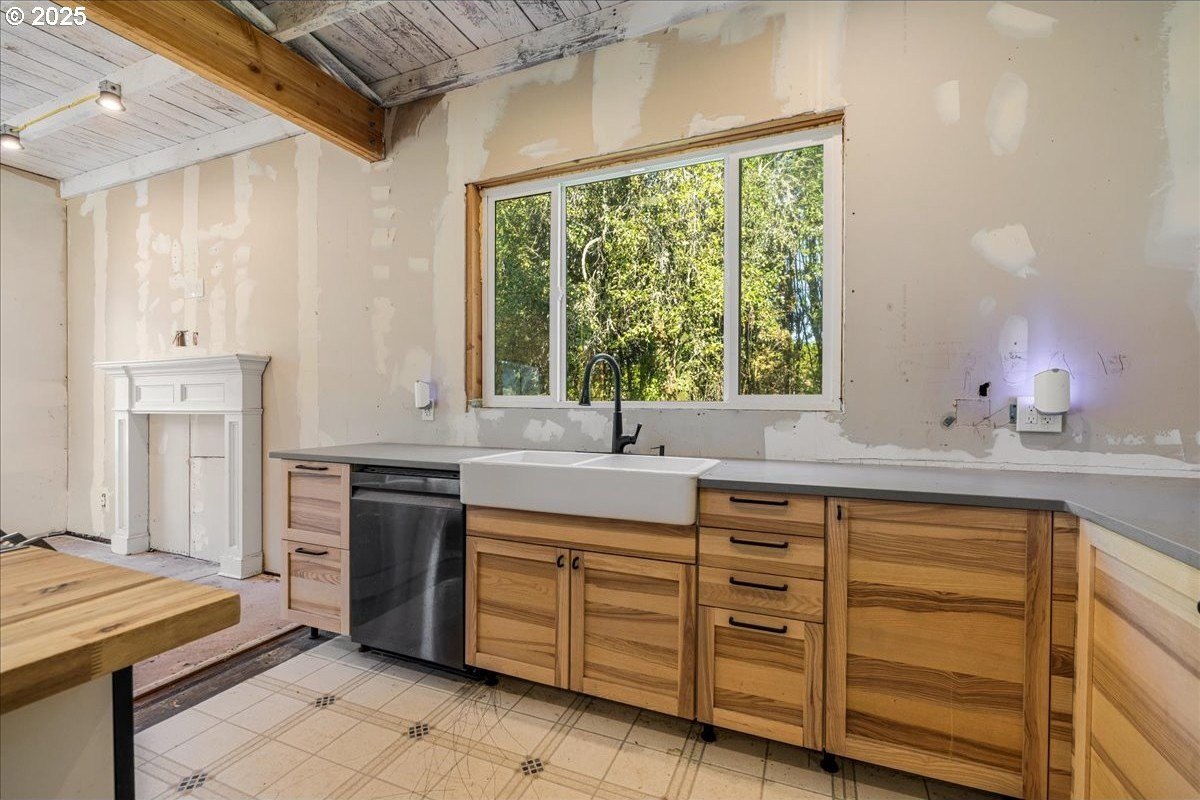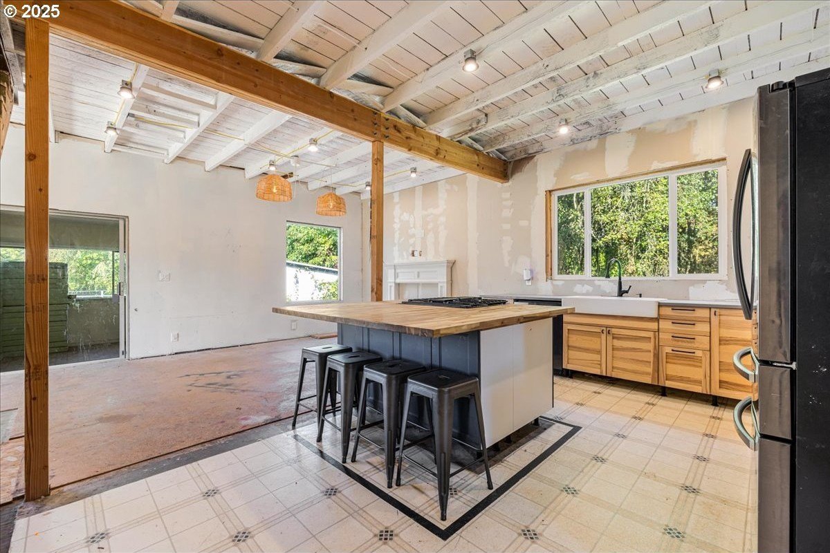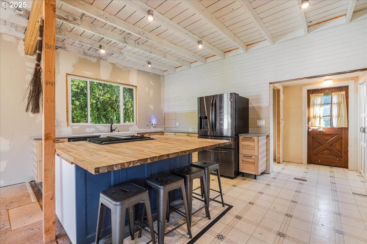 Surrounded by open land and a blend of upscale and country-style properties, this farmhouse fixer rests on a flat, rectangular 1 acre lot enclosed by lush arborvitae, and surrounded by a nursery for privacy—offering endless potential to craft your dream home. Amazing Mt. Hood views are waiting to be rediscovered behind the trees. Major updates have already been completed, including a newer roof and gutters (2024) with transferable warranties, newer skylights for natural light, and a remodeled kitchen with IKEA cabinetry under warranty, custom extended Acacia wood island, under-cabinet outlets, and newer appliances. Original hardwood floors lie beneath the subfloor! A butler’s pantry with extra sink and storage, a false chimney with capped gas line ready for a fireplace, and included remodel supplies like new flooring, walk-in shower, flagstone, and pavers, add to the potential.The land and outbuildings bring even more opportunity. A large shop features a loft, wood-burning fireplace, 400-amp separate commercial meter, a setup for welding, and offers a full auto lift! A smaller shop with power and water, add flexibility, along with an RV pad with 50-amp service and water. The property also includes a secured chicken and duck coop, and multiple water spigots. Organically grown (Never chemically treated) producing walnut, apple, pear, and plum trees, plus blackberries, lemon balm, and raised garden beds. Perfect for a micro-farm!With privacy, usable land, and infrastructure already in place, this property is ideal for investors, contractors, or buyers ready to finish it into something truly special.