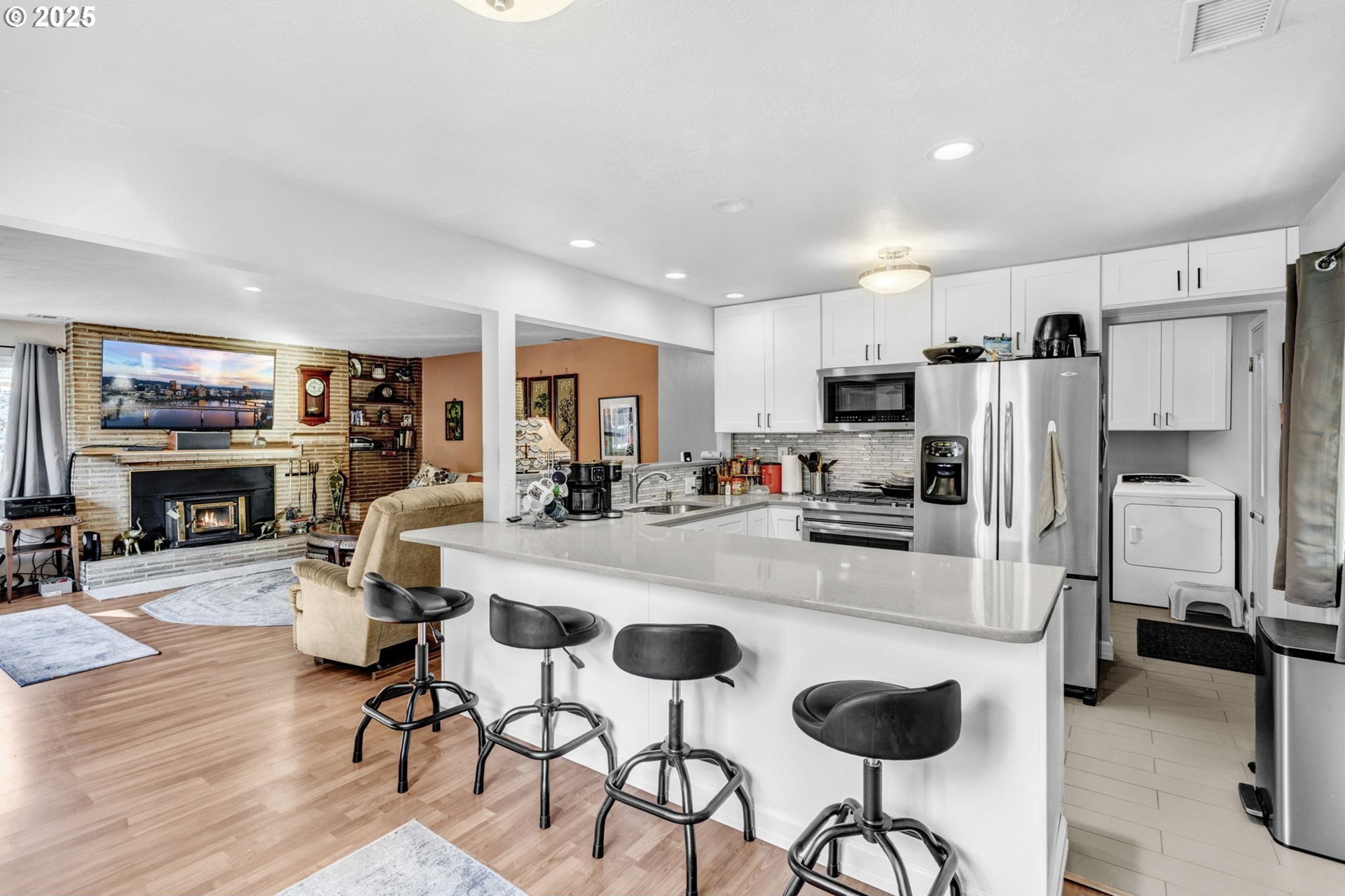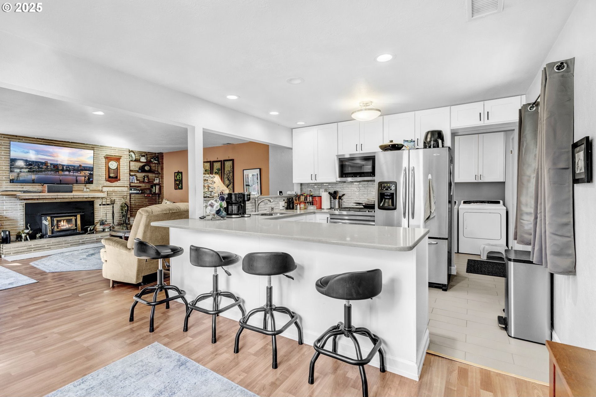 This beautifully updated 1960 mid-century home offers the perfect balance of style, comfort, and location in the heart of Northeast Portland. With 1,230 sq. ft. of single-level living, the home features 3 bedrooms with new carpeting, 1 remodeled bathroom, a remodeled kitchen and utility room Plus a rare full-size two-car garage—a true standout in the neighborhood.Inside, the home shines with clean lines and thoughtful updates. The classic midcentury brick fireplace sets thte 60's vibe. The remodeled kitchen has modern cabinetry, quartz counters, and SS appliances.The layout maximizes natural light, making the home feel bright, open, and inviting.What truly sets this property apart is its exceptional location. Situated just one block from a brand-new city park and directly on a dedicated bike street, it embraces Portland’s outdoor lifestyle. Enjoy easy access to Alberta Park, Fernhill Park, and Woodlawn Park, as well as countless bike routes and public transit options.Just a short ride away is the Alberta Arts District, Beaumont neighborhood, one of Portland’s most iconic neighborhoods. From vibrant murals and galleries to some of the city’s best coffee shops, restaurants, and local boutiques, Alberta offers a cultural energy that makes this one of Portland’s most beloved areas. Events like the Last Thursday Art Walk and nearby farmers’ markets highlight the community spirit that thrives here.Practical features like the spacious garage add flexibility for cars, storage, or hobbies, while the updated finishes ensure move-in readiness. The combination of modern updates, mid-century character, and unbeatable location make this home a rare opportunity.If you’ve been searching for a home that blends timeless design, everyday functionality, and access to Portland’s best parks, bike routes, and neighborhood culture—4835 NE Alberta Ct is it.