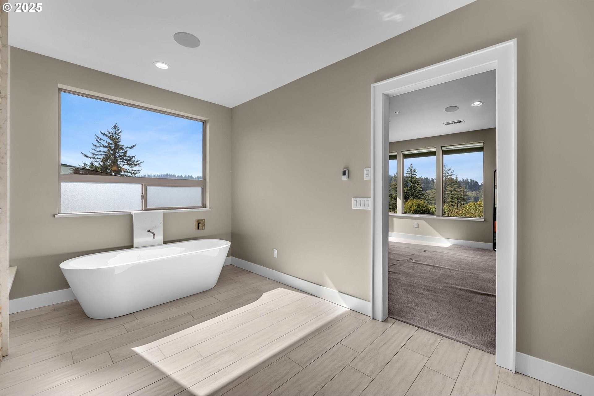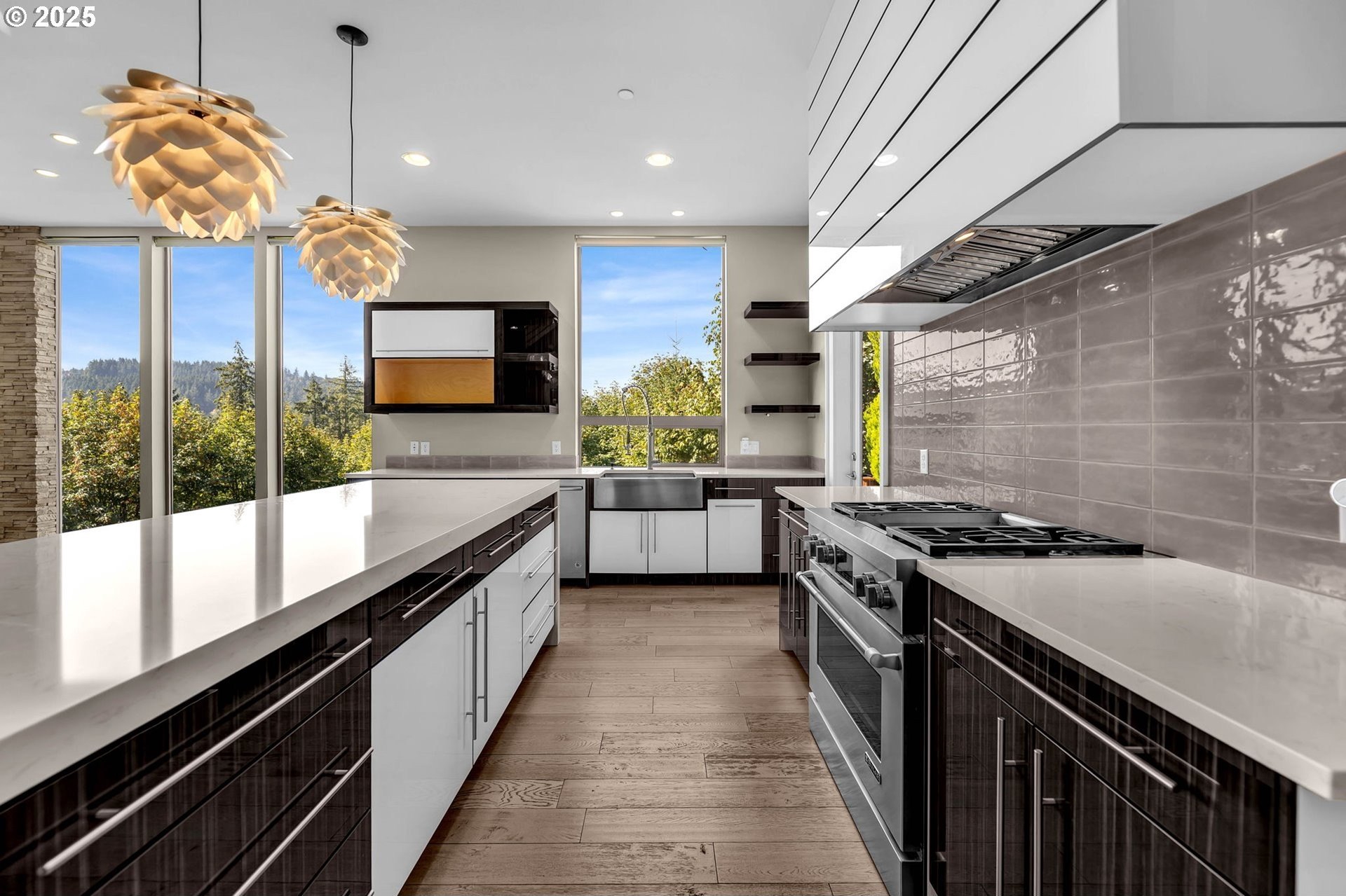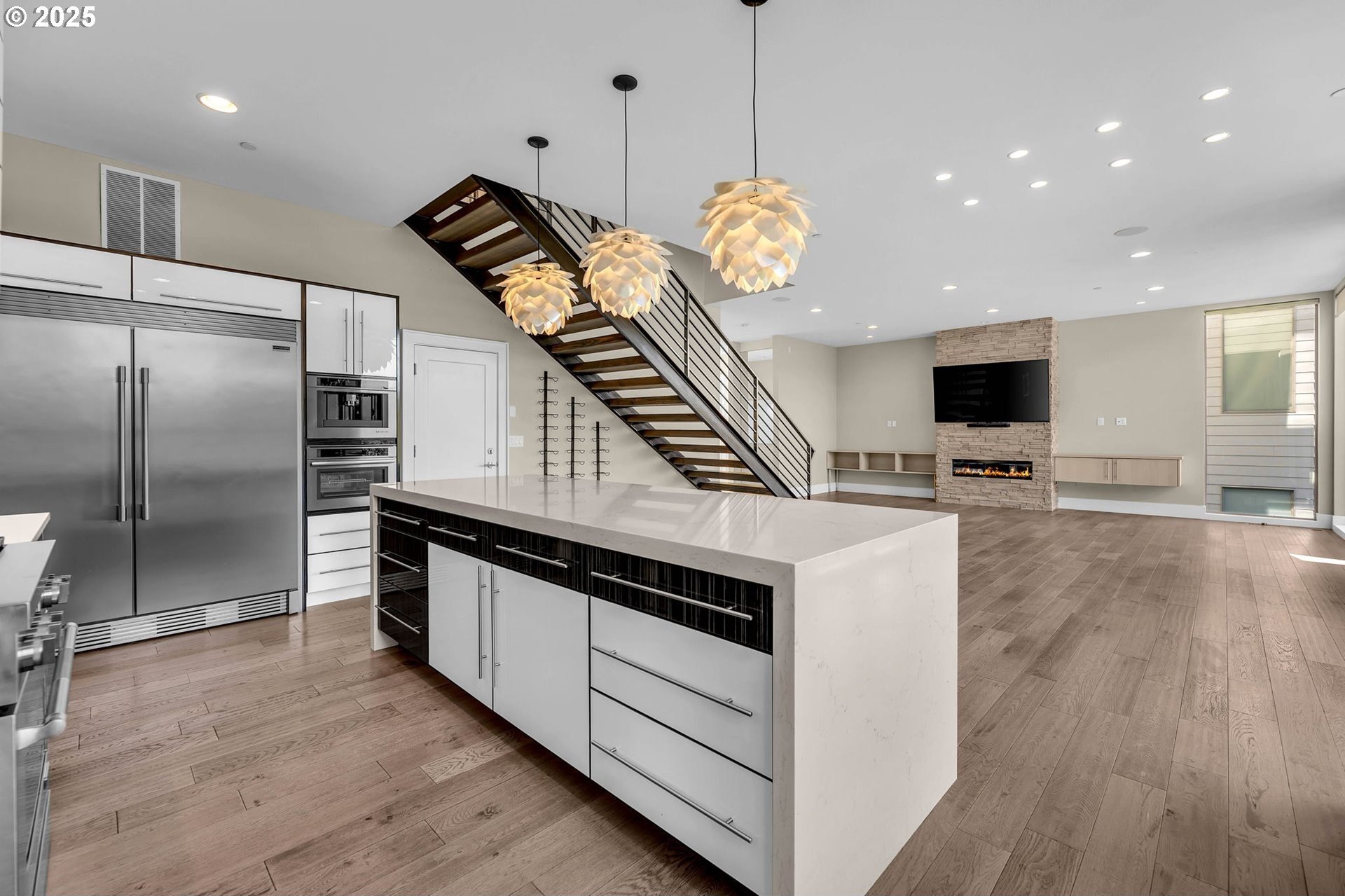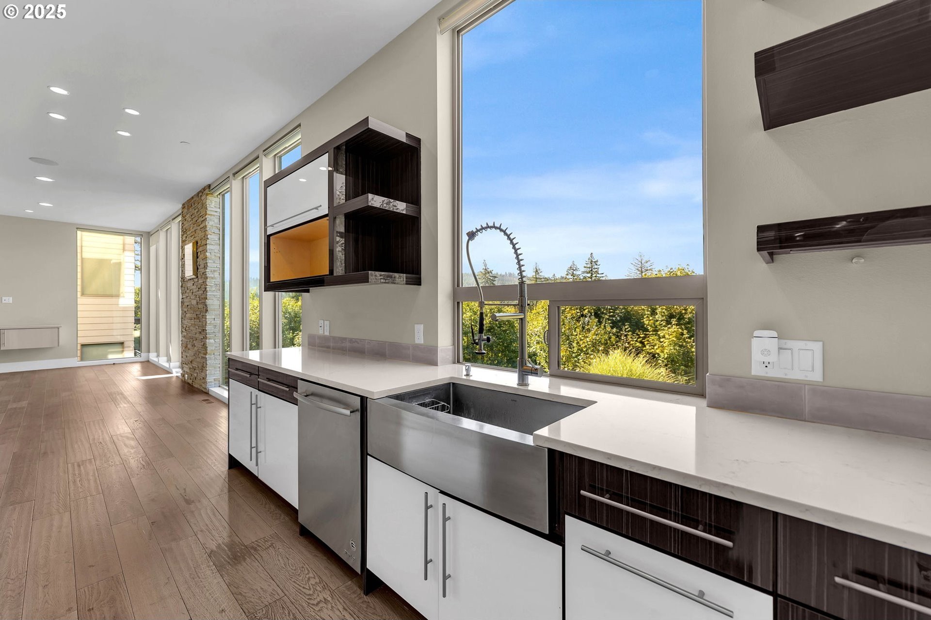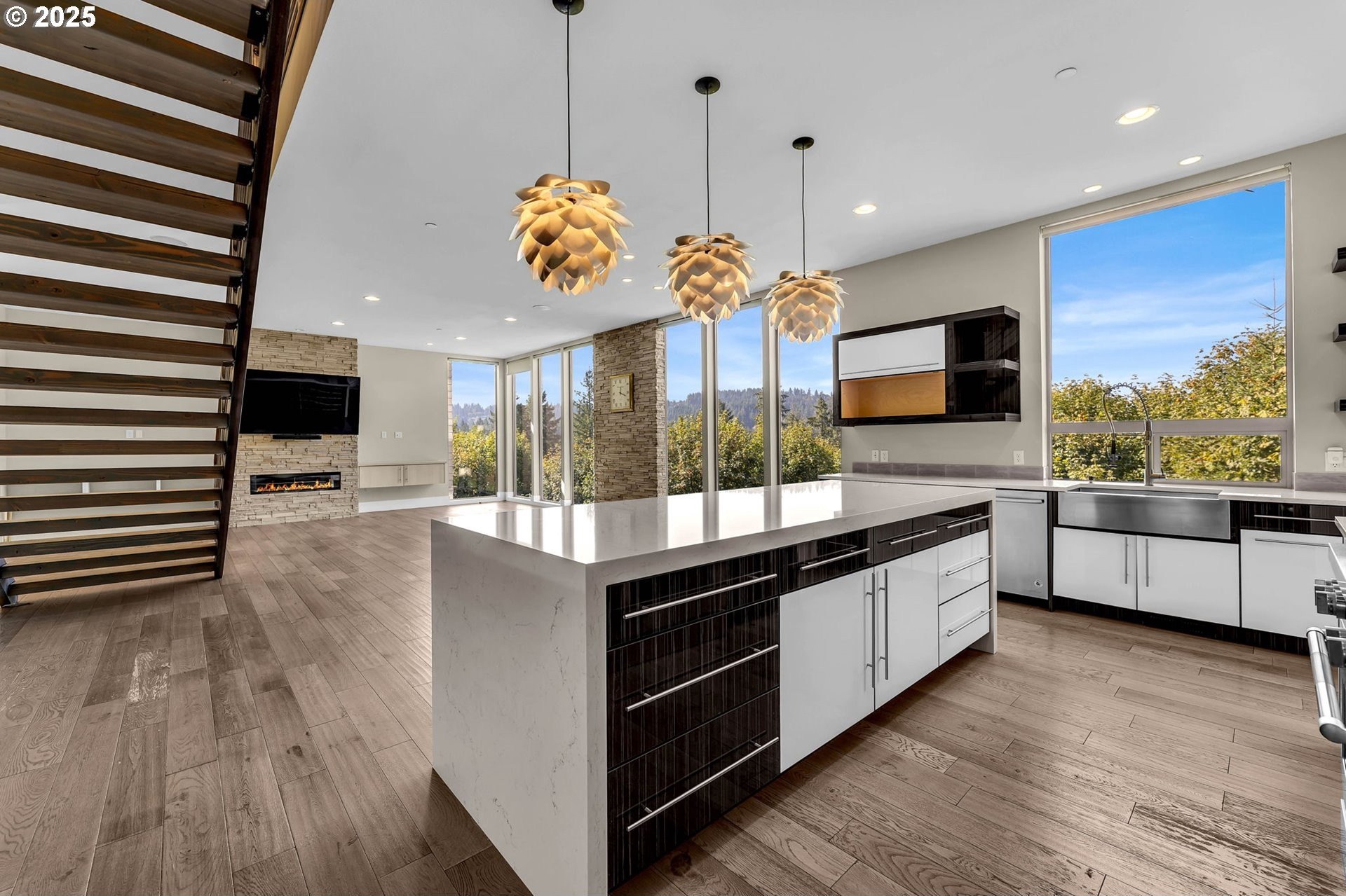 Modern Elegance on Lacamas Lake! Experience refined living in this architectural stunner, where walls of 11-foot glass capture unobstructed views of Lacamas Lake and the surrounding greenbelt. With a seamless open layout, the home invites light and nature inside, creating a perfect balance of sophistication and serenity. The gourmet kitchen is the heart of the home, anchored by a dramatic waterfall island and complemented by professional - grade stainless steel appliances and a generous walk-in pantry - ideal for both intimate gatherings and grand entertaining. Upstairs, the primary suite offers a private sanctuary with spa-level indulgence: heated tile floors, a rain shower, and a deep soaking tub designed for ultimate relaxation. Every detail has been elevated with thoughtful upgrades, from EV charging and whole-home CAT6A wiring to integrated speakers, a water purification system, and an advanced HVAC with enhanced filtration. This is more than a home, it’s a lifestyle, defined by luxury, innovation, and an unrivaled connection to nature.