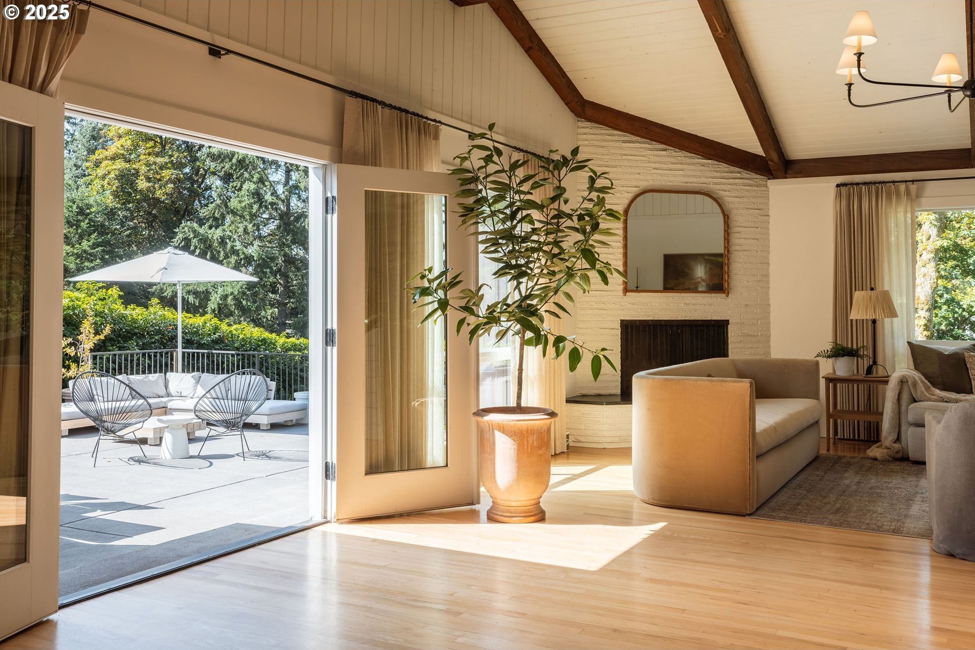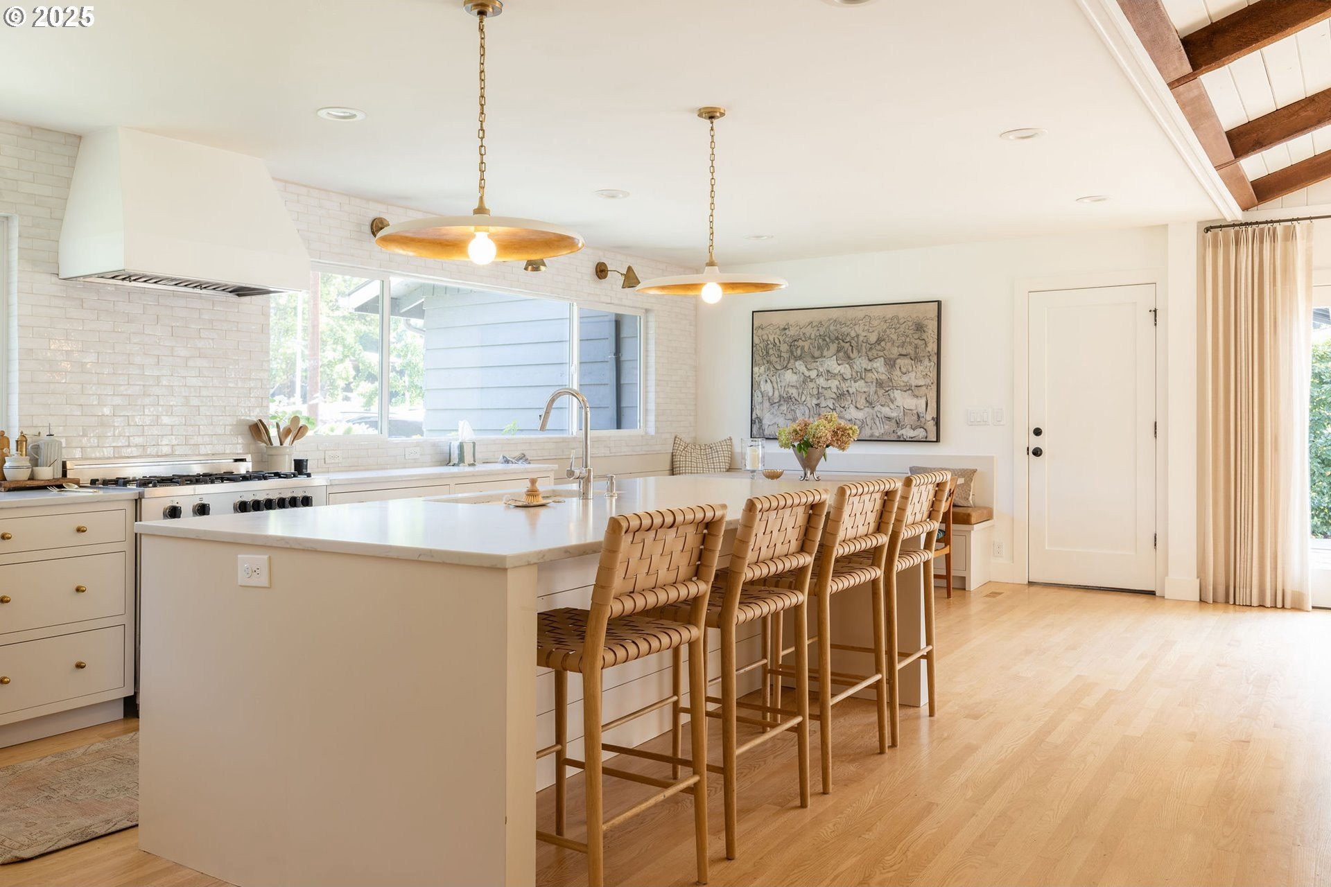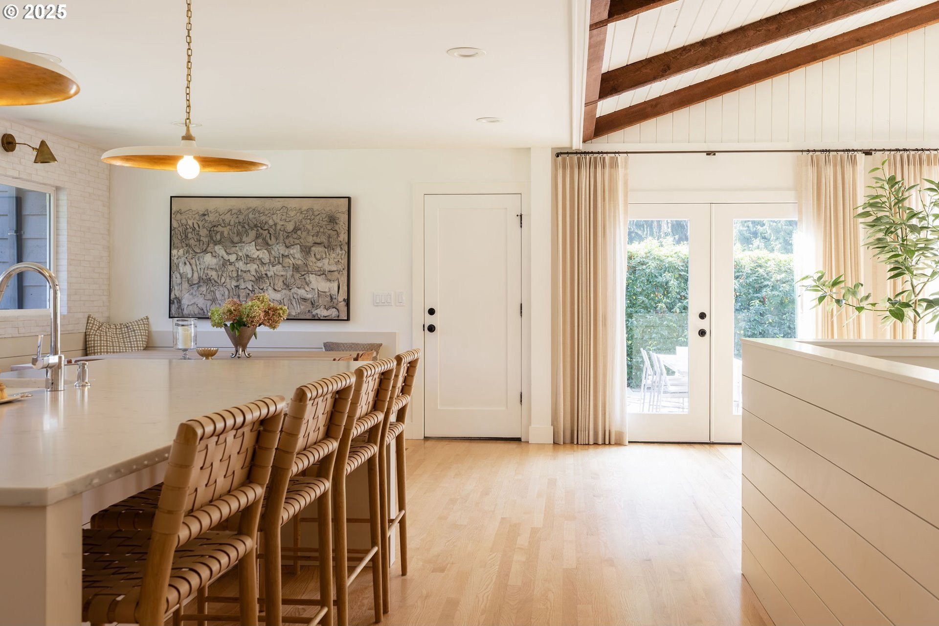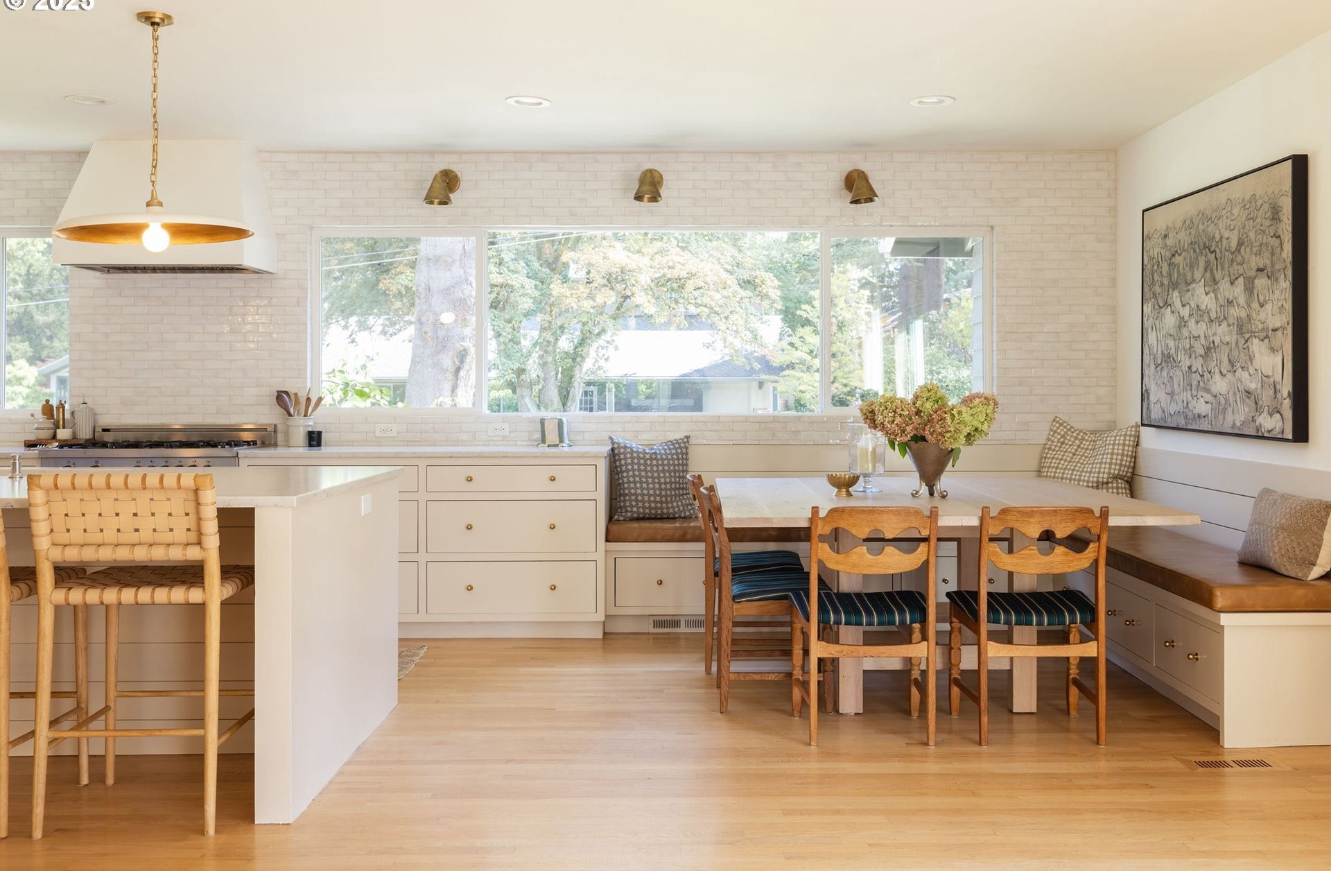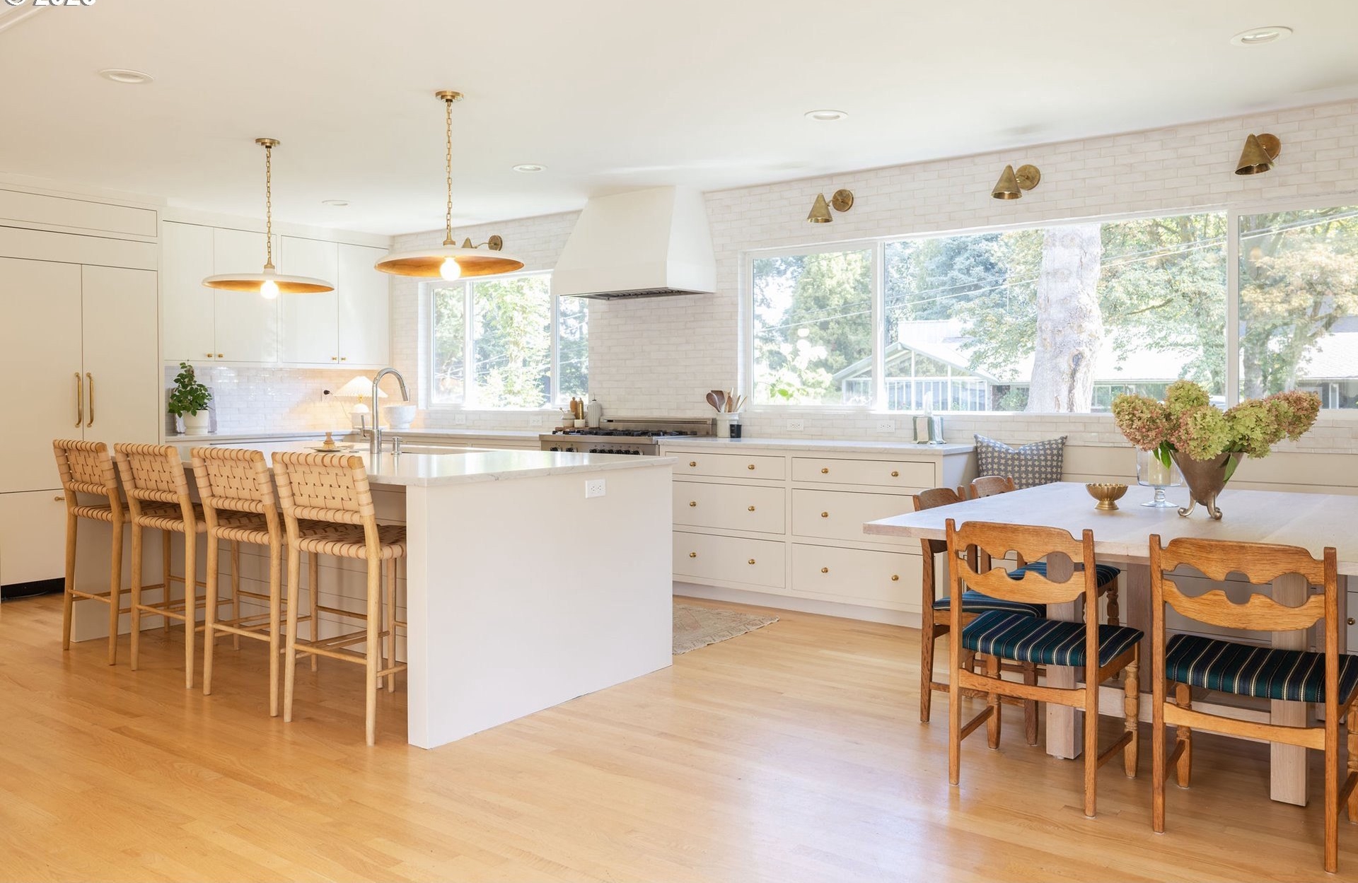 Step into a home where style meets ease. Hood Ave House invites you to spend long summer evenings in your half-acre yard, cozy winter nights by the fire, and weekends exploring the nearby parks and trails. Designer appointments meet tranquil outdoor living in this exceptional SW Portland Oasis. Set on a spacious, beautifully landscaped lot, this home offers privacy, serenity, and space — all just minutes from the heart of the city. Thoughtful upgrades throughout include high-end finishes, custom cabinetry, and curated fixtures that elevate every room. This is a home built for gracious entertaining and unparalleled family living and exemplifies the perfect harmony of aesthetic elegance and functional creation. Recently remodeled and professionally designed by a noted Portland interior designer, this residence feels both elevated and immediately livable. The thoughtful single-level layout places the main living spaces and 3 bedrooms on the first floor — making day-to-day life functional, accessible, and beautifully simple. With five spacious rooms, three full bathrooms, and a design that balances comfort and sophistication, this home is truly move-in ready. Every detail — from the flow of the floor plan to the finishes — has been curated so you won’t need to lift a finger before settling in. The expansive backyard invites entertaining, gardening, or quiet reflection, surrounded by mature trees and lush greenery. A rare opportunity to own a true retreat in a coveted, close-in SW neighborhood near Lewis & Clark. The flow of indoor-outdoor living is effortless with a seamless connection to the inviting deck and lush, established gardens. This transitional residence blends classic design with sophisticated modern upgrades, all set on a half acre of beautifully landscaped grounds. Located 5 minutes from Lake Oswego, 10 minutes from Downtown Portland and walking distance from Fabulous Tryon Creek Park. Hood Ave House is more than a place to live. It’s a place to live well