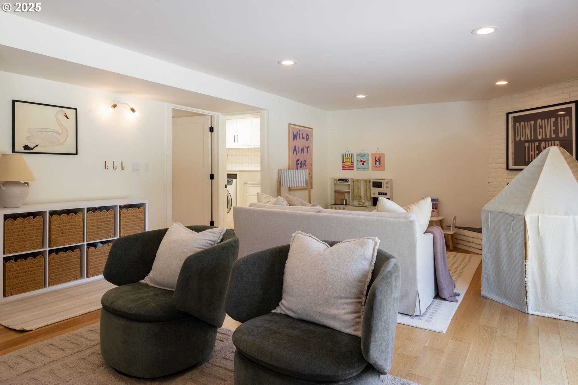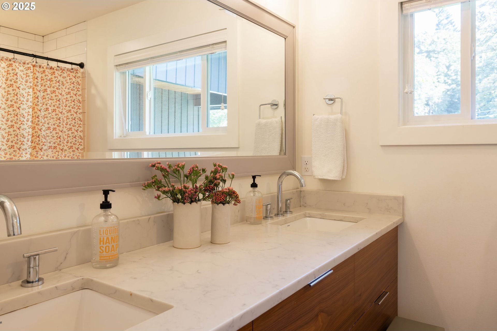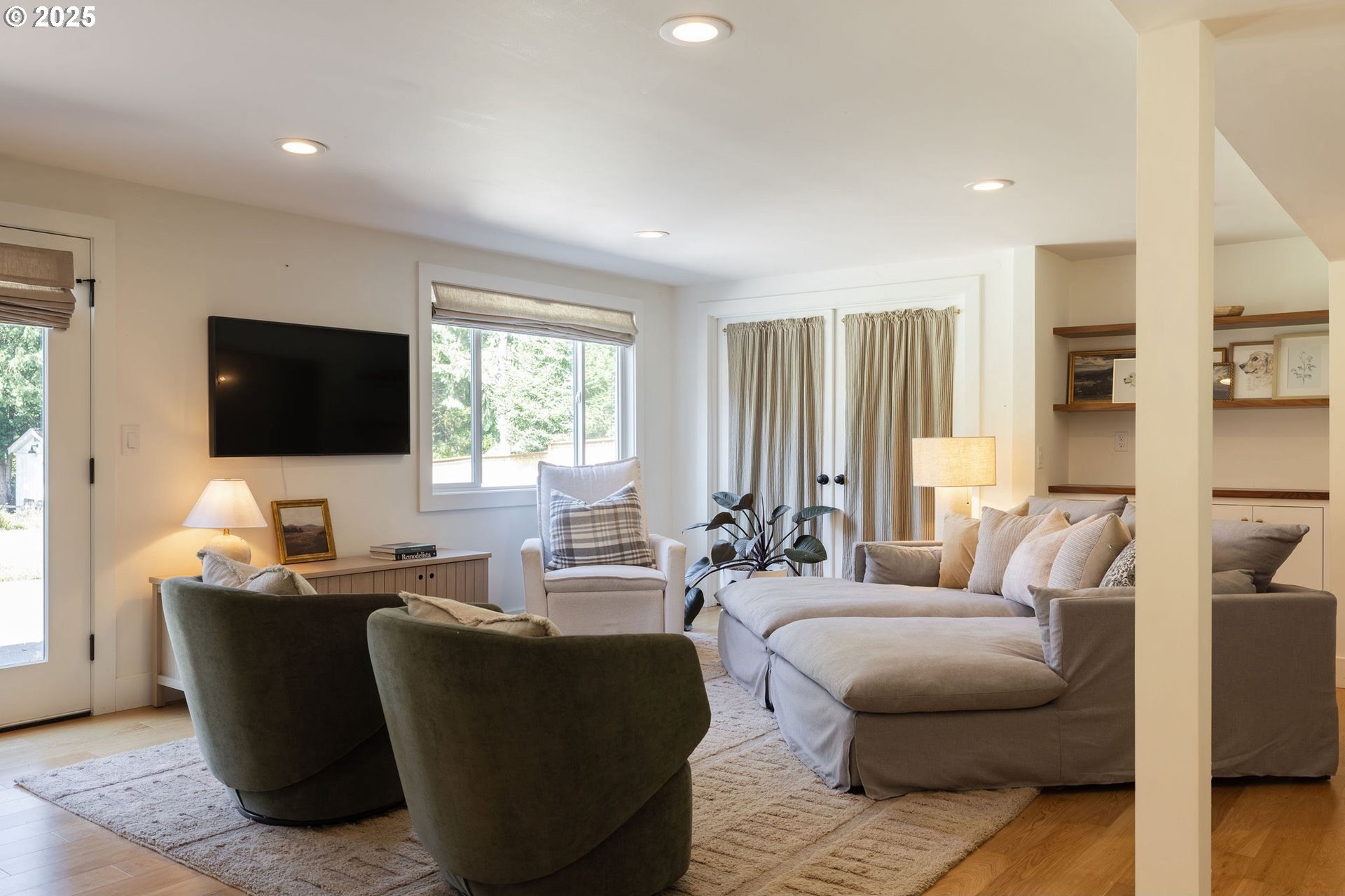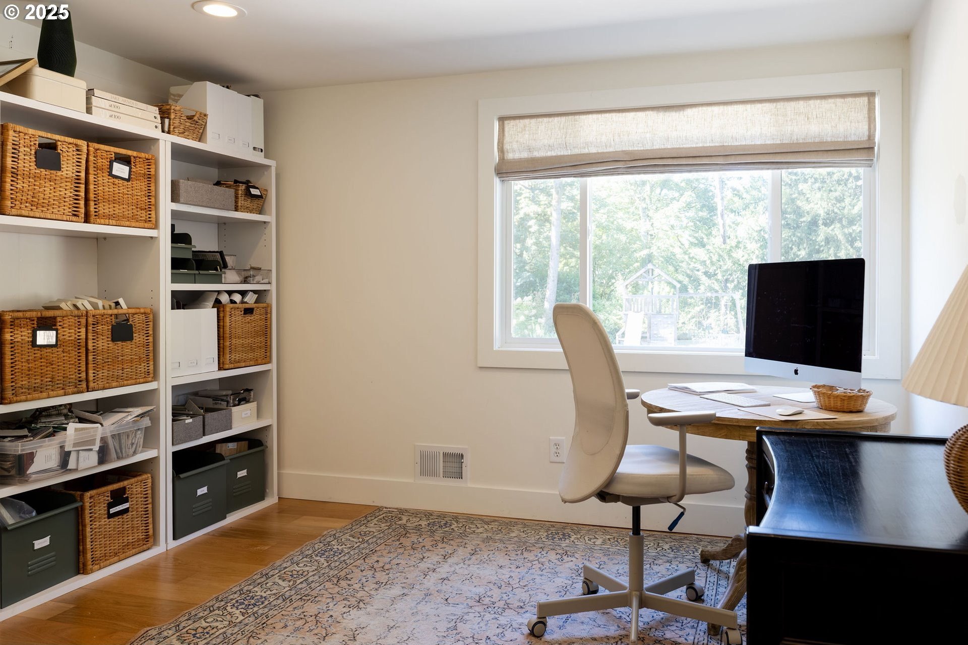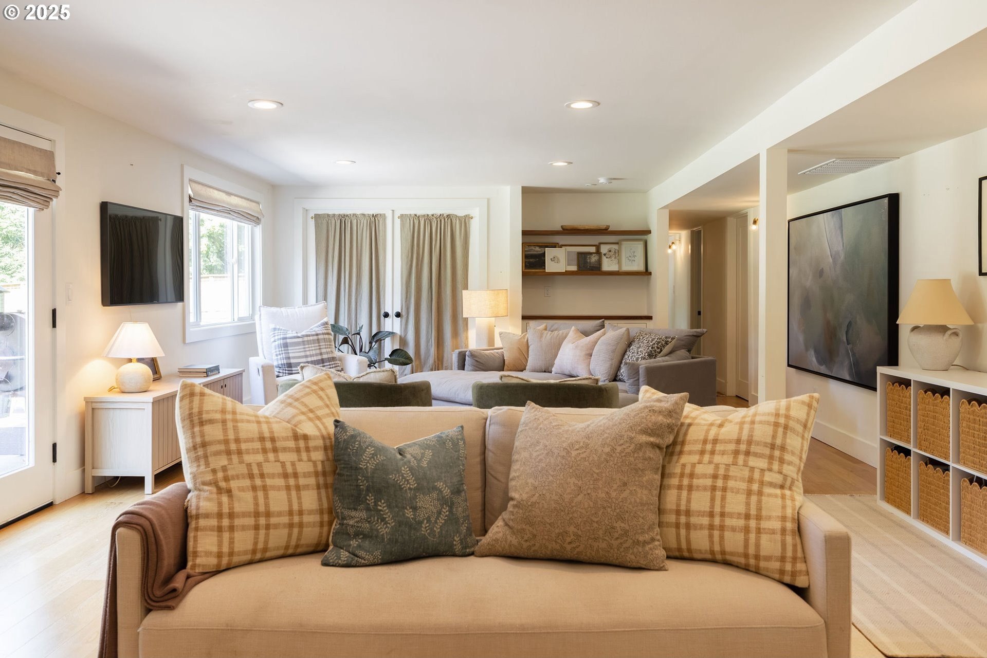 Step into a home where style meets ease. Hood Ave House invites you to spend long summer evenings in your half-acre yard, cozy winter nights by the fire, and weekends exploring the nearby parks and trails. Designer appointments meet tranquil outdoor living in this exceptional SW Portland Oasis. Set on a spacious, beautifully landscaped lot, this home offers privacy, serenity, and space — all just minutes from the heart of the city. Thoughtful upgrades throughout include high-end finishes, custom cabinetry, and curated fixtures that elevate every room. This is a home built for gracious entertaining and unparalleled family living and exemplifies the perfect harmony of aesthetic elegance and functional creation. Recently remodeled and professionally designed by a noted Portland interior designer, this residence feels both elevated and immediately livable. The thoughtful single-level layout places the main living spaces and 3 bedrooms on the first floor — making day-to-day life functional, accessible, and beautifully simple. With five spacious rooms, three full bathrooms, and a design that balances comfort and sophistication, this home is truly move-in ready. Every detail — from the flow of the floor plan to the finishes — has been curated so you won’t need to lift a finger before settling in. The expansive backyard invites entertaining, gardening, or quiet reflection, surrounded by mature trees and lush greenery. A rare opportunity to own a true retreat in a coveted, close-in SW neighborhood near Lewis & Clark. The flow of indoor-outdoor living is effortless with a seamless connection to the inviting deck and lush, established gardens. This transitional residence blends classic design with sophisticated modern upgrades, all set on a half acre of beautifully landscaped grounds. Located 5 minutes from Lake Oswego, 10 minutes from Downtown Portland and walking distance from Fabulous Tryon Creek Park. Hood Ave House is more than a place to live. It’s a place to live well