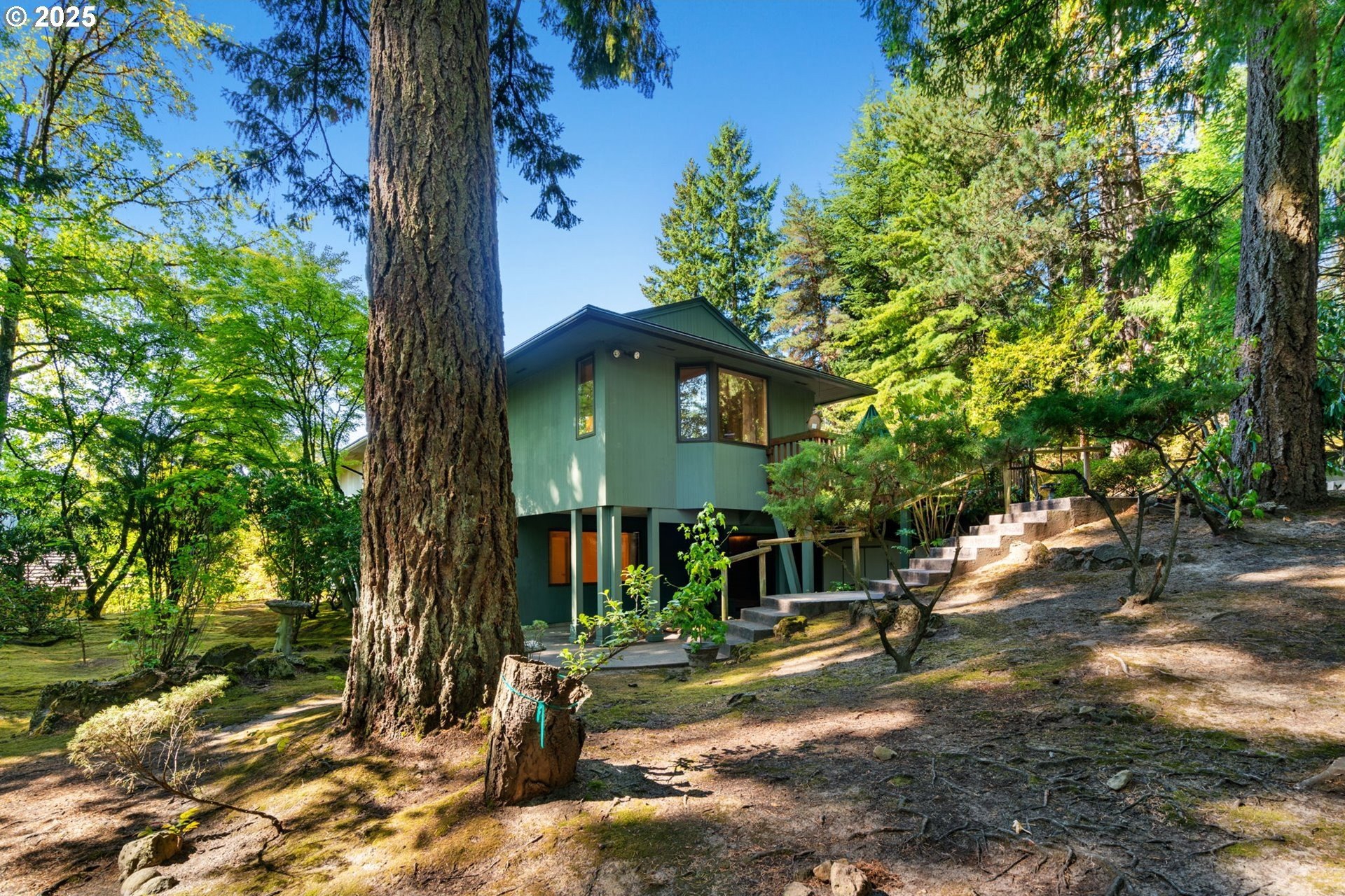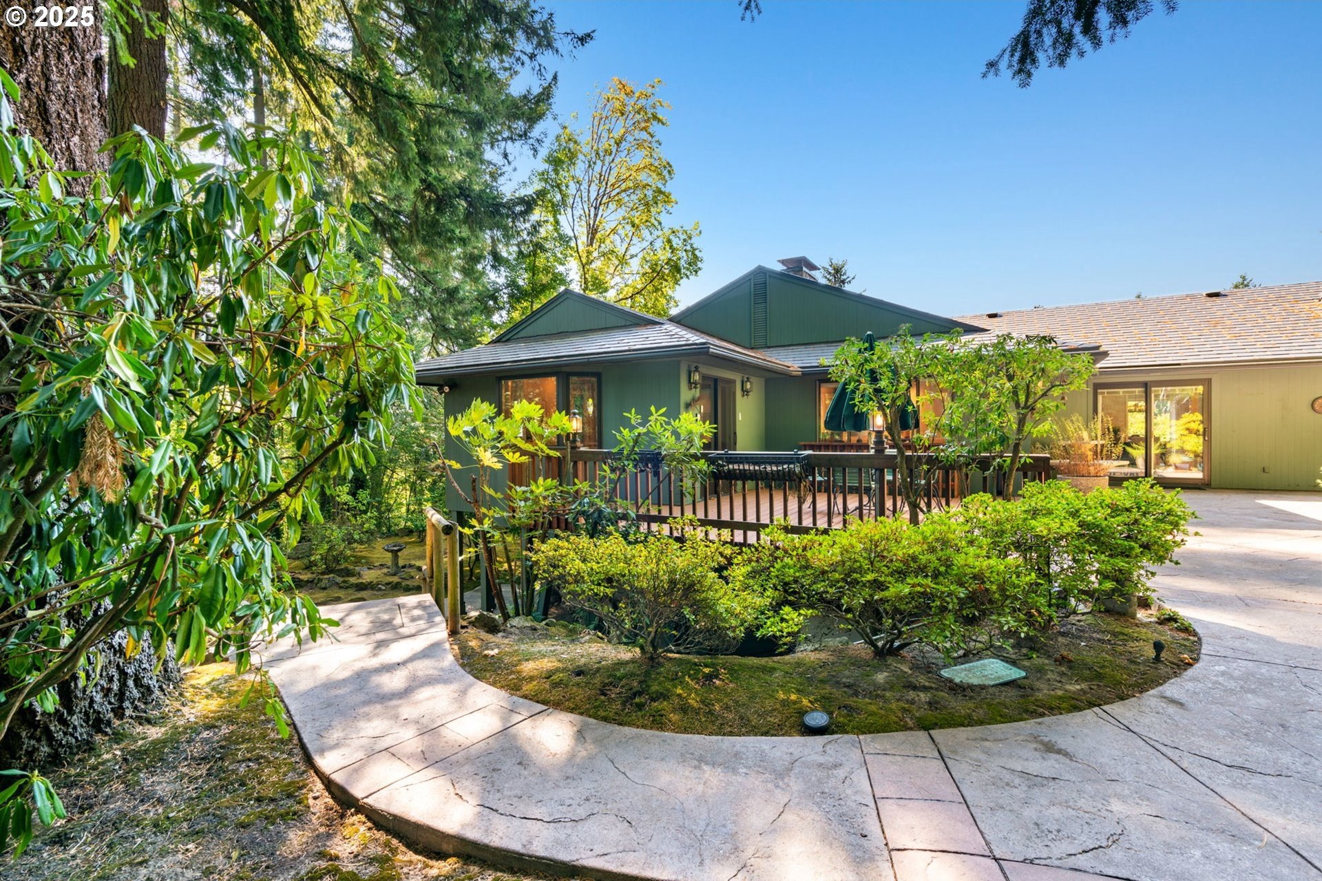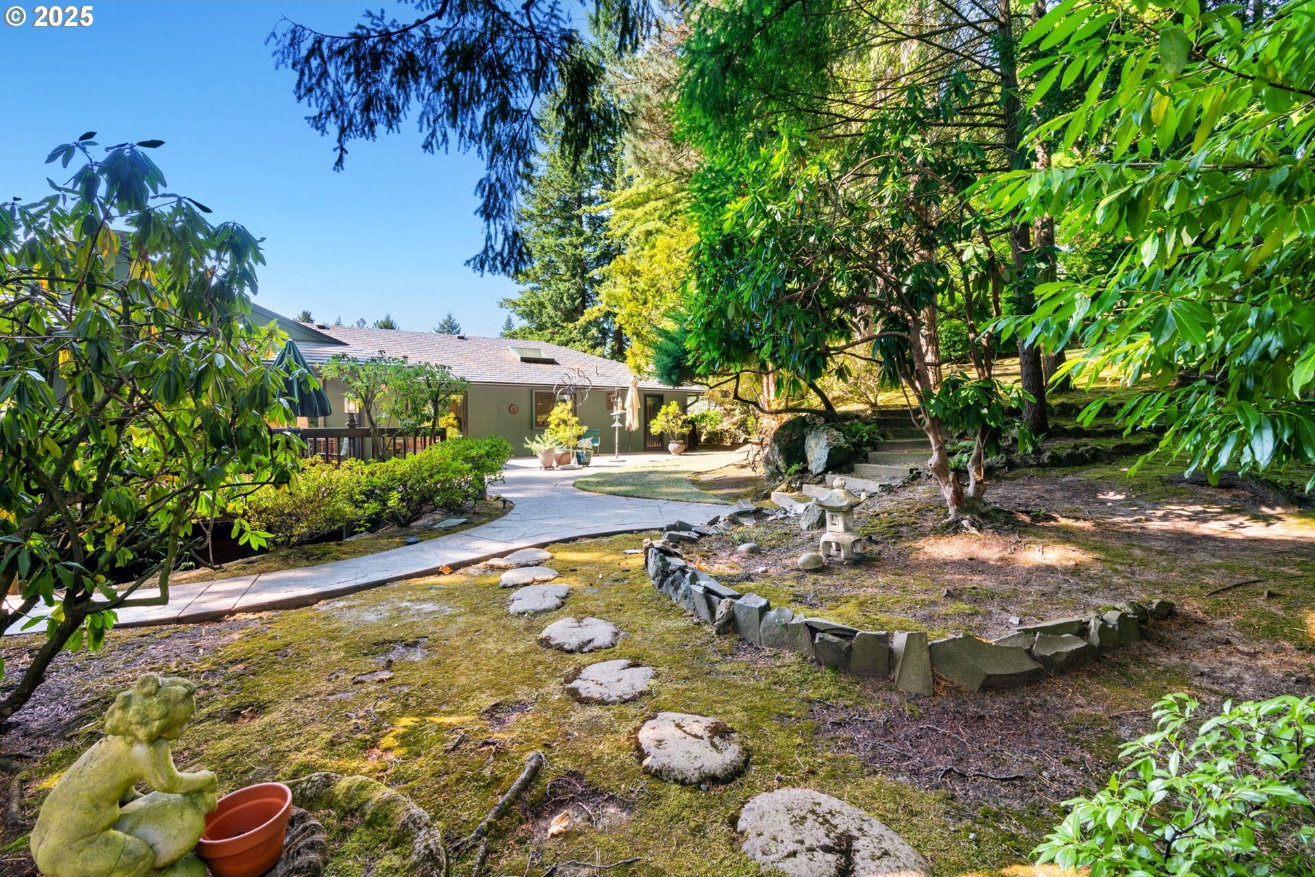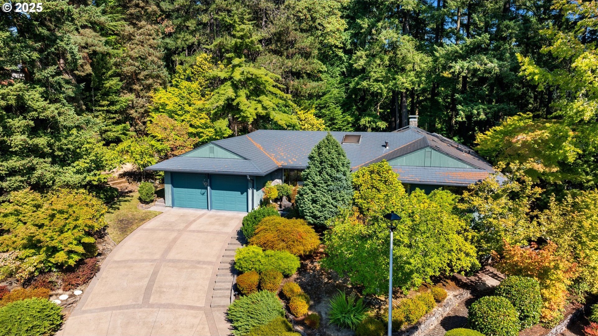 Privacy, light, and indoor–outdoor flow define 2820 SW Garden View Pl. Set at the end of a quiet cul-de-sac in Vista Hills, the home is wrapped in mature trees and lush landscaping for a calm, secluded feel.An expansive main living room with an oversized fireplace and large windows anchors the plan, while the open, light-filled kitchen serves as the daily hub. Flexible spaces include extra bedrooms for guests, a finished lower level with a bonus entertainment room and custom wet bar, plus a workshop.Out back, a generous TimberTech deck overlooks private, sprinkler-served grounds. Confidence updates include a lifetime Interlock aluminum roof (2003), PEX plumbing, and LeafGuard gutters. Hardwoods run through much of the main level, with additional hardwoods ready to be revealed under carpet in the living and formal dining rooms.Lovingly cared for by its original owners since 1966, this is Vista Hills living at its best—quiet, green, and genuinely welcoming—ready for its next chapter.** Road closed at Canyon to SW Garden View Ave (most GPS will send you this way). Take Walker Rd (by the Plaid Pantry), right on Vista Pl, right on Melnore St, right on Scenic Dr, left on Garden View Ave and finally, right on Garden View Pl. **