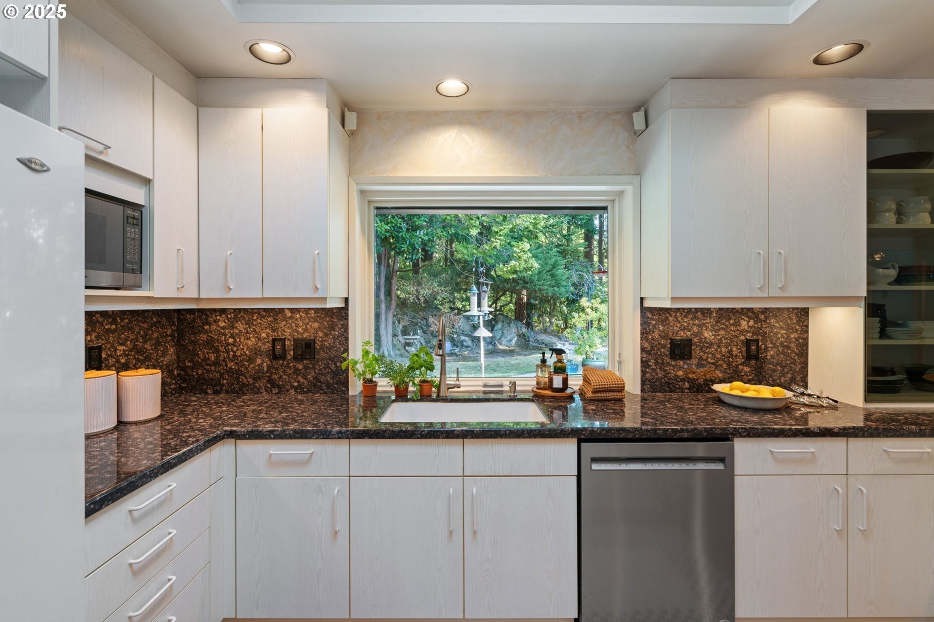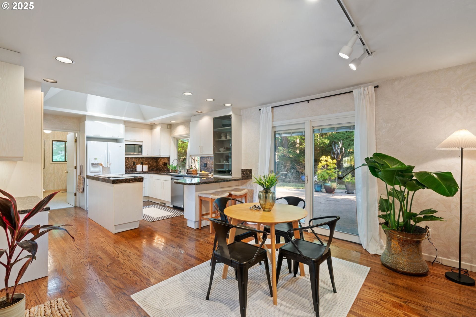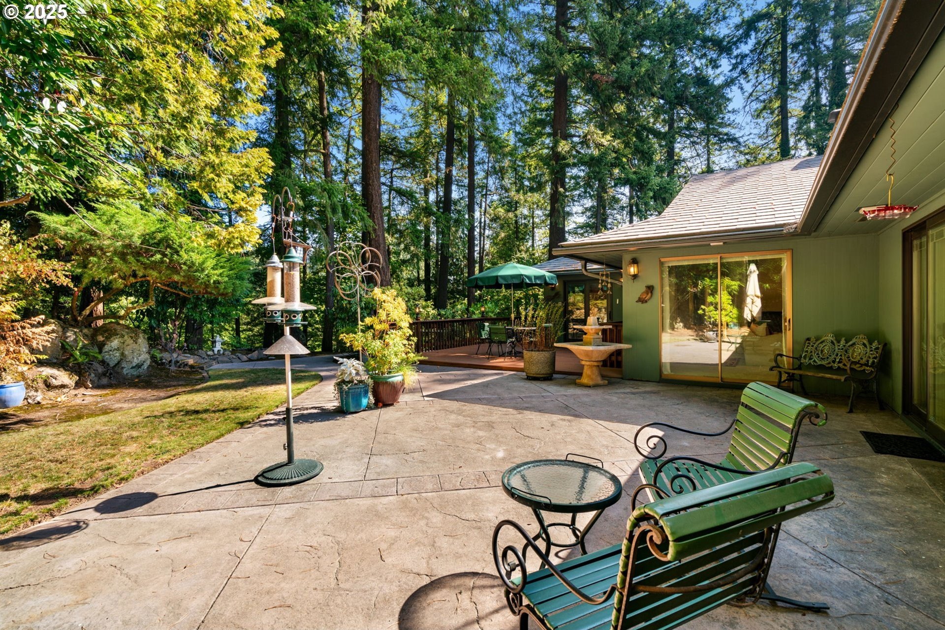 Privacy, light, and indoor–outdoor flow define 2820 SW Garden View Pl. Set at the end of a quiet cul-de-sac in Vista Hills, the home is wrapped in mature trees and lush landscaping for a calm, secluded feel.An expansive main living room with an oversized fireplace and large windows anchors the plan, while the open, light-filled kitchen serves as the daily hub. Flexible spaces include extra bedrooms for guests, a finished lower level with a bonus entertainment room and custom wet bar, plus a workshop.Out back, a generous TimberTech deck overlooks private, sprinkler-served grounds. Confidence updates include a lifetime Interlock aluminum roof (2003), PEX plumbing, and LeafGuard gutters. Hardwoods run through much of the main level, with additional hardwoods ready to be revealed under carpet in the living and formal dining rooms.Lovingly cared for by its original owners since 1966, this is Vista Hills living at its best—quiet, green, and genuinely welcoming—ready for its next chapter.** Road closed at Canyon to SW Garden View Ave (most GPS will send you this way). Take Walker Rd (by the Plaid Pantry), right on Vista Pl, right on Melnore St, right on Scenic Dr, left on Garden View Ave and finally, right on Garden View Pl. **