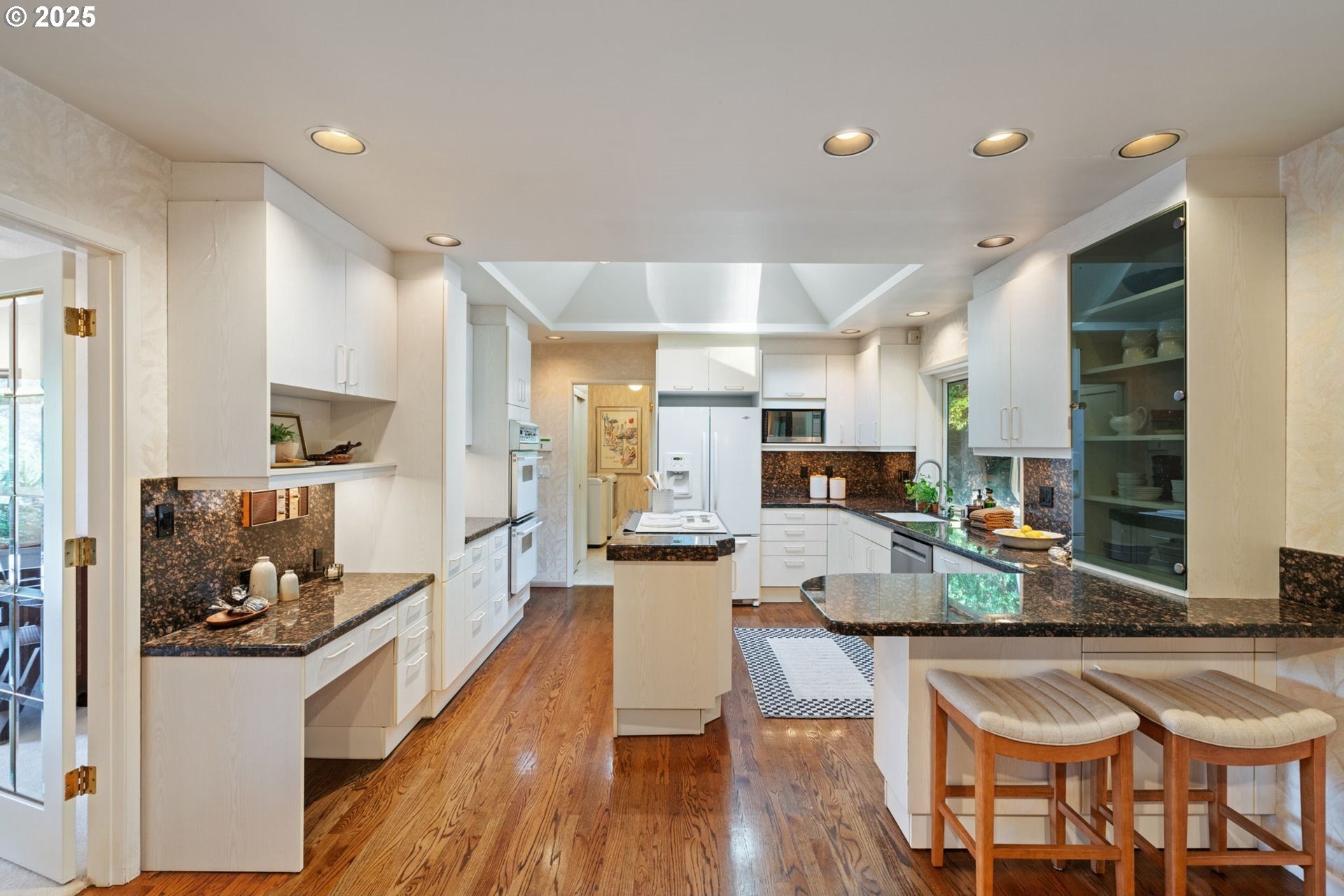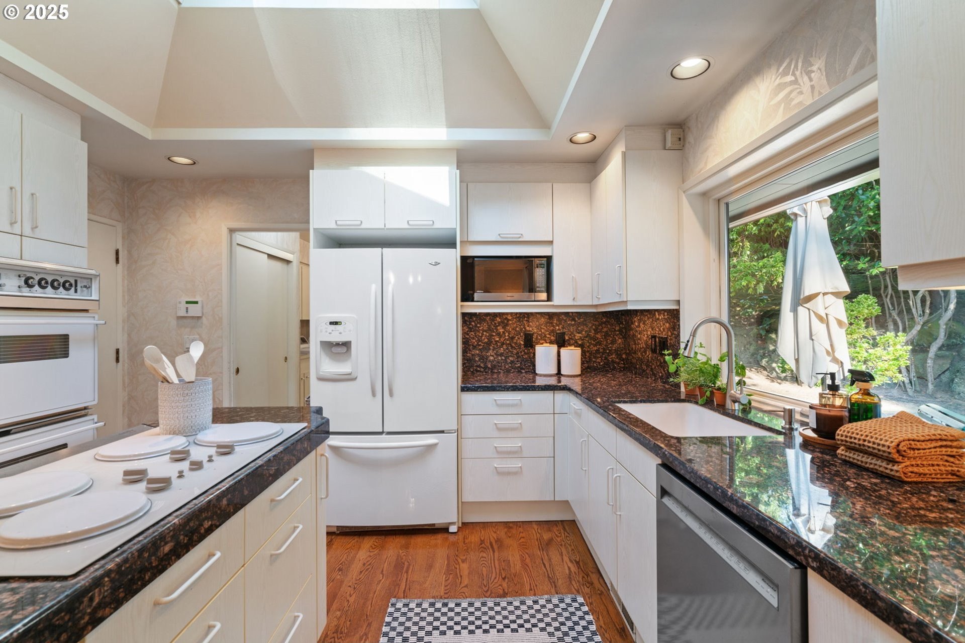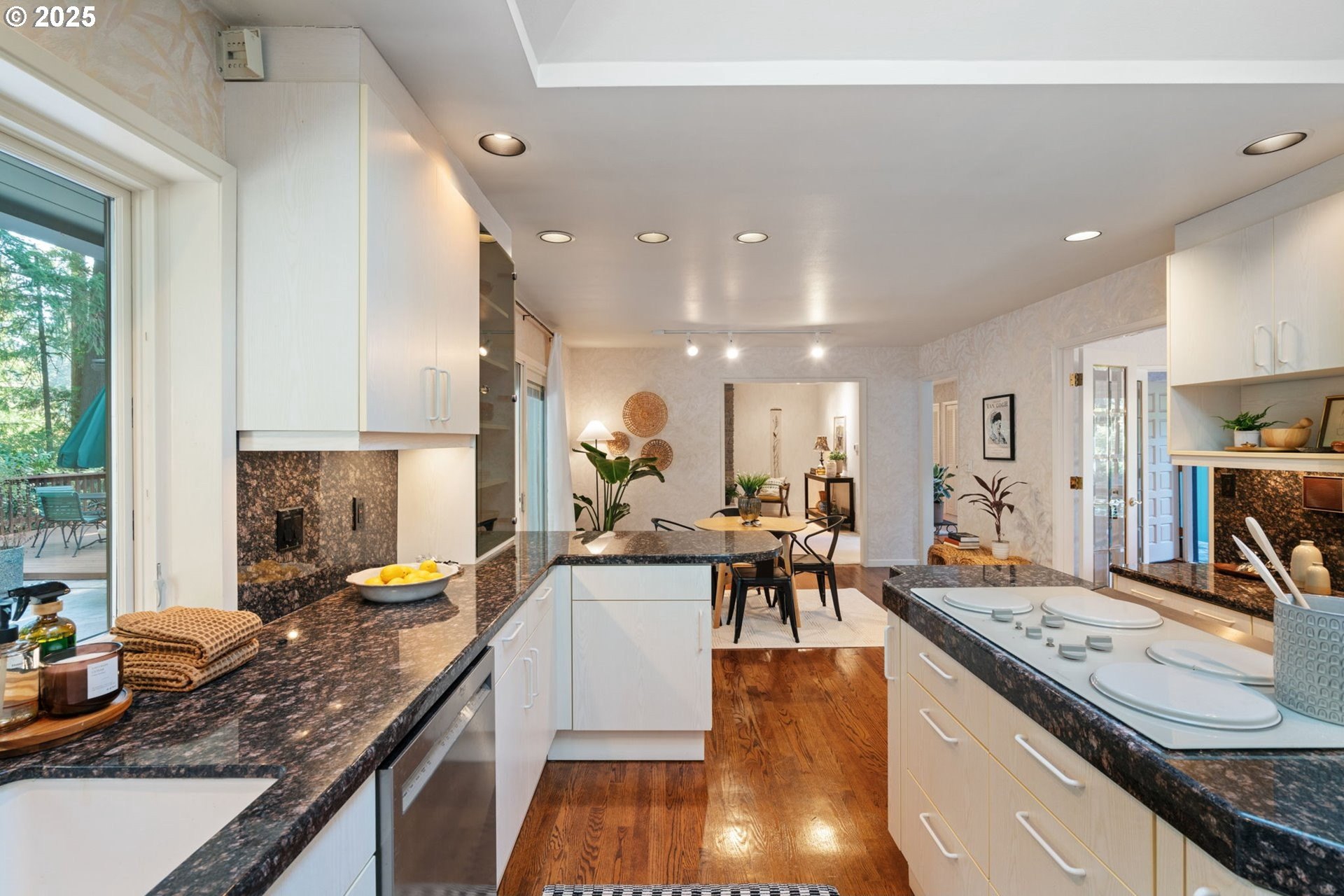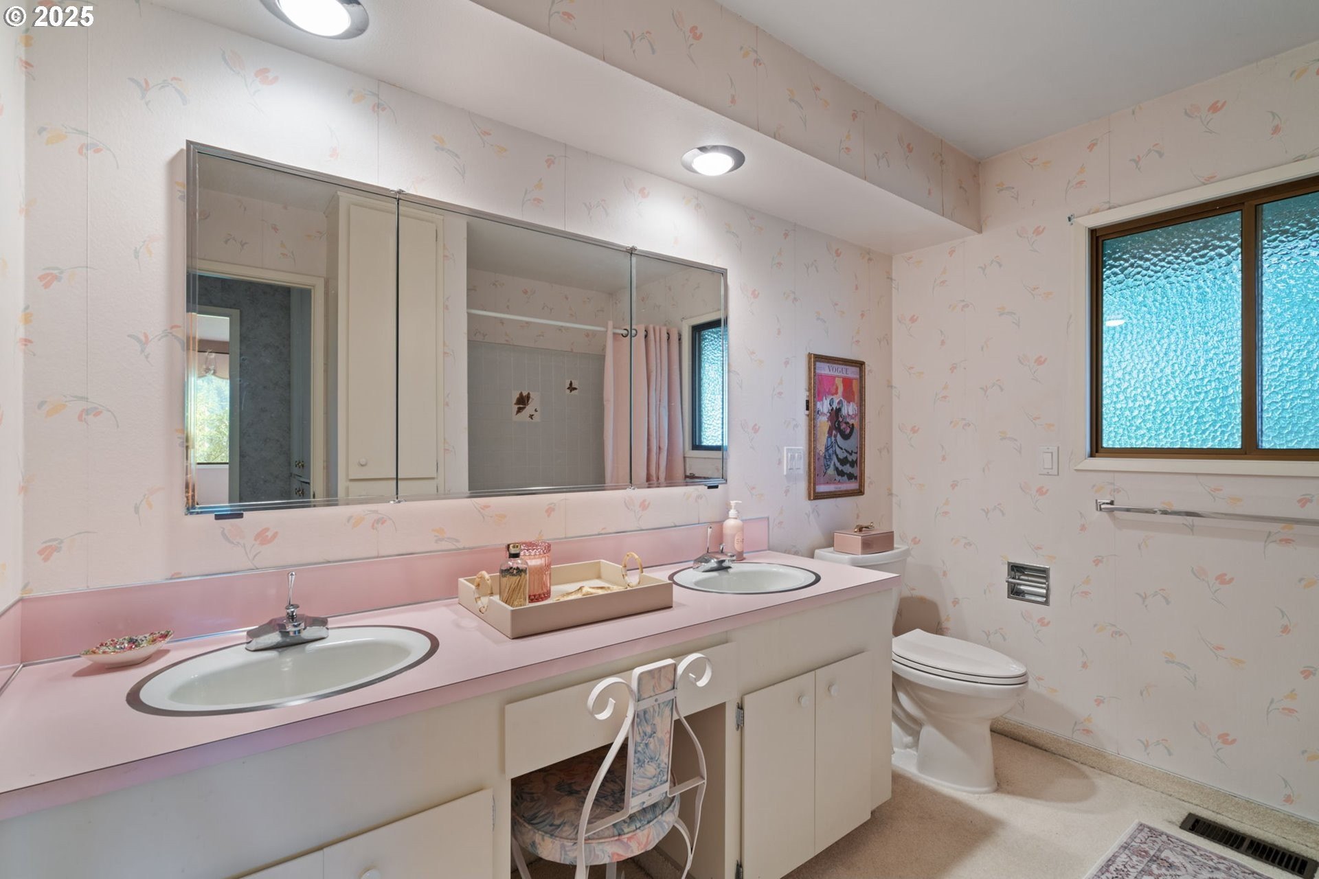 Privacy, light, and indoor–outdoor flow define 2820 SW Garden View Pl. Set at the end of a quiet cul-de-sac in Vista Hills, the home is wrapped in mature trees and lush landscaping for a calm, secluded feel.An expansive main living room with an oversized fireplace and large windows anchors the plan, while the open, light-filled kitchen serves as the daily hub. Flexible spaces include extra bedrooms for guests, a finished lower level with a bonus entertainment room and custom wet bar, plus a workshop.Out back, a generous TimberTech deck overlooks private, sprinkler-served grounds. Confidence updates include a lifetime Interlock aluminum roof (2003), PEX plumbing, and LeafGuard gutters. Hardwoods run through much of the main level, with additional hardwoods ready to be revealed under carpet in the living and formal dining rooms.Lovingly cared for by its original owners since 1966, this is Vista Hills living at its best—quiet, green, and genuinely welcoming—ready for its next chapter.** Road closed at Canyon to SW Garden View Ave (most GPS will send you this way). Take Walker Rd (by the Plaid Pantry), right on Vista Pl, right on Melnore St, right on Scenic Dr, left on Garden View Ave and finally, right on Garden View Pl. **