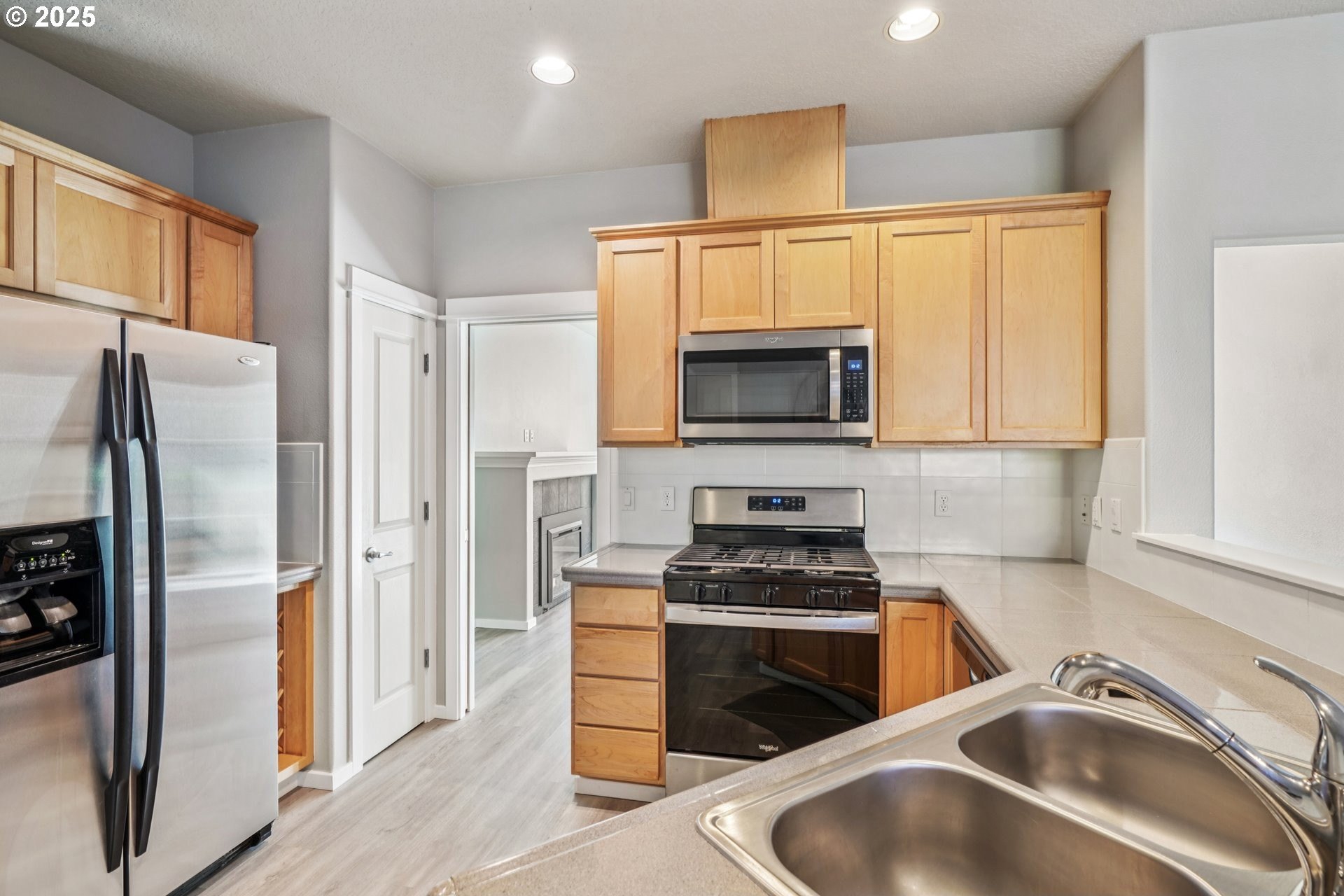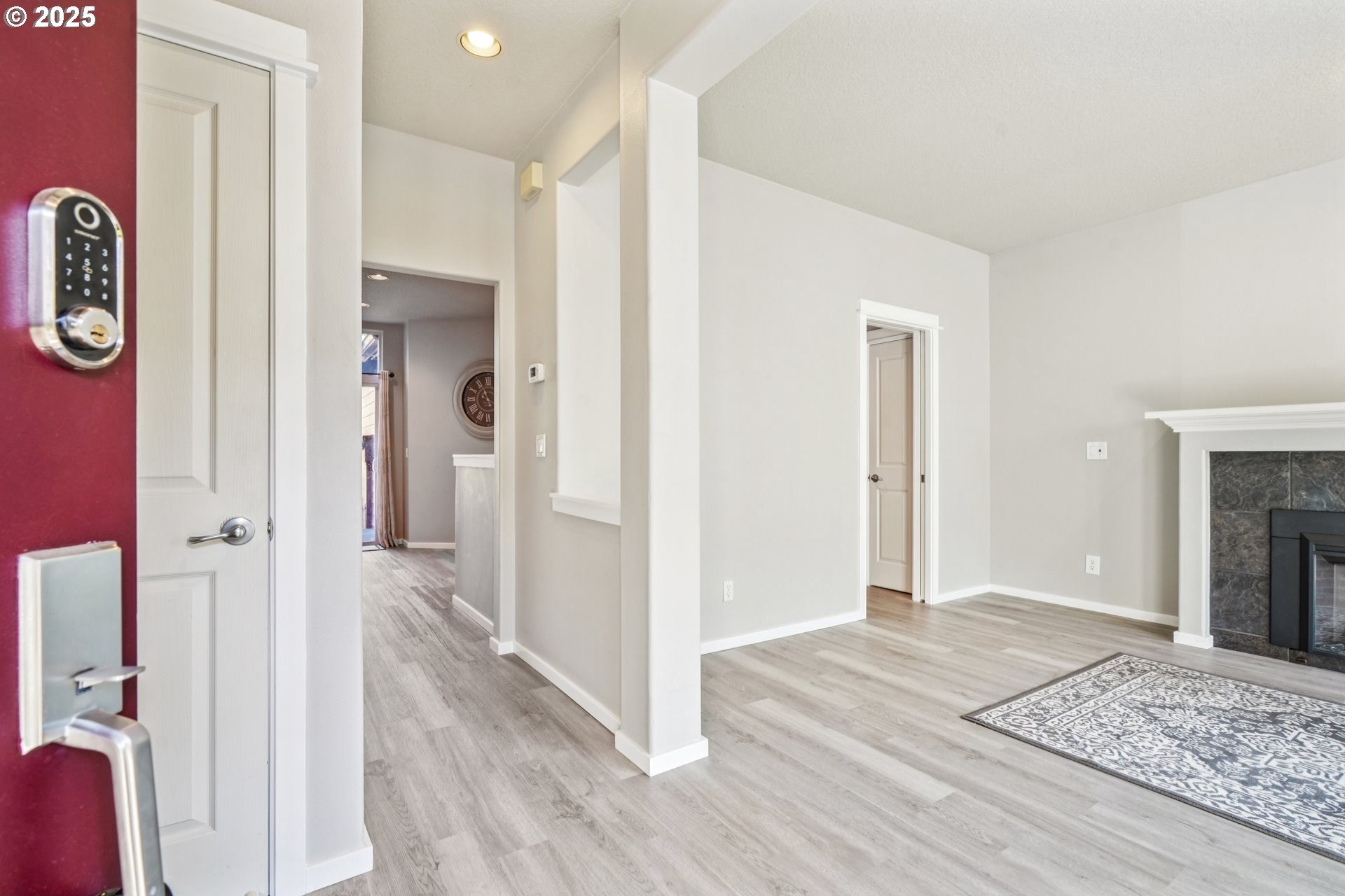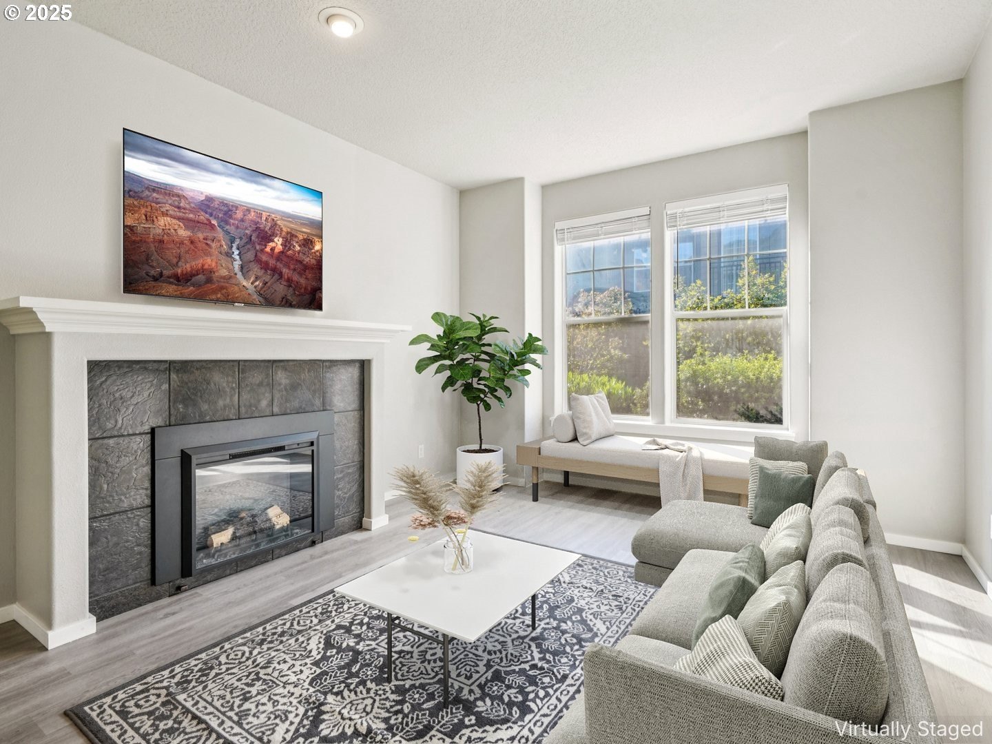 Don’t miss this beautifully maintained 2-bedroom, 2.5-bathroom townhome located in the highly sought-after Orenco community! With 1,250 sq. ft. of well-designed living space across two levels, this home offers comfort, convenience, and modern updates throughout. The main level features an open-concept layout with brand new luxury vinyl plank flooring, fresh paint, and a newly installed fireplace (March 2025), creating a warm and welcoming atmosphere. The kitchen is equipped with newly coated countertops, newer stainless steel appliances, and generous cabinet space. Upstairs, enjoy 3-year-old carpet and two spacious bedroom suites. The primary bedroom includes a walk-in closet, dual-sink vanity, and a large shower, while the second bedroom boasts its own private bath with a soaking tub/shower combo. The updated half-bath on the main level includes a stylish stand-alone vanity. Additional upgrades include a 2-year-old stackable washer and dryer, a brand new furnace (January 2025), and brand new A/C just installed for year-round comfort. Outside, relax on your private patio with low-maintenance composite decking. The oversized one-car garage provides extra storage. Located just minutes from trails, the MAX train, shopping, and dining—this move-in ready home has it all!