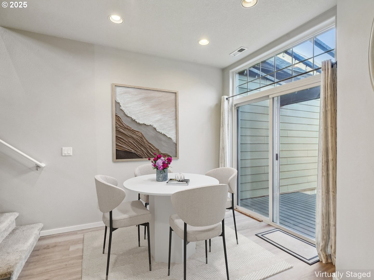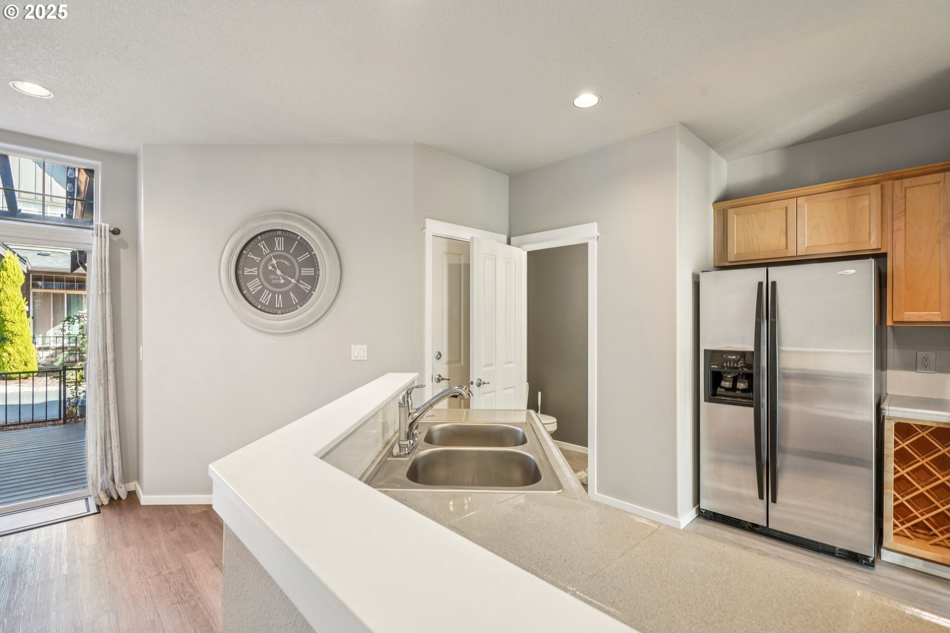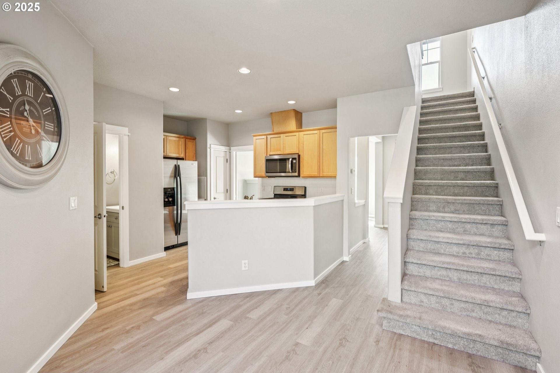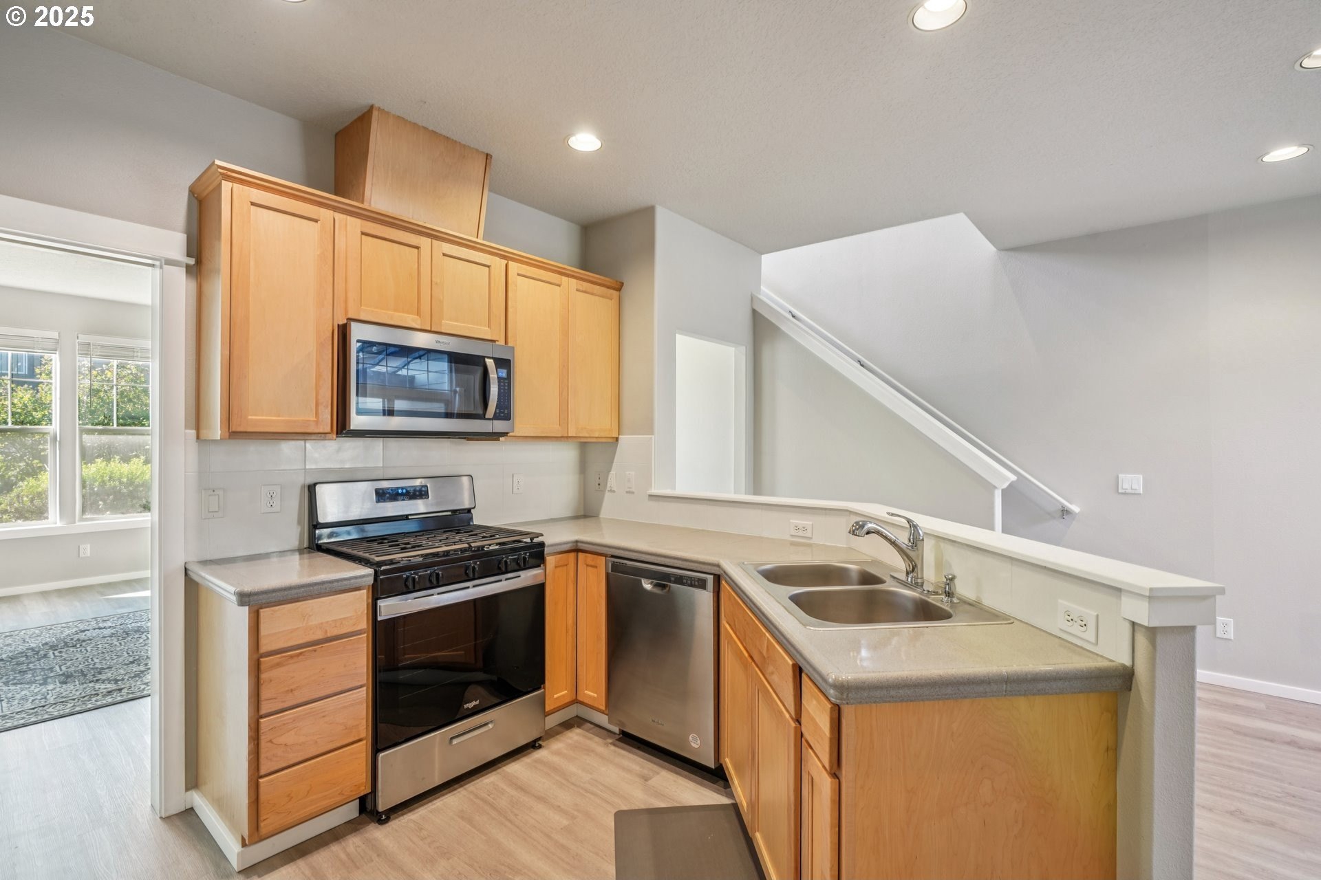 Don’t miss this beautifully maintained 2-bedroom, 2.5-bathroom townhome located in the highly sought-after Orenco community! With 1,250 sq. ft. of well-designed living space across two levels, this home offers comfort, convenience, and modern updates throughout. The main level features an open-concept layout with brand new luxury vinyl plank flooring, fresh paint, and a newly installed fireplace (March 2025), creating a warm and welcoming atmosphere. The kitchen is equipped with newly coated countertops, newer stainless steel appliances, and generous cabinet space. Upstairs, enjoy 3-year-old carpet and two spacious bedroom suites. The primary bedroom includes a walk-in closet, dual-sink vanity, and a large shower, while the second bedroom boasts its own private bath with a soaking tub/shower combo. The updated half-bath on the main level includes a stylish stand-alone vanity. Additional upgrades include a 2-year-old stackable washer and dryer, a brand new furnace (January 2025), and brand new A/C just installed for year-round comfort. Outside, relax on your private patio with low-maintenance composite decking. The oversized one-car garage provides extra storage. Located just minutes from trails, the MAX train, shopping, and dining—this move-in ready home has it all!