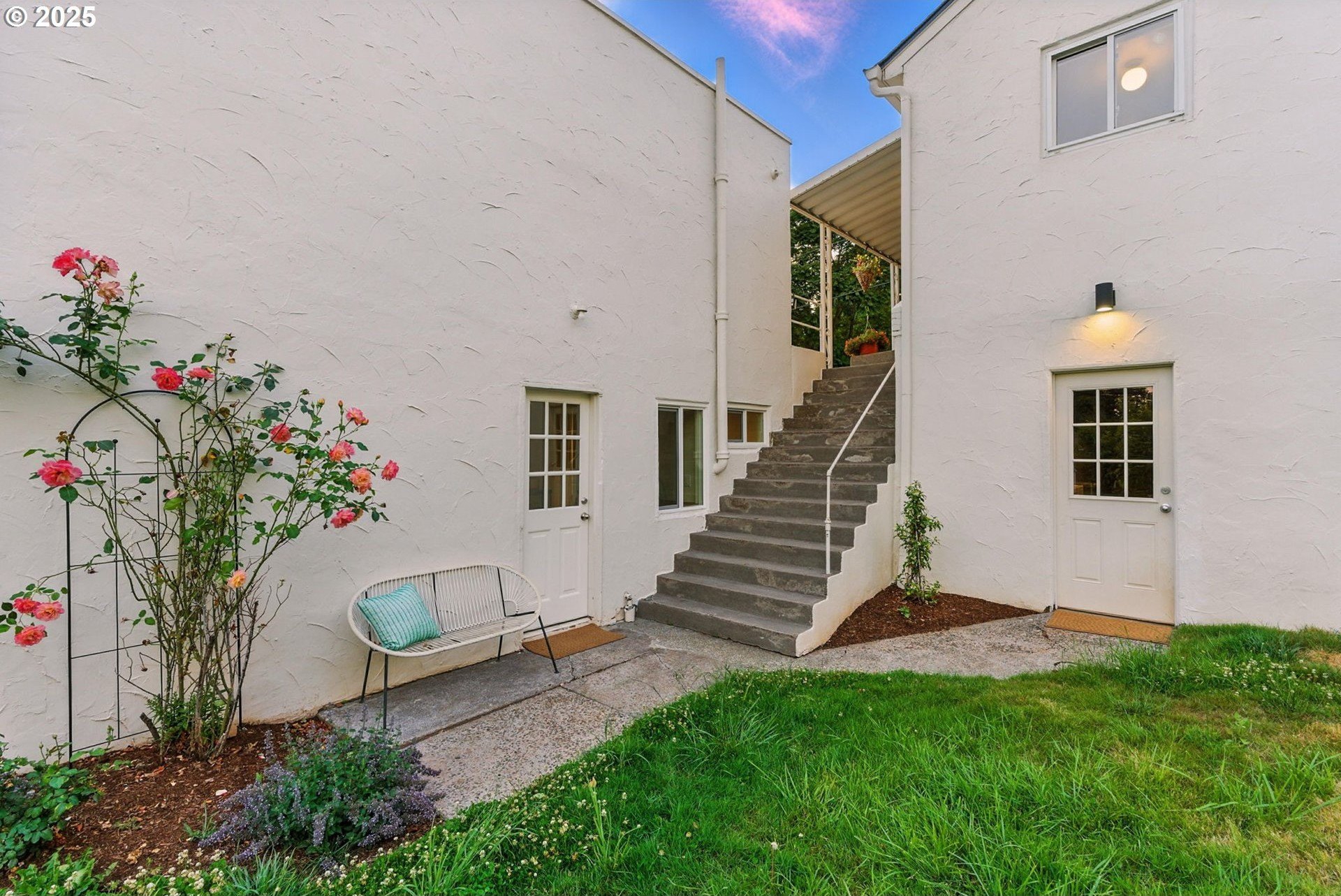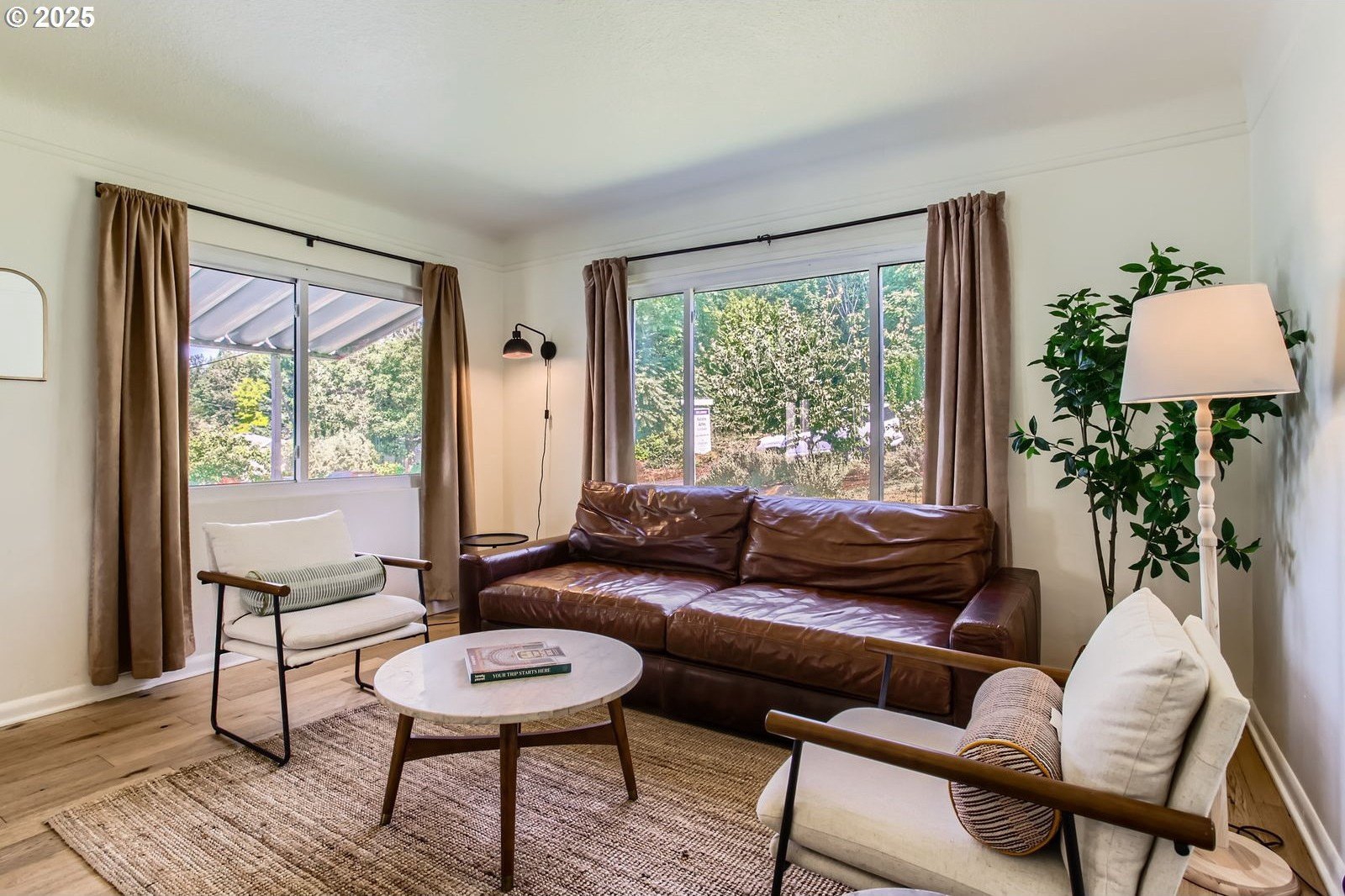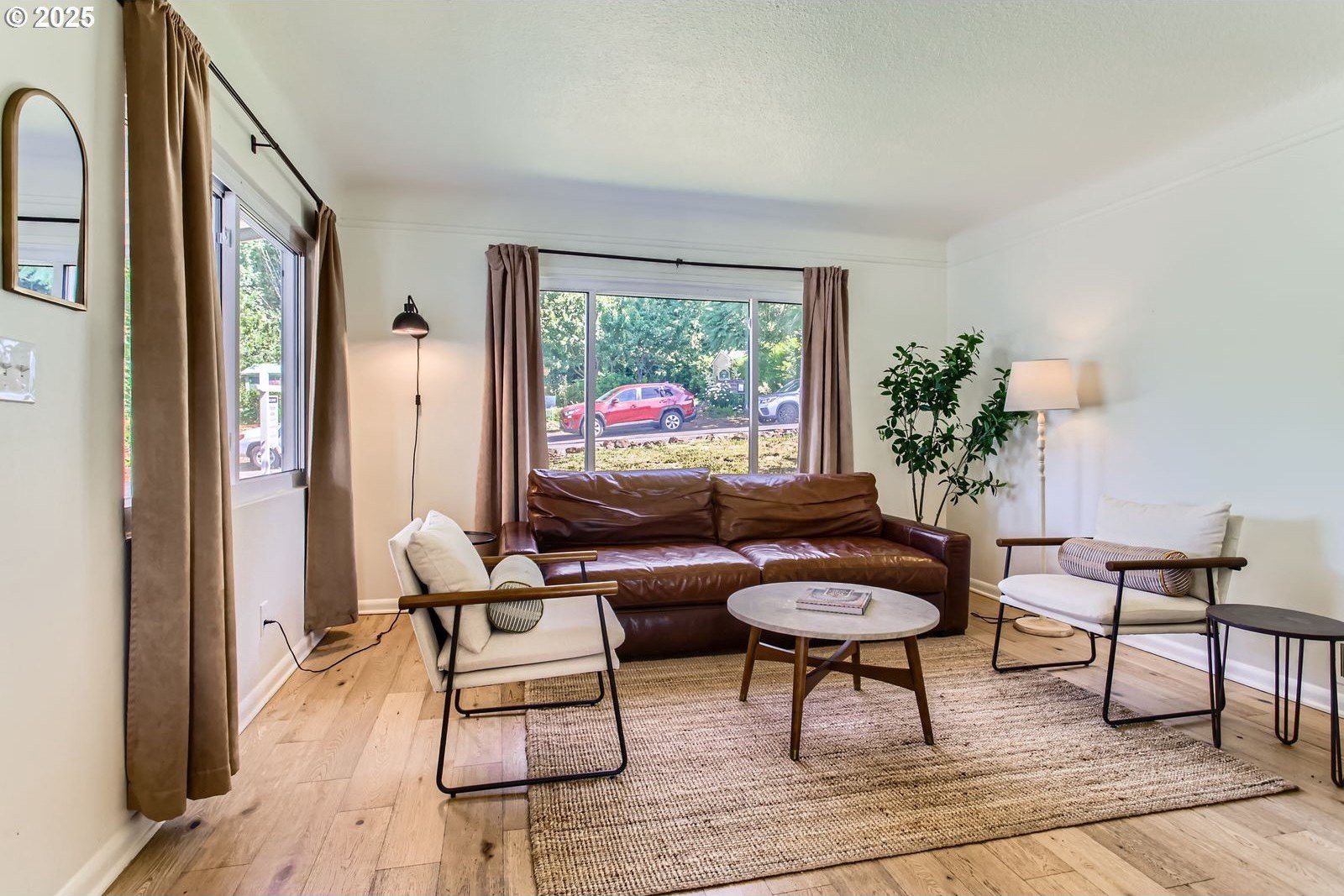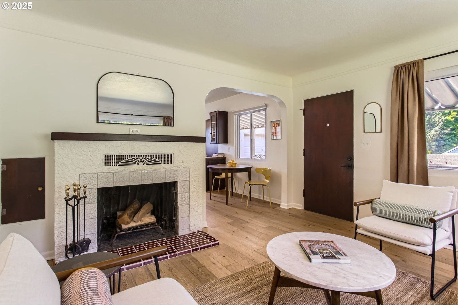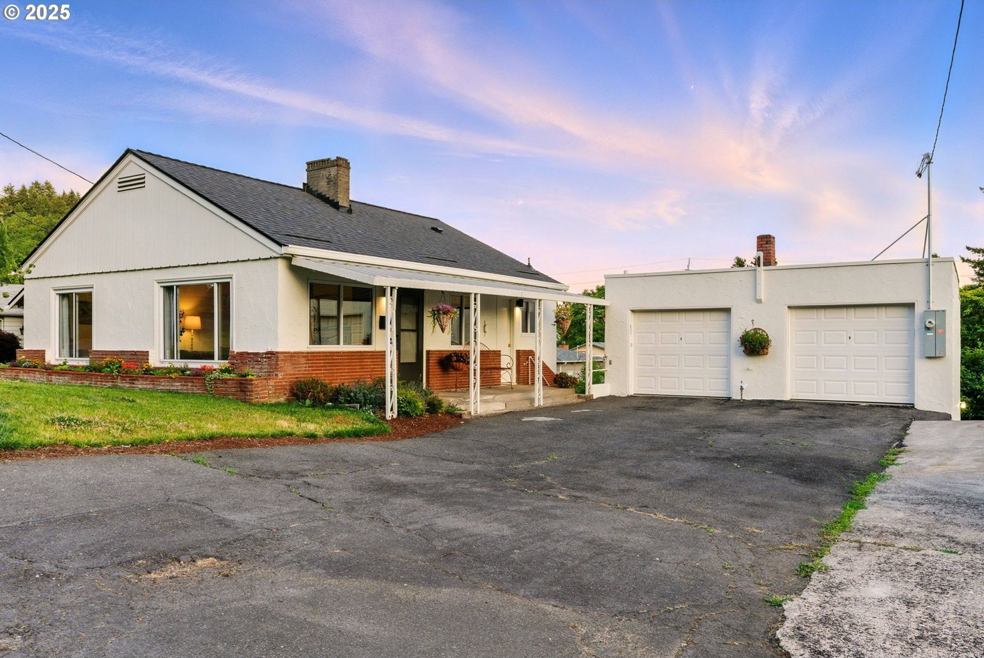 Perched in a peaceful setting with sweeping views of Rocky Butte, this charming bungalow/ranch offers remarkable flexibility with TWO SEPARATE UNITS,for shared living or instant income potential. Restored to its original character in 2022,the main home features hardwood floors, an updated kitchen w/quartz countertops,farmhouse sink, handmade tile, & Miele dishwasher. The living room centers around a cozy wood-burning fireplace,perfect for quiet evenings or entertaining. Charming archways and spacious bedrooms. The lower level provides flexibility to grow with your needs, featuring a daylight basement with a half bath and ample space to create a third bedroom, guest suite, or even a third separate living unit. All new in 2022: Heat pump furnace, Central Air. A separate apartment (fully renovated in 2025) original 2BD/1BA apartment complete with its own electrical meter—makes this an ideal standalone unit. It features brand-new casement windows, new plumbing, new electrical, new heat,polished concrete floors, new kitchen cabinets with walnut counters, a vintage range, new water heater, and new washer/dryer hookups. All brand new updates. Enthusiasts of all kinds will appreciate the oversized two-car garage, ideal for use as a studio, workshop, storage, or more, with two brand new garage doors and openers (2024). The large lot opens up endless options: subdivide (buyer to verify), create urban garden, build additional outbuildings or dwellings by exploring further development. Just blocks from the People’s Courts, local restaurants, new food cart pods, as well as ongoing streetscape improvements on 82nd. Across from a community garden and surrounded by great neighbors, frequent dog walkers headed to Rocky Butte and the ideal spot to enjoy sunsets. [Home Energy Score = 2. HES Report at https://rpt.greenbuildingregistry.com/hes/OR10197146]