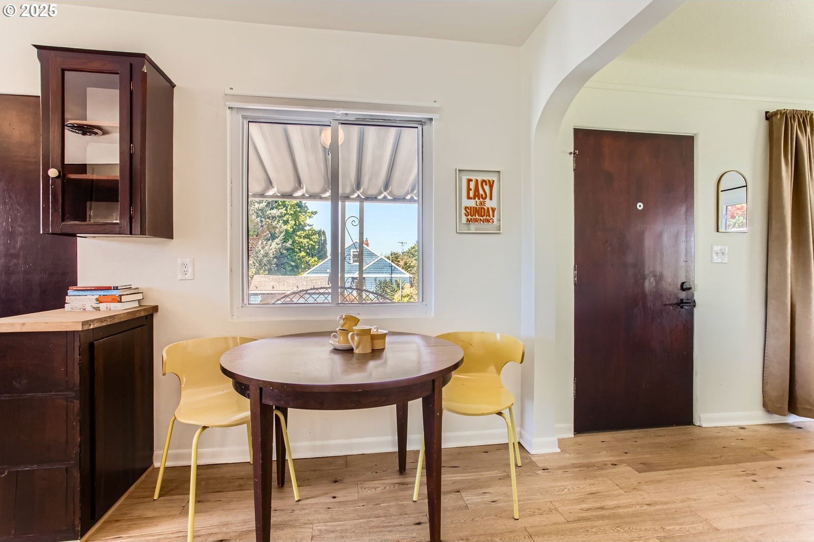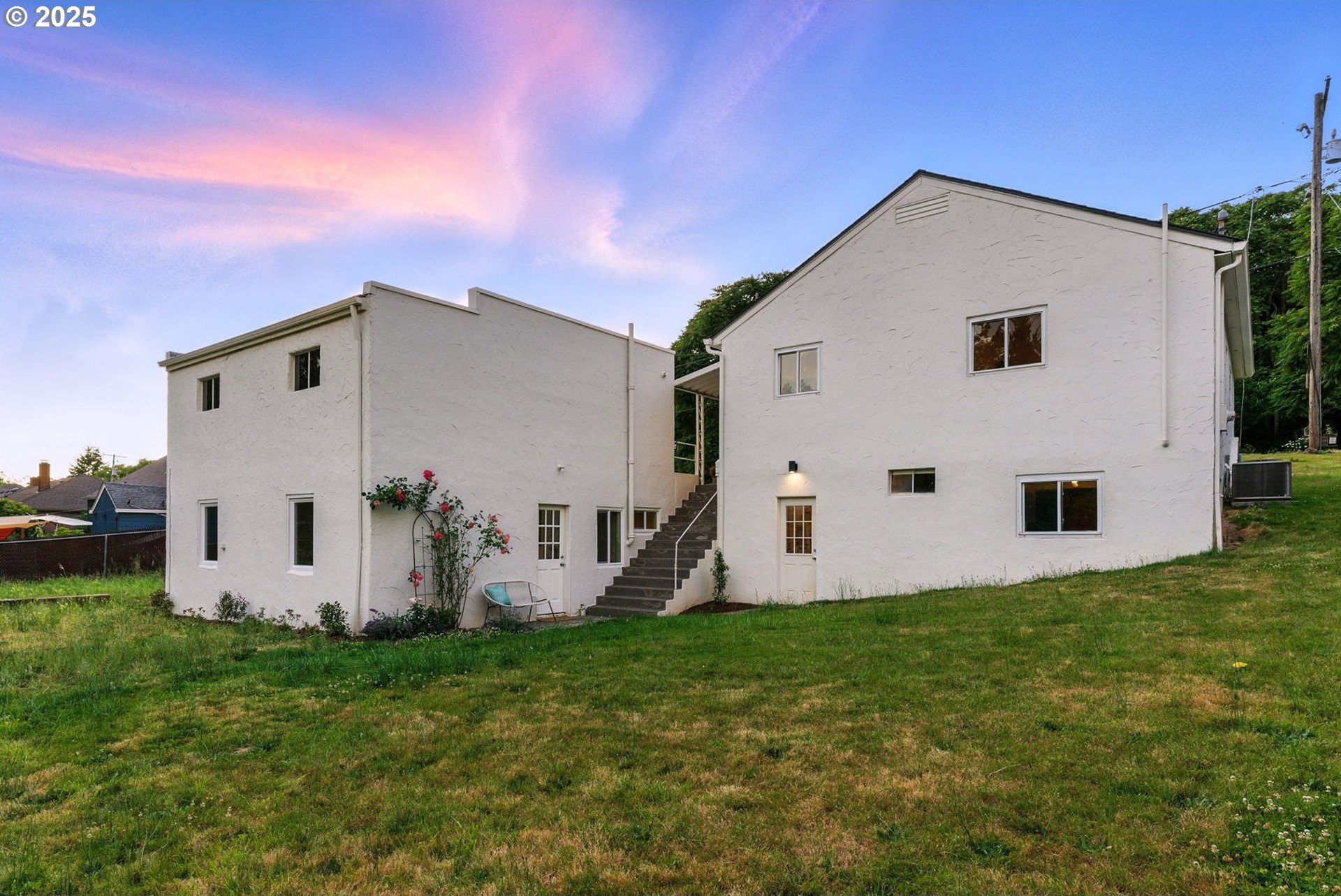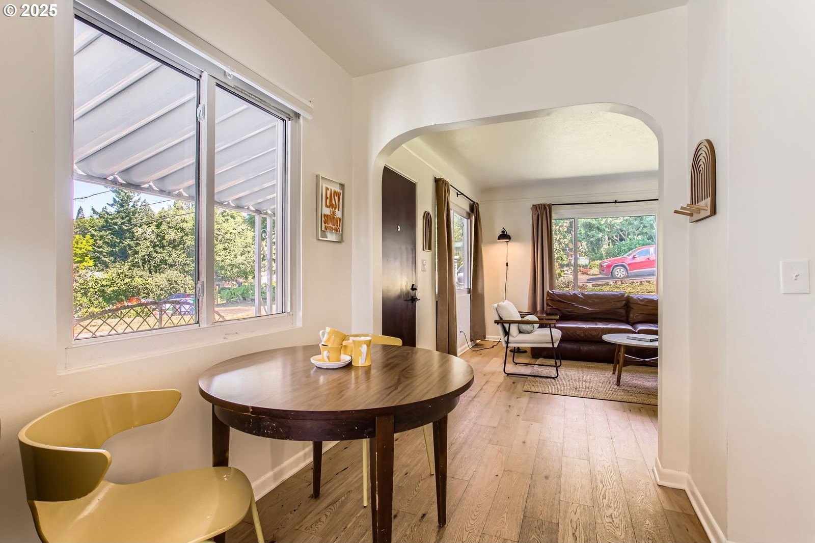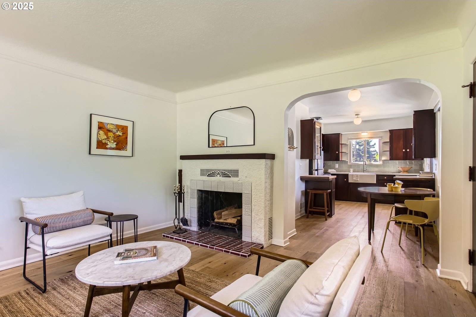 Perched in a peaceful setting with sweeping views of Rocky Butte, this charming bungalow/ranch offers remarkable flexibility with TWO SEPARATE UNITS,for shared living or instant income potential. Restored to its original character in 2022,the main home features hardwood floors, an updated kitchen w/quartz countertops,farmhouse sink, handmade tile, & Miele dishwasher. The living room centers around a cozy wood-burning fireplace,perfect for quiet evenings or entertaining. Charming archways and spacious bedrooms. The lower level provides flexibility to grow with your needs, featuring a daylight basement with a half bath and ample space to create a third bedroom, guest suite, or even a third separate living unit. All new in 2022: Heat pump furnace, Central Air. A separate apartment (fully renovated in 2025) original 2BD/1BA apartment complete with its own electrical meter—makes this an ideal standalone unit. It features brand-new casement windows, new plumbing, new electrical, new heat,polished concrete floors, new kitchen cabinets with walnut counters, a vintage range, new water heater, and new washer/dryer hookups. All brand new updates. Enthusiasts of all kinds will appreciate the oversized two-car garage, ideal for use as a studio, workshop, storage, or more, with two brand new garage doors and openers (2024). The large lot opens up endless options: subdivide (buyer to verify), create urban garden, build additional outbuildings or dwellings by exploring further development. Just blocks from the People’s Courts, local restaurants, new food cart pods, as well as ongoing streetscape improvements on 82nd. Across from a community garden and surrounded by great neighbors, frequent dog walkers headed to Rocky Butte and the ideal spot to enjoy sunsets. [Home Energy Score = 2. HES Report at https://rpt.greenbuildingregistry.com/hes/OR10197146]