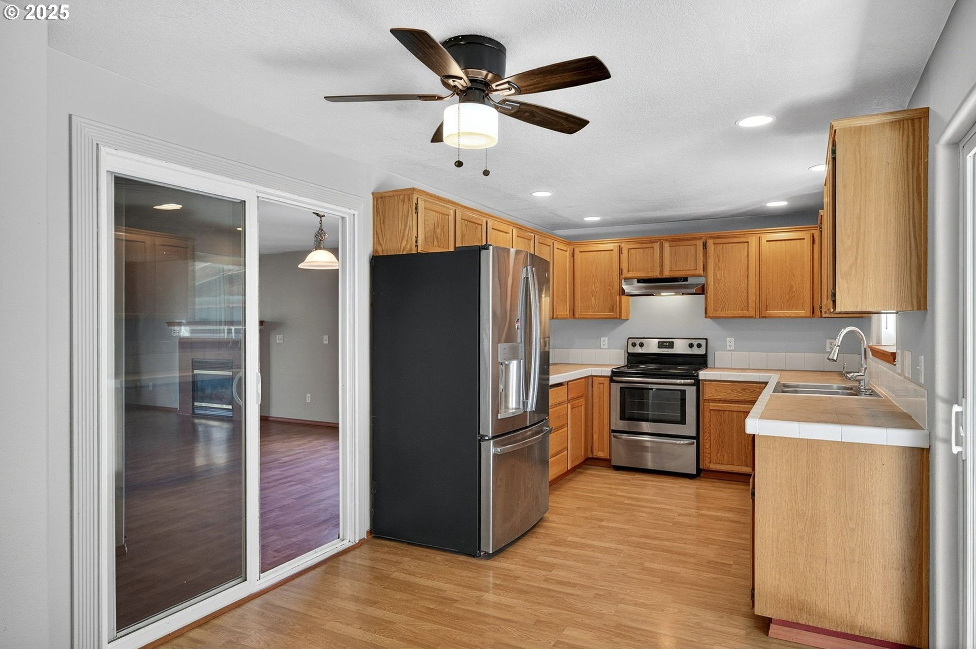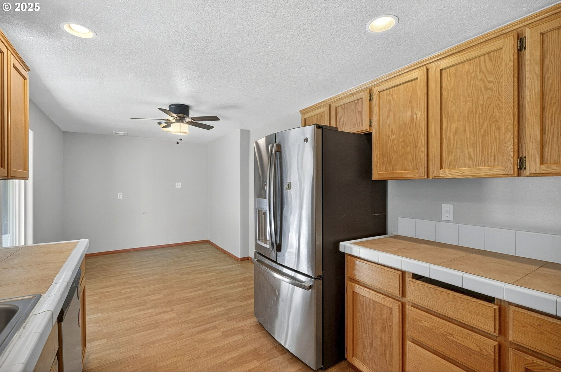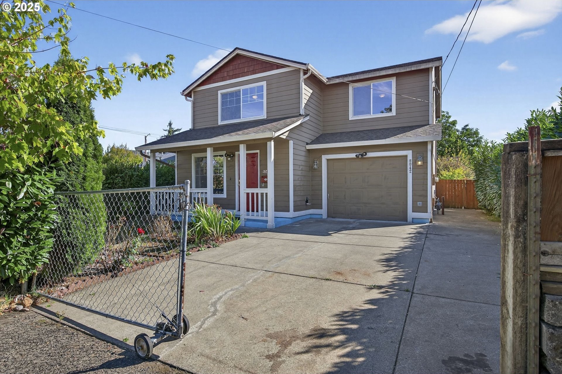 Welcome to this inviting 4-bedroom, 2.5-bathroom home located in the desirable Brentwood-Darlington neighborhood. Built in 2004 by Schumacher Homes, this residence has been recently refreshed with new carpet and fresh interior paint, and features a new roof (2023) and new AC (2021), offering a thoughtful and open floor plan with high ceilings that create a bright and spacious feel.Step inside and discover a comfortable living room featuring a cozy gas fireplace, perfect for Portland's cooler evenings. The kitchen boasts oak cabinets and tile countertops, providing a functional space for both everyday meals and entertaining. With both a main and upper level, this home provides a flexible layout for various needs.The property includes a one-car attached garage and a level, fenced backyard with an enclosed patio—an ideal space for outdoor relaxation, gardening, or play. This is a fantastic opportunity for a first-time homebuyer or as a rental investment, offering easy access to nearby parks and schools. [Home Energy Score = 5. HES Report at https://rpt.greenbuildingregistry.com/hes/OR10213771]