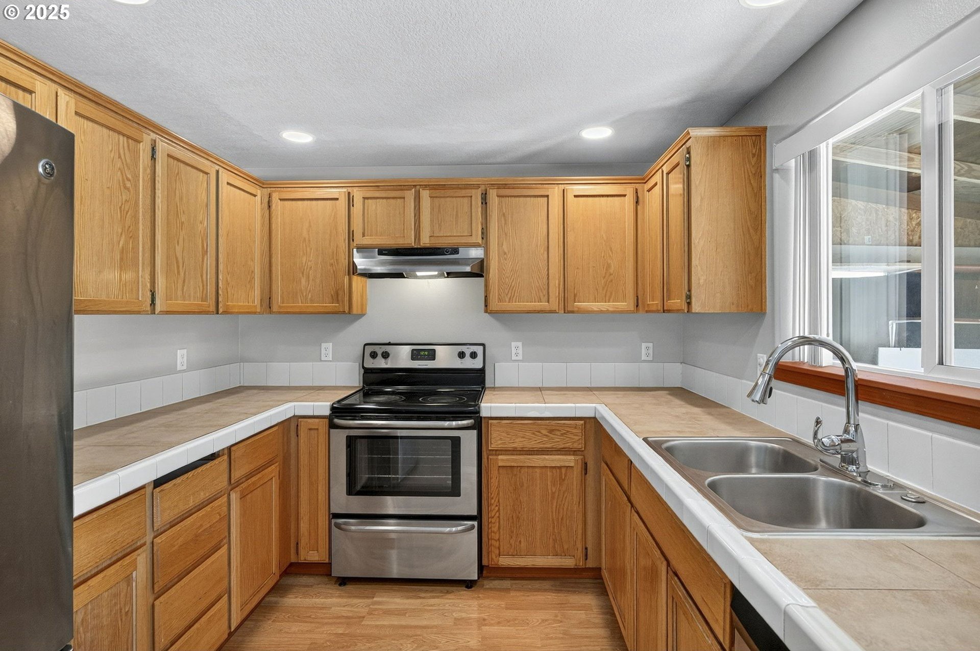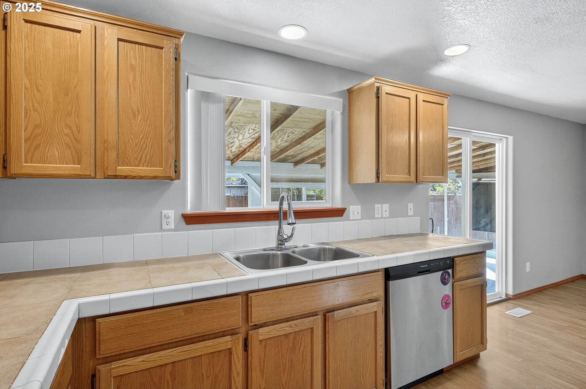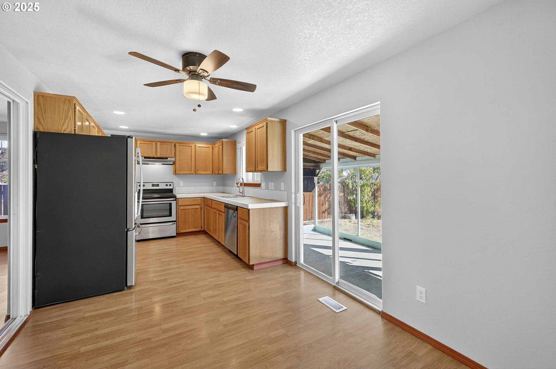 Welcome to this inviting 4-bedroom, 2.5-bathroom home located in the desirable Brentwood-Darlington neighborhood. Built in 2004 by Schumacher Homes, this residence has been recently refreshed with new carpet and fresh interior paint, and features a new roof (2023) and new AC (2021), offering a thoughtful and open floor plan with high ceilings that create a bright and spacious feel.Step inside and discover a comfortable living room featuring a cozy gas fireplace, perfect for Portland's cooler evenings. The kitchen boasts oak cabinets and tile countertops, providing a functional space for both everyday meals and entertaining. With both a main and upper level, this home provides a flexible layout for various needs.The property includes a one-car attached garage and a level, fenced backyard with an enclosed patio—an ideal space for outdoor relaxation, gardening, or play. This is a fantastic opportunity for a first-time homebuyer or as a rental investment, offering easy access to nearby parks and schools. [Home Energy Score = 5. HES Report at https://rpt.greenbuildingregistry.com/hes/OR10213771]