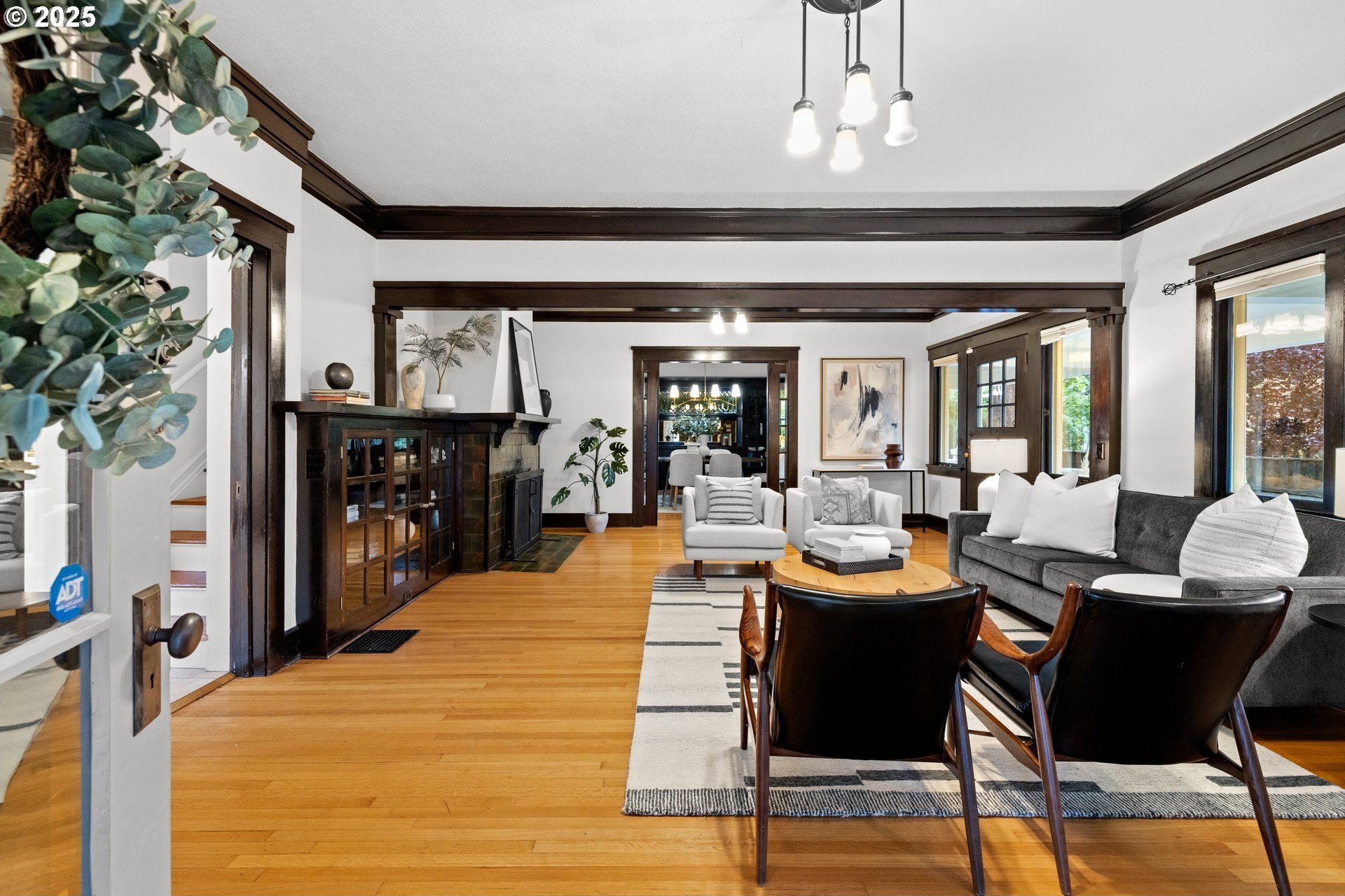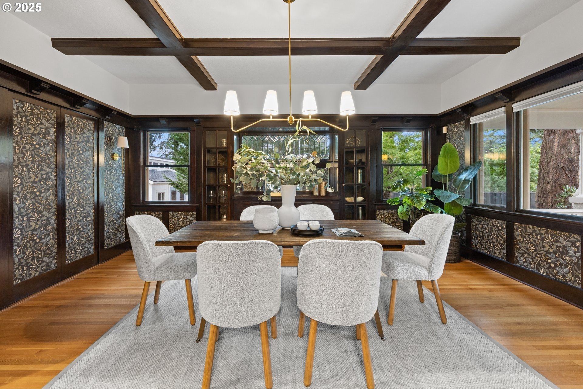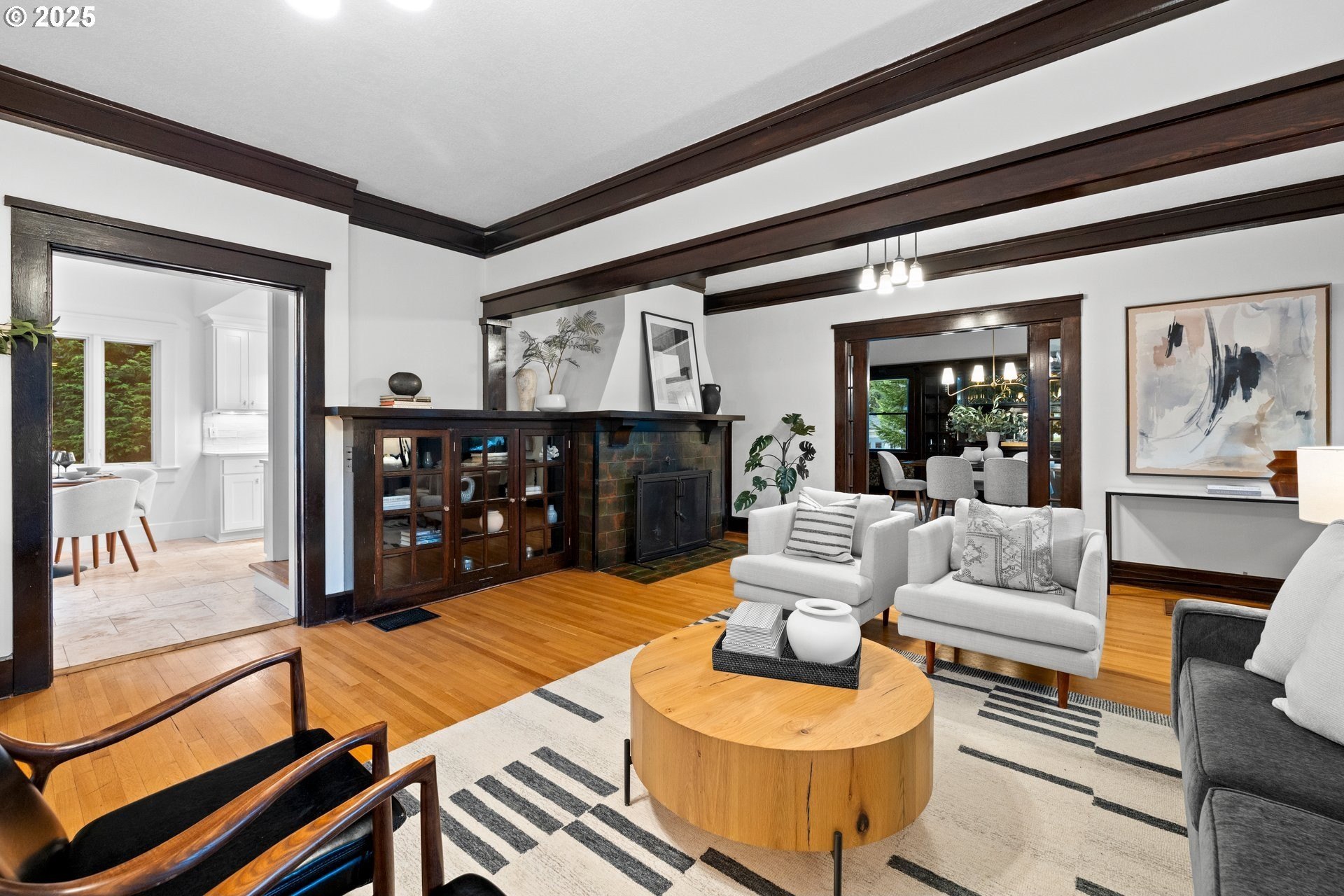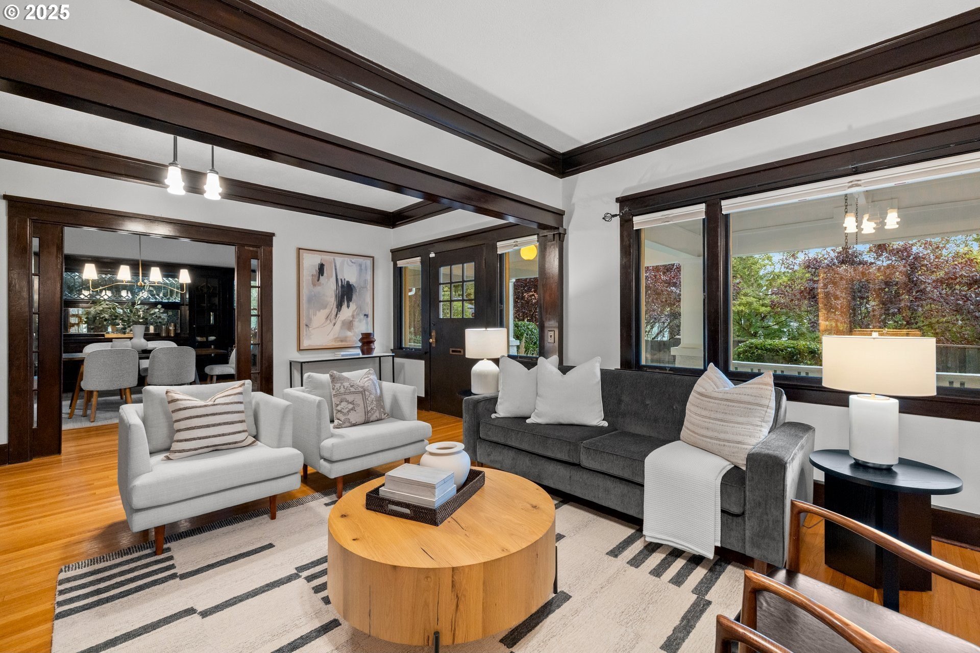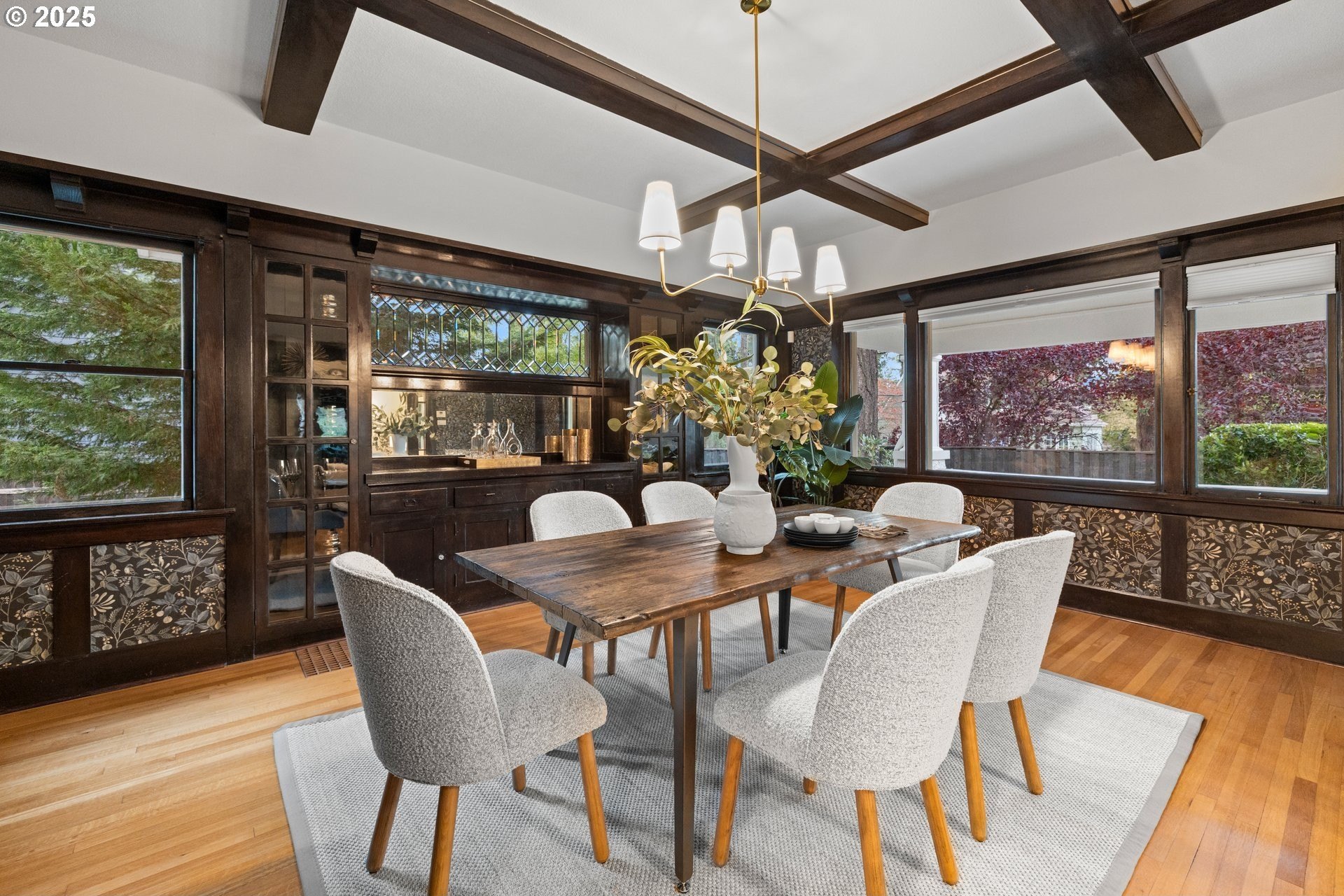 Classic 1910 Alameda Craftsman set on a rare 9,276 SF corner lot, offering timeless character and modern versatility. This 3,976 SF Arts & Crafts beauty features a permitted ADU—ideal for multi generational living, rental income, or extended guest space. Inside, the home’s craftsmanship shines with exposed beams, leaded glass windows, built-in bookshelves, and original hardwood floors. Large, light-filled rooms create a welcoming flow, perfect for entertaining and everyday living. The spacious living room centers around a classic fireplace, while the formal dining room showcases period details and built-ins. The kitchen blends modern updates with vintage charm, providing ample counter space, storage, and room for gathering. With five bedrooms and four bathrooms, there’s space for everyone—whether you need multiple work-from-home offices, guest rooms, or a private retreat. The primary suite offers comfort and character with vaulted ceilings, while additional bedrooms provide flexibility for family or visitors. The finished lower level and ADU expand your options even further, with space for a family room, home office, gym, guest quarters, or income-producing unit. Outside, enjoy a large corner lot with mature landscaping and outdoor areas perfect for gardening, play, or summer evenings with friends. A free standing shed adds storage and convenience and two driveways allow space for additional parking or RV parking. Situated in one of NE Portland’s most desirable neighborhoods, this home is close to Wilshire Park, Beaumont Village shops, top rated schools, and local dining. With its perfect balance of history, space, and versatility, this Alameda Craftsman is truly NE Portland’s best value. [Home Energy Score = 3. HES Report at https://rpt.greenbuildingregistry.com/hes/OR10182651]