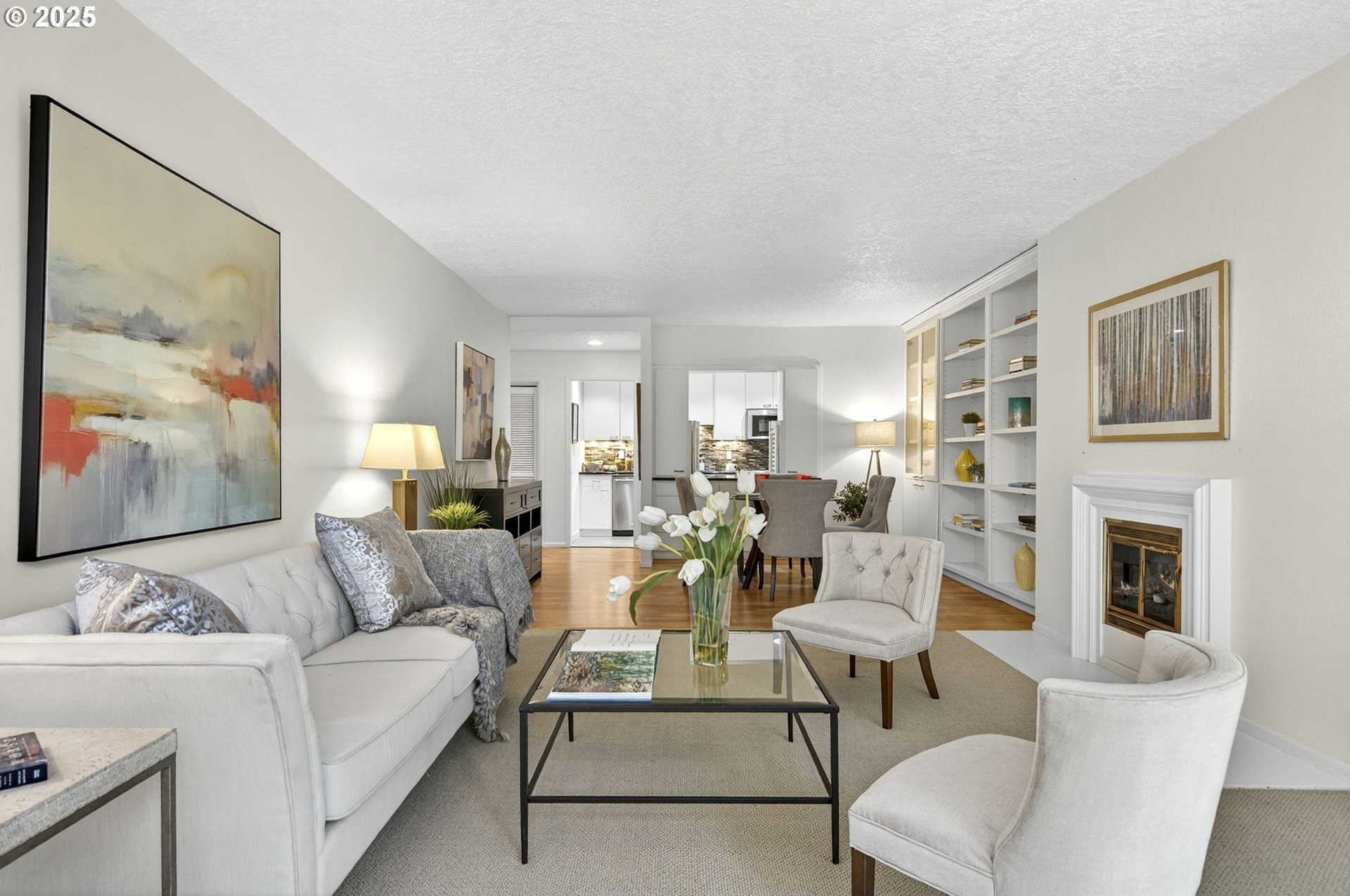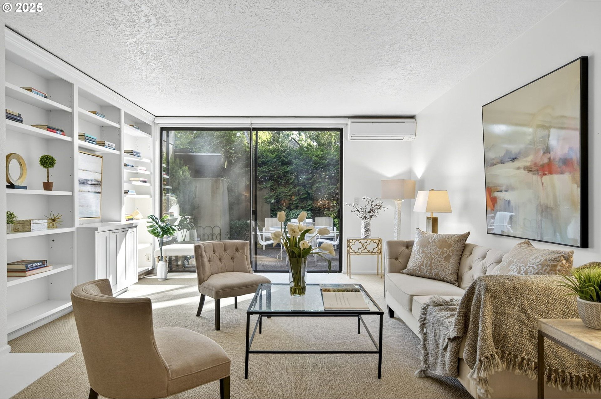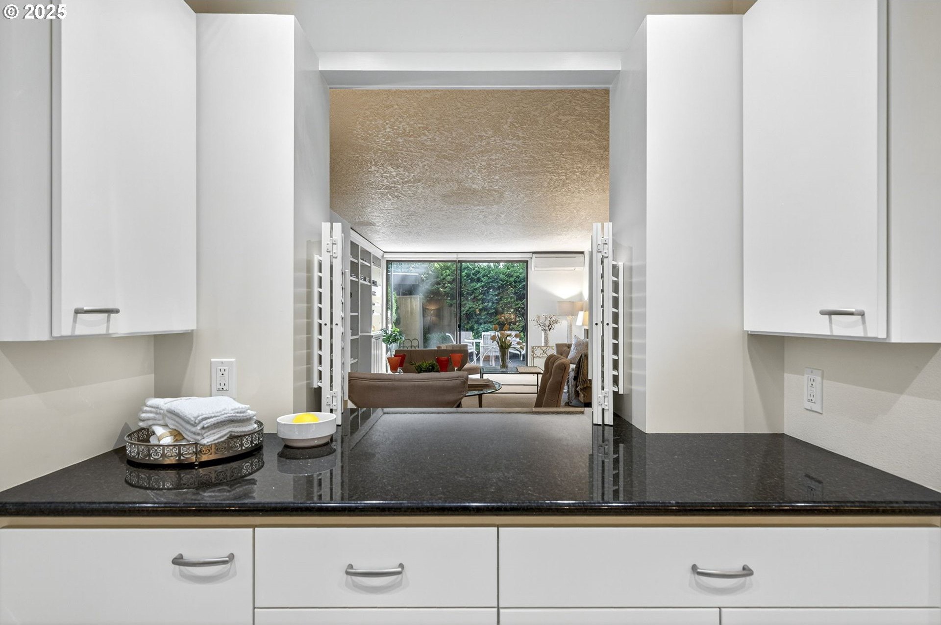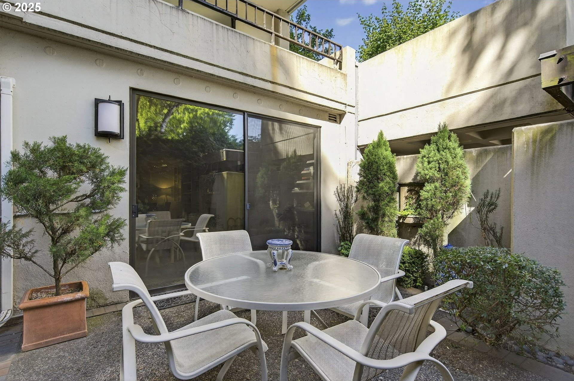 Lovely remodeled rare Garden unit. Open floor plan with dining living room with high ceilings that opens to large private patio and garden space. Wonderful for entertaining and enjoying a beautiful outdoor space. Living room and dining with wall of built-ins and electric fireplace. Kitchen has been completely remodeled with custom cabinets, granite counter tops, stainless steel appliances and fun glass tile back splash. Bedroom with ensuite, remodeled bath with walk-in shower. Bedroom has double closets, wall of built-ins and beatiful view of the garden. Laundry room with small office space. Parking storage and condo are all on the same level so convenient. Amenities include 24/7 Concierge, on-Site property management, indoor saltwater pool and Jaccuzzi, outdoor pool, 2 workout rooms with men and women's locker rooms with saunas. Two community rooms with kitchens that open to large patios great for fun summer parties. Bike and Wine Storage. 53 Guest Parking Spaces unheard of downtown. Pet Friendly. MAX and bus line border the property and the street car is 1 block north. Stroll the Halprin Park Sequence to the Keller Auditorium, coffee shops, restaurants and Riverplace Esplanade. Rental cap not met.