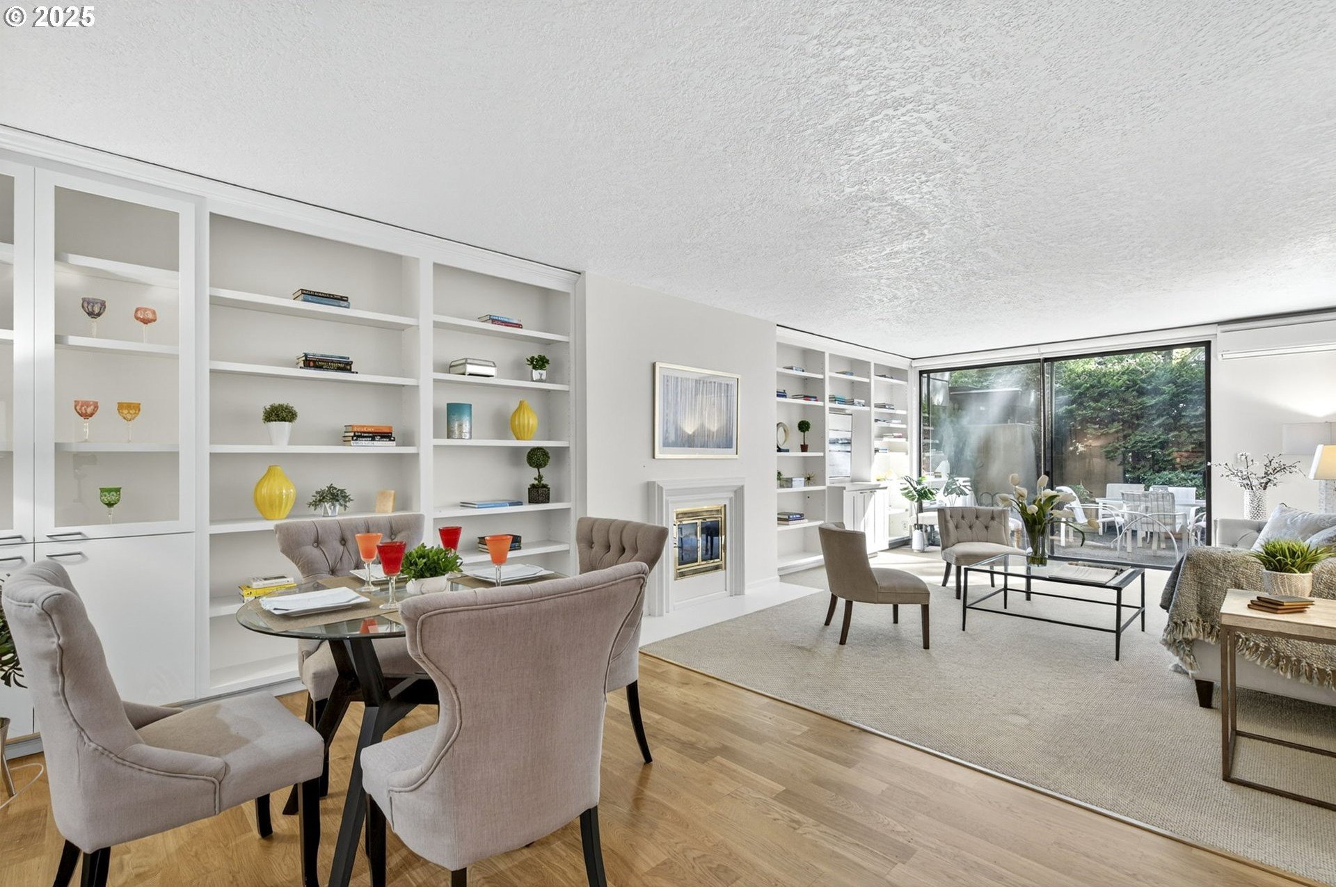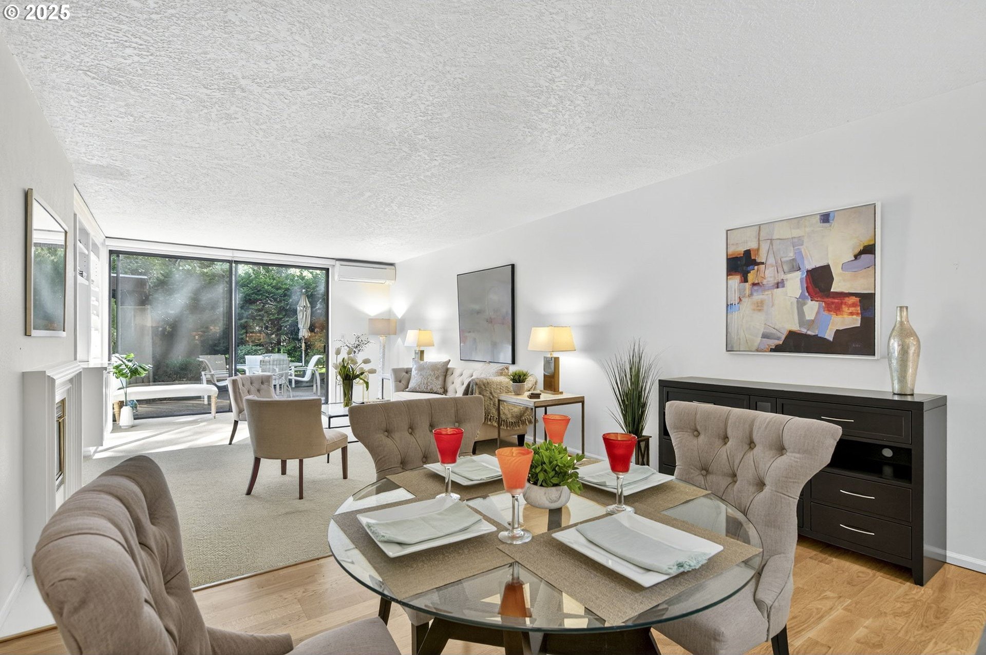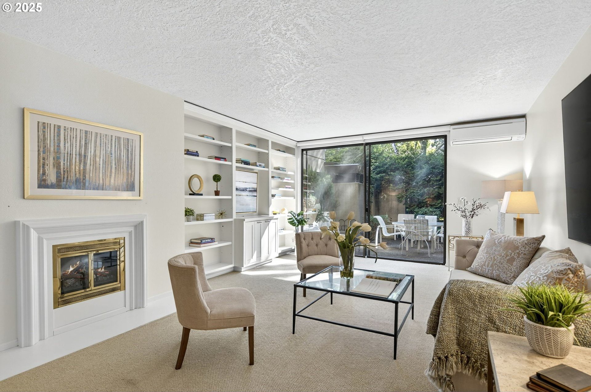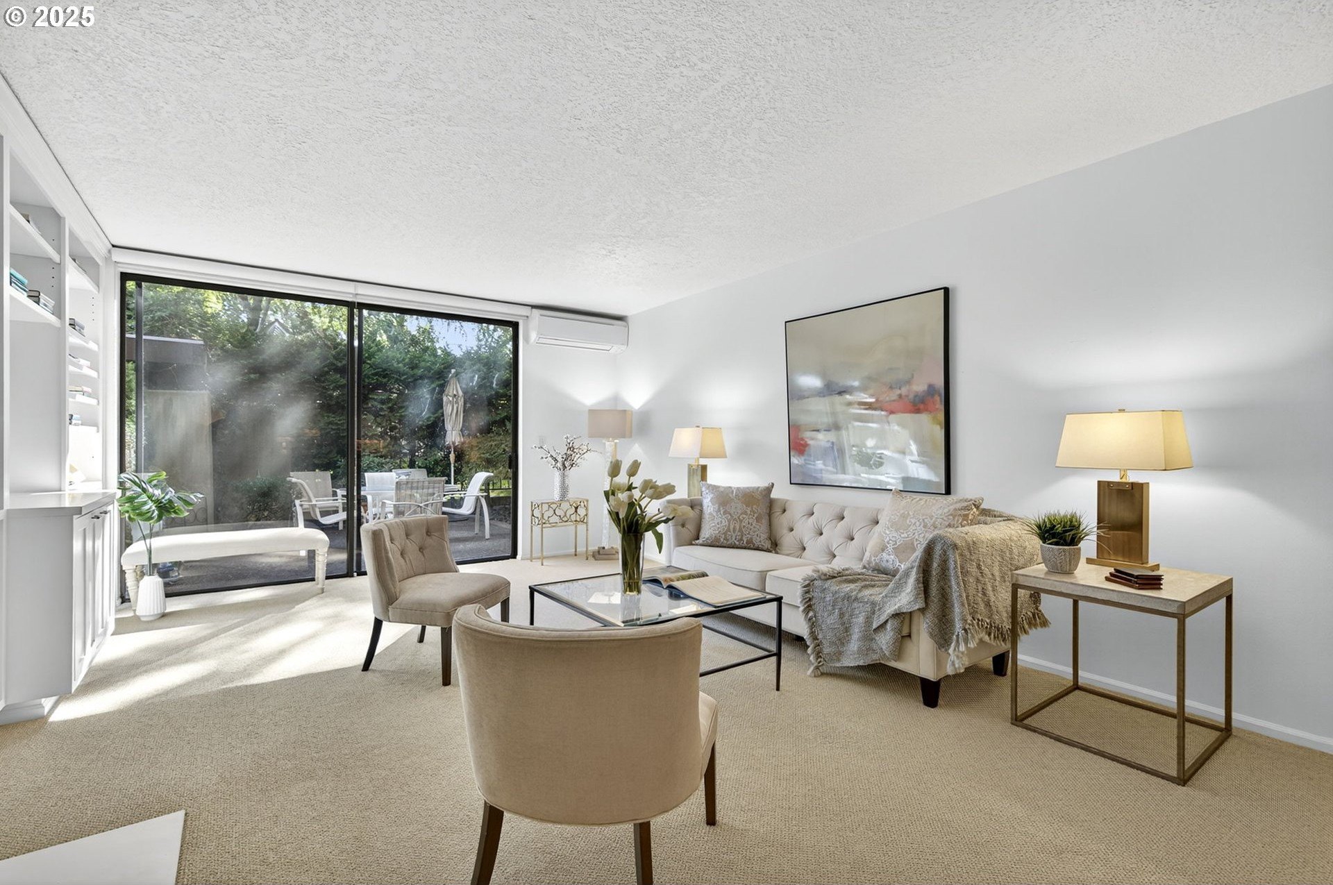 Lovely remodeled rare Garden unit. Open floor plan with dining living room with high ceilings that opens to large private patio and garden space. Wonderful for entertaining and enjoying a beautiful outdoor space. Living room and dining with wall of built-ins and electric fireplace. Kitchen has been completely remodeled with custom cabinets, granite counter tops, stainless steel appliances and fun glass tile back splash. Bedroom with ensuite, remodeled bath with walk-in shower. Bedroom has double closets, wall of built-ins and beatiful view of the garden. Laundry room with small office space. Parking storage and condo are all on the same level so convenient. Amenities include 24/7 Concierge, on-Site property management, indoor saltwater pool and Jaccuzzi, outdoor pool, 2 workout rooms with men and women's locker rooms with saunas. Two community rooms with kitchens that open to large patios great for fun summer parties. Bike and Wine Storage. 53 Guest Parking Spaces unheard of downtown. Pet Friendly. MAX and bus line border the property and the street car is 1 block north. Stroll the Halprin Park Sequence to the Keller Auditorium, coffee shops, restaurants and Riverplace Esplanade. Rental cap not met.
