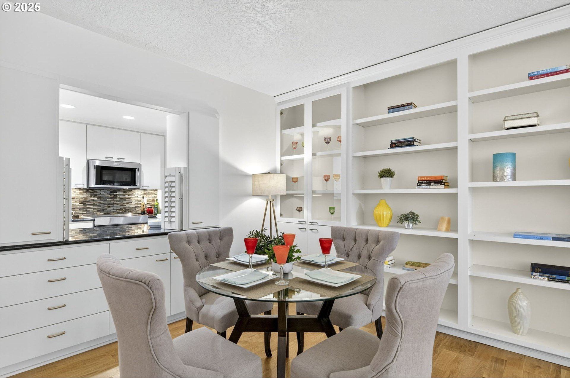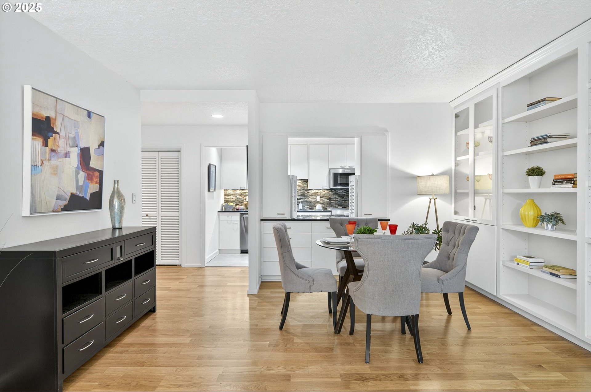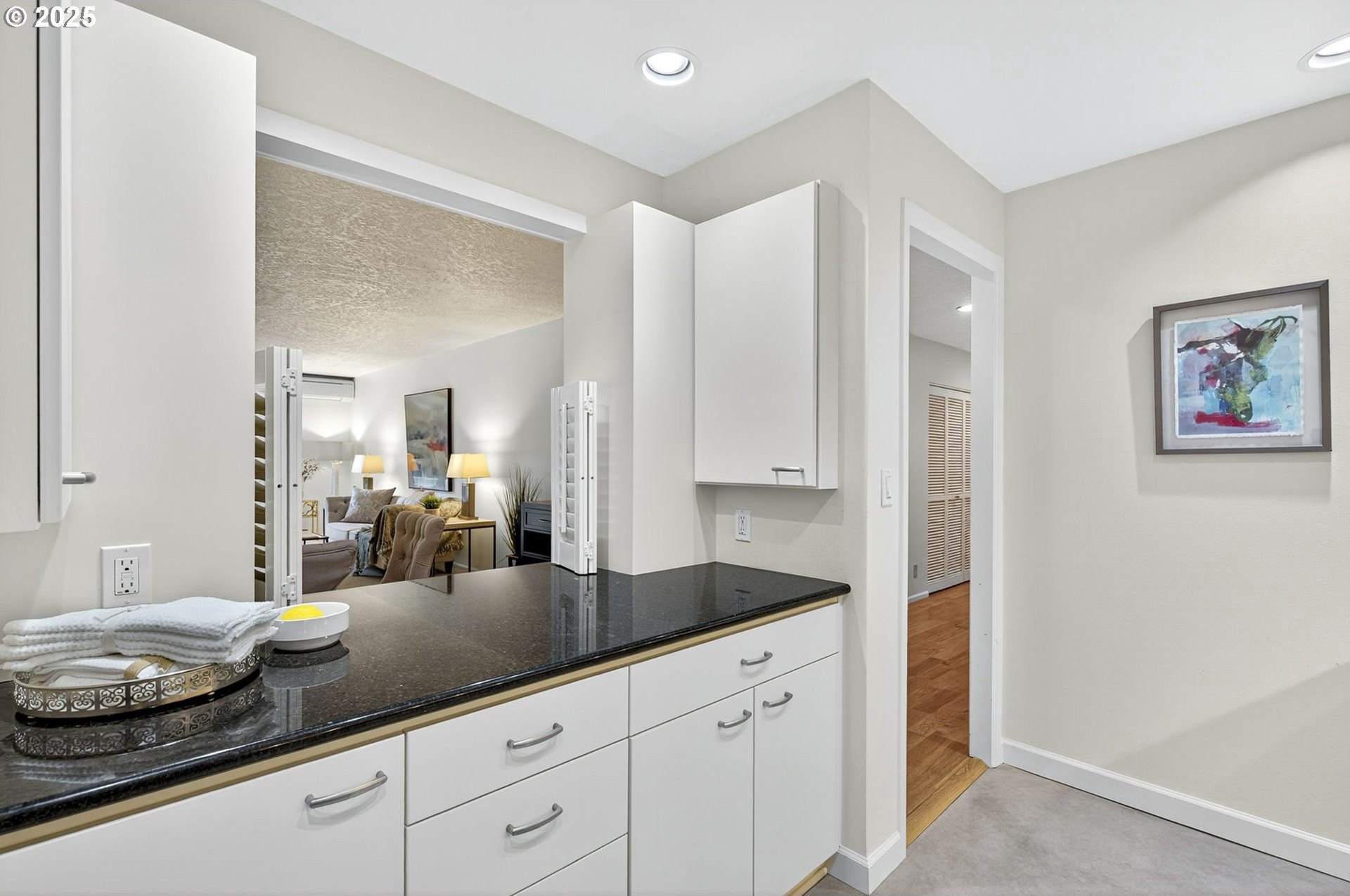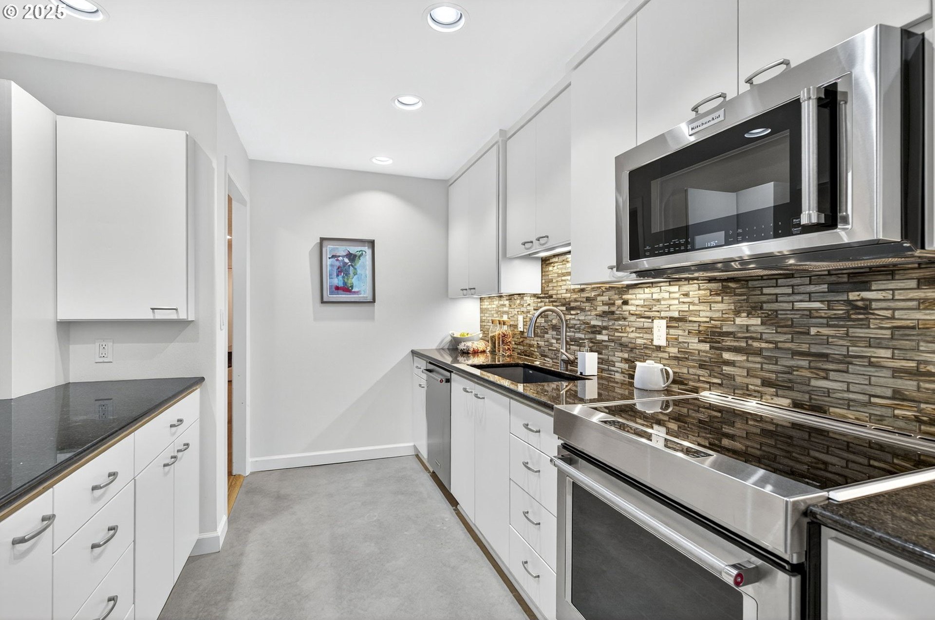 Lovely remodeled rare Garden unit. Open floor plan with dining living room with high ceilings that opens to large private patio and garden space. Wonderful for entertaining and enjoying a beautiful outdoor space. Living room and dining with wall of built-ins and electric fireplace. Kitchen has been completely remodeled with custom cabinets, granite counter tops, stainless steel appliances and fun glass tile back splash. Bedroom with ensuite, remodeled bath with walk-in shower. Bedroom has double closets, wall of built-ins and beatiful view of the garden. Laundry room with small office space. Parking storage and condo are all on the same level so convenient. Amenities include 24/7 Concierge, on-Site property management, indoor saltwater pool and Jaccuzzi, outdoor pool, 2 workout rooms with men and women's locker rooms with saunas. Two community rooms with kitchens that open to large patios great for fun summer parties. Bike and Wine Storage. 53 Guest Parking Spaces unheard of downtown. Pet Friendly. MAX and bus line border the property and the street car is 1 block north. Stroll the Halprin Park Sequence to the Keller Auditorium, coffee shops, restaurants and Riverplace Esplanade. Rental cap not met.