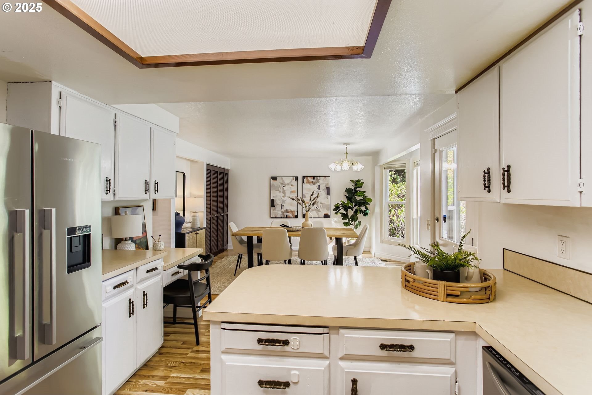 Bright, Spacious & Private! This charming two-level home offers the perfect blend of space, natural light, and comfort. With 3 bedrooms, 2 full baths, and a bonus room, there’s room for everyone—whether you're working from home, hosting guests, or just spreading out. One bedroom and a full bath are located on the main level, making it ideal for guests, anyone who prefers fewer stairs, or as your home office. Upstairs, the primary suite features a luxurious bathroom with a walk-in shower and a relaxing jacuzzi tub.You’ll love the high ceilings, large windows, and hardwood floors that give the home an open, airy feel. The dining area is conveniently located next to the kitchen and just steps from the back door, making it easy to head outside to the covered patio—perfect for al fresco dining, relaxing evenings, or entertaining friends.The spacious living room is great for movie nights or cozy weekends at home, and the attached garage adds extra convenience. The bonus room offers even more flexibility—as a playroom, creative studio, or home gym.Enjoy the private front and back yards, ideal for gardening, pets, or simply soaking up some quiet outdoor time.All of this is tucked into a peaceful setting just minutes from Foster-Powell’s vibrant restaurants, bars, and coffee shops, Mt. Scott Community Center, Portland Mercado, and the newly remodeled Holgate Library.