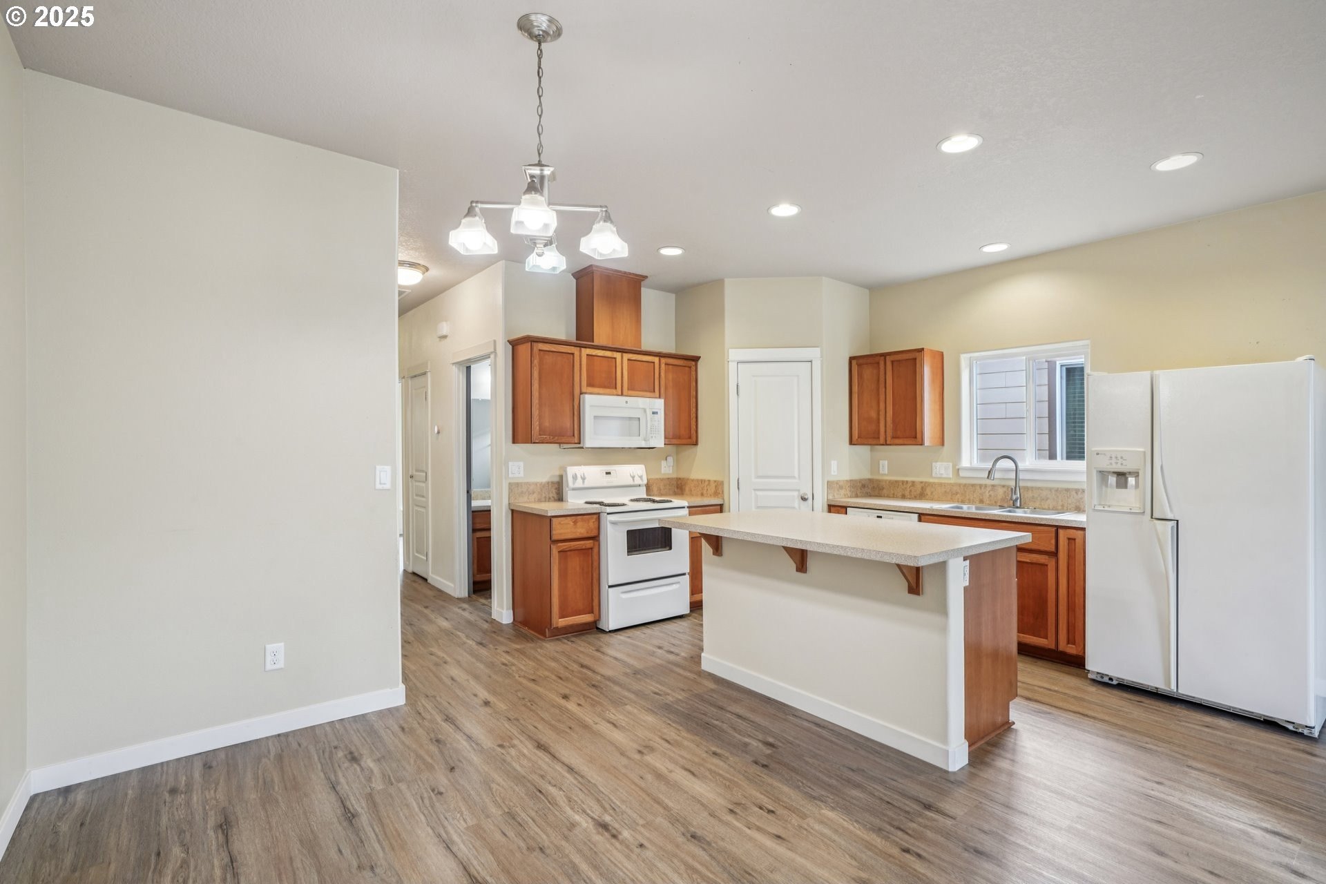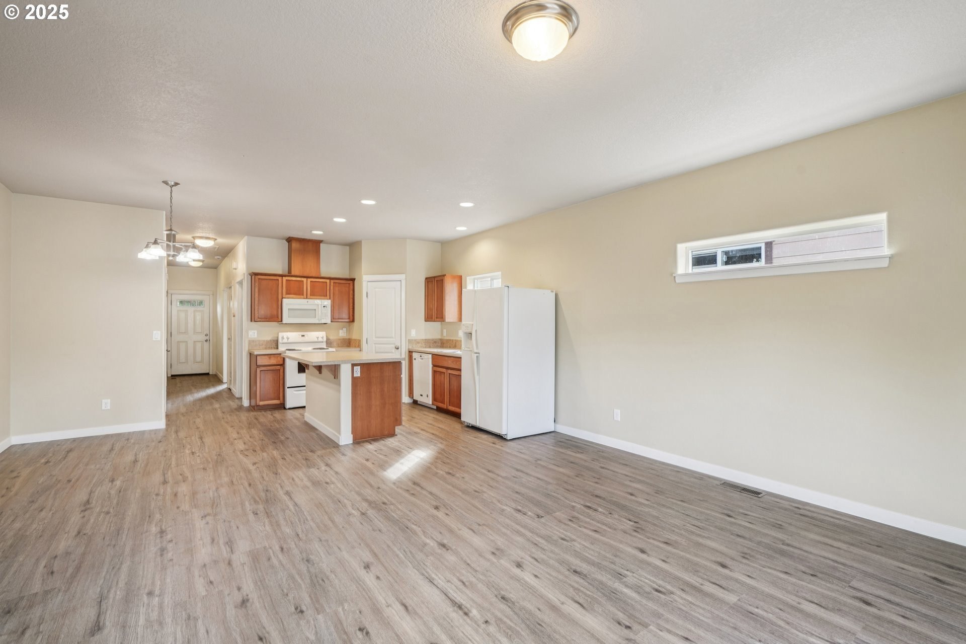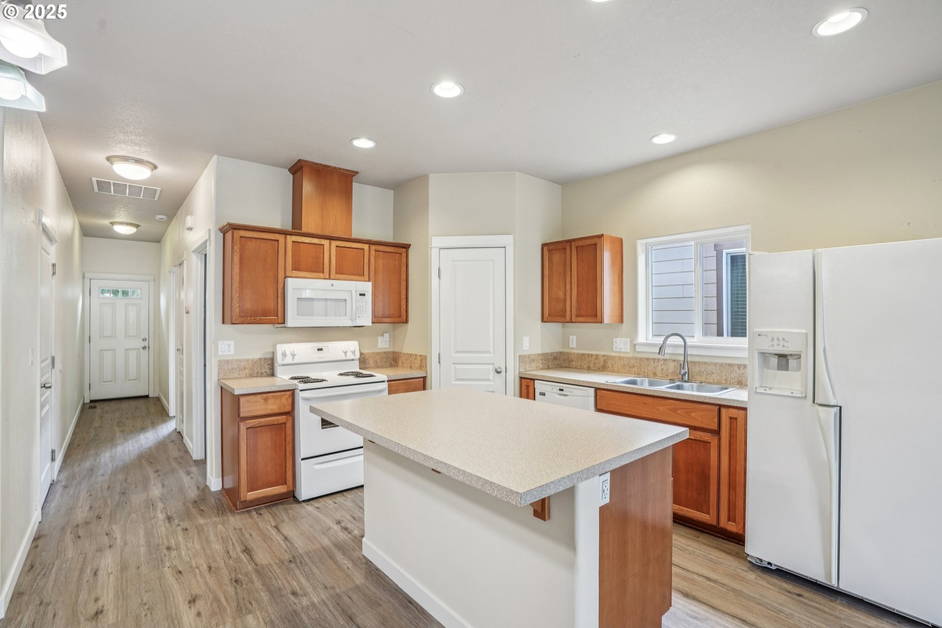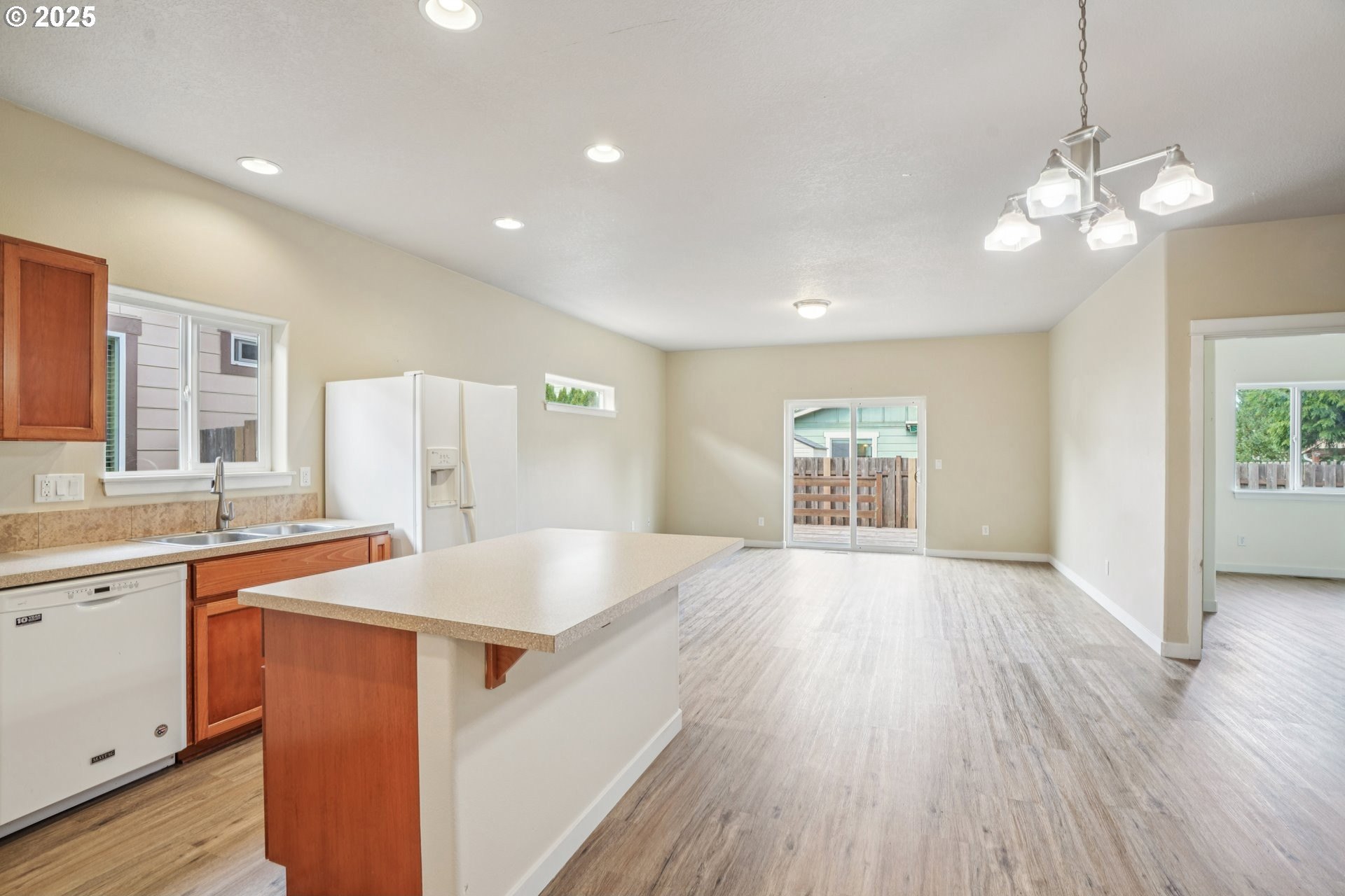Tucked away on a quiet street, this charming 3-bedroom, 2-bath, 1,140 sq.ft. one-level home offers comfort, style, and convenience in one perfect package. Step inside to discover a bright, open floor plan featuring soaring ceilings and brand-new luxury vinyl plank flooring throughout. The spacious kitchen is a dream with a large island, pantry, and all appliances included—refrigerator, washer, and dryer too! Fresh interior paint adds a clean, modern touch. The generous primary bedroom boasts a walk-in shower and ample closet space. Enjoy indoor-outdoor living with a freshly landscaped yard, deck for entertaining, and fully fenced backyard—ideal for pets or play. A rare find that blends modern updates with cozy charm in a peaceful location—this move-in ready home won’t last long!