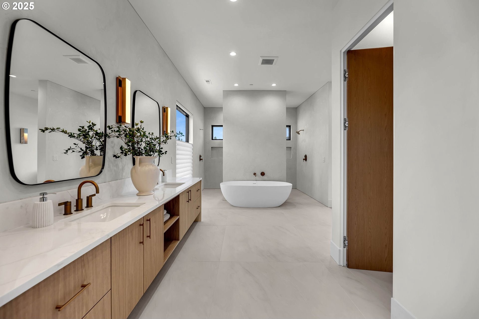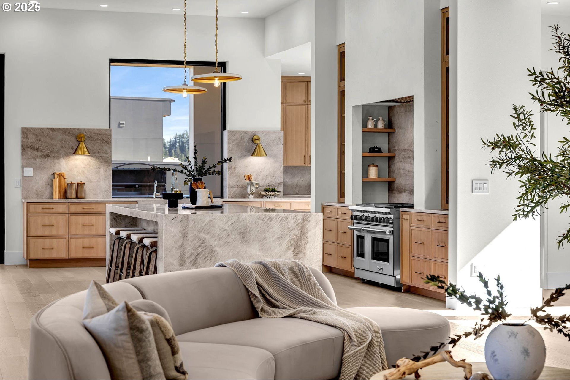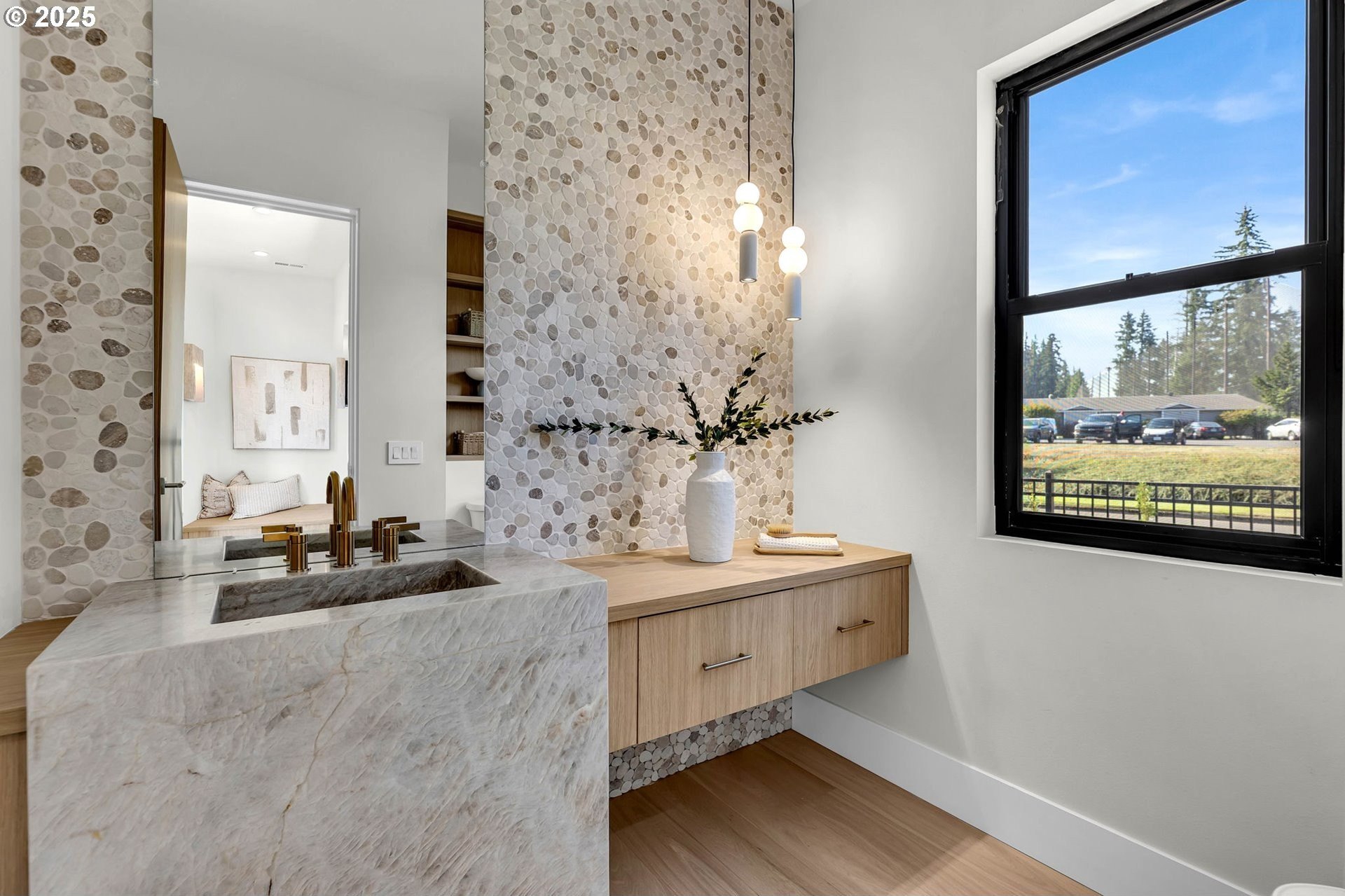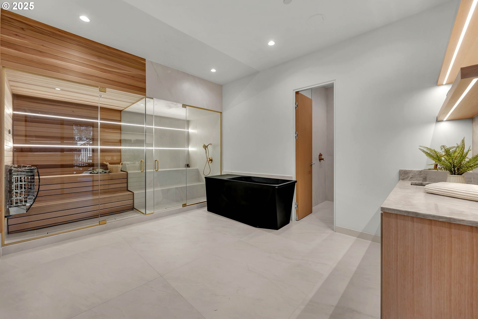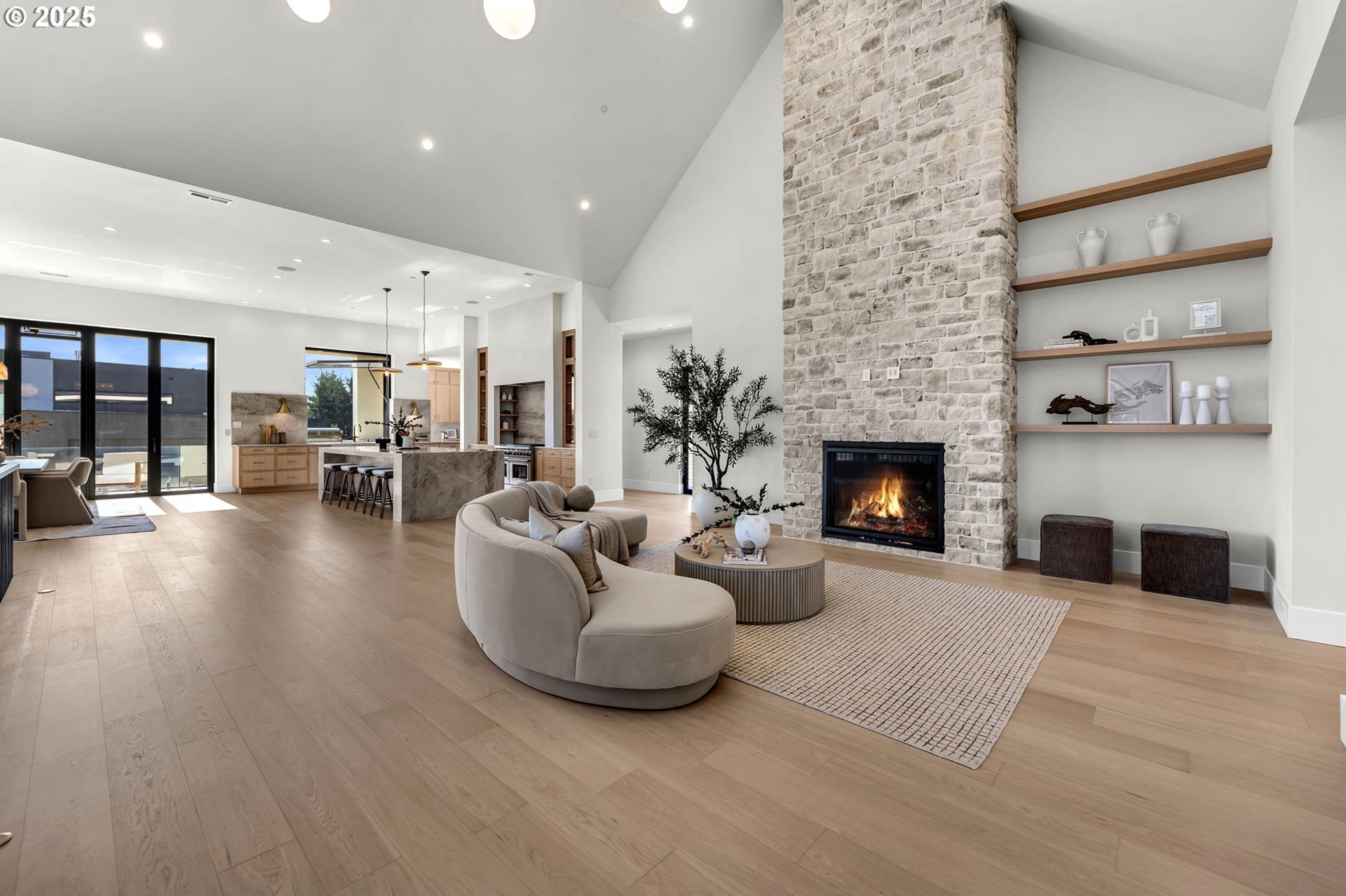 This custom-designed house embodies Scandinavian-inspired luxury, blending bold architectural presence with serene simplicity and a deep connection to nature. Its open-concept floorplan features soaring vaulted ceilings (up to 22ft tall) in the great room and primary bedroom, complemented by extra-large windows that flood the space with natural light, accentuating warm earth-tone finishes. A gourmet kitchen with custom cabinetry, a butler's pantry, and premium appliances seamlessly merges style and functionality, with state-of-the-art smart home systems. The indoor spa room offers a hot dry sauna, soothing steam room, and refreshing cold plunge, perfect for unwinding and rejuvenating. Covered outdoor patio with a kitchen pass-through window for outdoor dining and entertainment. Views of the Camas Meadows Golf Course. Built-in smart system automation (audio/video, cameras, blinds, lights, thermostat). Custom finishes throughout. Oversized 3-car garage (1,030 sqft. The house was featured in the GRO Clark County Parade of Homes. Camas Schools. Golfers' dream! Golf cart to and from the course. Schedule a tour today!