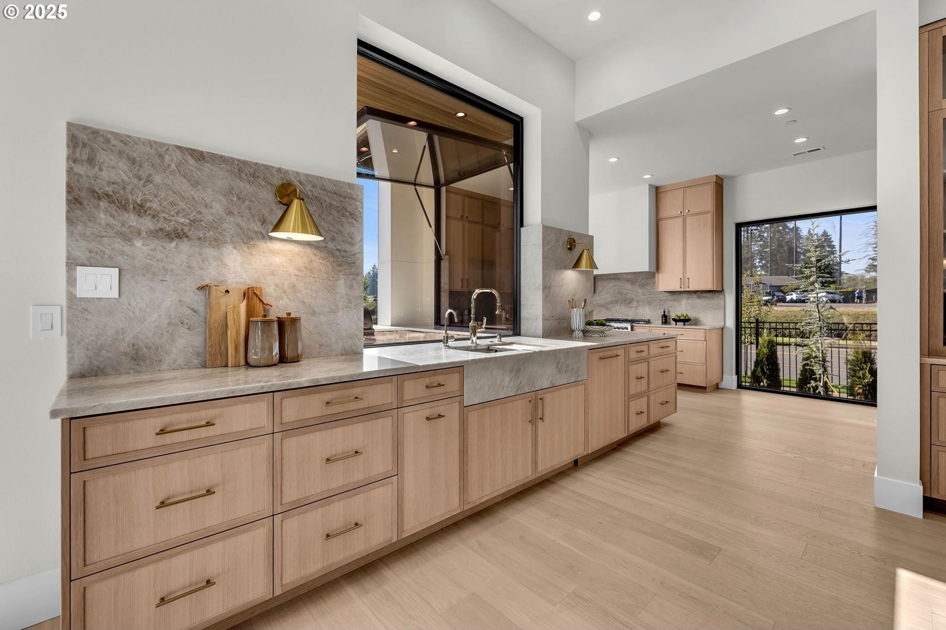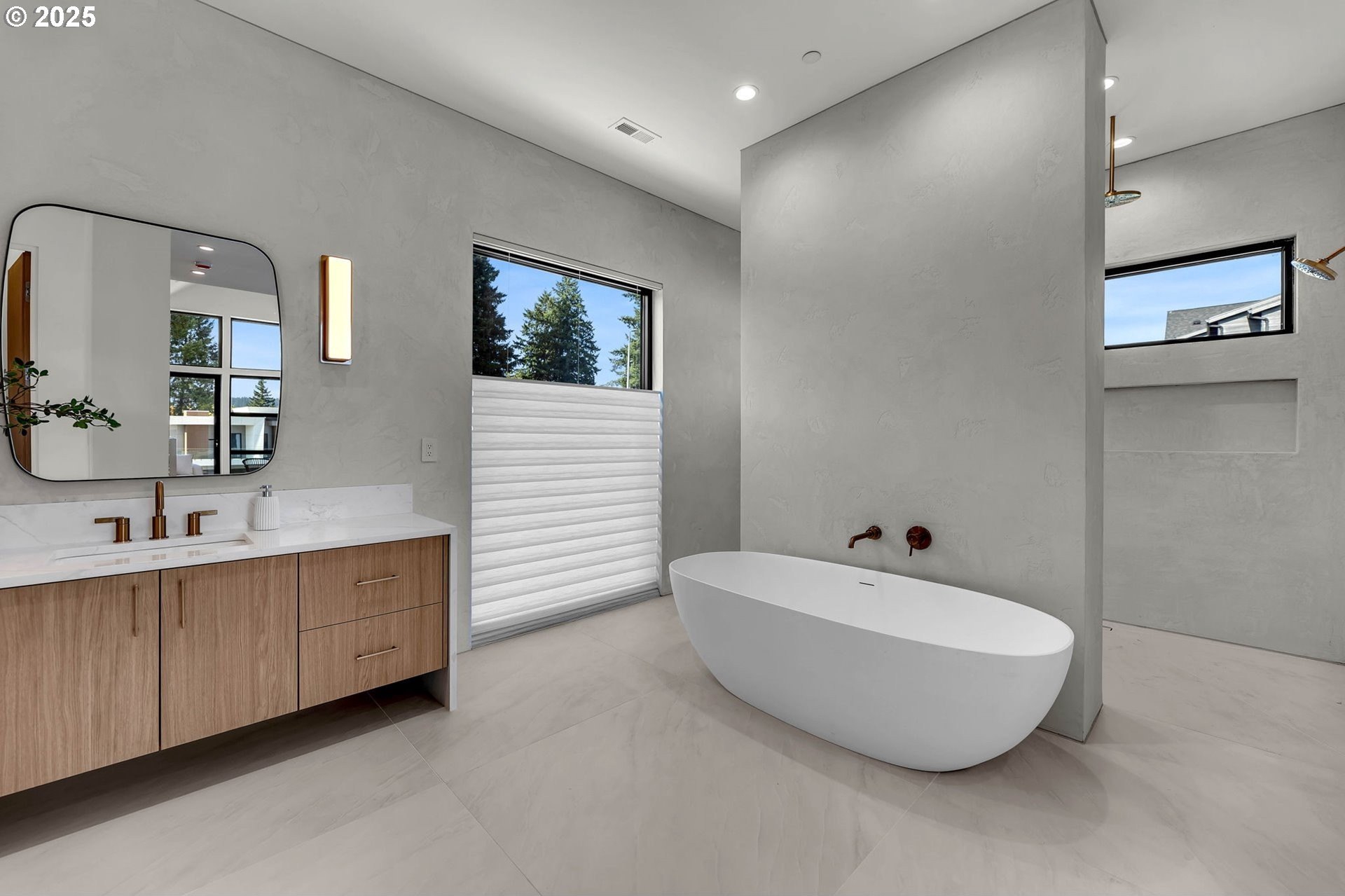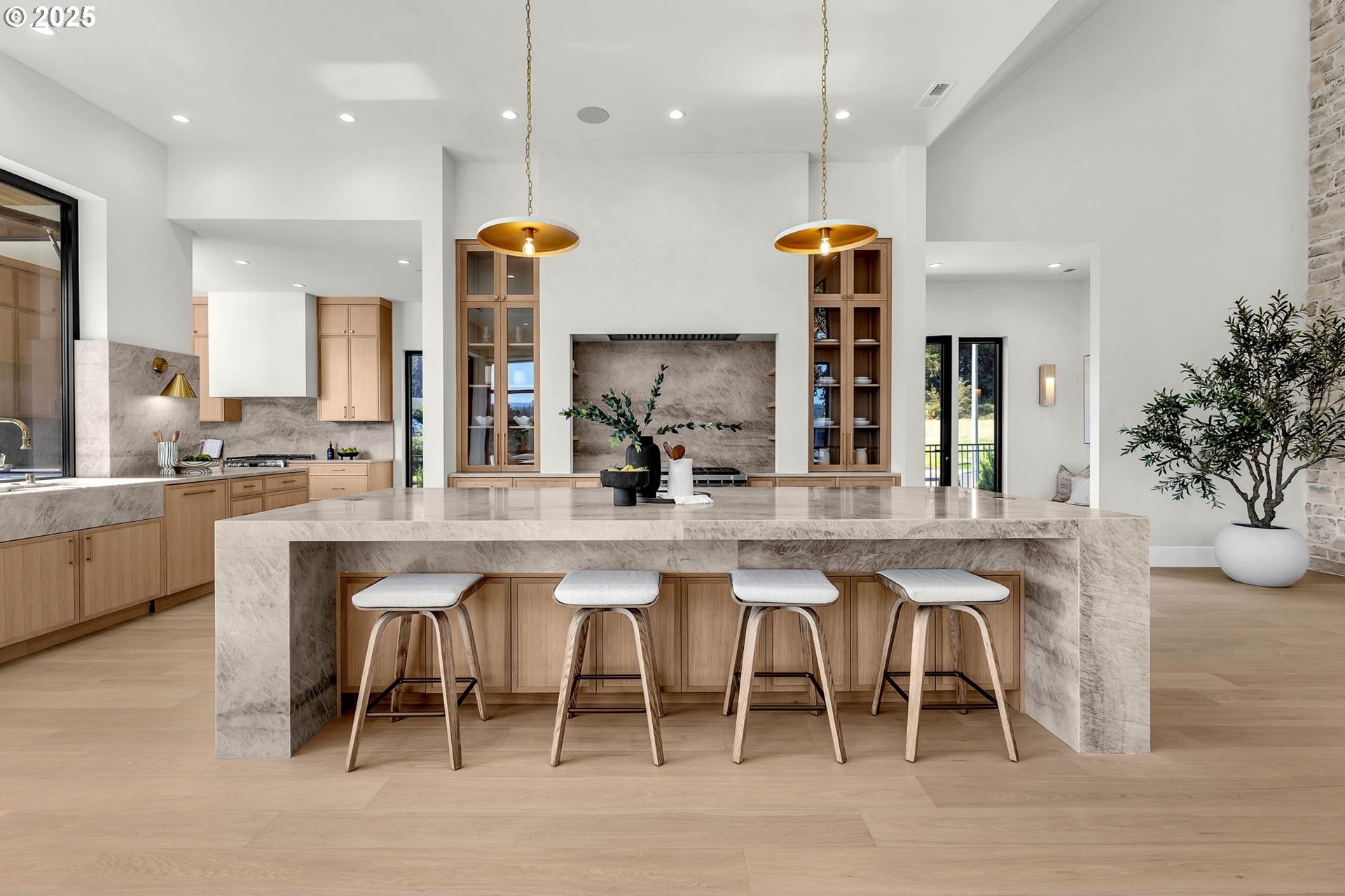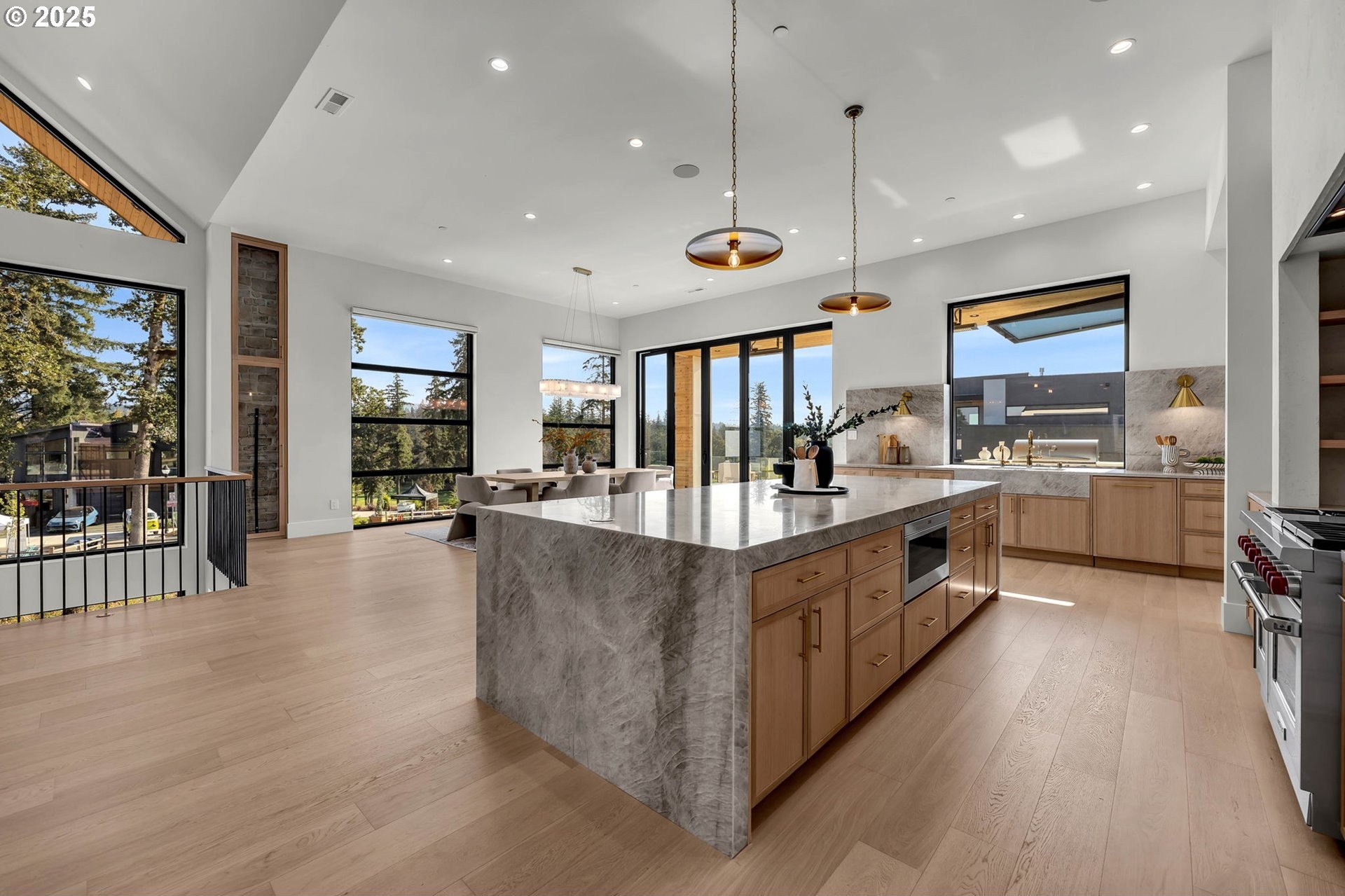 This custom-designed house embodies Scandinavian-inspired luxury, blending bold architectural presence with serene simplicity and a deep connection to nature. Its open-concept floorplan features soaring vaulted ceilings (up to 22ft tall) in the great room and primary bedroom, complemented by extra-large windows that flood the space with natural light, accentuating warm earth-tone finishes. A gourmet kitchen with custom cabinetry, a butler's pantry, and premium appliances seamlessly merges style and functionality, with state-of-the-art smart home systems. The indoor spa room offers a hot dry sauna, soothing steam room, and refreshing cold plunge, perfect for unwinding and rejuvenating. Covered outdoor patio with a kitchen pass-through window for outdoor dining and entertainment. Views of the Camas Meadows Golf Course. Built-in smart system automation (audio/video, cameras, blinds, lights, thermostat). Custom finishes throughout. Oversized 3-car garage (1,030 sqft. The house was featured in the GRO Clark County Parade of Homes. Camas Schools. Golfers' dream! Golf cart to and from the course. Schedule a tour today!