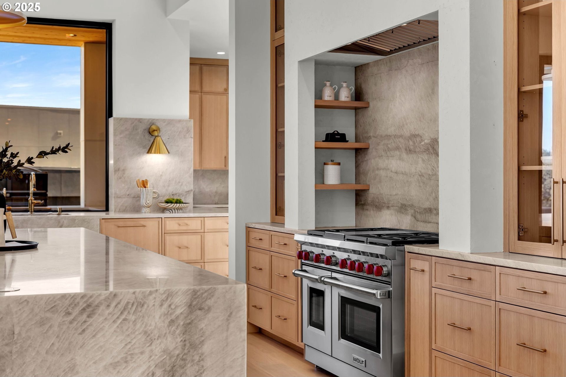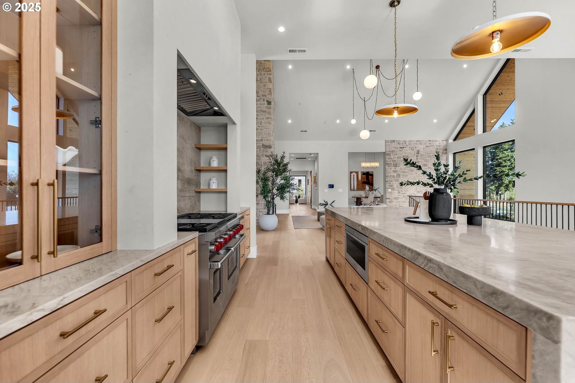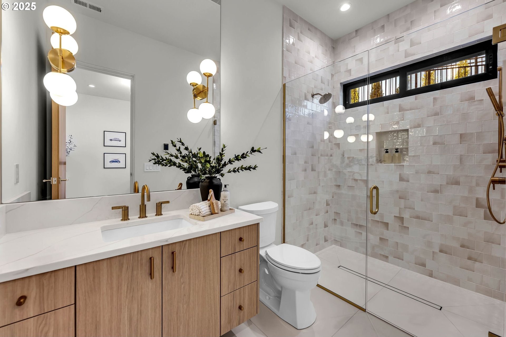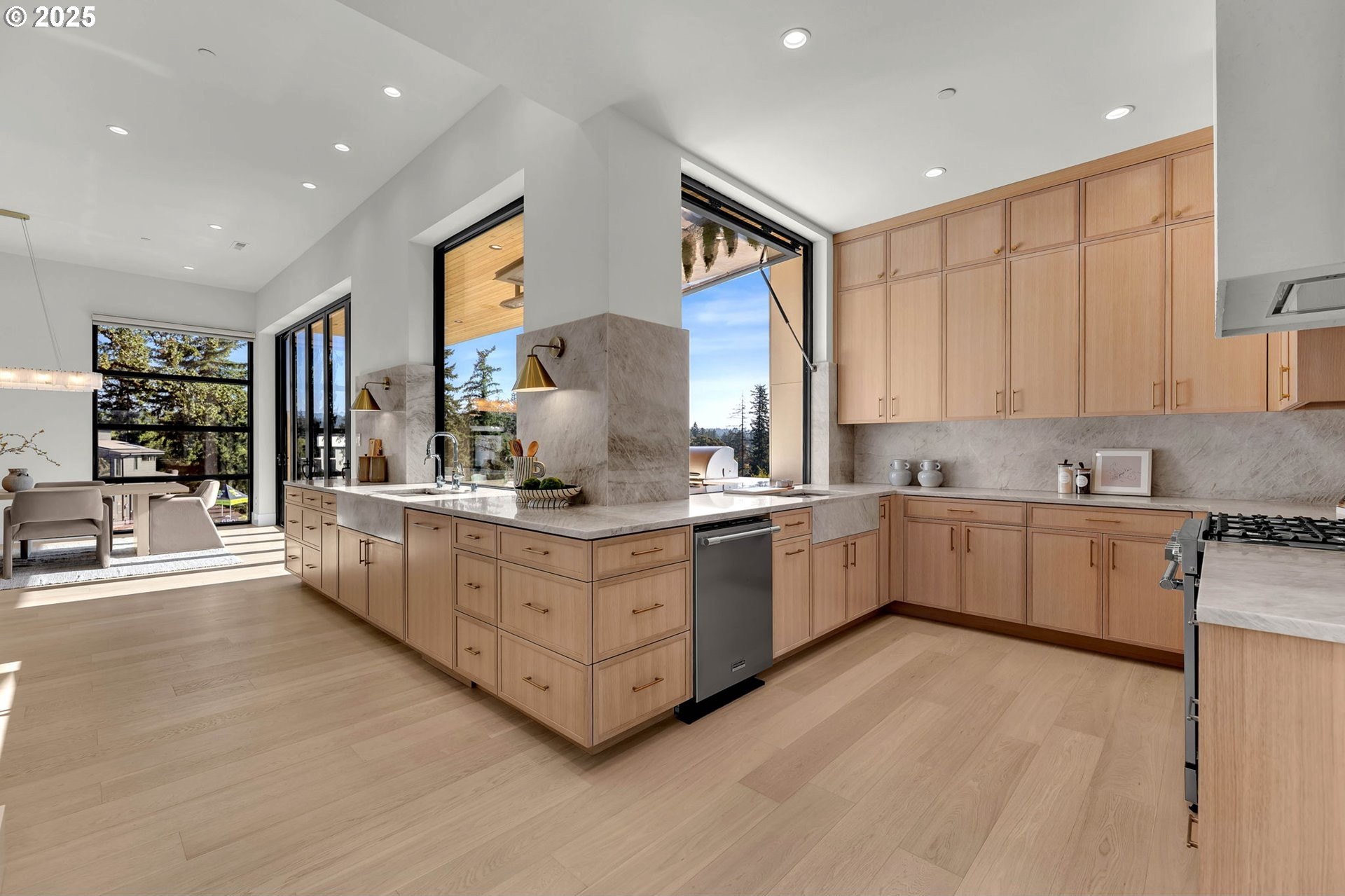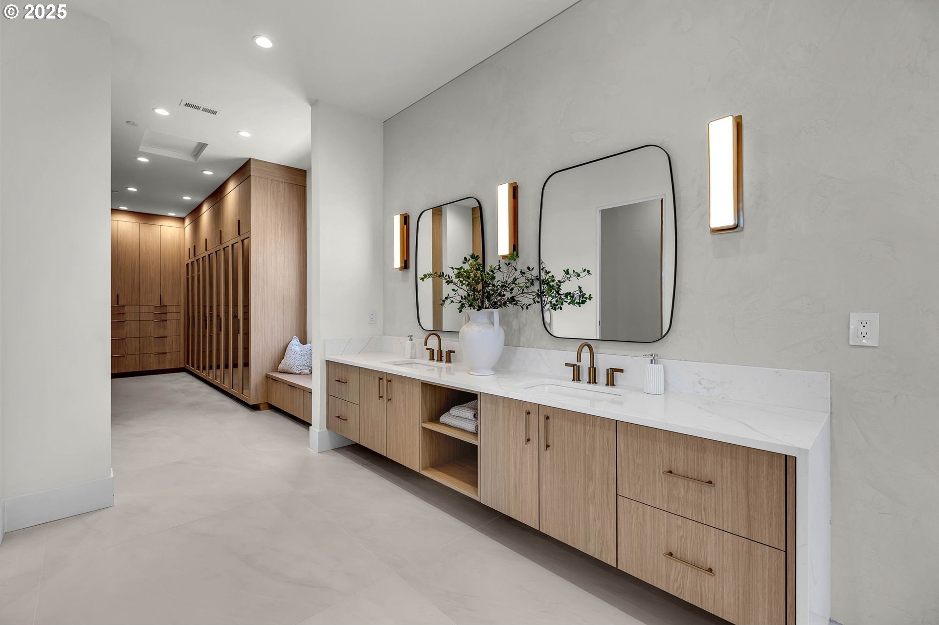 This custom-designed house embodies Scandinavian-inspired luxury, blending bold architectural presence with serene simplicity and a deep connection to nature. Its open-concept floorplan features soaring vaulted ceilings (up to 22ft tall) in the great room and primary bedroom, complemented by extra-large windows that flood the space with natural light, accentuating warm earth-tone finishes. A gourmet kitchen with custom cabinetry, a butler's pantry, and premium appliances seamlessly merges style and functionality, with state-of-the-art smart home systems. The indoor spa room offers a hot dry sauna, soothing steam room, and refreshing cold plunge, perfect for unwinding and rejuvenating. Covered outdoor patio with a kitchen pass-through window for outdoor dining and entertainment. Views of the Camas Meadows Golf Course. Built-in smart system automation (audio/video, cameras, blinds, lights, thermostat). Custom finishes throughout. Oversized 3-car garage (1,030 sqft. The house was featured in the GRO Clark County Parade of Homes. Camas Schools. Golfers' dream! Golf cart to and from the course. Schedule a tour today!