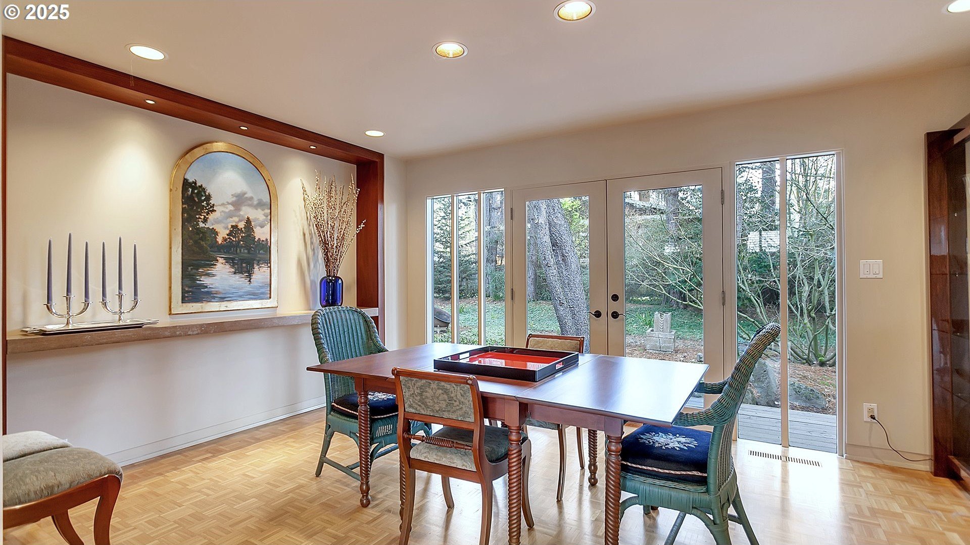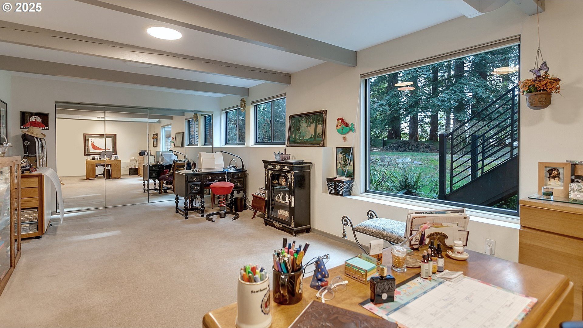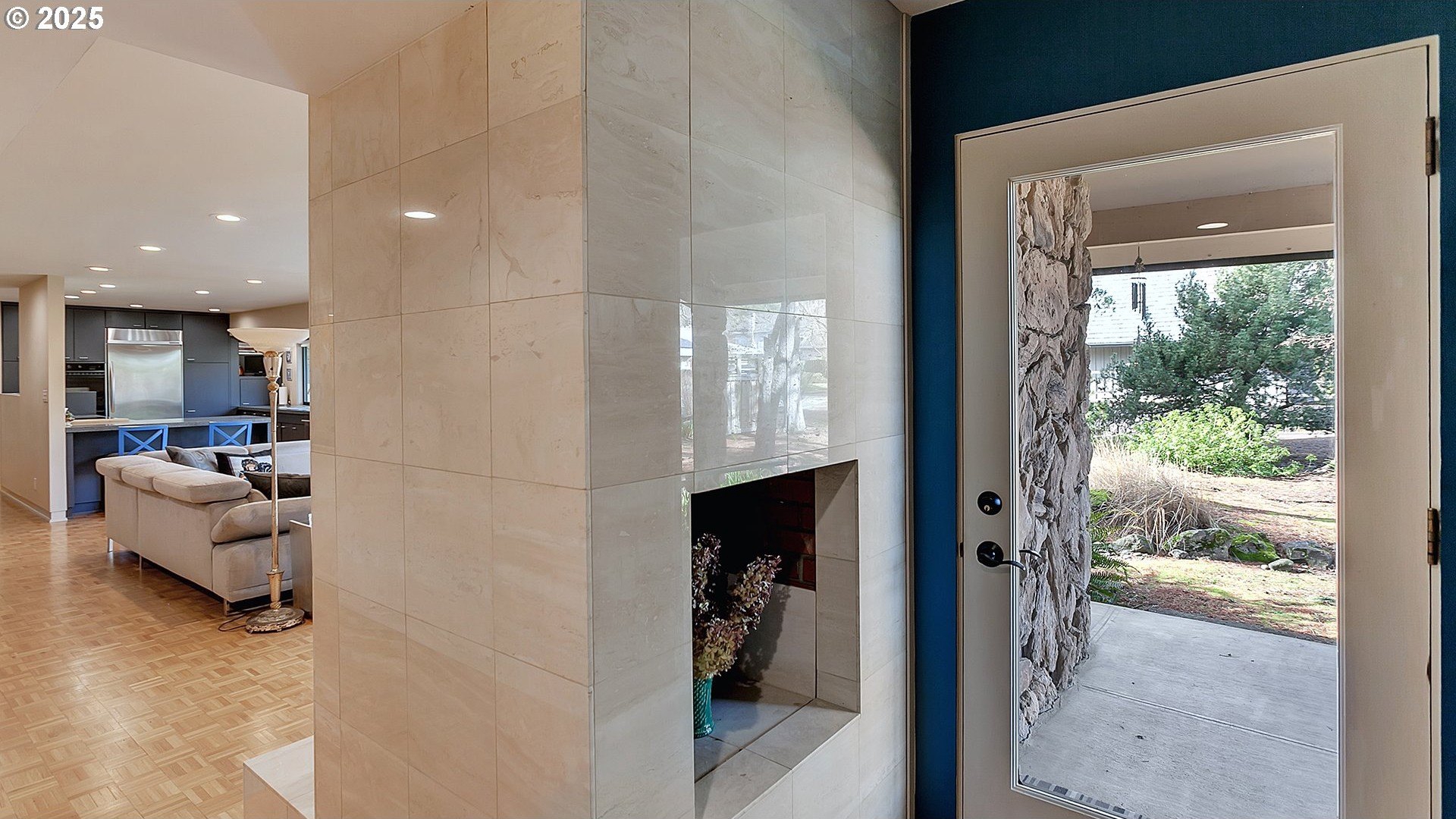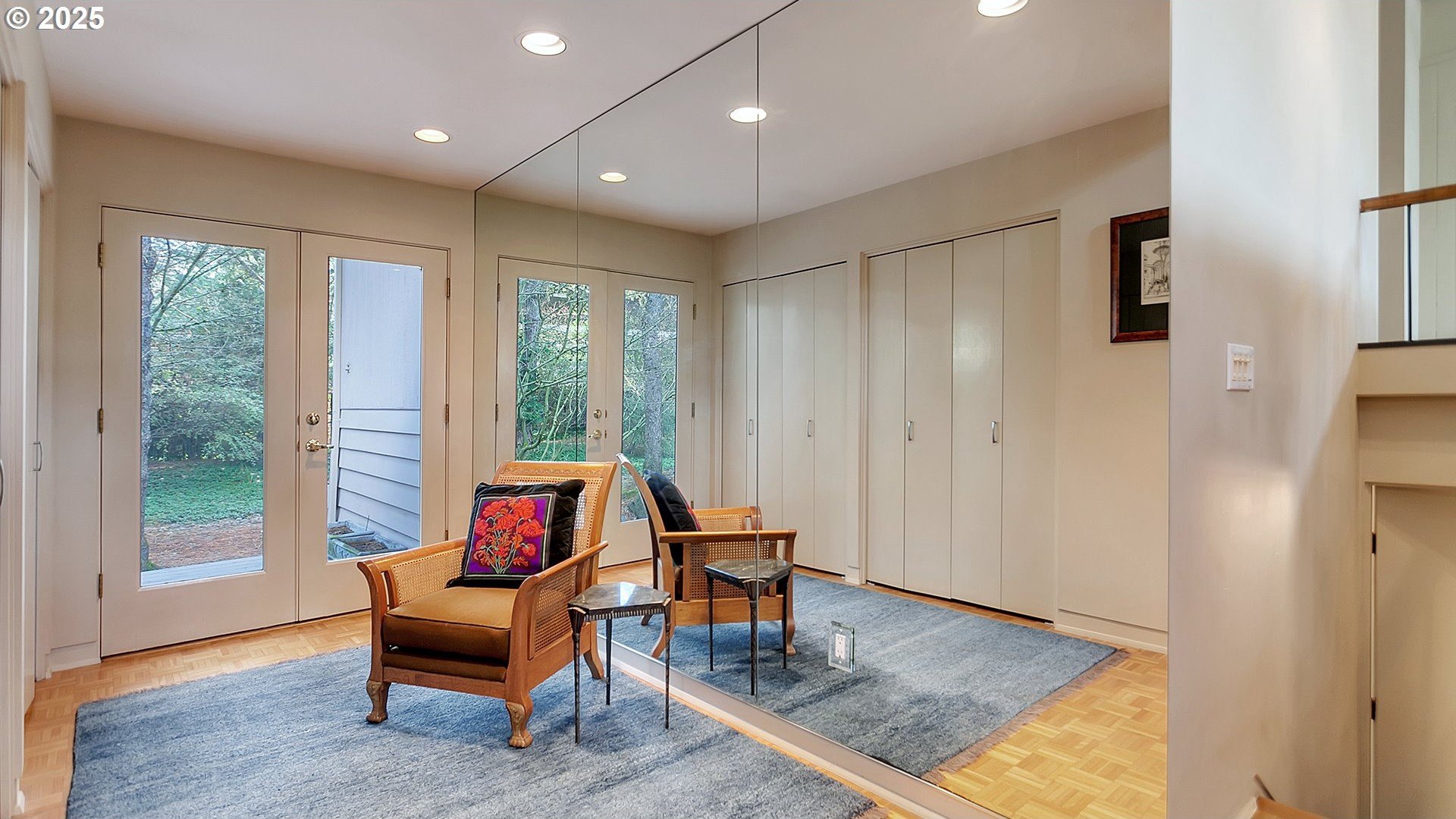 Located in the sought-after Lynnridge neighborhood of Cedar Hills and is situated on a large, naturally landscaped lot that ensures ample privacy. Upon entering through the double doors, you’ll appreciate numerous Mid-Century Modern design elements, series windows, exposed wood beam ceilings, distinctive light fixtures, and floor-to-ceiling fireplaces— all thoughtfully preserved in this well-maintained home. The main level features parquet floors, a welcoming foyer, and a formal dining room filled with natural light. The spacious kitchen opens to the living room, which boasts tall windows and a travertine-encased fireplace. Also on this level is a large bedroom with an adjacent full bathroom and generous laundry room. A few steps up, an open staircase leads to a grand family room with a cathedral ceiling adorned with exposed wood beams, floor-to-ceiling windows and wood-burning fireplace. This room opens onto an expansive 1,100 sq. ft. deck perfect for entertaining. Nearby, a bedroom converted into a dressing room adjoins a luxurious primary suite with its own deck, large windows, floor-to-ceiling wood-burning fireplace, an adjacent dressing room, a walk-in bathroom finished with tile and walnut, including a spacious accessible shower. The lower level offers two large bedrooms, a full bathroom, a second family room with access to a covered patio, a three-car garage, and a sizable private backyard. With a full bedroom and bathroom on the main level plus multiple family rooms, this home is ideal for au pairs, nannies, caregivers, or multigenerational living. Located in the walkable Lynnridge neighborhood of Cedar Hills in unincorporated Washington County near Cedar Hills Marketplace, top rated public and private schools, restaurants, services, St. Vincent’s complex, Easy access to NIKE World Headquarters, Columbia Sportswear Global Campus, downtown Portland, Highway 217, Silicon Forest. Do not miss this opportunity to make this home your own!