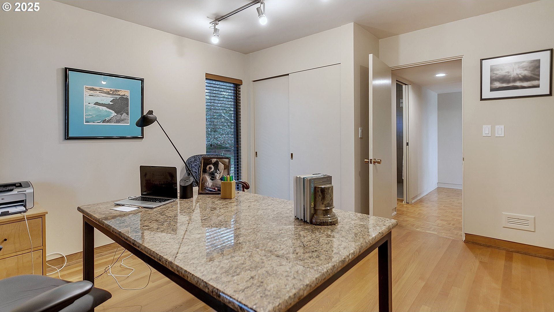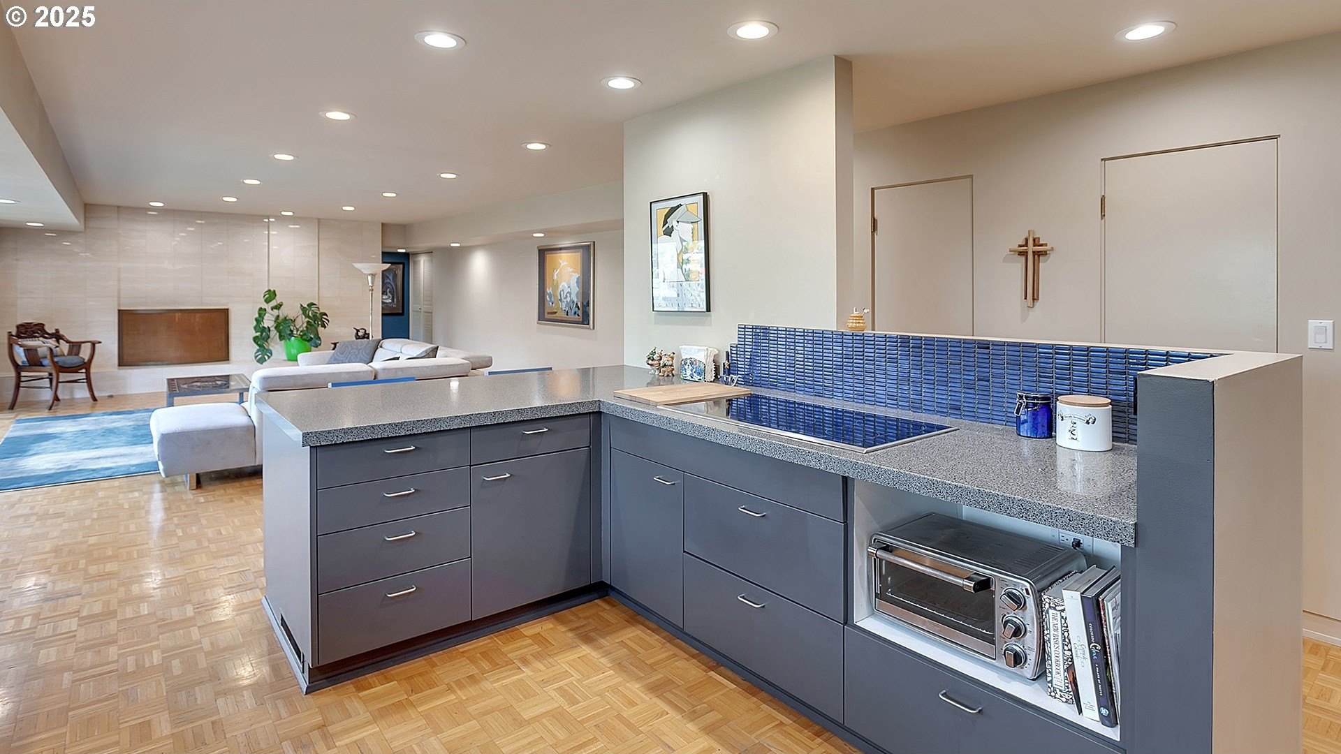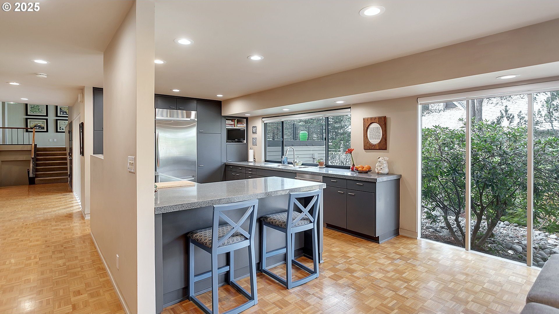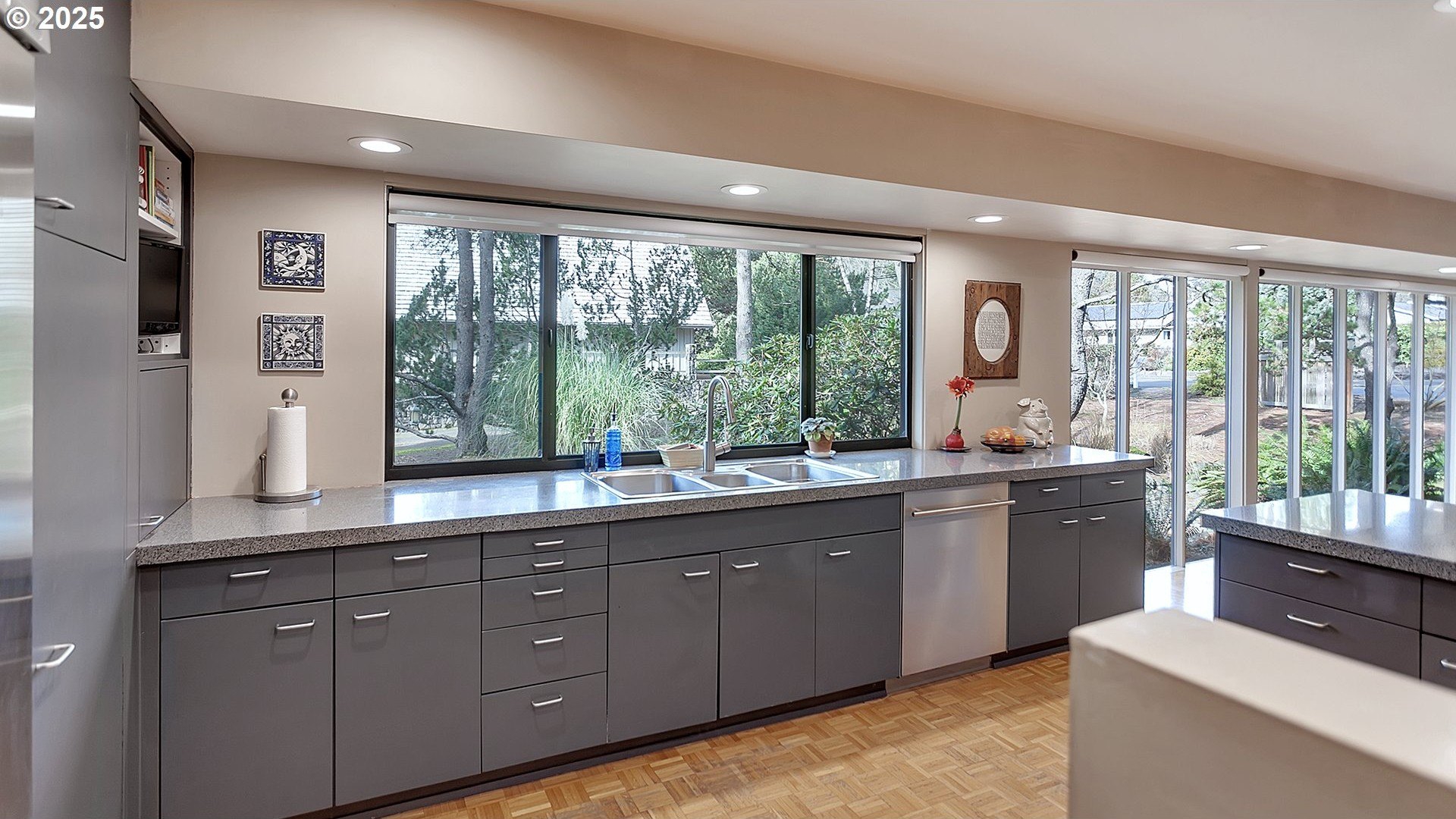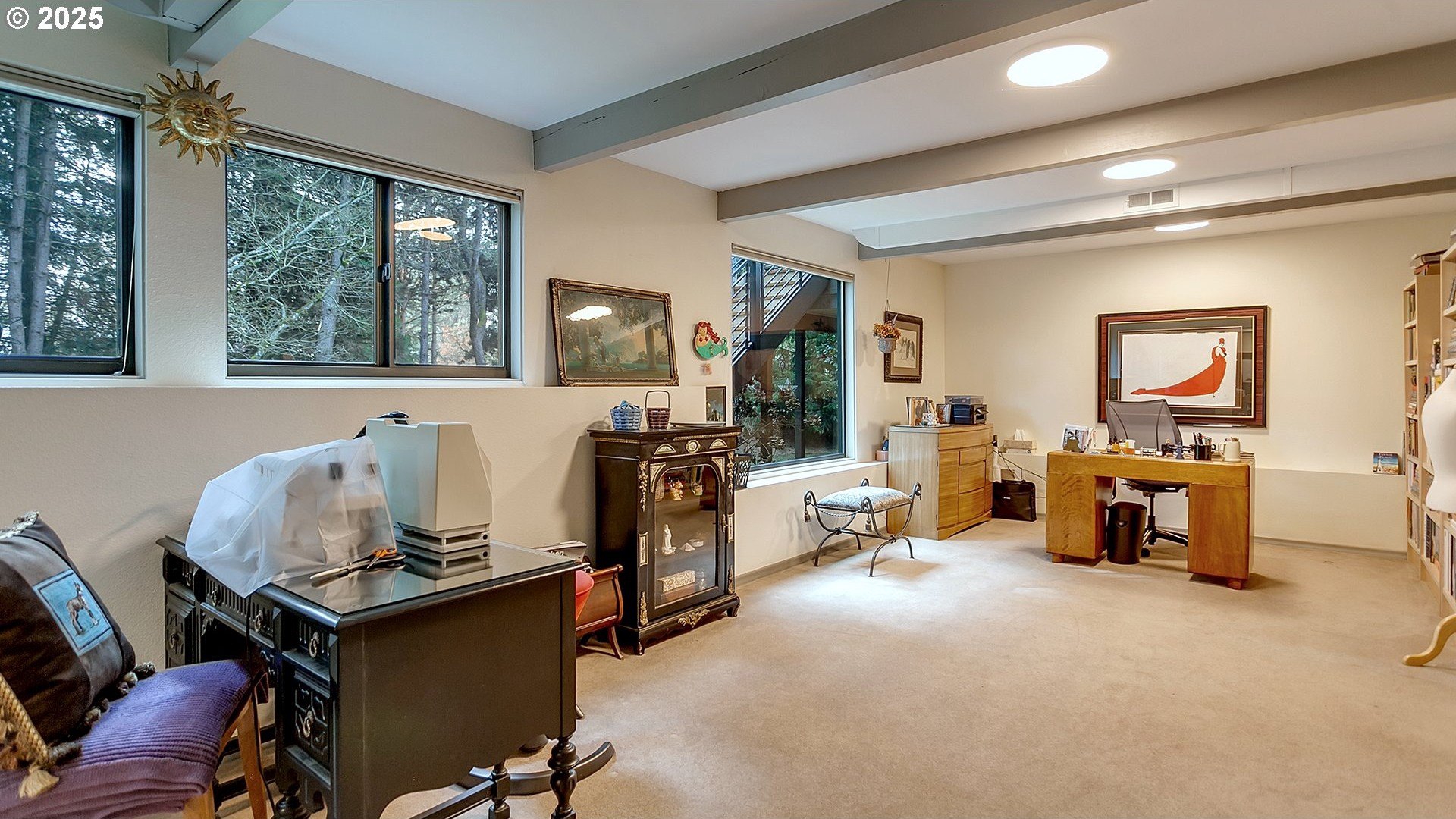 Located in the sought-after Lynnridge neighborhood of Cedar Hills and is situated on a large, naturally landscaped lot that ensures ample privacy. Upon entering through the double doors, you’ll appreciate numerous Mid-Century Modern design elements, series windows, exposed wood beam ceilings, distinctive light fixtures, and floor-to-ceiling fireplaces— all thoughtfully preserved in this well-maintained home. The main level features parquet floors, a welcoming foyer, and a formal dining room filled with natural light. The spacious kitchen opens to the living room, which boasts tall windows and a travertine-encased fireplace. Also on this level is a large bedroom with an adjacent full bathroom and generous laundry room. A few steps up, an open staircase leads to a grand family room with a cathedral ceiling adorned with exposed wood beams, floor-to-ceiling windows and wood-burning fireplace. This room opens onto an expansive 1,100 sq. ft. deck perfect for entertaining. Nearby, a bedroom converted into a dressing room adjoins a luxurious primary suite with its own deck, large windows, floor-to-ceiling wood-burning fireplace, an adjacent dressing room, a walk-in bathroom finished with tile and walnut, including a spacious accessible shower. The lower level offers two large bedrooms, a full bathroom, a second family room with access to a covered patio, a three-car garage, and a sizable private backyard. With a full bedroom and bathroom on the main level plus multiple family rooms, this home is ideal for au pairs, nannies, caregivers, or multigenerational living. Located in the walkable Lynnridge neighborhood of Cedar Hills in unincorporated Washington County near Cedar Hills Marketplace, top rated public and private schools, restaurants, services, St. Vincent’s complex, Easy access to NIKE World Headquarters, Columbia Sportswear Global Campus, downtown Portland, Highway 217, Silicon Forest. Do not miss this opportunity to make this home your own!