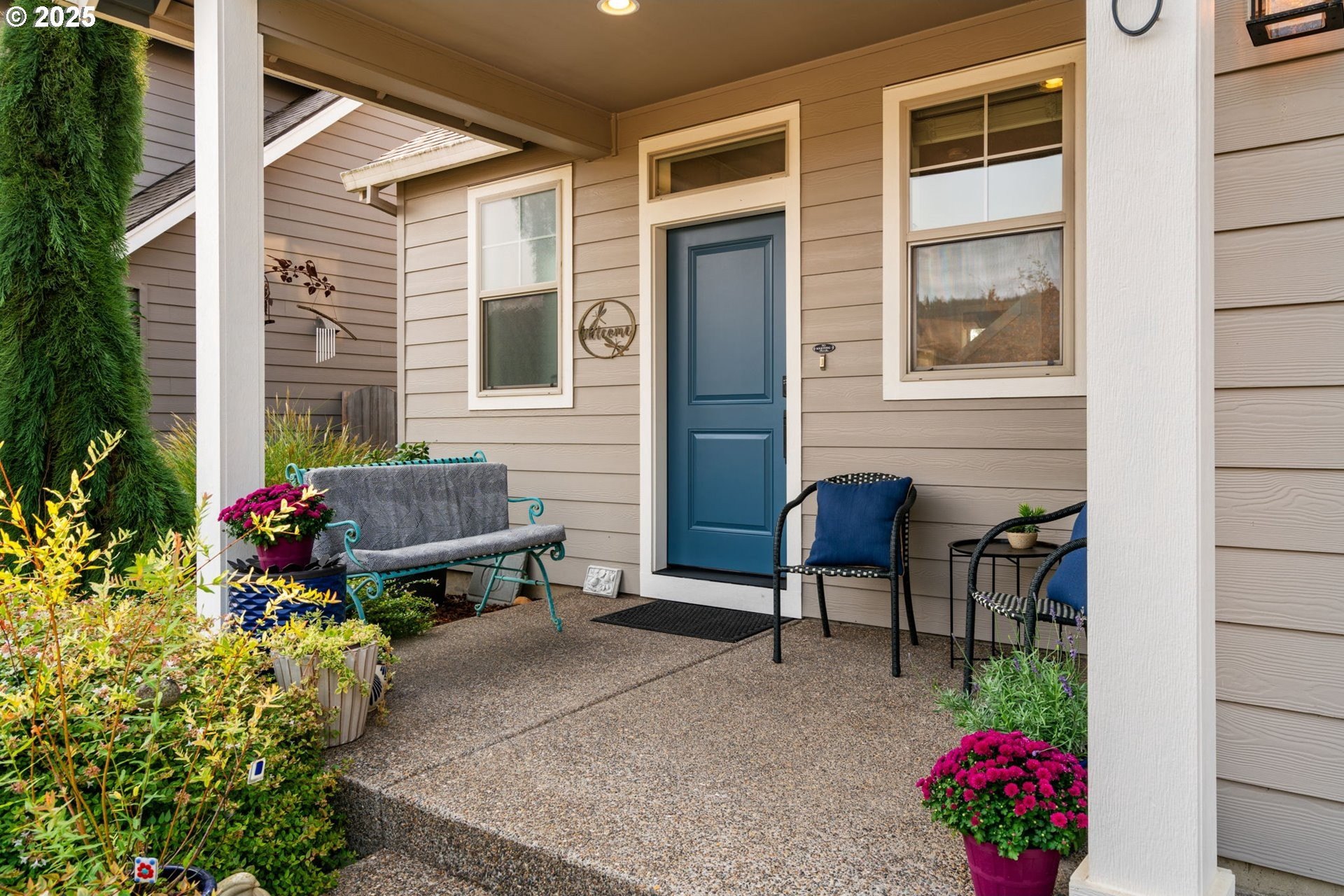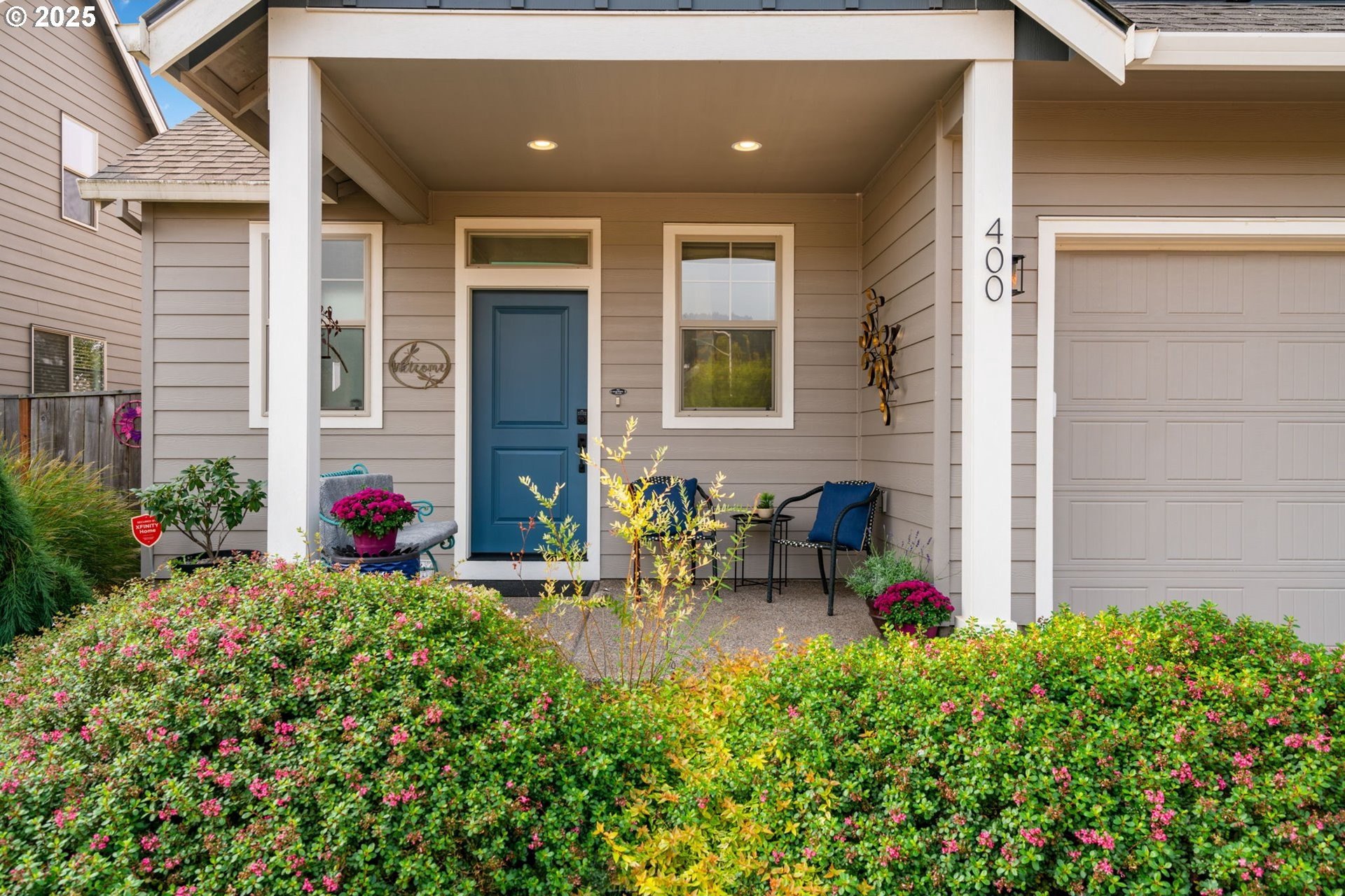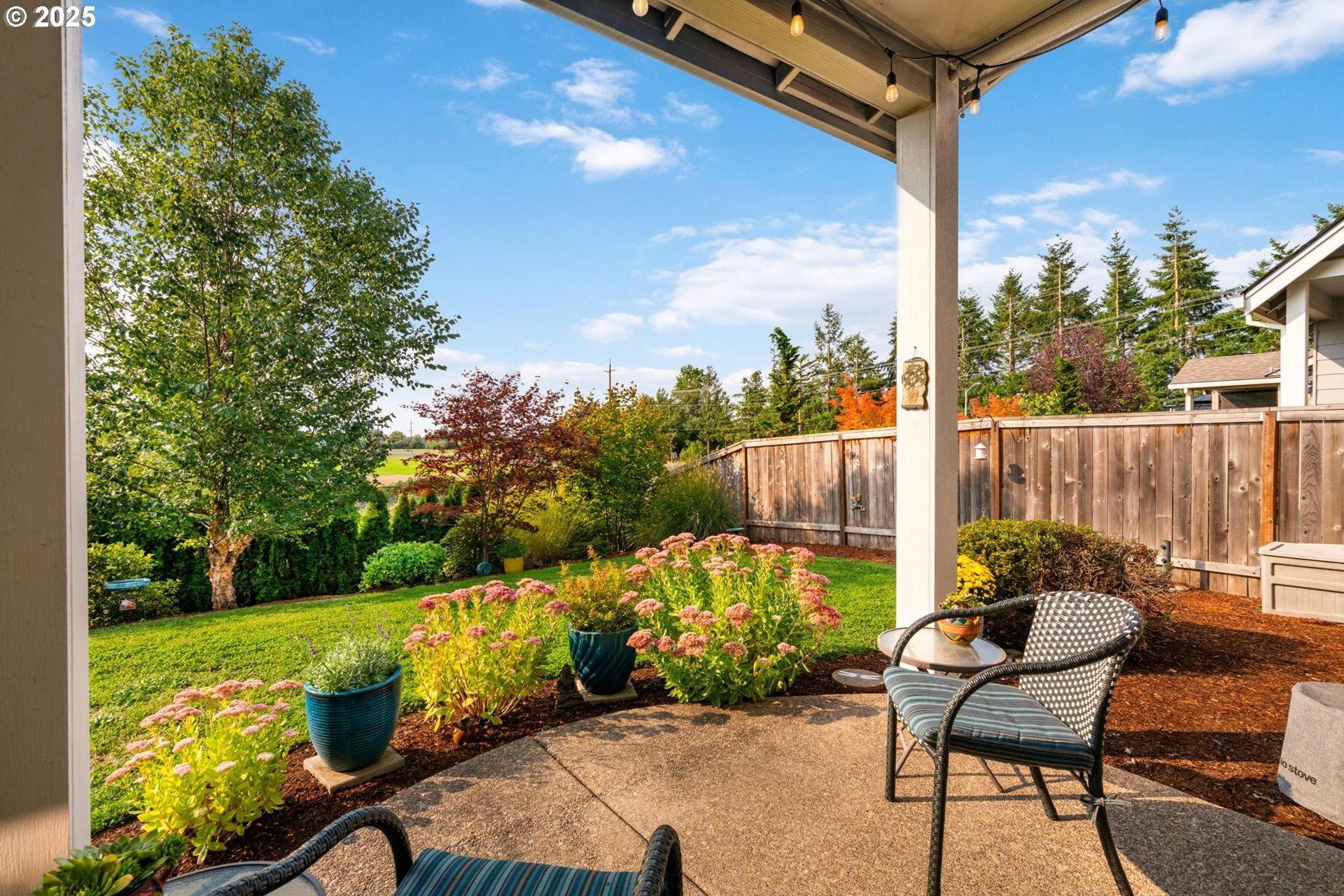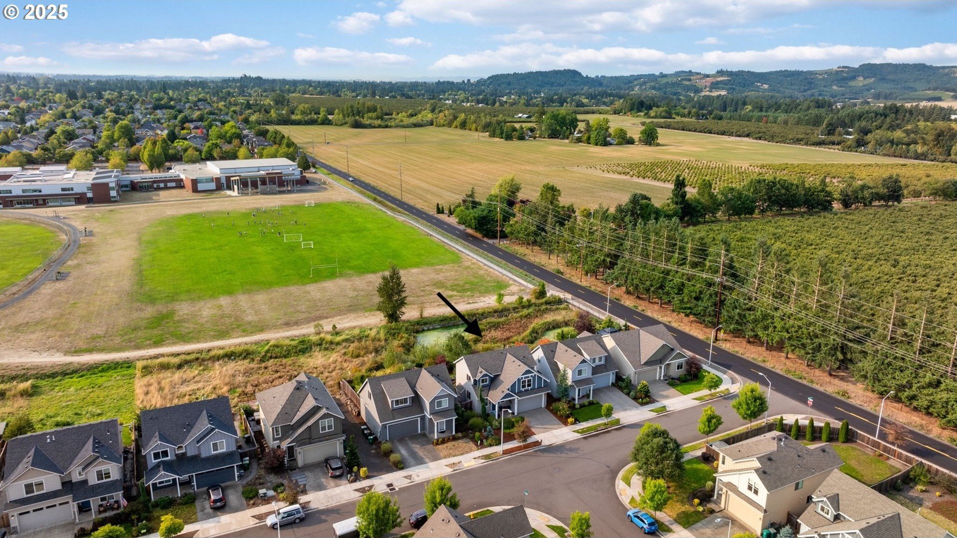 Welcome to this gorgeous, bright move-in ready 4 bedroom 2.5 bath home in a very desirable newer neighborhood near elementary & middle schools with no HOA! Beautiful upgraded waterproof stone polymer composite (SPC) floors installed throughout the main floor, updated powder room & stairs in April 2025. Kitchen has granite counters, nice SS appliances and pantry. Convenient upstairs laundry room (cabinet stays), 4th bed/bonus room is huge, and you'll find custom roman shades and faux wood blinds throughout the home. Now, step out back to relax in your lovely, secluded backyard with no neighbors behind you. Cool off on the patio on those hot days with installed mister and sun shades on all three sides (they also serve to keep rain out!), sprinkler system front/back and bonus, a fruitful blueberry bush. All appliances & TV's are included! Enjoy the many local wineries, breweries and distilleries or spend some time in charming downtown Newberg. Don't wait to check out this beautiful, well cared for home!