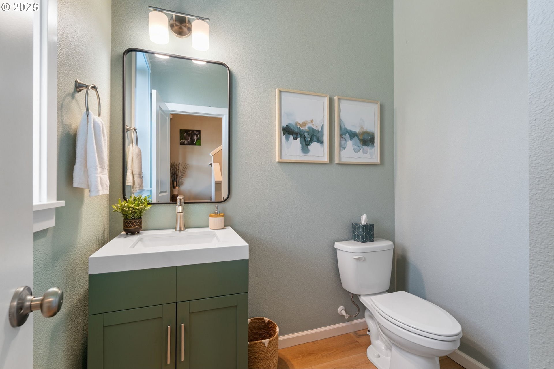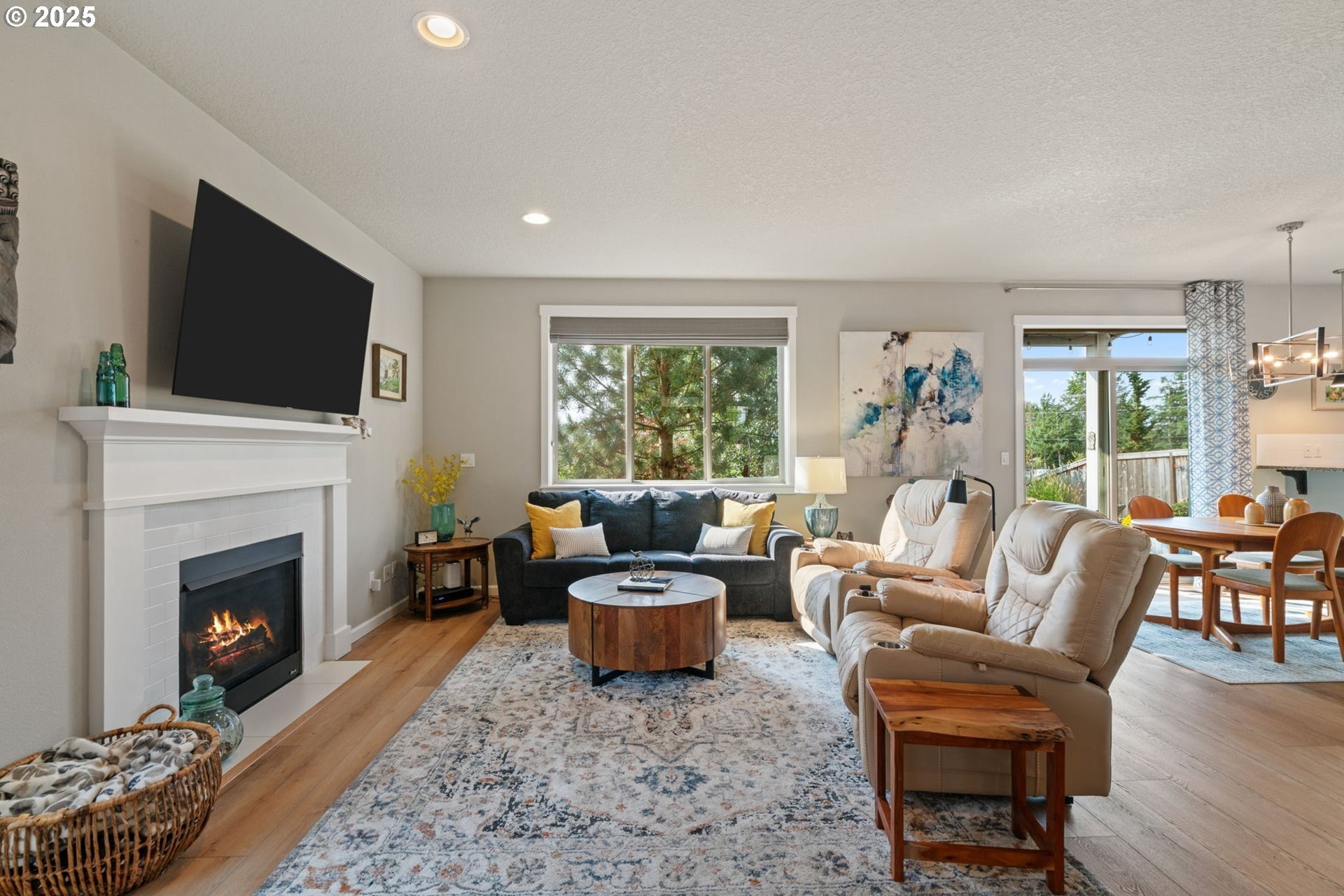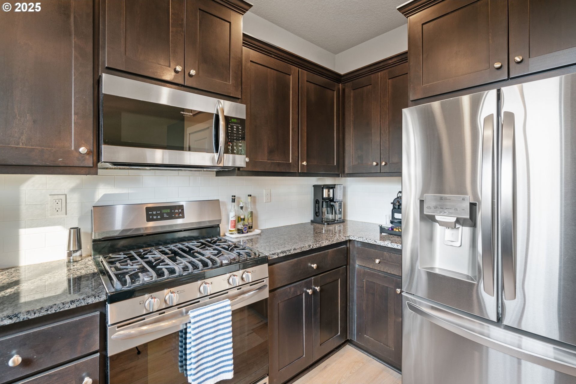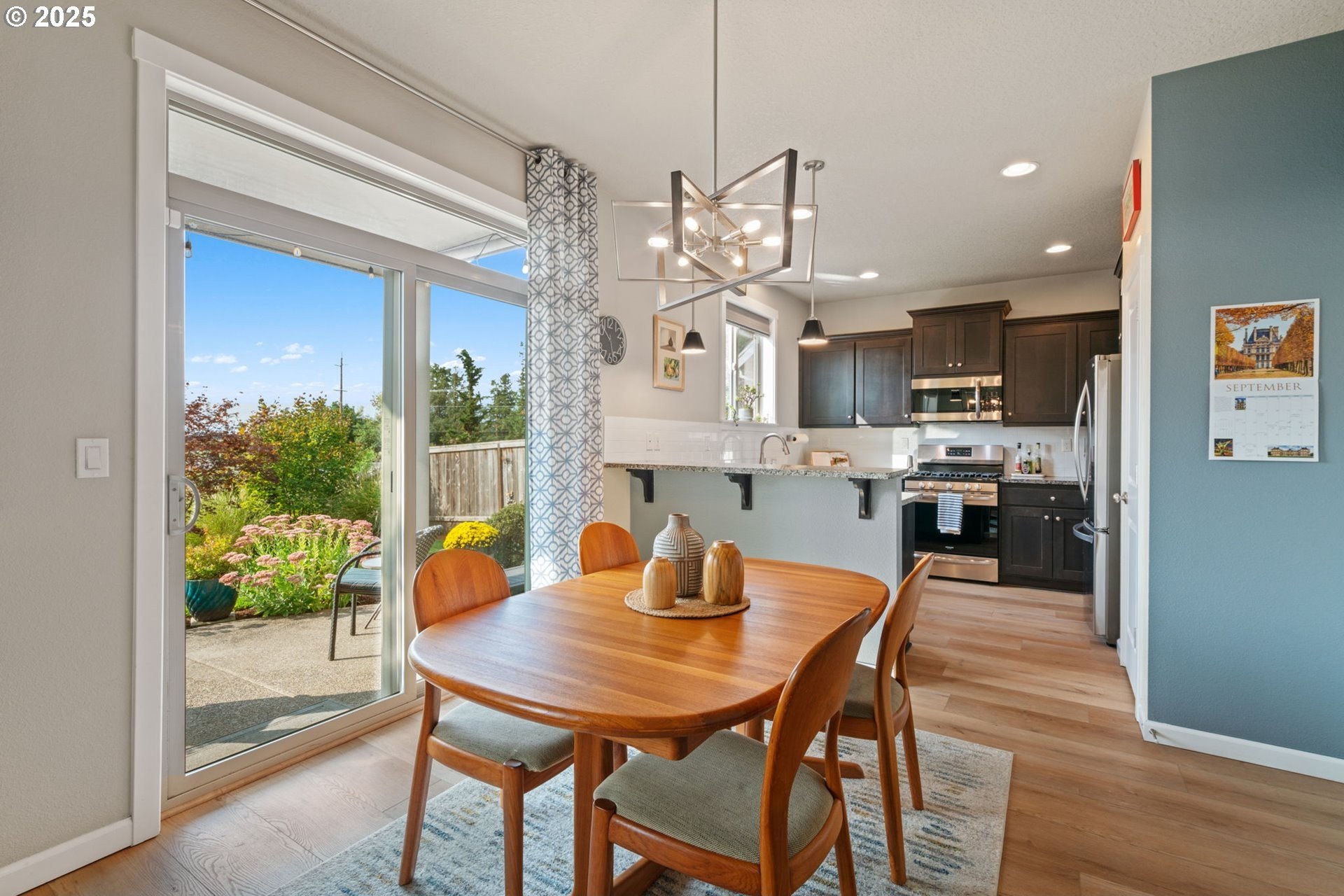 Welcome to this gorgeous, bright move-in ready 4 bedroom 2.5 bath home in a very desirable newer neighborhood near elementary & middle schools with no HOA! Beautiful upgraded waterproof stone polymer composite (SPC) floors installed throughout the main floor, updated powder room & stairs in April 2025. Kitchen has granite counters, nice SS appliances and pantry. Convenient upstairs laundry room (cabinet stays), 4th bed/bonus room is huge, and you'll find custom roman shades and faux wood blinds throughout the home. Now, step out back to relax in your lovely, secluded backyard with no neighbors behind you. Cool off on the patio on those hot days with installed mister and sun shades on all three sides (they also serve to keep rain out!), sprinkler system front/back and bonus, a fruitful blueberry bush. All appliances & TV's are included! Enjoy the many local wineries, breweries and distilleries or spend some time in charming downtown Newberg. Don't wait to check out this beautiful, well cared for home!
