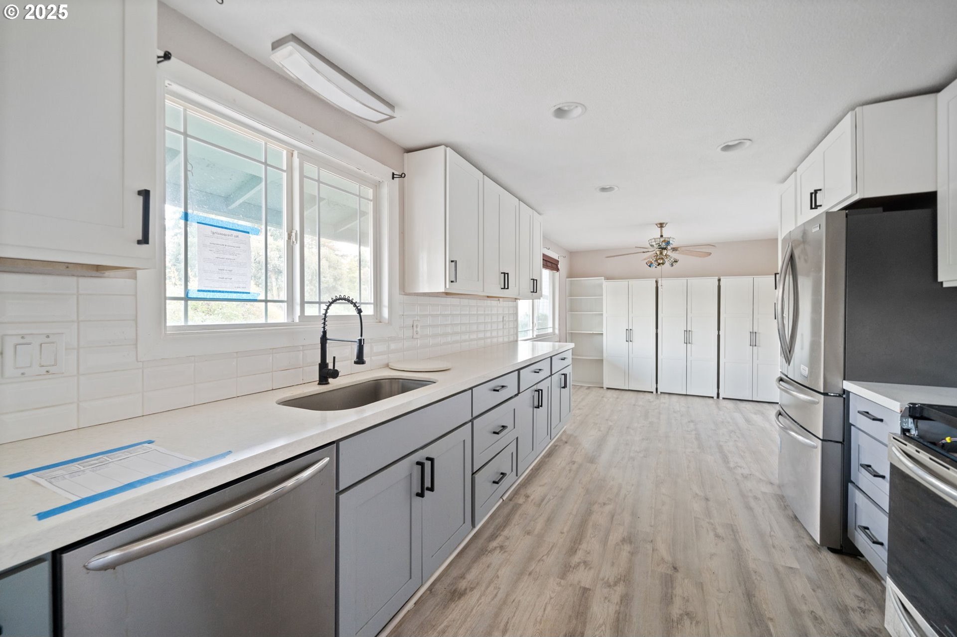 Just listed! HUD owned tri-level home. Previous updates include: kitchen with modern cabinets, quartz countertops, stainless appliances and updated flooring, as well as refreshed bathrooms. All carpeting has been removed, offering a clean slate and a great opportunity to bring this home back to its former splendor at an attractive value. Offering 2,148 square feet, the home includes four bedrooms plus an office, two and a half baths, a large open living room with pellet stove, and a spacious family room with fireplace, both opening to a large fenced backyard with a patio and a storage shed. The lower level also features a large utility room. Comfort is enhanced with a ductless heat pump with three zones. Additional features include a two-car attached garage and a carport that could be converted to accommodate a larger RV. This home offers generous space and versatile living areas, with plenty of room for relaxing, entertaining, and even a home office. With its clean slate and thoughtful updates, it presents a wonderful opportunity to add your personal touches and make it your own.