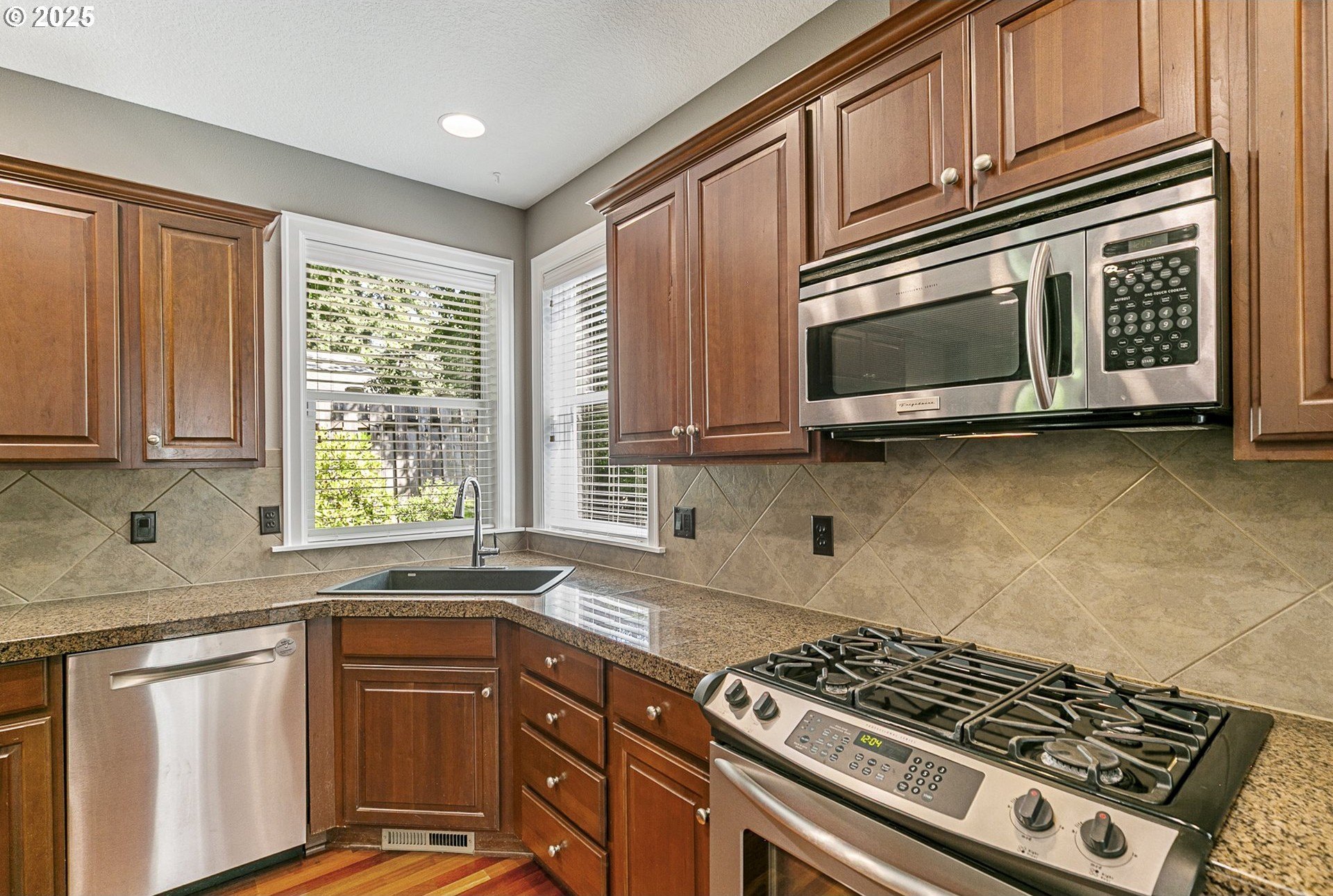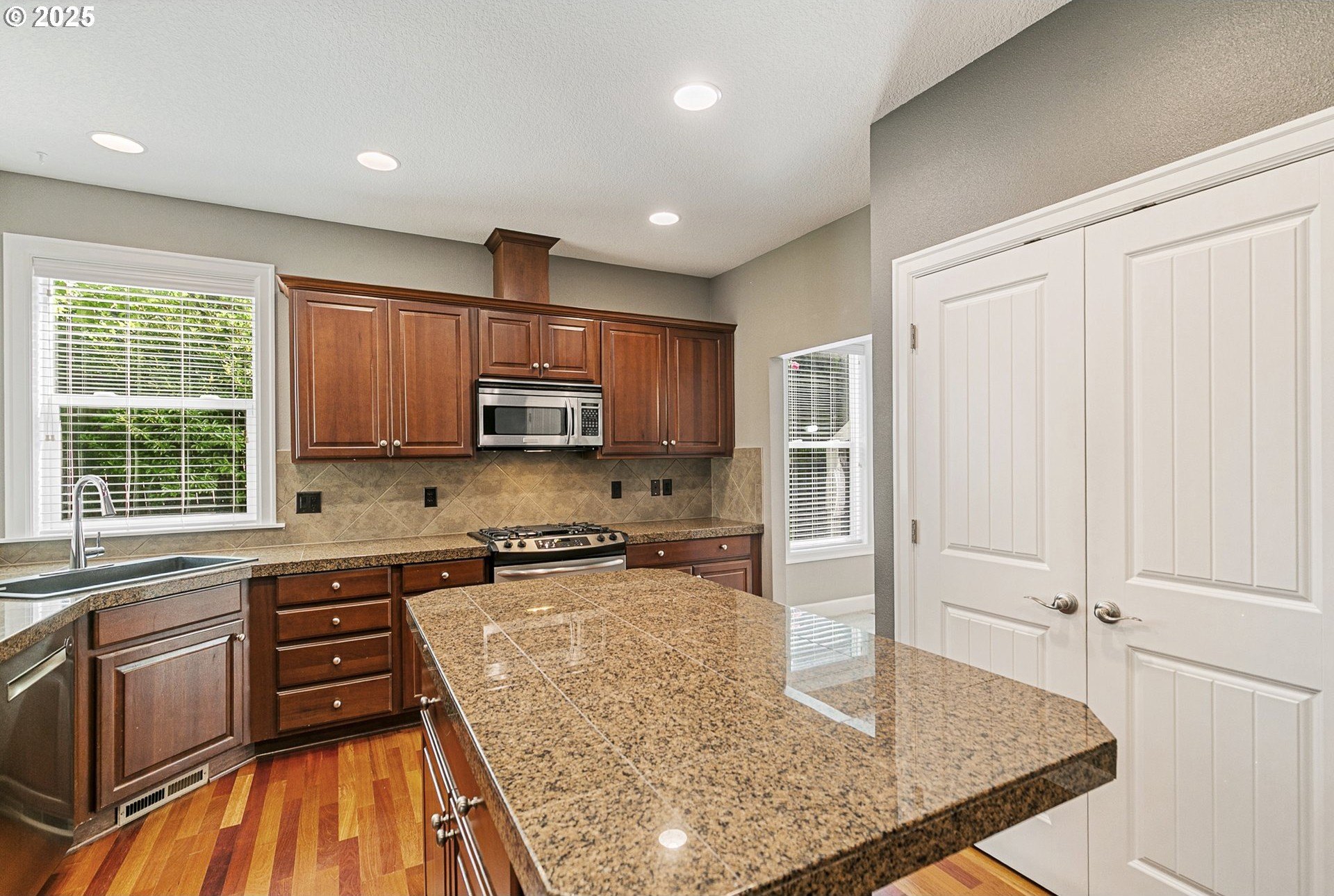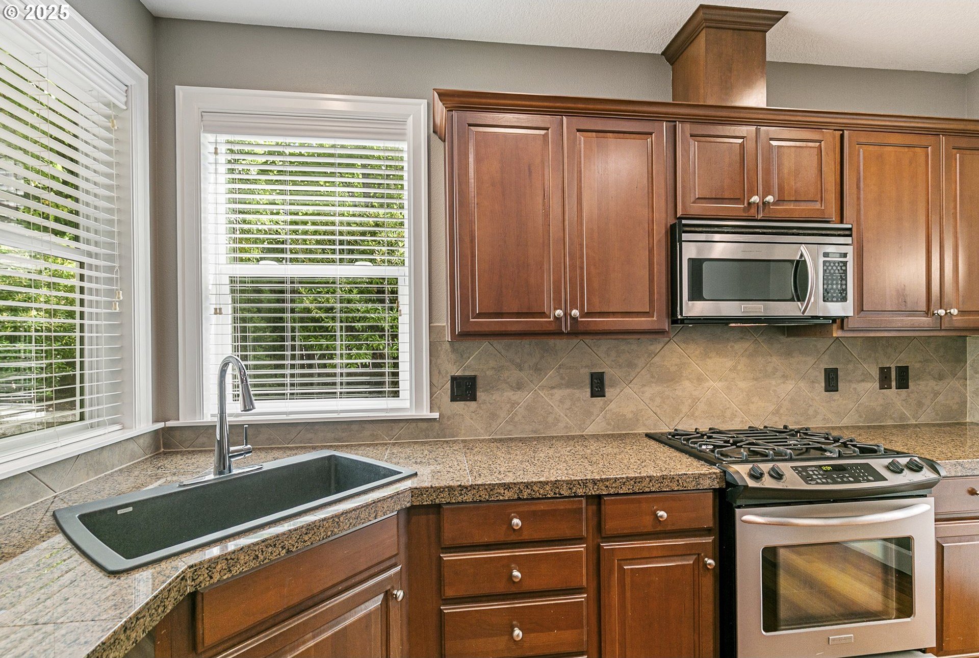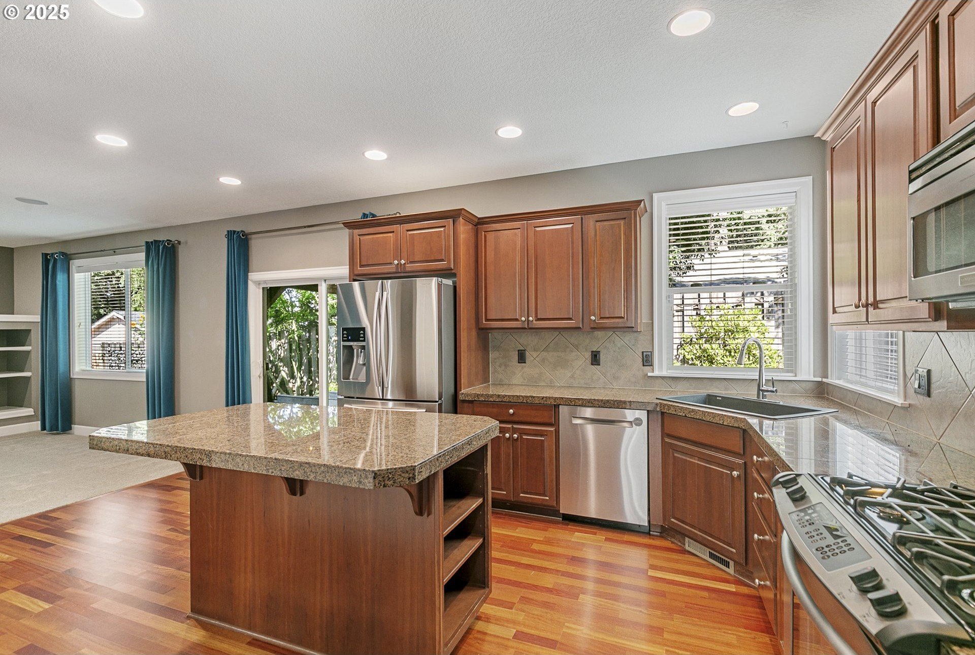 Immaculate, move-in ready home in a great location! Tucked away on a private street, yet just minutes from shopping, dining, and conveniences. Step inside and you’re greeted by warm, inviting spaces designed for both everyday living and entertaining. The kitchen features granite counters and overlooks the family room with its cozy gas fireplace and built-in speakers. A separate living room with built-in speakers and main-floor office provide space for work, study, or relaxation. Upstairs, you’ll find a spacious great room that’s perfect for movie nights, a game or workout room, or a play space. The primary suite is a true retreat, with room for a small office, reading nook, or art space. Outdoors, the stamped concrete covered patio, custom water feature, multi zone irrigation system and welcoming backyard create a private oasis — perfect for gatherings, summer barbecues, or simply unwinding at the end of the day next to the propane fire table. There’s even room for RV parking. Recent updates include a new roof with a transferrable warranty, new carpet throughout, and fresh exterior paint, giving it outstanding curb appeal and worry-free maintenance for years to come. Thoughtful design details and a stylish interior make this home truly special. If you’re looking for comfort, convenience, and a place that feels move-in ready from day one, this is the one!