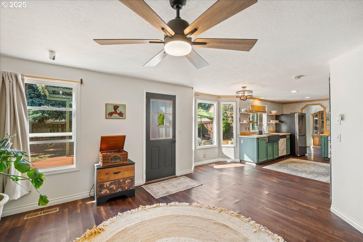 Discover an inviting 4-bed, 2.5-bath home with 1938 sq ft of comfortable living in Hillsboro, OR. This beautifully updated residence on NE Farmcrest St features a completely remodeled kitchen with Fisher & Paykel 4-range cooktop and LG French door refrigerator with craft ice, complemented by a stunningr finished French country butcher block countertop. Brand new light fixtures, Milgard windows with a 10-year transferable warranty, and fresh Swiss Coffee interior paint bring a bright, modern aura. Enjoy outdoor leisure with freshly painted front and back decks and a new RV Parking Gate. All bathrooms are updated with new sinks, toilets, and showers. Conveniently located near major Intel campuses and the Hwy 26 corridor, the property offers expansive RV parking and is situated in a top-rated school district. With a new LG washer and dryer set, this home seamlessly blends style and functionality. Walk, bike or wheel to Costco, New Seasons Market & the Vibrant Orenco Station area to enjoy the Sunday Farmers market, Light Rail transportation and the numerous Seasonal Celebrations like OrencoFest & Winter Village with an outdoor ice rink!