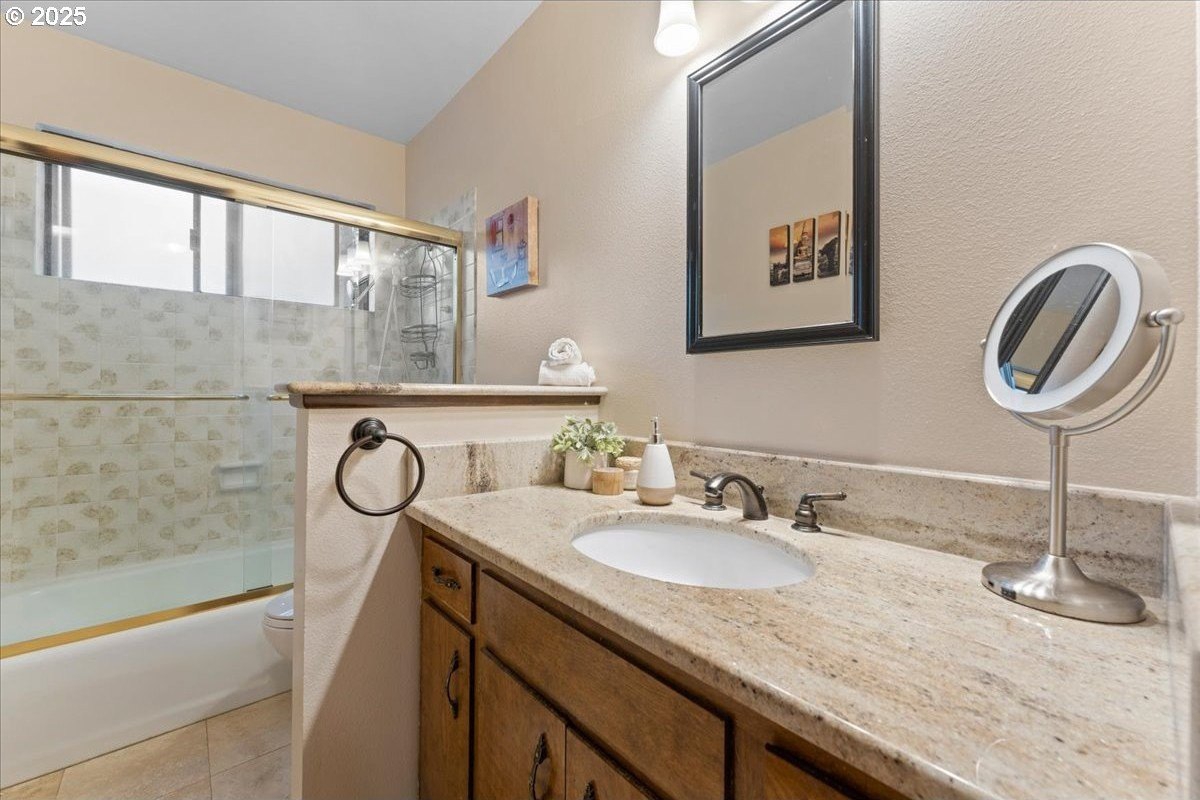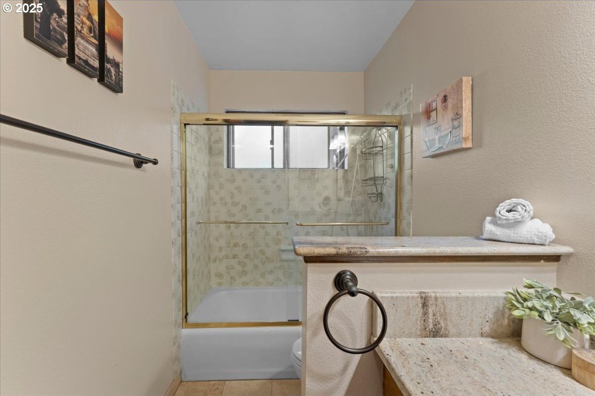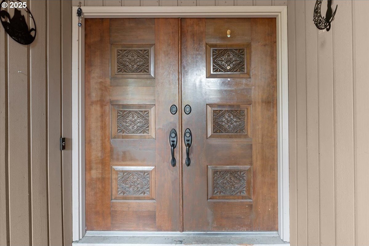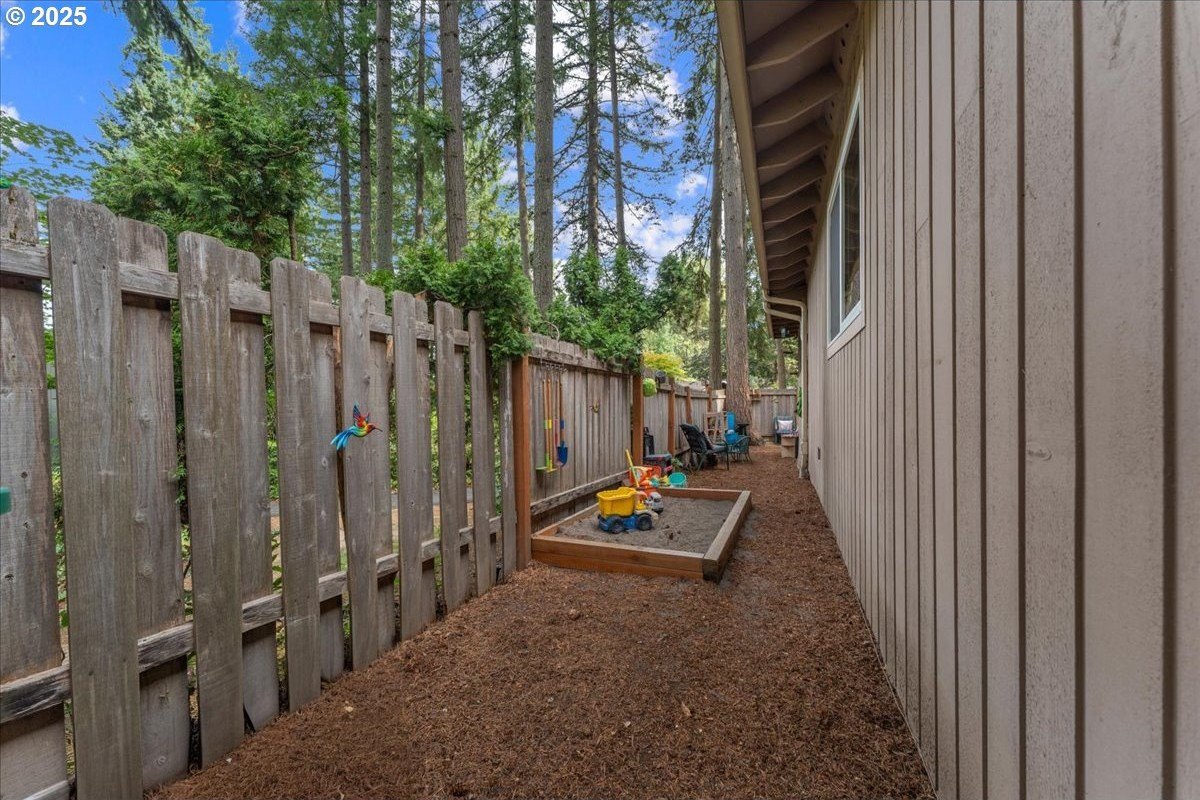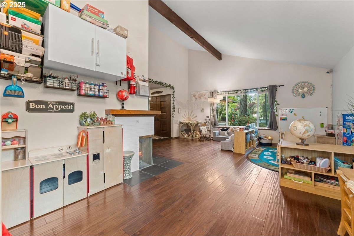Mid-century charm, one-level living, AND a serene wooded view! This beautifully designed Hyland Hills home delivers it all. Featuring vaulted ceilings with exposed beams, a wide double-door entry, an atrium with skylight, and two fireplaces - every detail celebrates timeless architecture. The circular floor plan offers separate living with two bedrooms and a full bath on one side, and a spacious primary suite on the other. At the center of the home, the signature atrium has been finished with a heating vent, making it usable year-round. Stunning features include granite countertops throughout, engineered hardwood floors, and gas range cooking. Off the back, the enclosed porch is screened in with views of the wooded common area. All with low-maintenance landscaping, fenced yard, and private-drive setting create a serene backdrop for entertaining or relaxing. Located down the pathway to the neighborhood pool and clubhouse with LOW HOA Dues that cover front yard maintenance, and close to popular schools: Fir Grove, Highland Park, and Southridge. Surrounded by multiple parks and trails, with Nike HQ, Progress Ridge, dining, shopping, and Hwy 217 just minutes away. This home blends mid-century design with modern updates for comfort, function, and style.. all in one of Beaverton’s most coveted neighborhoods.