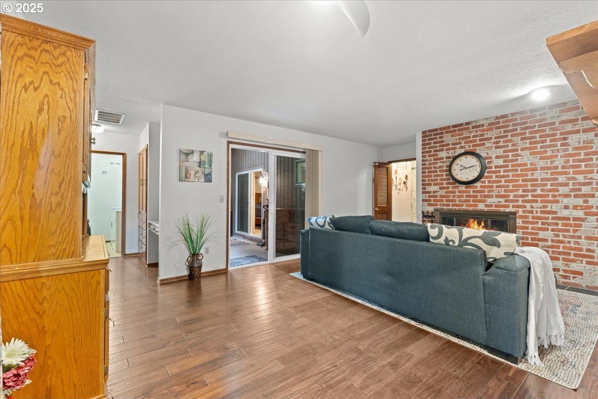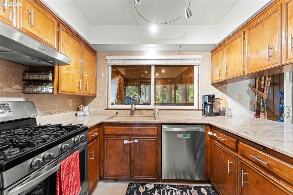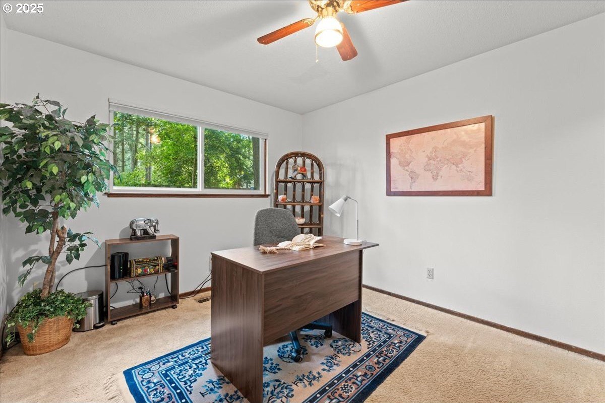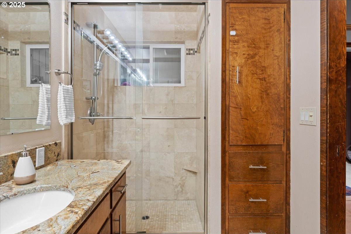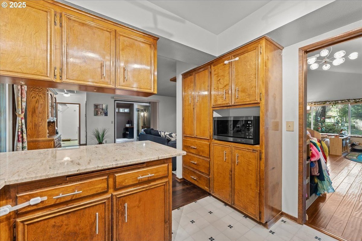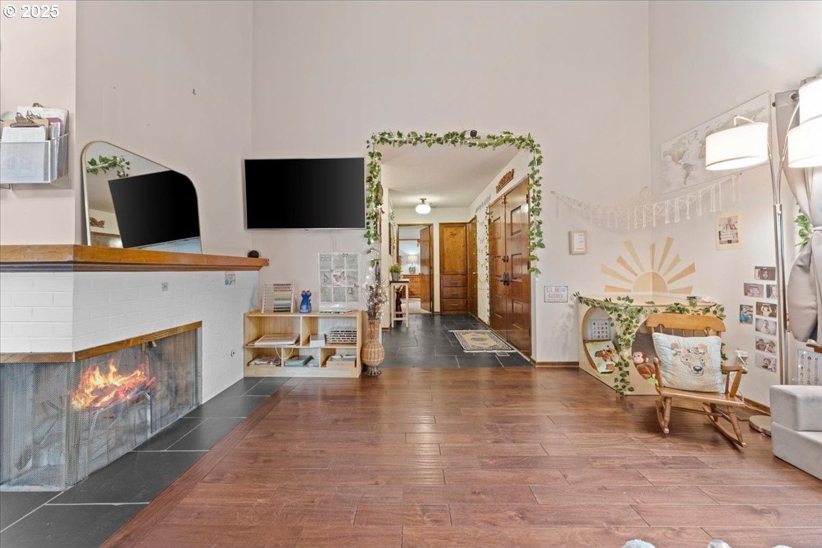 Mid-century charm, one-level living, AND a serene wooded view! This beautifully designed Hyland Hills home delivers it all. Featuring vaulted ceilings with exposed beams, a wide double-door entry, an atrium with skylight, and two fireplaces - every detail celebrates timeless architecture. The circular floor plan offers separate living with two bedrooms and a full bath on one side, and a spacious primary suite on the other. At the center of the home, the signature atrium has been finished with a heating vent, making it usable year-round. Stunning features include granite countertops throughout, engineered hardwood floors, and gas range cooking. Off the back, the enclosed porch is screened in with views of the wooded common area. All with low-maintenance landscaping, fenced yard, and private-drive setting create a serene backdrop for entertaining or relaxing. Located down the pathway to the neighborhood pool and clubhouse with LOW HOA Dues that cover front yard maintenance, and close to popular schools: Fir Grove, Highland Park, and Southridge. Surrounded by multiple parks and trails, with Nike HQ, Progress Ridge, dining, shopping, and Hwy 217 just minutes away. This home blends mid-century design with modern updates for comfort, function, and style.. all in one of Beaverton’s most coveted neighborhoods.