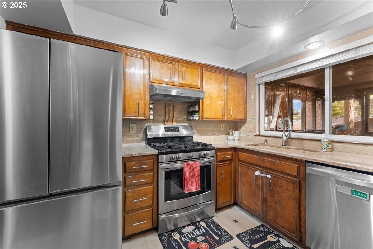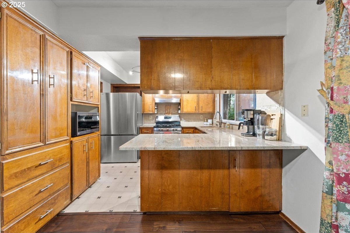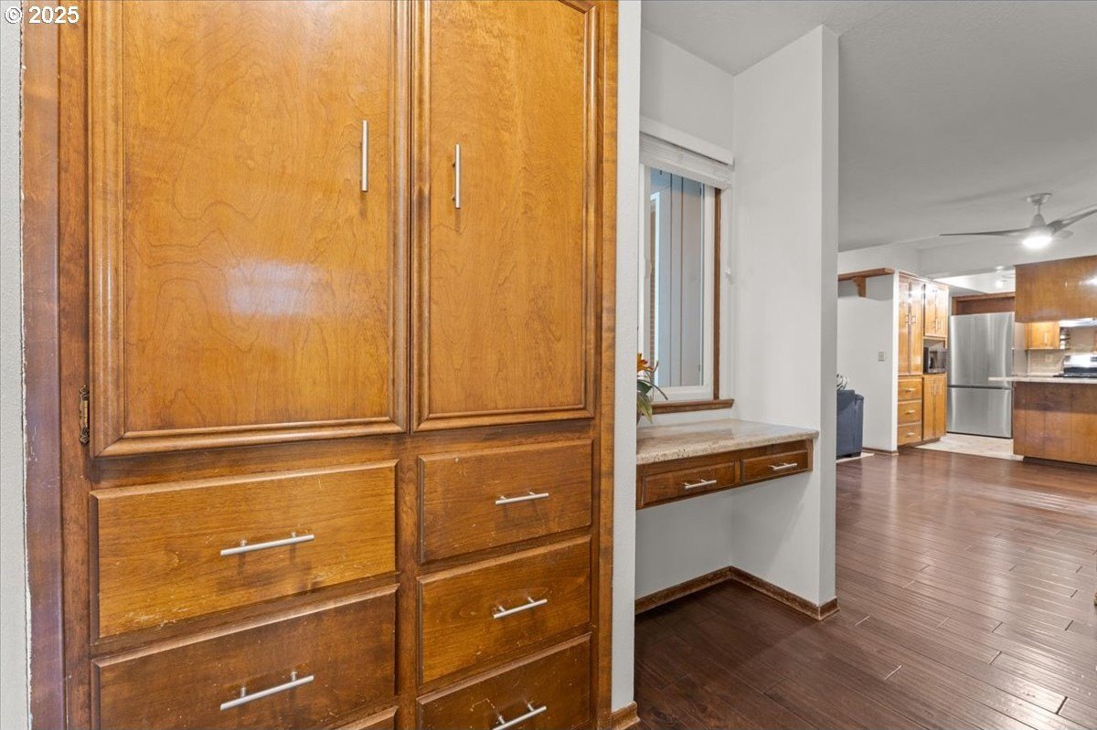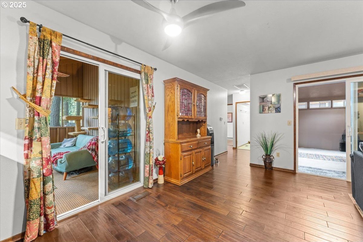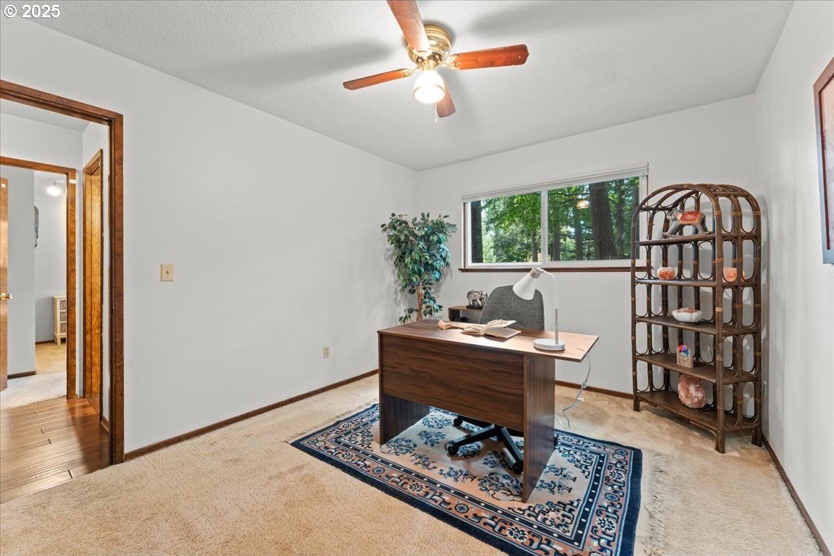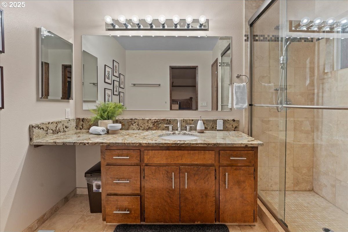 Mid-century charm, one-level living, AND a serene wooded view! This beautifully designed Hyland Hills home delivers it all. Featuring vaulted ceilings with exposed beams, a wide double-door entry, an atrium with skylight, and two fireplaces - every detail celebrates timeless architecture. The circular floor plan offers separate living with two bedrooms and a full bath on one side, and a spacious primary suite on the other. At the center of the home, the signature atrium has been finished with a heating vent, making it usable year-round. Stunning features include granite countertops throughout, engineered hardwood floors, and gas range cooking. Off the back, the enclosed porch is screened in with views of the wooded common area. All with low-maintenance landscaping, fenced yard, and private-drive setting create a serene backdrop for entertaining or relaxing. Located down the pathway to the neighborhood pool and clubhouse with LOW HOA Dues that cover front yard maintenance, and close to popular schools: Fir Grove, Highland Park, and Southridge. Surrounded by multiple parks and trails, with Nike HQ, Progress Ridge, dining, shopping, and Hwy 217 just minutes away. This home blends mid-century design with modern updates for comfort, function, and style.. all in one of Beaverton’s most coveted neighborhoods.