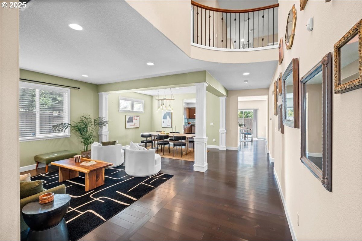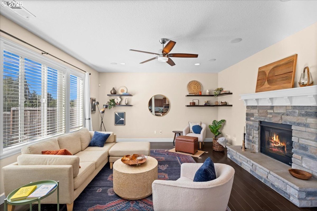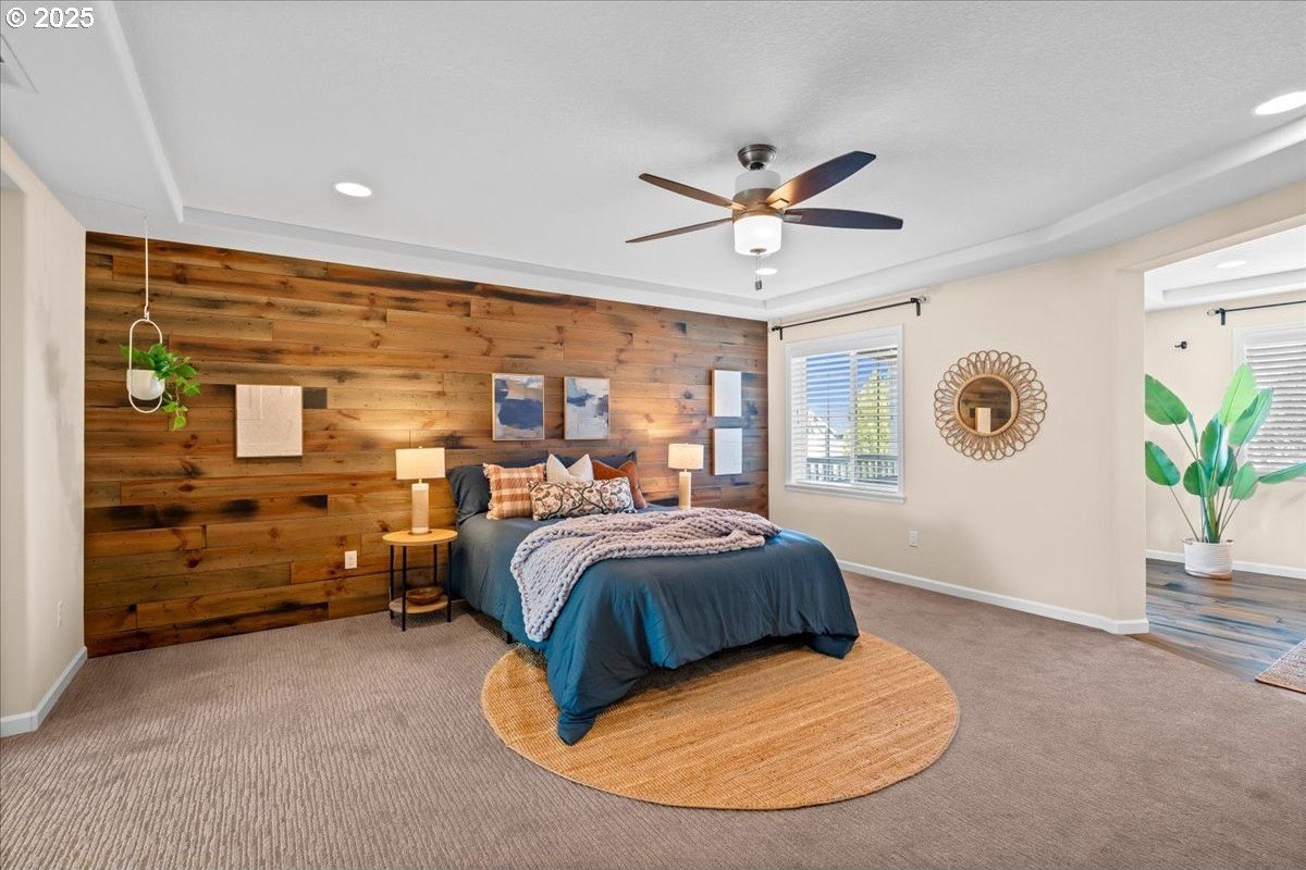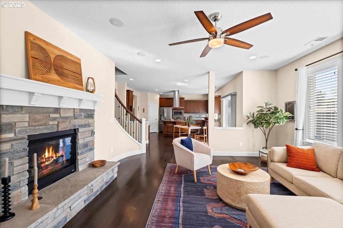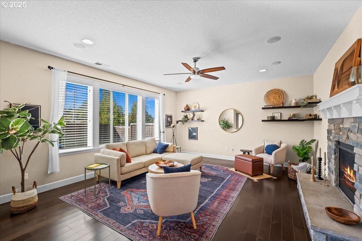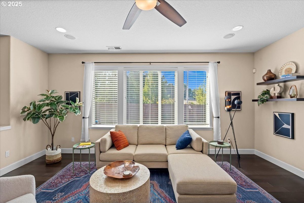 Refreshed and ready for you- this home really has it all! Every room feels oversized yet cozy. It offers both formal and informal living and dining spaces on the ground floor with the grand living area and formal dining room as you walk through the front door. As you move through, you are greeted by a more relaxed yet perfectly functional open kitchen with quartz counters, stainless steel, gas appliances, a large pantry and an extra work space. What's more, this welcoming area opens up to a dining area and large family room with tons of light and a gas fireplace! Rounding out the ground floor is a half bathroom, large storage closet, and a great home office with built-ins, perfect for anyone working remotely. Enjoy the fully fenced back yard with pro landscaping, a paved patio, minimal grass and storage shed. Upstairs you'll find a super chic primary suite with a covered veranda for extra relaxation as well as a vast spa-like ensuite with soaking tub, shower, WC, and a generous closet. Four other bedrooms, laundry and full bath round out the upper level. Additional features include A/C, ceiling fans, built-in speakers, window coverings, a unique wine/storage room in the 3rd bay of the garage (convertible back to a 3-car tandem if desired). Whats more, this grand home is located on a quiet, cul-de-sac-like street, it is just blocks from Ridges Elementary and a nearby play area. Enjoy easy access to I-5, Hwy 99, Roy Rogers Road, top schools, high-tech employers and nearby shopping and dining. BUYERS, take advantage of a FREE interest rate buy down with our preferred lender—enjoy a lower mortgage rate for the first year, ask for details. Best price per square foot in Sherwood! Don't miss out, the sellers are motivated to work with you!