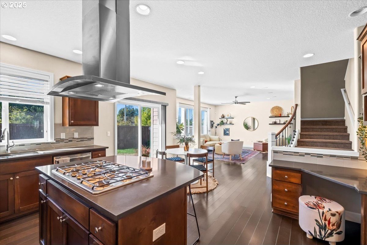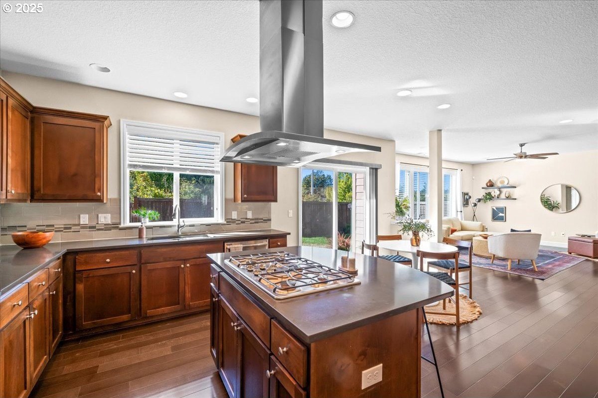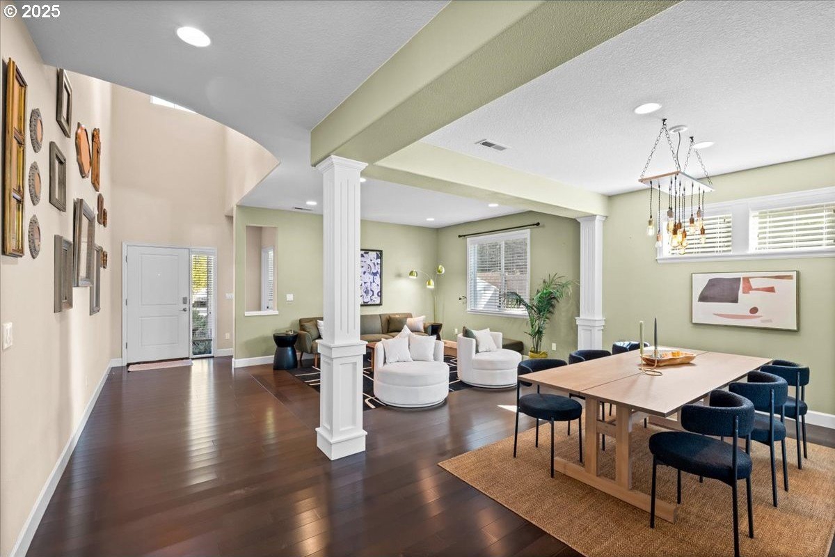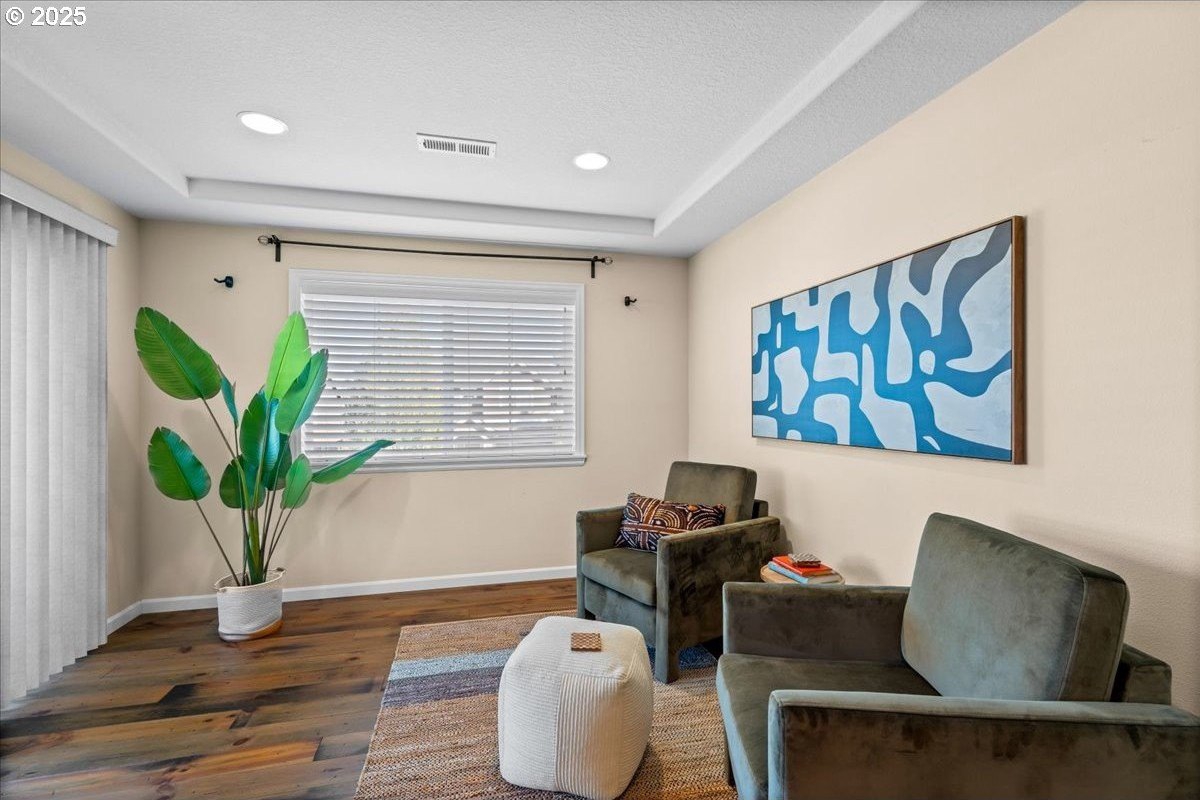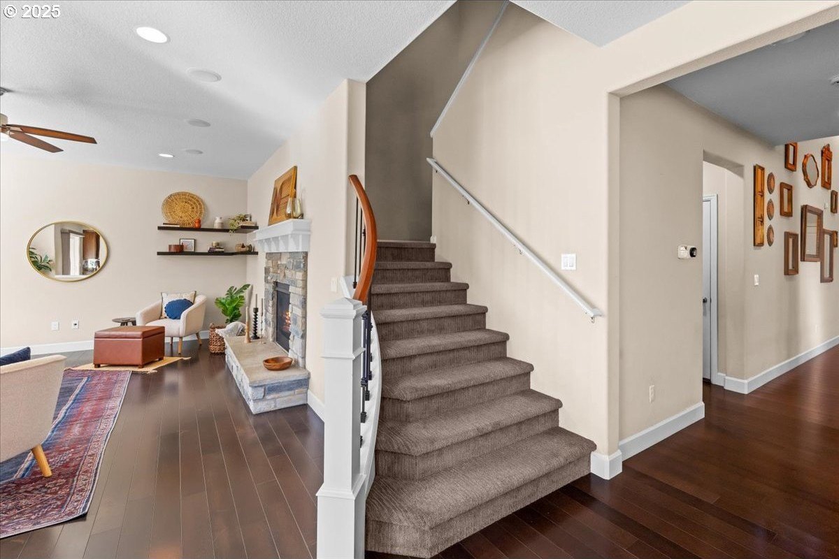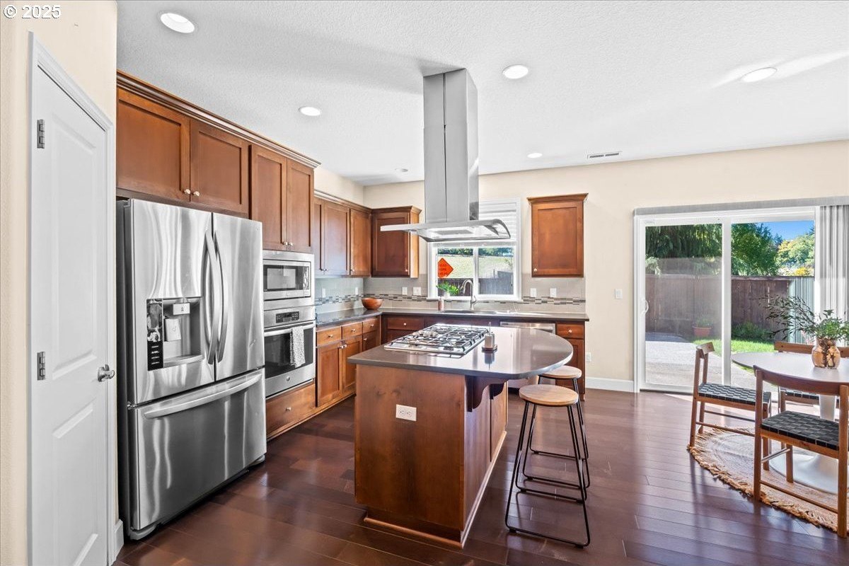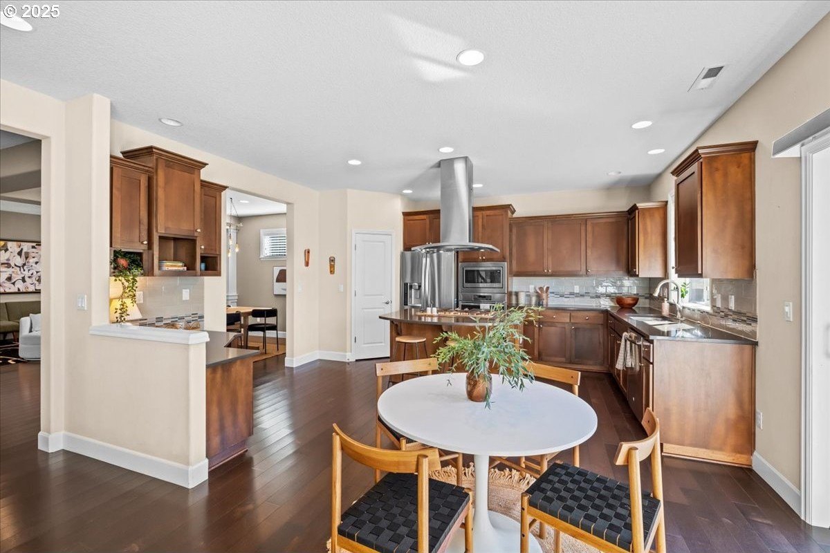 Refreshed and ready for you- this home really has it all! Every room feels oversized yet cozy. It offers both formal and informal living and dining spaces on the ground floor with the grand living area and formal dining room as you walk through the front door. As you move through, you are greeted by a more relaxed yet perfectly functional open kitchen with quartz counters, stainless steel, gas appliances, a large pantry and an extra work space. What's more, this welcoming area opens up to a dining area and large family room with tons of light and a gas fireplace! Rounding out the ground floor is a half bathroom, large storage closet, and a great home office with built-ins, perfect for anyone working remotely. Enjoy the fully fenced back yard with pro landscaping, a paved patio, minimal grass and storage shed. Upstairs you'll find a super chic primary suite with a covered veranda for extra relaxation as well as a vast spa-like ensuite with soaking tub, shower, WC, and a generous closet. Four other bedrooms, laundry and full bath round out the upper level. Additional features include A/C, ceiling fans, built-in speakers, window coverings, a unique wine/storage room in the 3rd bay of the garage (convertible back to a 3-car tandem if desired). Whats more, this grand home is located on a quiet, cul-de-sac-like street, it is just blocks from Ridges Elementary and a nearby play area. Enjoy easy access to I-5, Hwy 99, Roy Rogers Road, top schools, high-tech employers and nearby shopping and dining. BUYERS, take advantage of a FREE interest rate buy down with our preferred lender—enjoy a lower mortgage rate for the first year, ask for details. Best price per square foot in Sherwood! Don't miss out, the sellers are motivated to work with you!