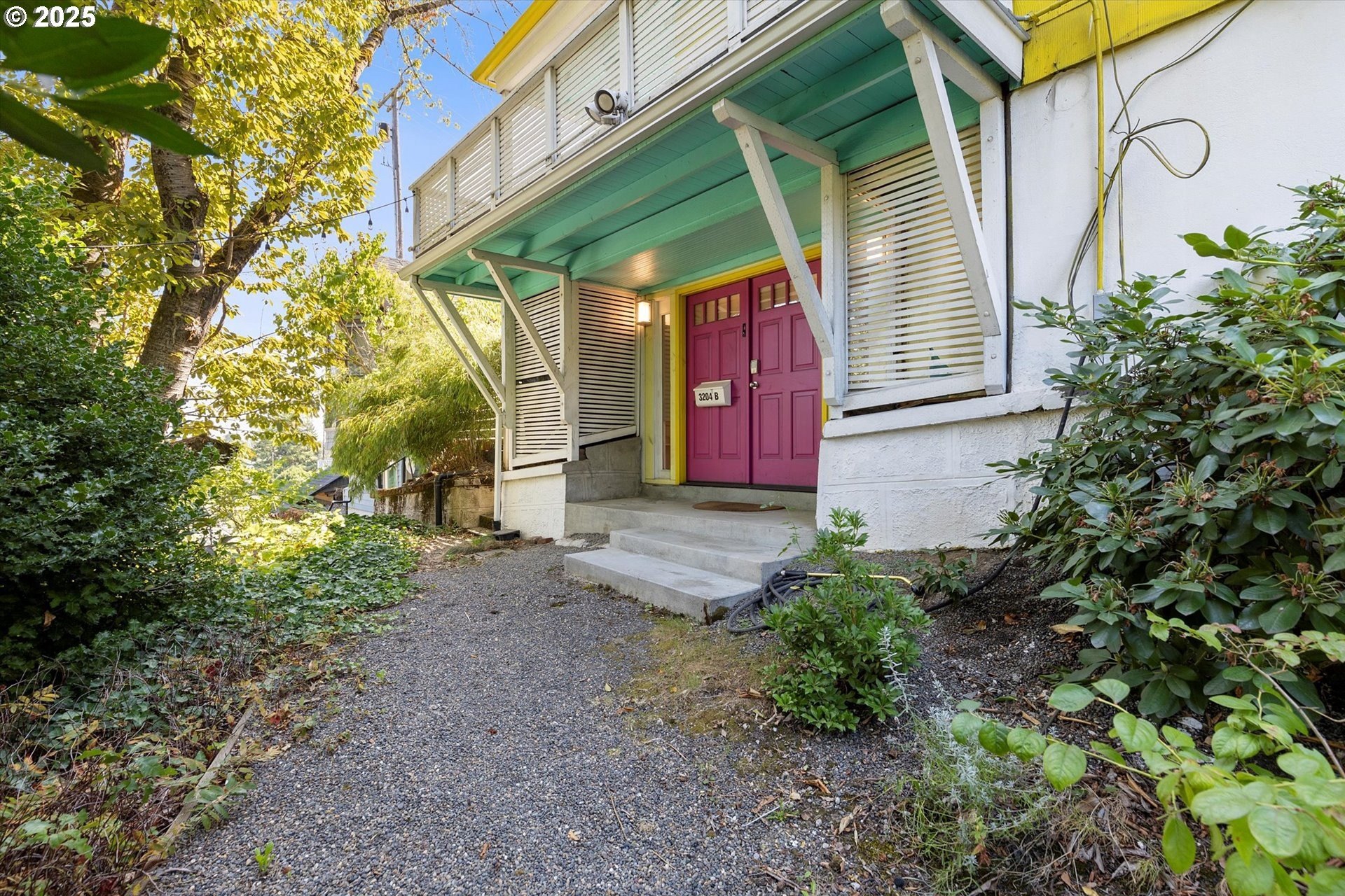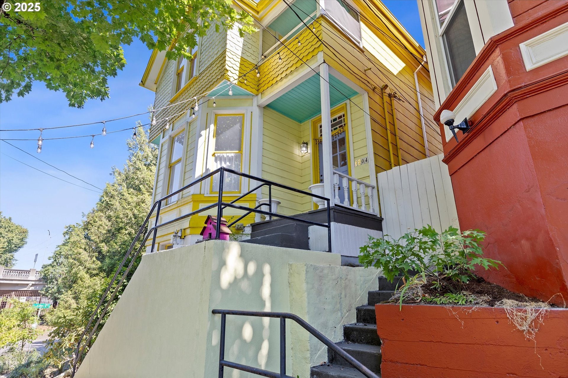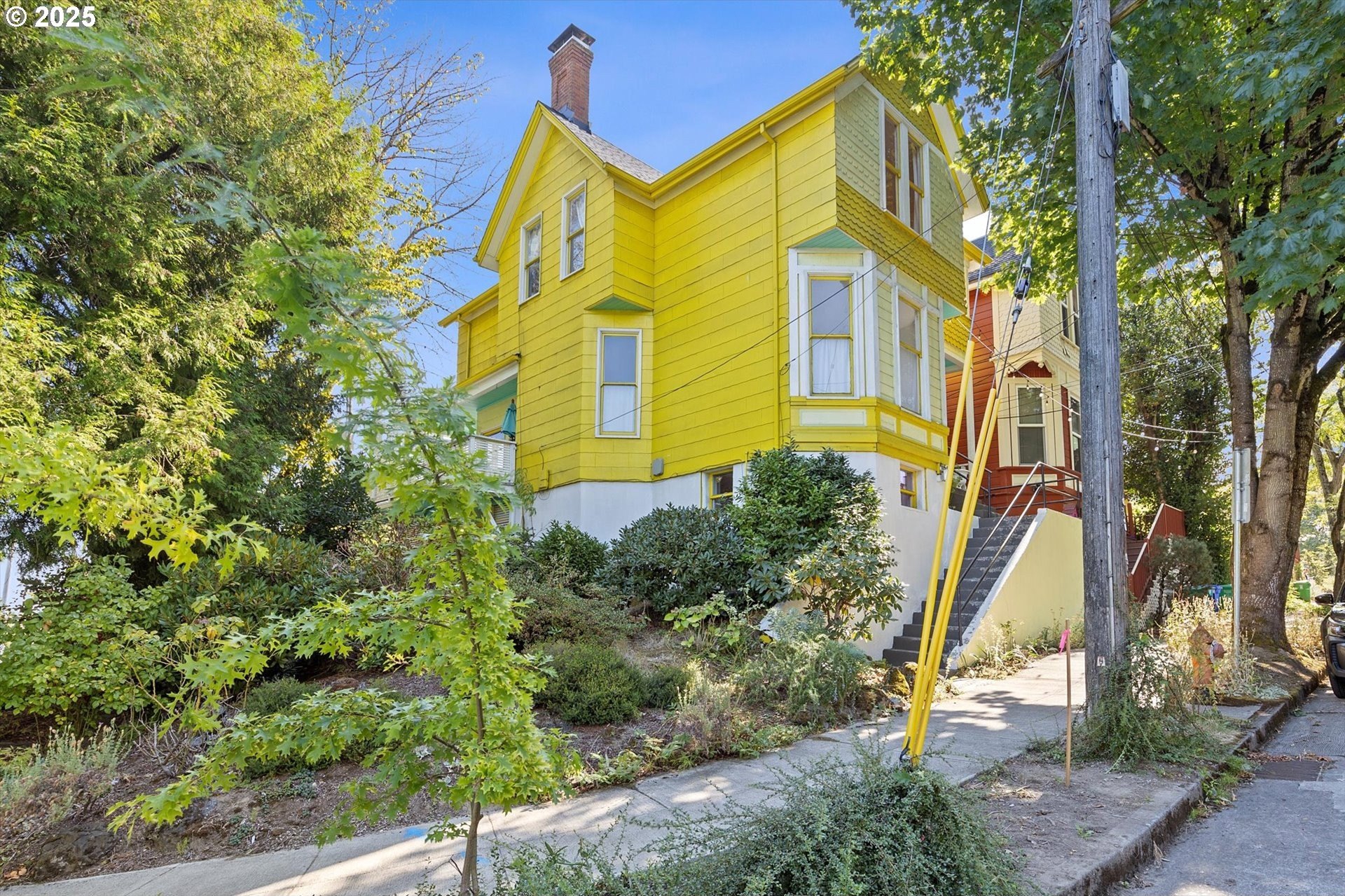 This two-unit Queen Anne Victorian home conveniently located near OHSU, the Tram, South Waterfront, and the Gibbs Street Pedestrian Bridge, blends timeless character with modern versatility. The main and upper levels feature a 3-bed, 2-bath residence with soaring ceilings, oversized original windows, and abundant natural light. Period details—fir floors, stained glass, and hand-carved newel posts—anchor the home, while an updated kitchen with stainless appliances adds modern functionality. Generous upstairs bedrooms capture city vistas and peek-a-boo river views. Outdoor living includes a large, partially covered deck and a private fenced courtyard. The ground-level unit, tucked into the mature landscape, offers spacious 1-bed, 1-bath dwelling with a full kitchen, living area, and its own dedicated entry. Whole-home improvements include separate electric meters, a newer sewer line, roof and gutters, and separate laundry facilities for each unit. This property is a rare opportunity for flexible living—whether owner-occupied with rental income, multi-generational living, or investment—in one of Portland’s oldest and most connected neighborhoods.