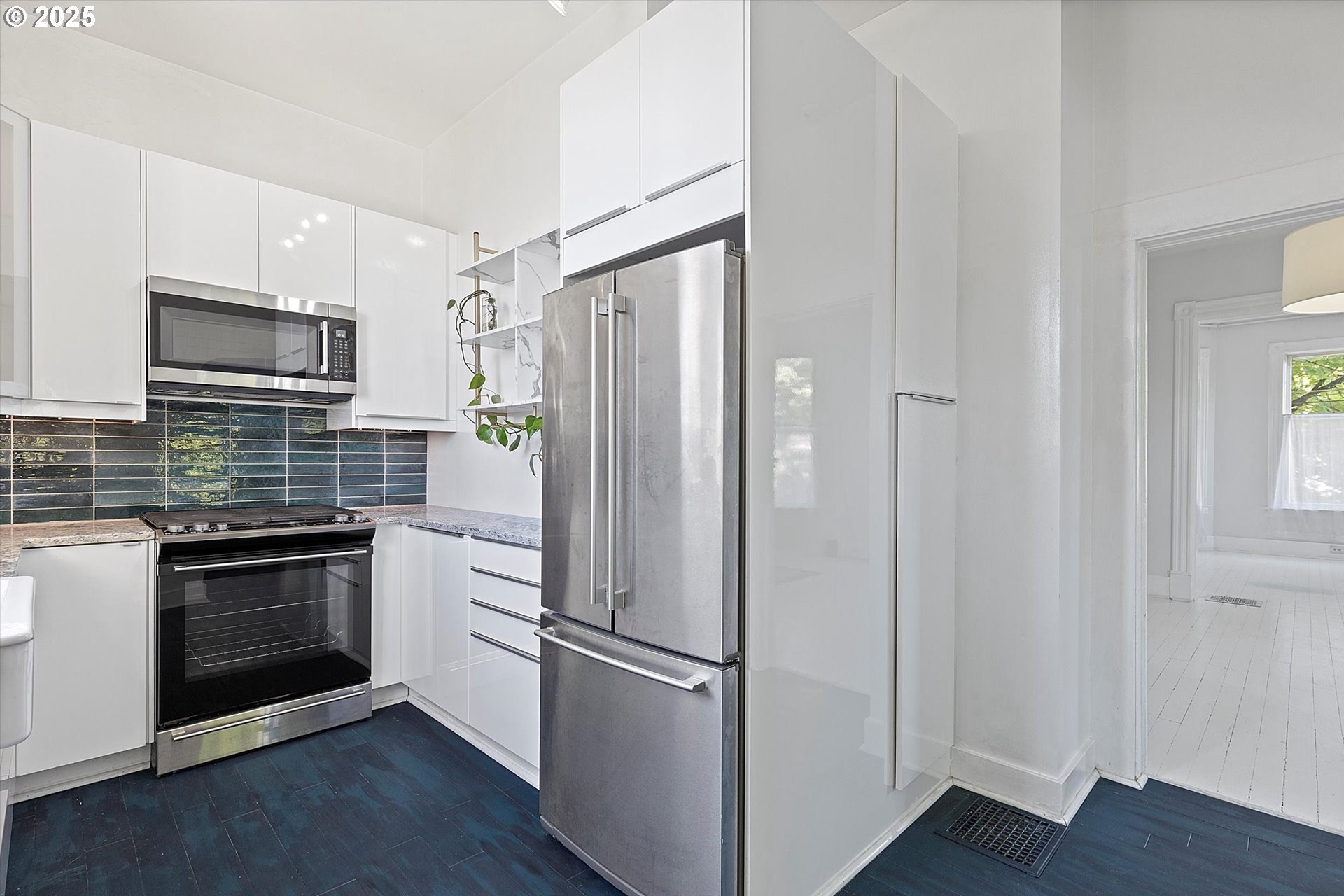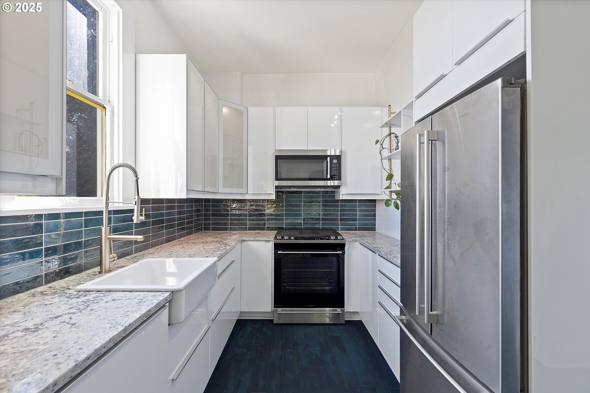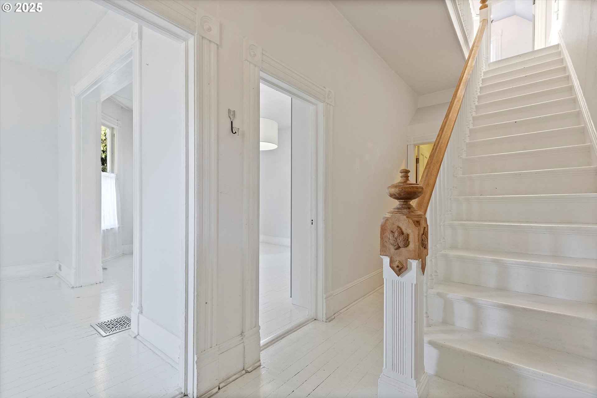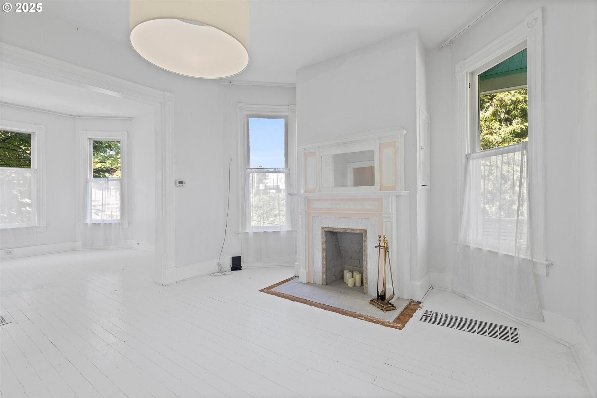 This two-unit Queen Anne Victorian home conveniently located near OHSU, the Tram, South Waterfront, and the Gibbs Street Pedestrian Bridge, blends timeless character with modern versatility. The main and upper levels feature a 3-bed, 2-bath residence with soaring ceilings, oversized original windows, and abundant natural light. Period details—fir floors, stained glass, and hand-carved newel posts—anchor the home, while an updated kitchen with stainless appliances adds modern functionality. Generous upstairs bedrooms capture city vistas and peek-a-boo river views. Outdoor living includes a large, partially covered deck and a private fenced courtyard. The ground-level unit, tucked into the mature landscape, offers spacious 1-bed, 1-bath dwelling with a full kitchen, living area, and its own dedicated entry. Whole-home improvements include separate electric meters, a newer sewer line, roof and gutters, and separate laundry facilities for each unit. This property is a rare opportunity for flexible living—whether owner-occupied with rental income, multi-generational living, or investment—in one of Portland’s oldest and most connected neighborhoods.