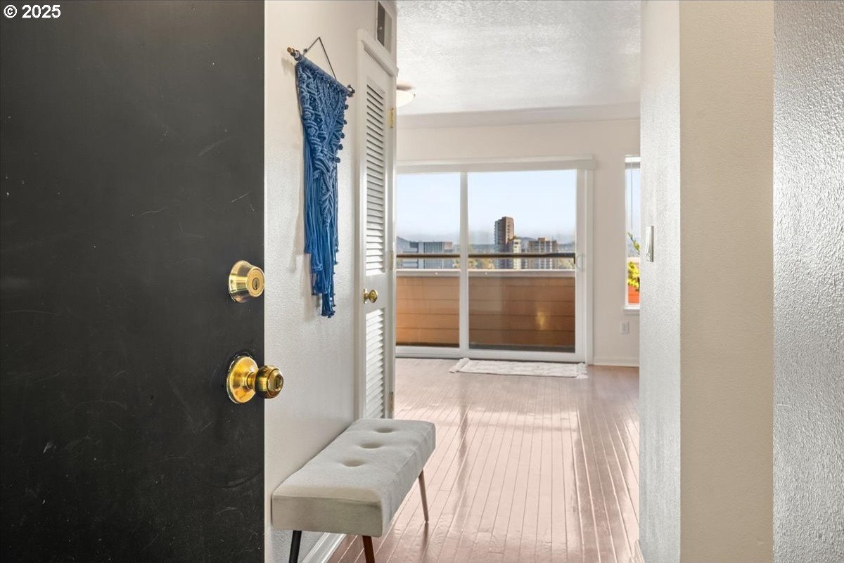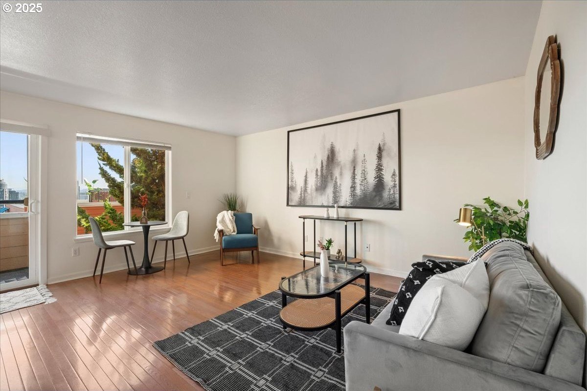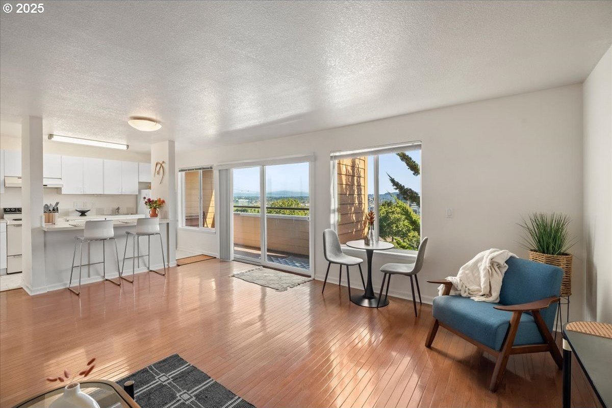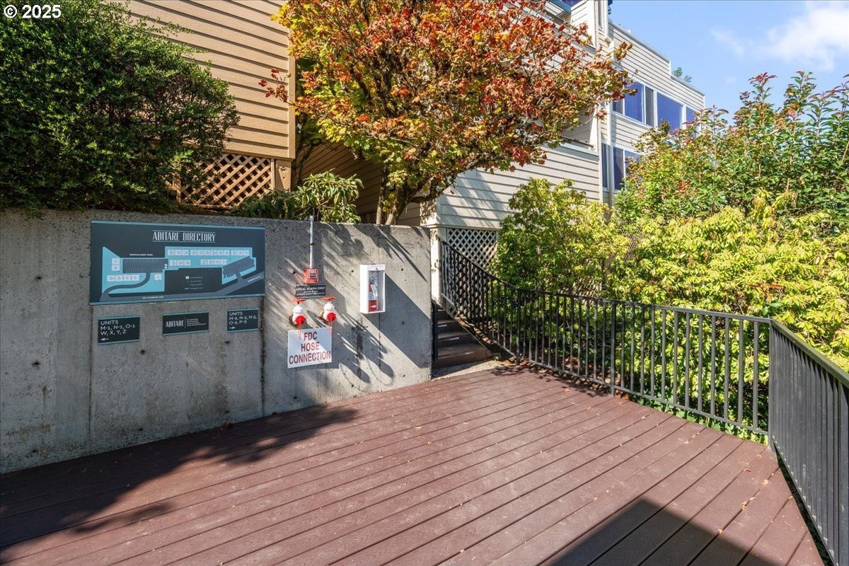 Perched in Portland’s scenic SW Hills, this beautiful 1-bedroom condo offers panoramic views of the city skyline, Willamette River, Mt. Hood, and Mt. St. Helens. Enjoy sunrise coffee or evening beverages from your private deck or living room windows, the perfect spot to soak in the city’s beauty. Located in the sought-after Homestead/Lair Hill neighborhood, you're just minutes from downtown, OHSU, PSU, and South Waterfront, with quick access to I-5, 405, and Hwy 26. Outdoor lovers will appreciate nearby Marquam Nature Park and Portland’s 40-Mile Trail system. With excellent walk/bike/transit scores, staying active and connected is effortless. This lovely condo boasts gorgeous oak wood floors, an updated bathroom with quartz counters, in unit washer/dryer, ample closet space plus an external storage unit, assigned parking spot and, extra bonus- an owner that has meticulously maintained it all! The exterior has had a full upgrade recently, the seller will pay the remaining assessment AND 6 months of HOA dues for you so all you have to do is move right in and enjoy! Take advantage of a year of less expense with our preferred lenders rate buy down at no charge to you too! A rare blend of privacy, views, and location- this is quintessential Portland living.