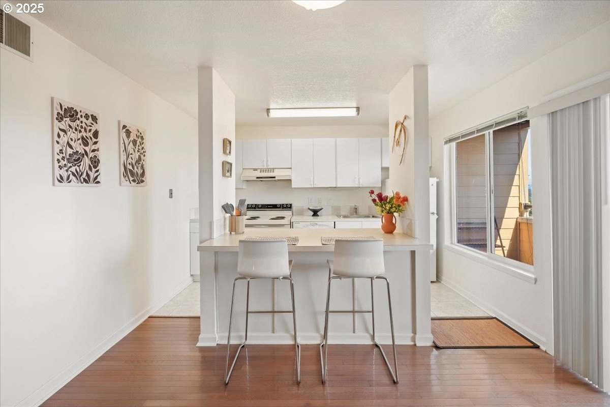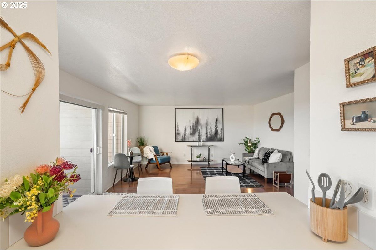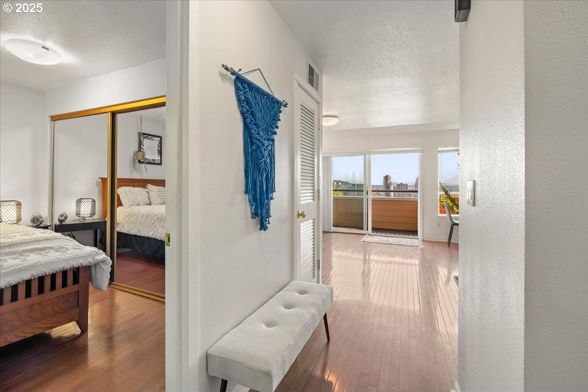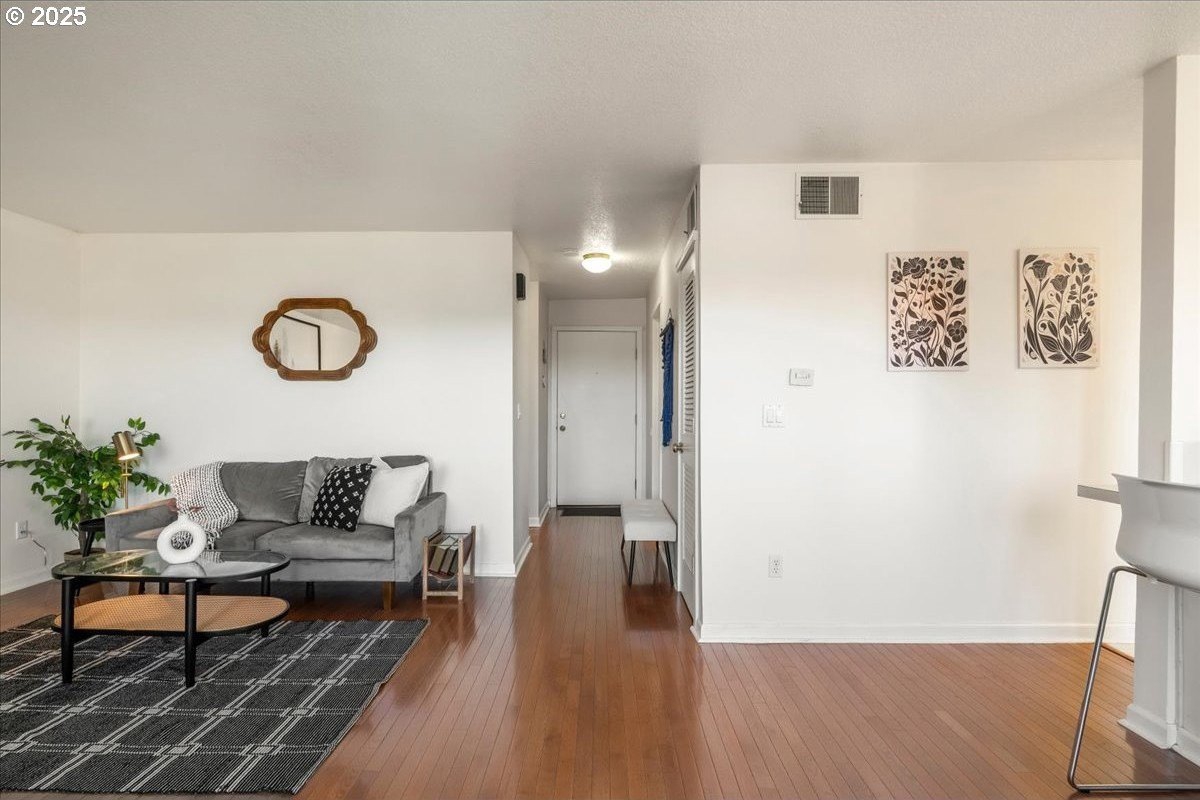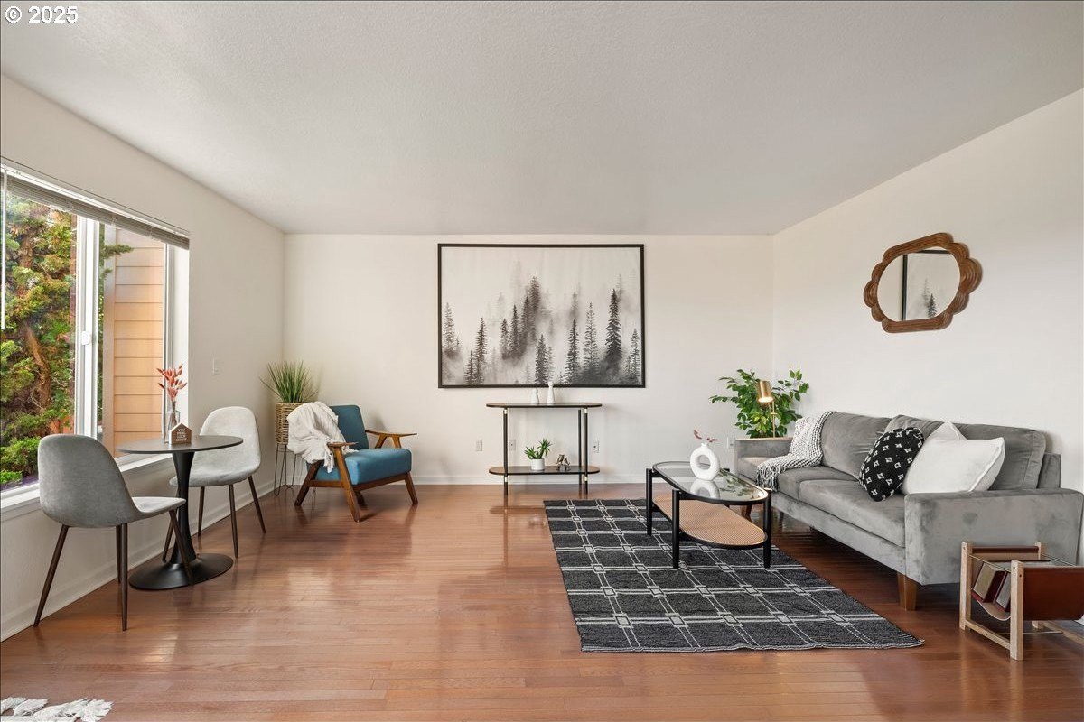 Perched in Portland’s scenic SW Hills, this beautiful 1-bedroom condo offers panoramic views of the city skyline, Willamette River, Mt. Hood, and Mt. St. Helens. Enjoy sunrise coffee or evening beverages from your private deck or living room windows, the perfect spot to soak in the city’s beauty. Located in the sought-after Homestead/Lair Hill neighborhood, you're just minutes from downtown, OHSU, PSU, and South Waterfront, with quick access to I-5, 405, and Hwy 26. Outdoor lovers will appreciate nearby Marquam Nature Park and Portland’s 40-Mile Trail system. With excellent walk/bike/transit scores, staying active and connected is effortless. This lovely condo boasts gorgeous oak wood floors, an updated bathroom with quartz counters, in unit washer/dryer, ample closet space plus an external storage unit, assigned parking spot and, extra bonus- an owner that has meticulously maintained it all! The exterior has had a full upgrade recently, the seller will pay the remaining assessment AND 6 months of HOA dues for you so all you have to do is move right in and enjoy! Take advantage of a year of less expense with our preferred lenders rate buy down at no charge to you too! A rare blend of privacy, views, and location- this is quintessential Portland living.
