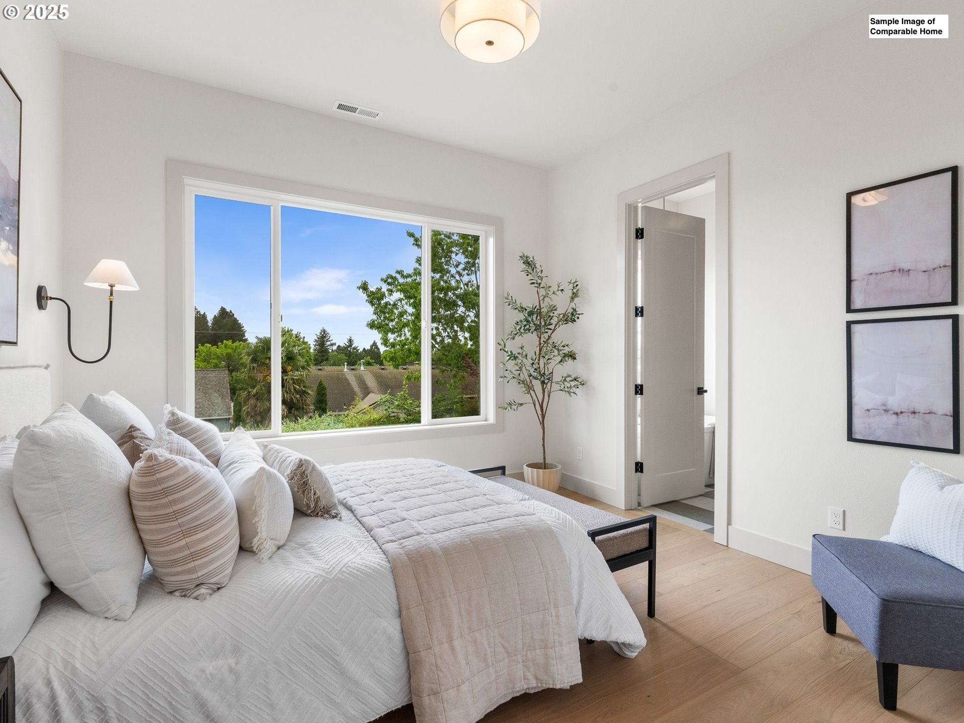 Welcome to this beautifully designed new construction home from a distinguished Street of Dreams builder in one of Gresham’s most desirable emerging neighborhoods. With 5 bedrooms and 3.5 bathrooms, this thoughtfully laid-out home offers modern style, flexible living, and quality finishes throughout. The light-filled main level features an open-concept floor plan with high ceilings, a spacious living area, and a stylish kitchen complete with stainless steel appliances, solid surface countertops, a large island, and sleek cabinetry. One of the bedrooms is ideal as a home office or flex space, perfect for today’s hybrid lifestyles. The primary suite is located on the main floor and includes a walk-in closet and private en-suite bath, creating a peaceful retreat. Step out onto the covered balcony and enjoy picturesque views of surrounding trees—ideal for morning coffee or evening unwinding. An attached 3-car garage offers easy access, day-to-day convenience, and plenty of extra storage for vehicles, tools, or recreational gear. Located just minutes from major conveniences, you’ll enjoy quick access to Gresham Station Shopping Center, featuring Best Buy, Old Navy, Ulta, and more. Dine at local favorites like Boccelli’s Ristorante, Asian Thai Bistro, or grab a sweet treat at Sugar Cubed Bakery. Start your day at nearby Black Rock Coffee Bar or Cafe Delirium, and explore green spaces like Nadaka Nature Park or Main City Park for weekend recreation. With brand-new systems, a builder warranty, and a move-in-ready finish, this home combines modern comfort, functionality, and a fantastic location. Images are sampled from another home built by the developer. Actual finishes, style and layout may differ.