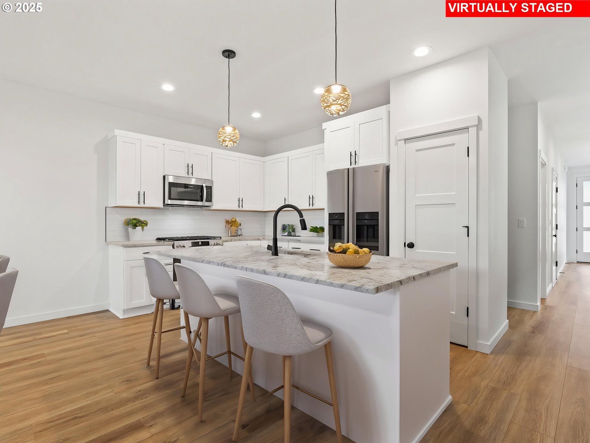This traditionally styled home features an open great room floor plan, perfect for everyday living and entertaining.Step into a welcoming space with continuous laminate flooring flowing from the entry through the kitchen and dining areas. The heart of the home is a well-appointed kitchen, complete with a gas range, stainless steel appliances, and a sleek quartz island—ideal for cooking, dining, and gatherings.Enjoy seamless indoor-outdoor living with a covered concrete patio and a fully fenced private backyard, located just off the kitchen.Upstairs, the vaulted primary suite offers a peaceful escape with sweeping territorial views from both the bedroom and private upper deck. The upper level includes three spacious bedrooms and a flex space—perfect for a home office, playroom, or media room.Located in the scenic and growing community of Hoodview Heights in Sandy, Oregon, these homes are perfect for anyone seeking comfort with style. PM.Photos shown are for example purposes only and may include upgraded features.Please see your host at 18865 Crooked River Street when you visit the open house.