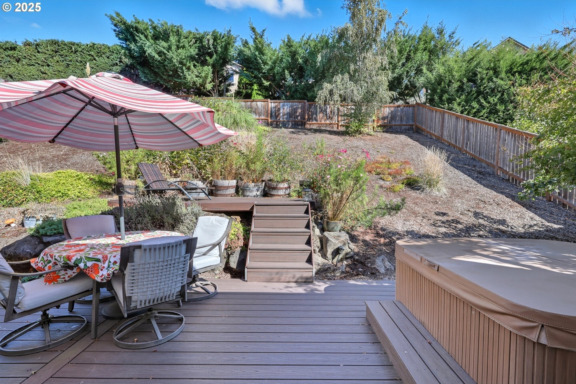 This beautifully designed 4-bedroom, 2.5-bath home in the sought-after Lookout Ridge neighborhood has everything you’ve been looking for. Boasting a perfect blend of modern style and functional layout, it offers comfort and convenience at every turn. Plus, it’s located within the highly rated Camas School District. MAIN FLOOR: The spacious primary suite on the main floor includes a private en-suite bath and a generous walk-in closet. The open-concept living area features a cozy gas fireplace, a dining area, and a stylish kitchen with updated appliances, ample counter space, and a large pantry—ideal for entertaining guests or enjoying family time. Laundry room is on the mail floor complete with washer and dryer. UPSTAIRS: You’ll find three additional bedrooms and a full bathroom—perfect for kids, guests, or even a home office. OUTSIDE: Relax and unwind on the composite front and back decks, perfect for sipping a drink, grilling, or hosting outdoor gatherings. The large, fully fenced backyard offers privacy and space for play or gardening. End your day with a soothing soak in the hot tub. LOCATION: Enjoy the best of both worlds—peaceful neighborhood living with convenient access to parks, trails, the farmers market, and all the shopping and dining in the vibrant, up-and-coming downtown areas of Washougal and Camas. Located on the Camas border, this home offers access to Camas amenities without the higher Camas taxes. BONUS: A brand-new roof was installed in May 2025, offering peace of mind for years to come. The included hot tub, refrigerator, washer, and dryer add even more value. Both Comcast high speed cable and Ziply high speed symmetrical fiber available.