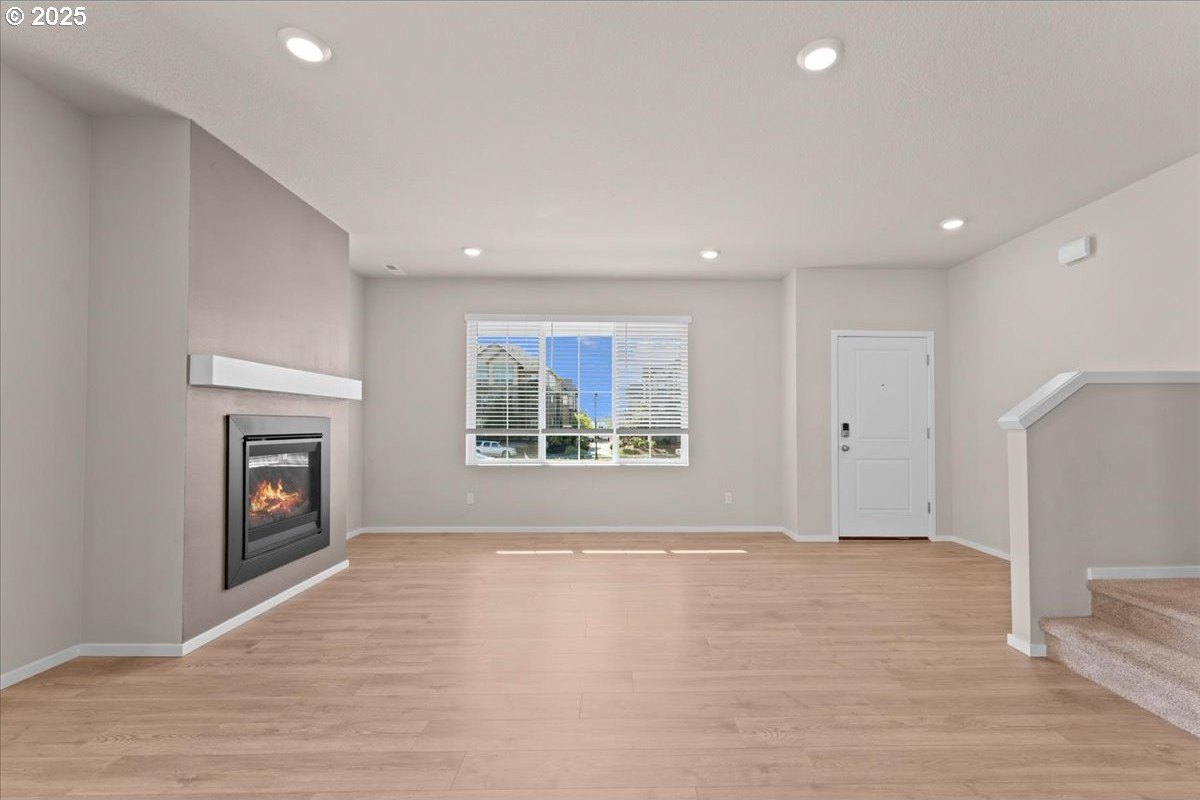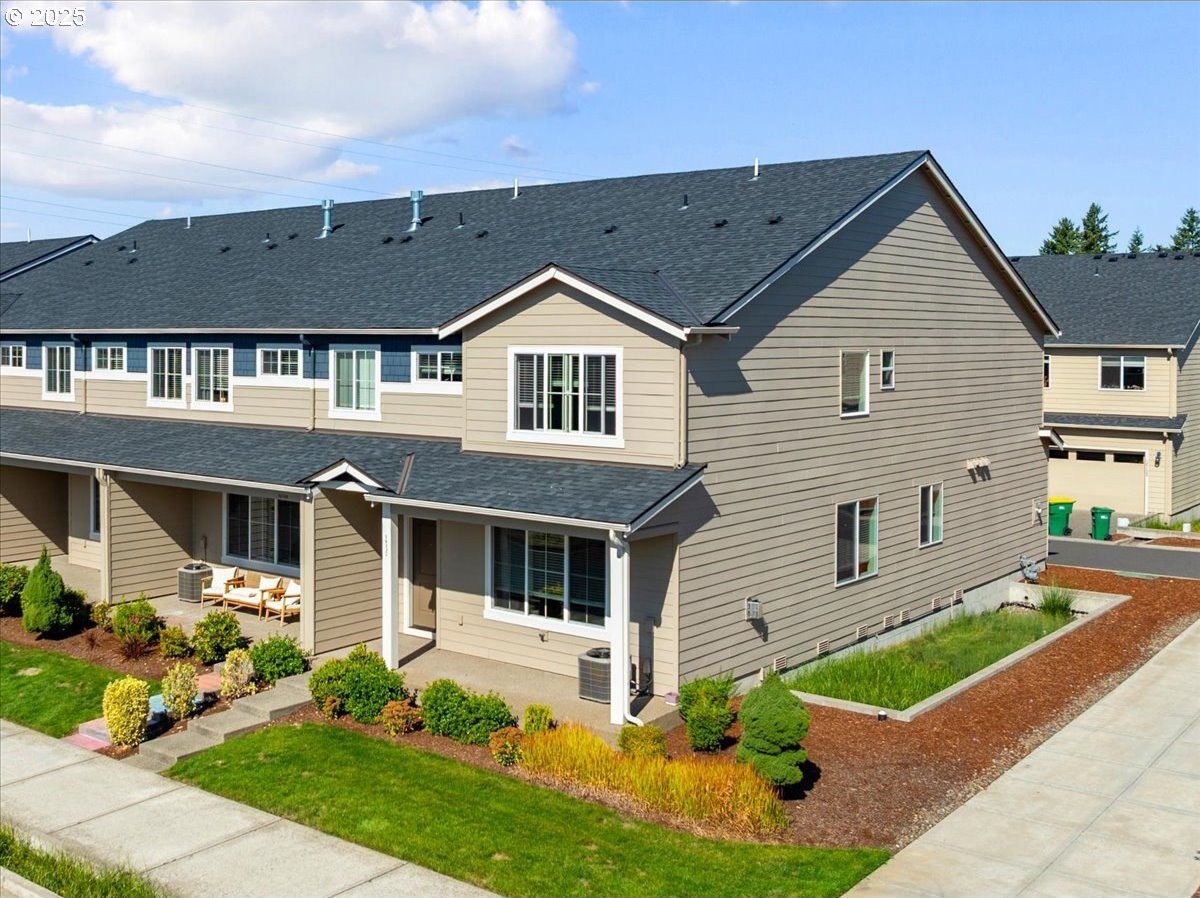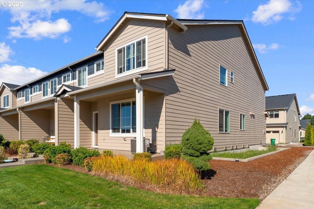 Tired of walking up three or more flights of stairs in a townhome? This two level, 3 bed 2.5 bath meticulously well-maintained townhome has minimal steps (one step) from its 2 car garage to the kitchen. Tired of high HOA? This 5 year new townhome HOA is only $199/month which includes exterior maintenance & insurance and front yard maintenance. Looking for a corner townhome that provides abundant sunlight? 16132 NW Pristine Ln is the one. Open space on the main level features a fireplace, laminating floor, a laundry room, large island and stainless gas appliances. In addition to the primary suite, two bedrooms and guest bathroom on the second floor, there is a spacious loft for office use. Note that this south facing townhome has a view of green, AC and Smart Home Features included. Excellent schools: Sato/Stoller/West View. Move in ready.