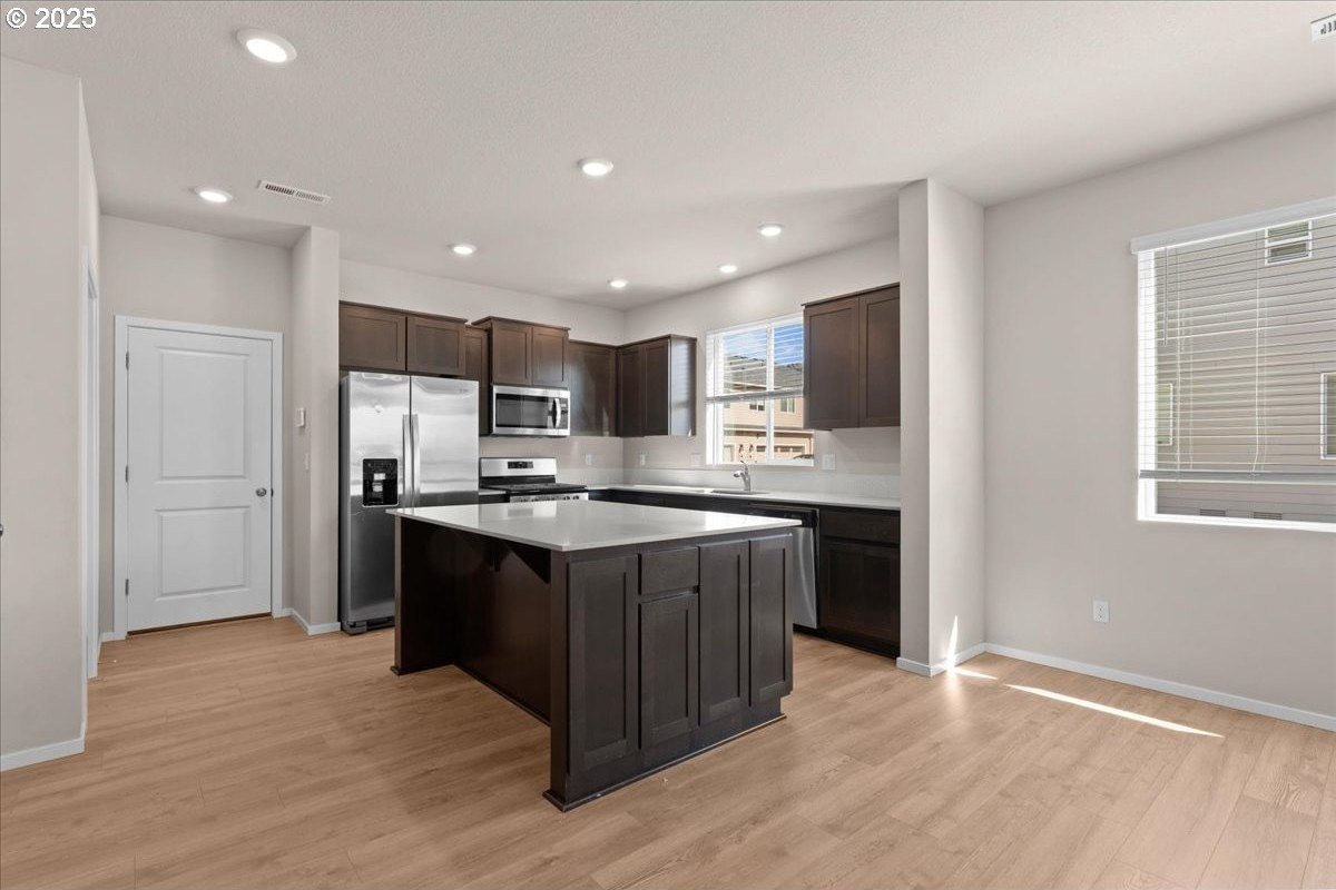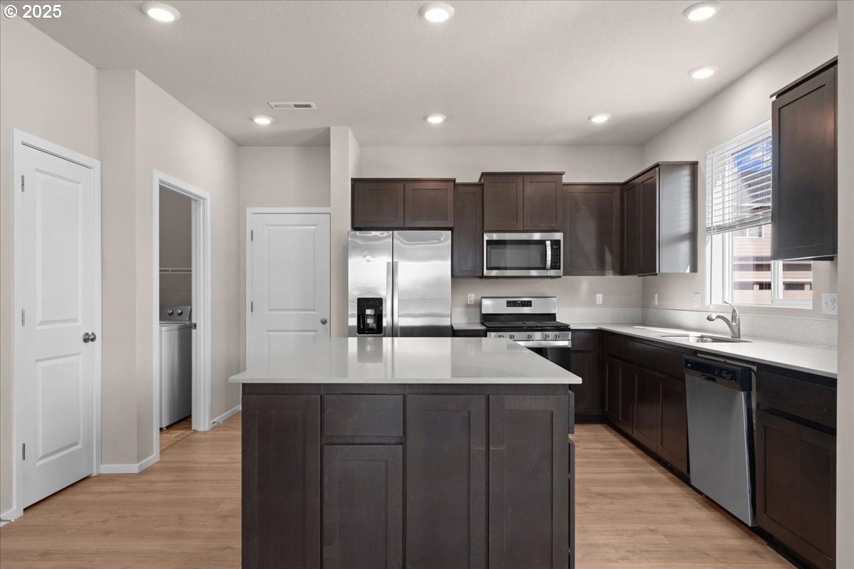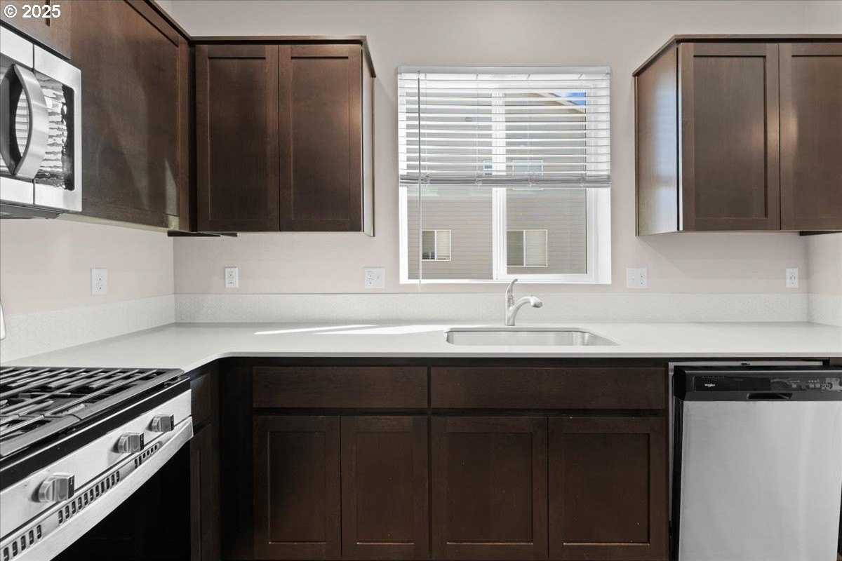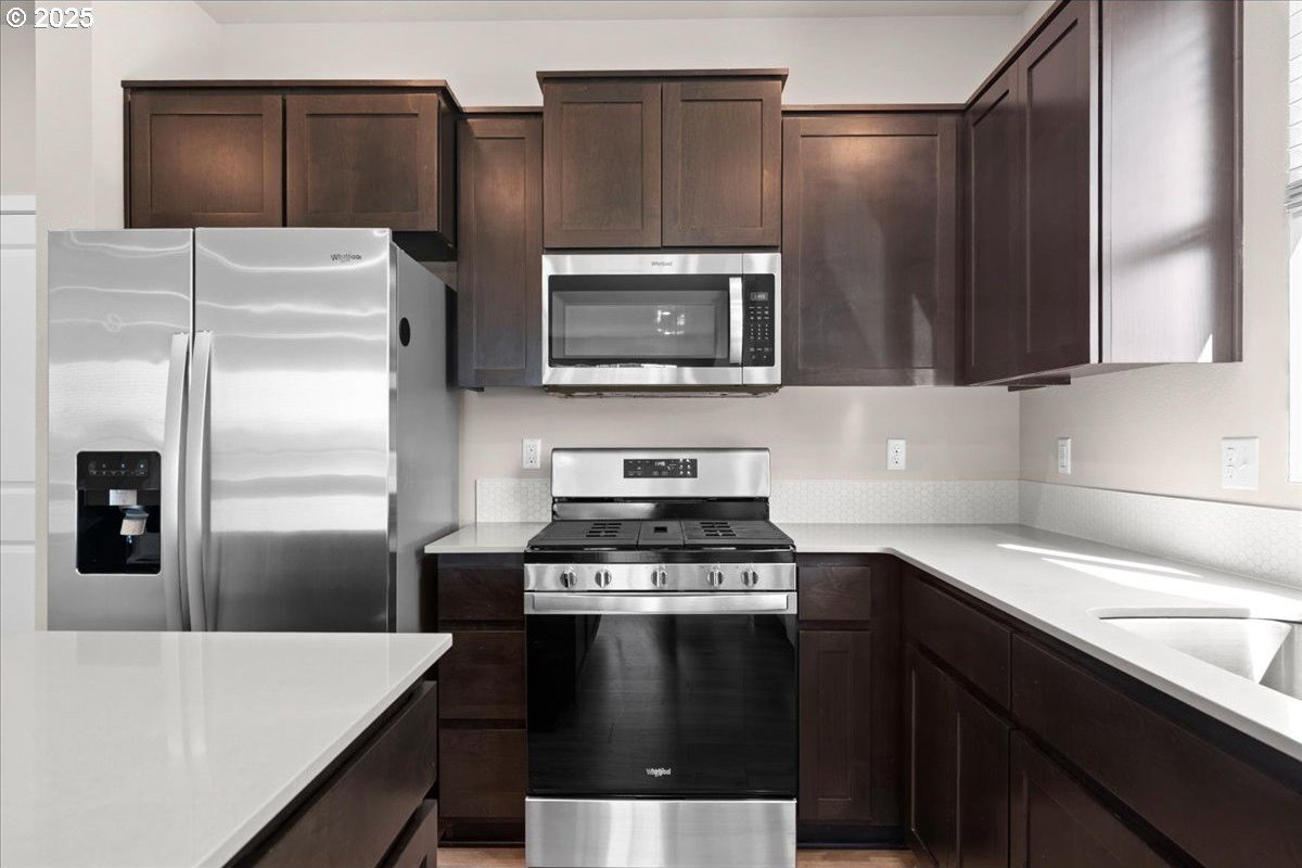 Tired of walking up three or more flights of stairs in a townhome? This two level, 3 bed 2.5 bath meticulously well-maintained townhome has minimal steps (one step) from its 2 car garage to the kitchen. Tired of high HOA? This 5 year new townhome HOA is only $199/month which includes exterior maintenance & insurance and front yard maintenance. Looking for a corner townhome that provides abundant sunlight? 16132 NW Pristine Ln is the one. Open space on the main level features a fireplace, laminating floor, a laundry room, large island and stainless gas appliances. In addition to the primary suite, two bedrooms and guest bathroom on the second floor, there is a spacious loft for office use. Note that this south facing townhome has a view of green, AC and Smart Home Features included. Excellent schools: Sato/Stoller/West View. Move in ready.