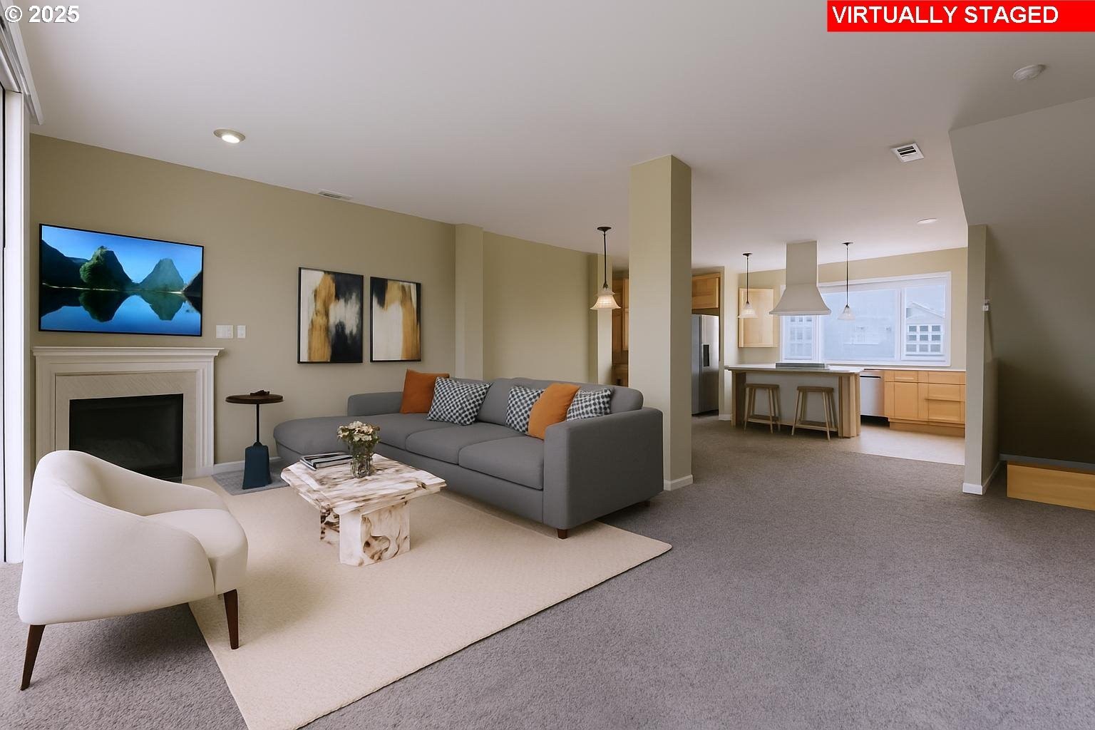 One Year of HOA fees Free with a full price offer for this end unit townhome with a View! Welcome to Fairview Terrace, a gated community where resort-style amenities meet everyday living. Relax by the pool, soak in the hot tub, work out in the fitness center, or host gatherings in the clubhouse—all included in your HOA. This end-unit townhome offers a versatile floor plan. The entry level features a private bedroom suite with its own exterior entrance and patio—perfect for multigenerational living, a playroom, guest quarters, or even a roommate. Upstairs, the light-filled living room boasts vaulted ceilings, a cozy gas fireplace, and direct access to the deck with breathtaking north-facing hillside views. The open-concept design flows easily into the dining area and kitchen, complete with a gas range, stylish hood, pantry, and built-in workstation. Updates within the last five years include interior paint and carpet, plus newer exterior paint and a replaced roof, giving peace of mind. The top floor hosts the spacious primary suite with a walk-in closet and full bath, along with a generously sized secondary bedroom, another full bath, and the laundry room. With a full-price offer, the seller will cover your first six months of HOA dues—which include water, sewer, pool, clubhouse, gym, and more. Move in, take in the views, and enjoy the lifestyle. Assumable FHA loan at 6% with 28 years remaining.