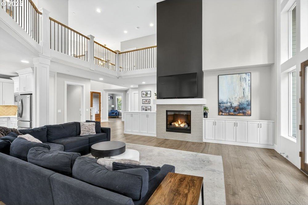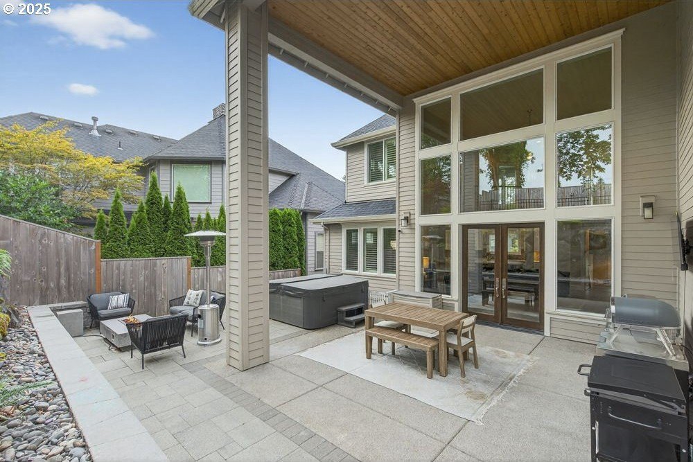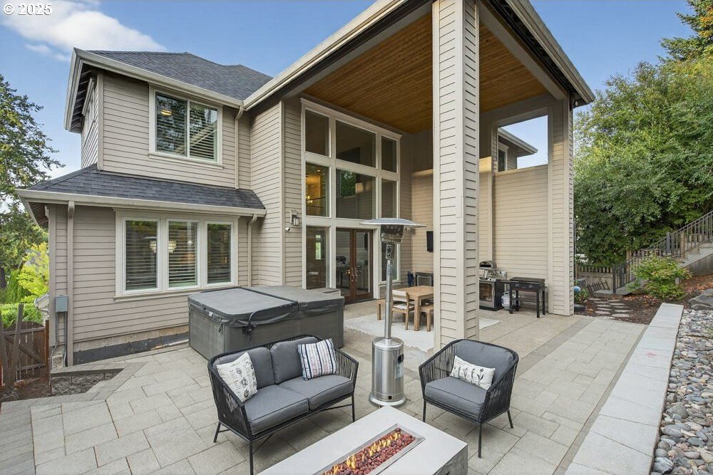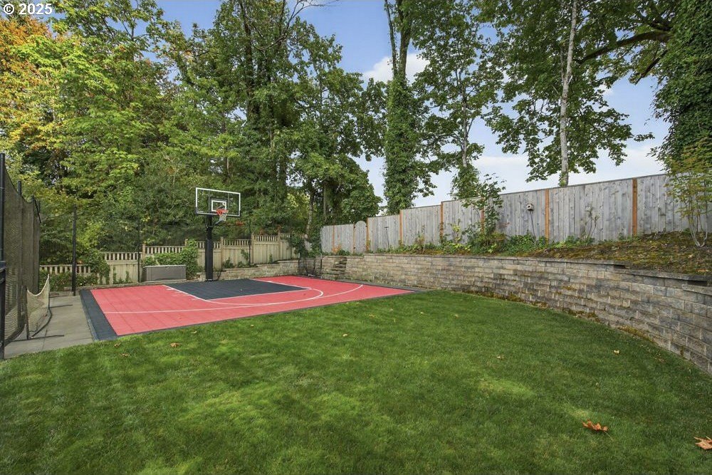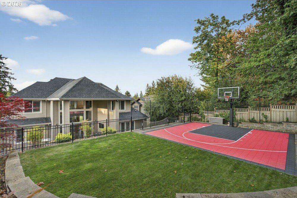 Modern Luxury Meets Everyday Comfort in SW Portland. Stunning, newer-construction home tucked away in a quiet cul-de-sac, surrounded by beautiful homes. Designed for modern living and effortless entertaining, this 4-bedroom, 3.5-bath is the perfect blend of sophistication, fun, and functionality. Grand open floorplan flooded with natural light from soaring ceilings and expansive windows. The heart of the home is a chef’s dream: a gourmet kitchen featuring a massive center island, high-end appliances, a walk-in butler’s pantry all flowing seamless into the spacious great room. Home office and a luxurious primary suite—complete with spa-like bath and generous walk-in closet—are conveniently located on the main level for ideal one-level living. Upstairs are three additional bedrooms and a large bonus area, perfect for a media room, homework hub, or play space. The lower level is designed with lifestyle in mind, offering a rare 4-car garage and a flexible bonus room ideal for a home gym or studio. Entertain year-round on the show-stopping patio, where a wall of glass opens to connect indoor and outdoor living. Enjoy cover outdoor entertainment/dining space, firepit, and a professionally designed sport court—all set on a fully fenced, private lot that brings all the fun and activity to your own back yard. Located minutes from top-rated schools, shopping, and lush parks, and trails, this home offers luxury, location, and lifestyle in one exceptional package. [Home Energy Score = 4. HES Report at https://rpt.greenbuildingregistry.com/hes/OR10241813]