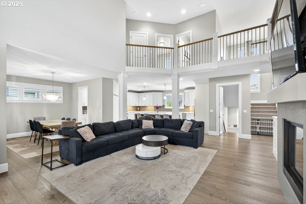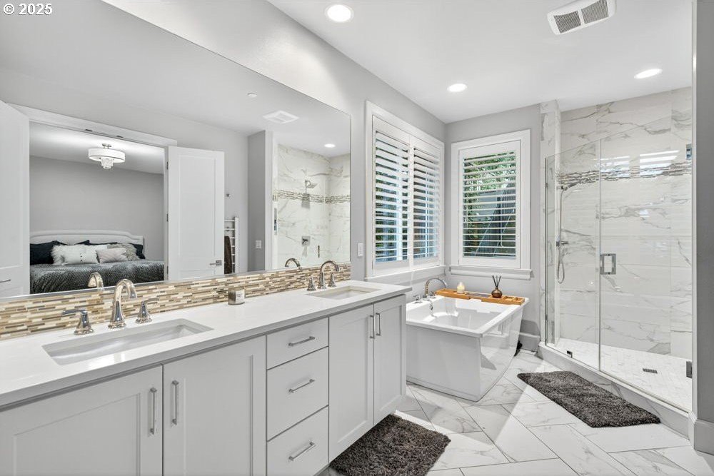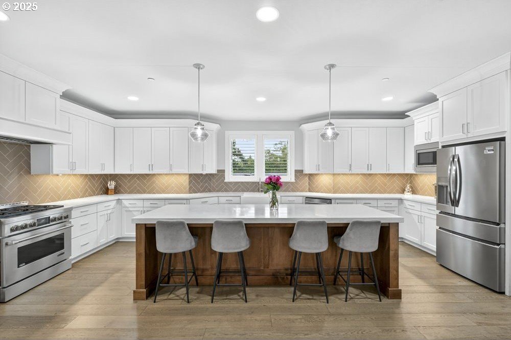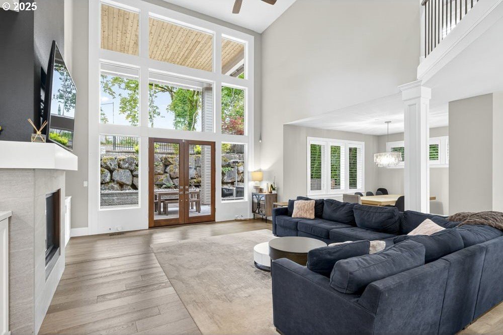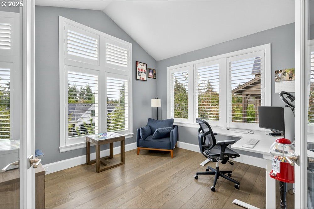 Modern Luxury Meets Everyday Comfort in SW Portland. Stunning, newer-construction home tucked away in a quiet cul-de-sac, surrounded by beautiful homes. Designed for modern living and effortless entertaining, this 4-bedroom, 3.5-bath is the perfect blend of sophistication, fun, and functionality. Grand open floorplan flooded with natural light from soaring ceilings and expansive windows. The heart of the home is a chef’s dream: a gourmet kitchen featuring a massive center island, high-end appliances, a walk-in butler’s pantry all flowing seamless into the spacious great room. Home office and a luxurious primary suite—complete with spa-like bath and generous walk-in closet—are conveniently located on the main level for ideal one-level living. Upstairs are three additional bedrooms and a large bonus area, perfect for a media room, homework hub, or play space. The lower level is designed with lifestyle in mind, offering a rare 4-car garage and a flexible bonus room ideal for a home gym or studio. Entertain year-round on the show-stopping patio, where a wall of glass opens to connect indoor and outdoor living. Enjoy cover outdoor entertainment/dining space, firepit, and a professionally designed sport court—all set on a fully fenced, private lot that brings all the fun and activity to your own back yard. Located minutes from top-rated schools, shopping, and lush parks, and trails, this home offers luxury, location, and lifestyle in one exceptional package. [Home Energy Score = 4. HES Report at https://rpt.greenbuildingregistry.com/hes/OR10241813]