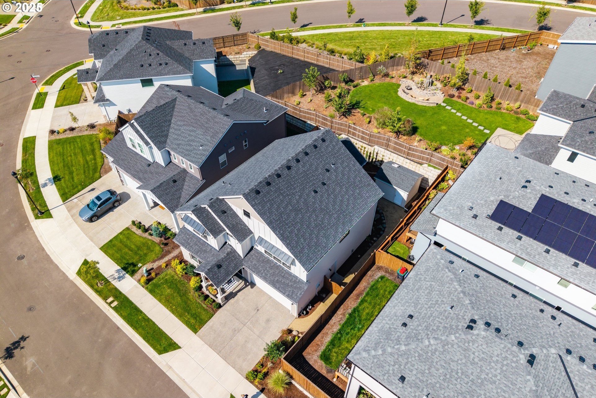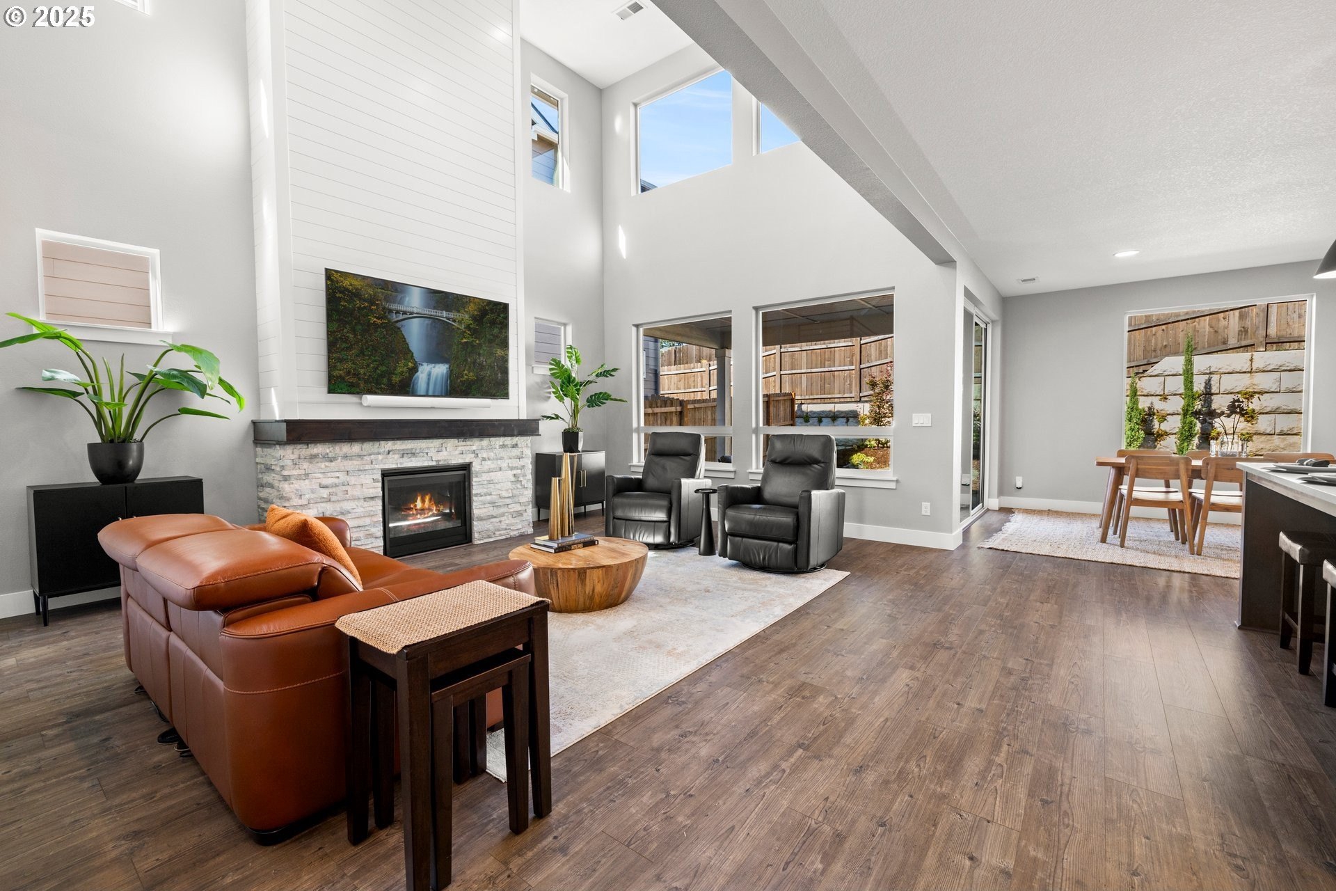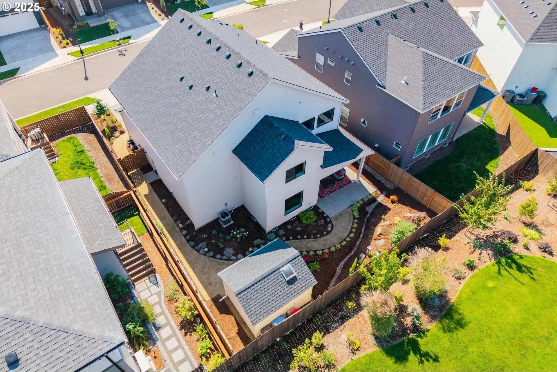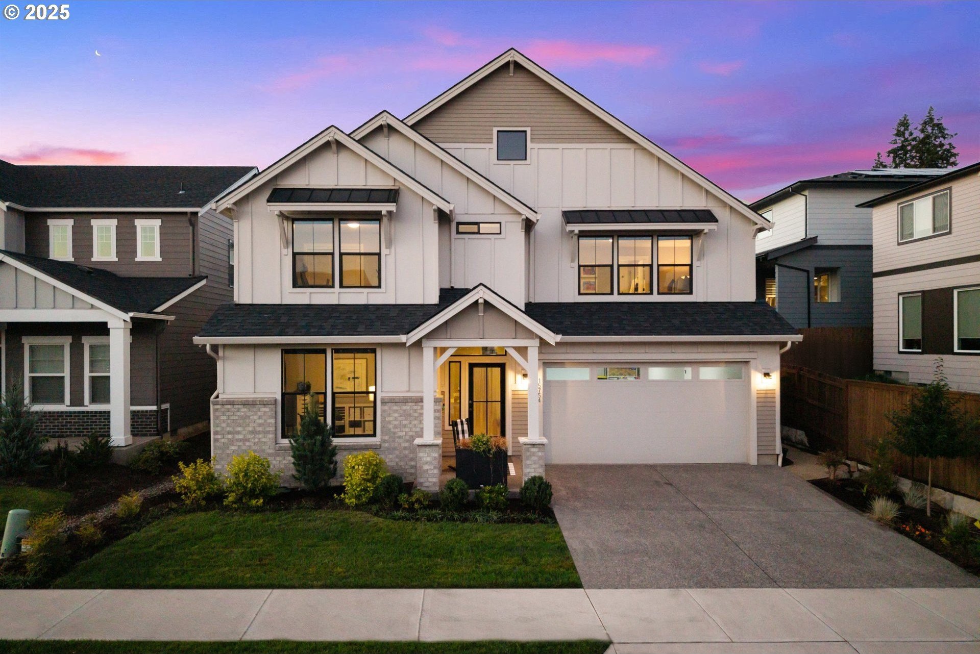 Experience modern luxury in this rare and highly sought-after ‘Rogue’ Craftsman-style home built in 2023 by Pac. Lifestyle Homes. Over $140K in construction and post-closing upgrades elevate the living experience well beyond builder standards. Luxury appliances, upgraded flooring, designer window treatments, custom closet organizers, and a gas fireplace with a custom stone-and-shiplap surround ensure every detail feels refined. The inviting 1st floor flows past the main-level bedroom/office and full bathroom, into a stunning great room with soaring 18-foot ceilings, tall windows, and a seamless open layout that unites the designer kitchen, dining area, and sun-filled living room, perfectly blending comfort and style. The upper level features 3 bedrooms and 2 full bathrooms, including an exceptional primary suite with a soaking tub, walk-in shower, and spacious closet space, along with a convenient laundry room with a utility sink, while expansive windows throughout the level offer stunning views of the beautiful community. Unlike similar homes, which are often limited to smaller garage spaces, this property offers a 3-car tandem garage, fully finished with epoxy floors—ideal for the most meticulous hobbyist or craftsman. Outdoors, the covered patio extends the living space, perfect for year-round entertaining and enjoying the professionally designed backyard landscape. The yard also includes a 120 sq/ft. Pro-Series Tough Shed, perfectly matched to the exterior of the home, that provides exceptional storage and utility. The home has been meticulously maintained, including a recent deep cleaning of carpets, windows, and exterior soft wash. Located in River Terrace, a vibrant community ideally situated between Beaverton, Tigard, and Oregon wine country. With upscale finishes, high-efficiency systems, a reputable builder, and a location that balances city access with natural charm, this home delivers extraordinary value and stands out as truly “better than new".