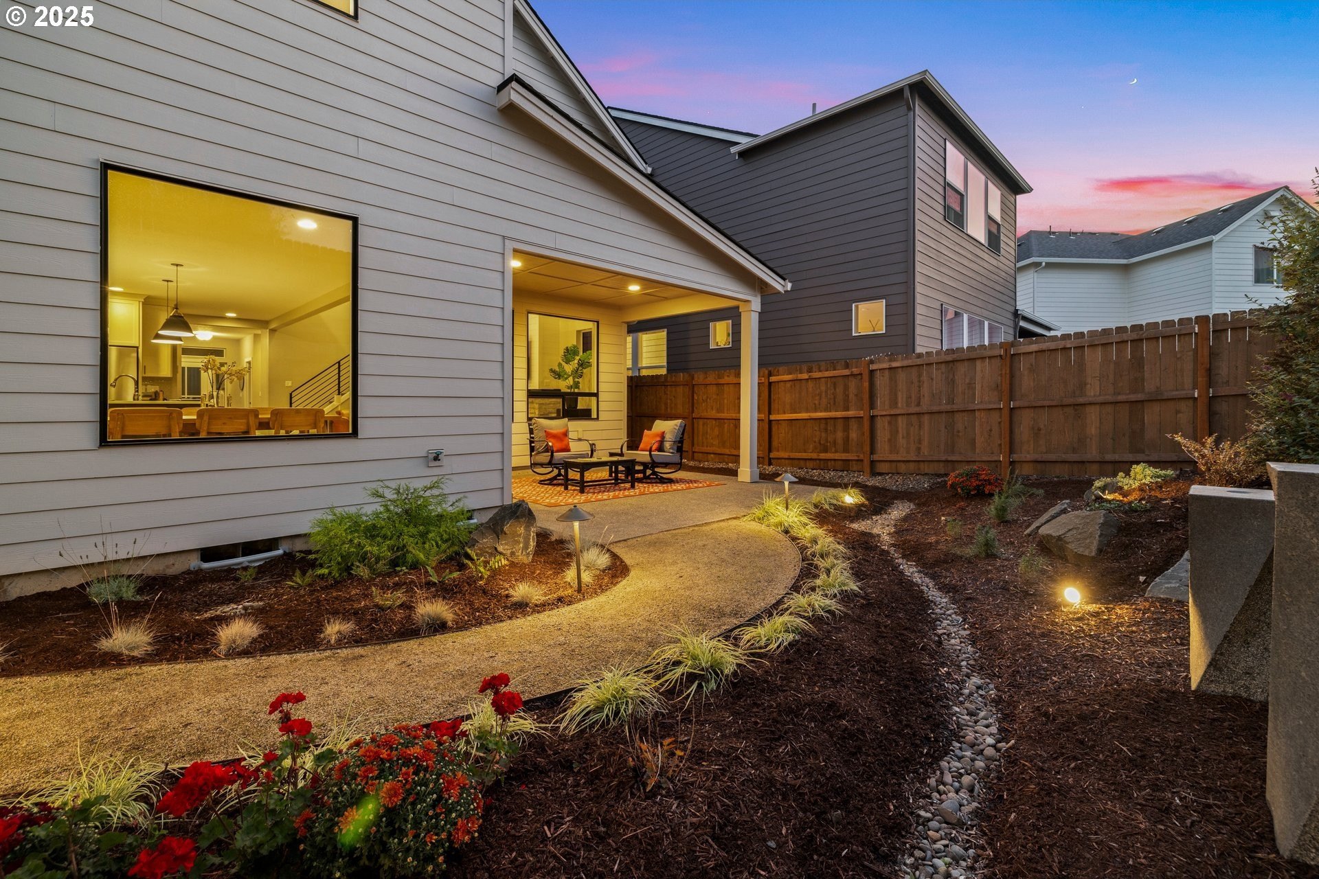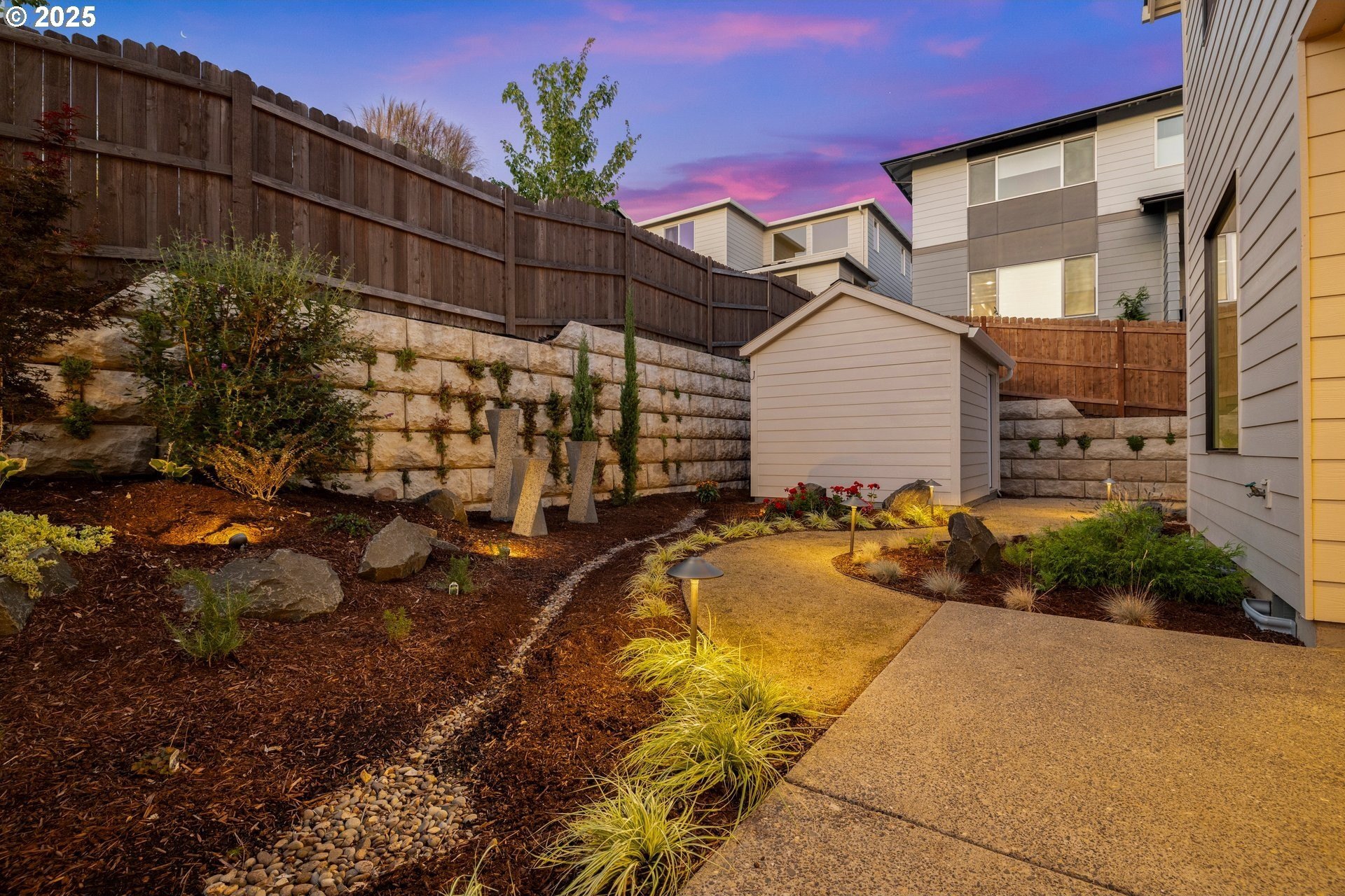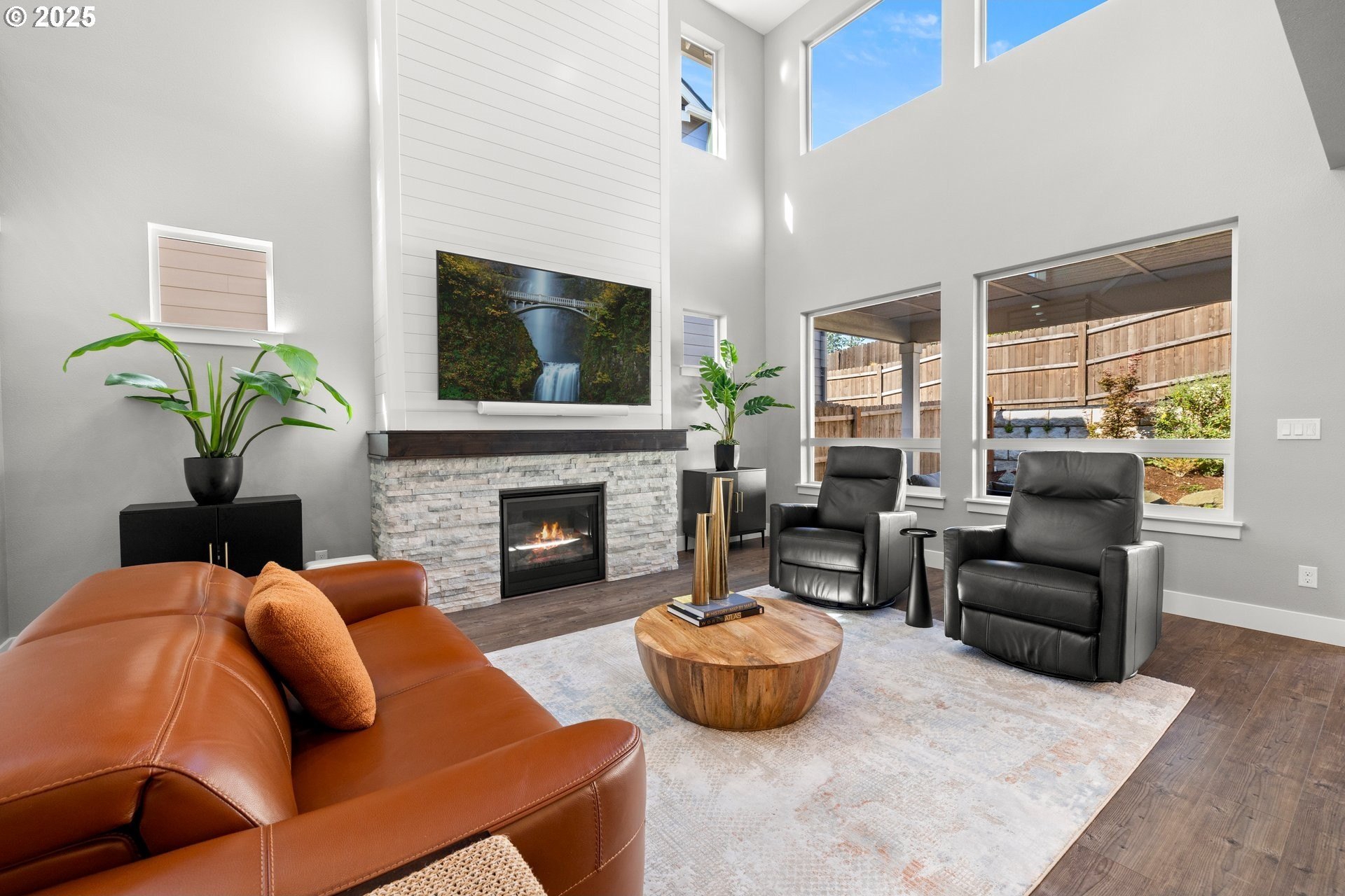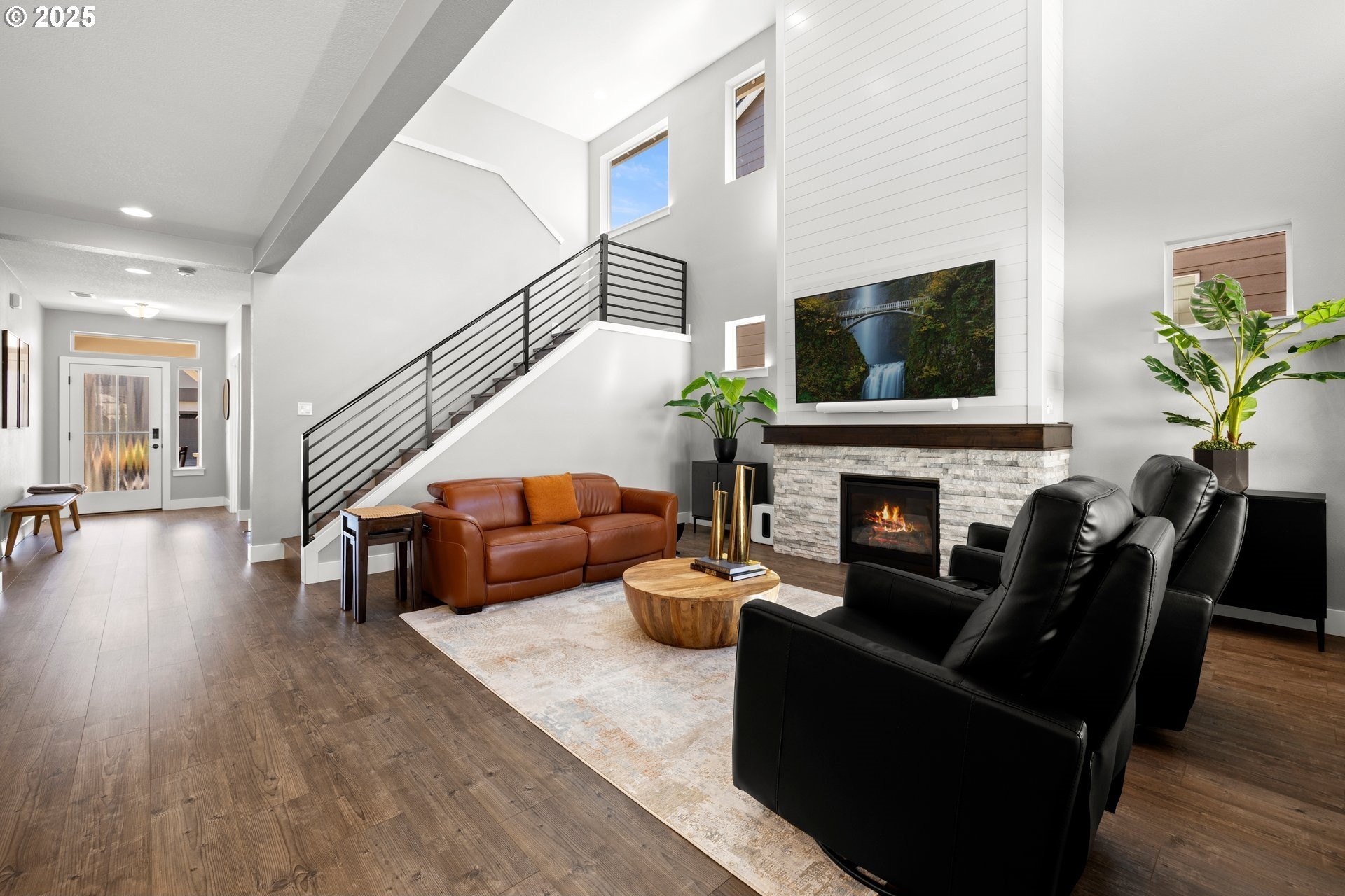 Experience modern luxury in this rare and highly sought-after ‘Rogue’ Craftsman-style home built in 2023 by Pac. Lifestyle Homes. Over $140K in construction and post-closing upgrades elevate the living experience well beyond builder standards. Luxury appliances, upgraded flooring, designer window treatments, custom closet organizers, and a gas fireplace with a custom stone-and-shiplap surround ensure every detail feels refined. The inviting 1st floor flows past the main-level bedroom/office and full bathroom, into a stunning great room with soaring 18-foot ceilings, tall windows, and a seamless open layout that unites the designer kitchen, dining area, and sun-filled living room, perfectly blending comfort and style. The upper level features 3 bedrooms and 2 full bathrooms, including an exceptional primary suite with a soaking tub, walk-in shower, and spacious closet space, along with a convenient laundry room with a utility sink, while expansive windows throughout the level offer stunning views of the beautiful community. Unlike similar homes, which are often limited to smaller garage spaces, this property offers a 3-car tandem garage, fully finished with epoxy floors—ideal for the most meticulous hobbyist or craftsman. Outdoors, the covered patio extends the living space, perfect for year-round entertaining and enjoying the professionally designed backyard landscape. The yard also includes a 120 sq/ft. Pro-Series Tough Shed, perfectly matched to the exterior of the home, that provides exceptional storage and utility. The home has been meticulously maintained, including a recent deep cleaning of carpets, windows, and exterior soft wash. Located in River Terrace, a vibrant community ideally situated between Beaverton, Tigard, and Oregon wine country. With upscale finishes, high-efficiency systems, a reputable builder, and a location that balances city access with natural charm, this home delivers extraordinary value and stands out as truly “better than new".
